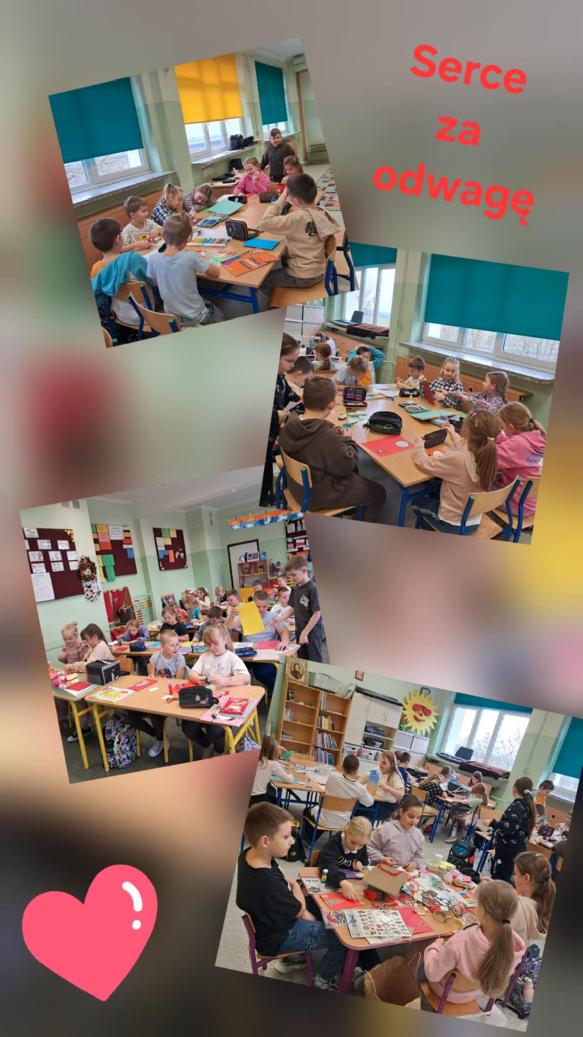 W bieżącym roku szkolnym nasi uczniowie kolejny raz wzięli udział w ogólnopolskiej akcji charytatywnej „Serca za Odwagę”. To wydarzenie miało szczególny charakter, ponieważ jego celem było okazanie wdzięczności i pamięci osobom, które z odwagą oraz poświęceniem walczyły o wolność naszej Ojczyzny. Podczas zajęć dzieci własnoręcznie tworzyły kartki bożonarodzeniowe, pełne serdecznych życzeń, szacunku i symbolicznego wsparcia. Każda kartka była małym gestem wielkiego serca – formą podziękowania dla bohaterów, którzy nierzadko ryzykowali swoim życiem, abyśmy dziś mogli żyć w wolnym kraju.