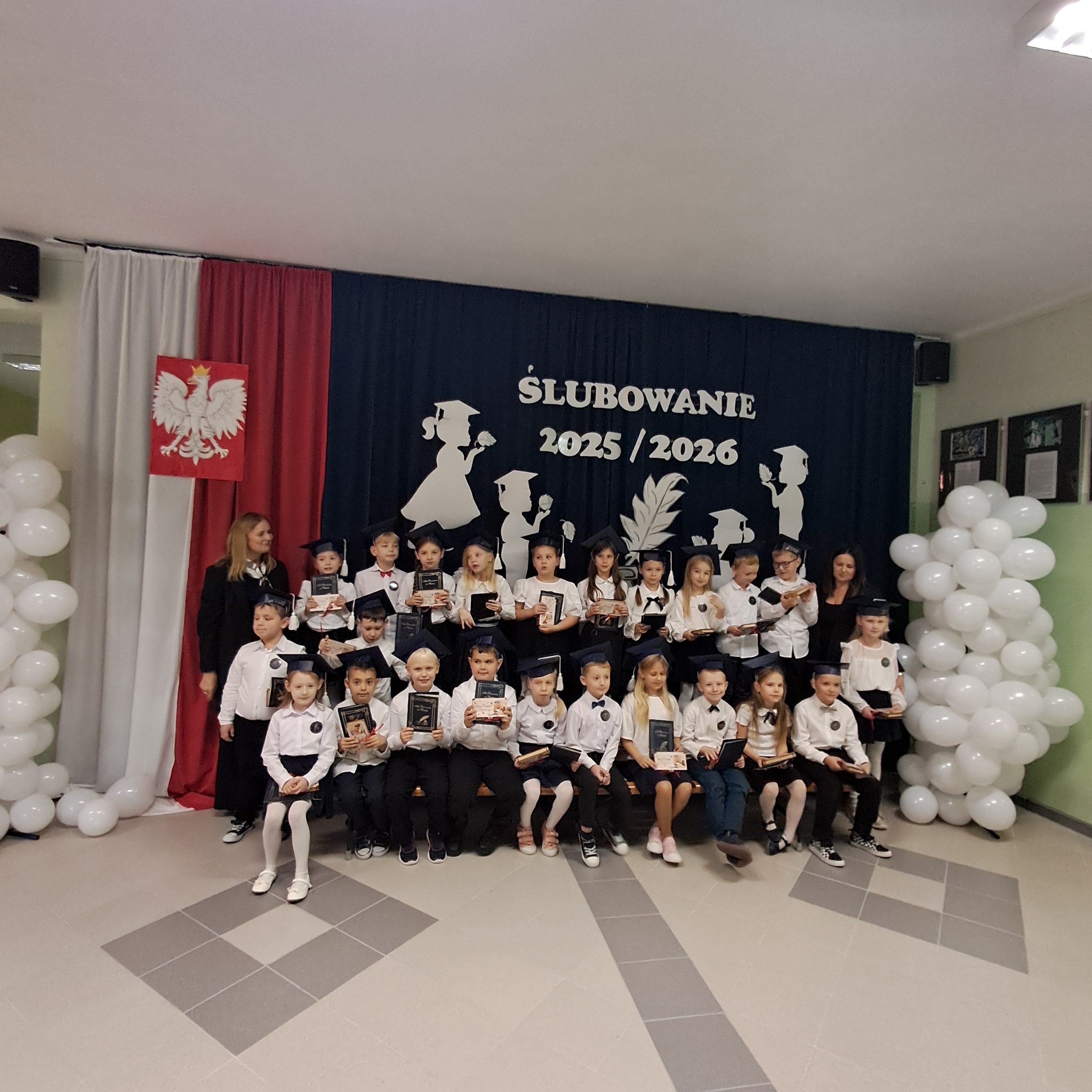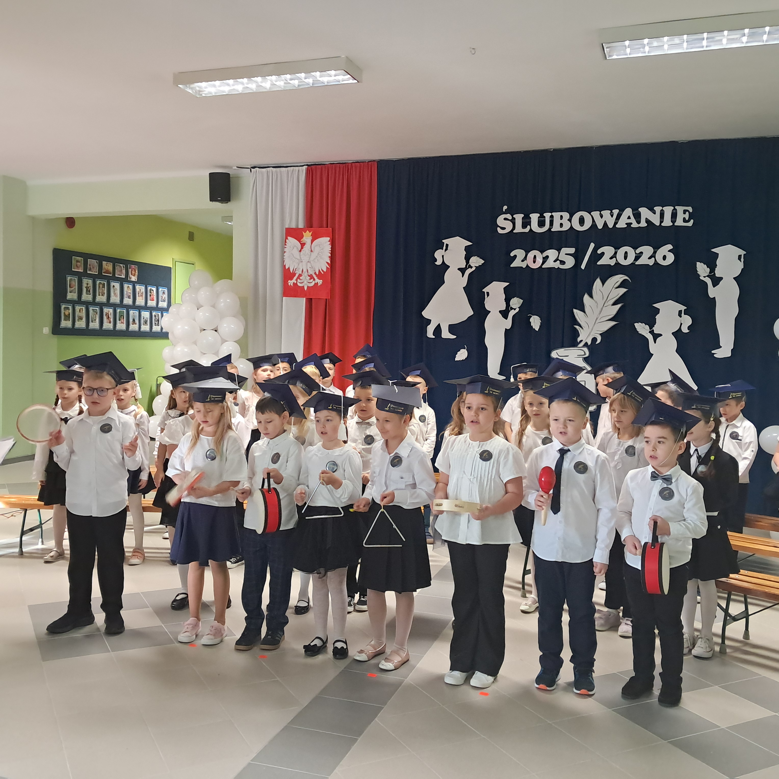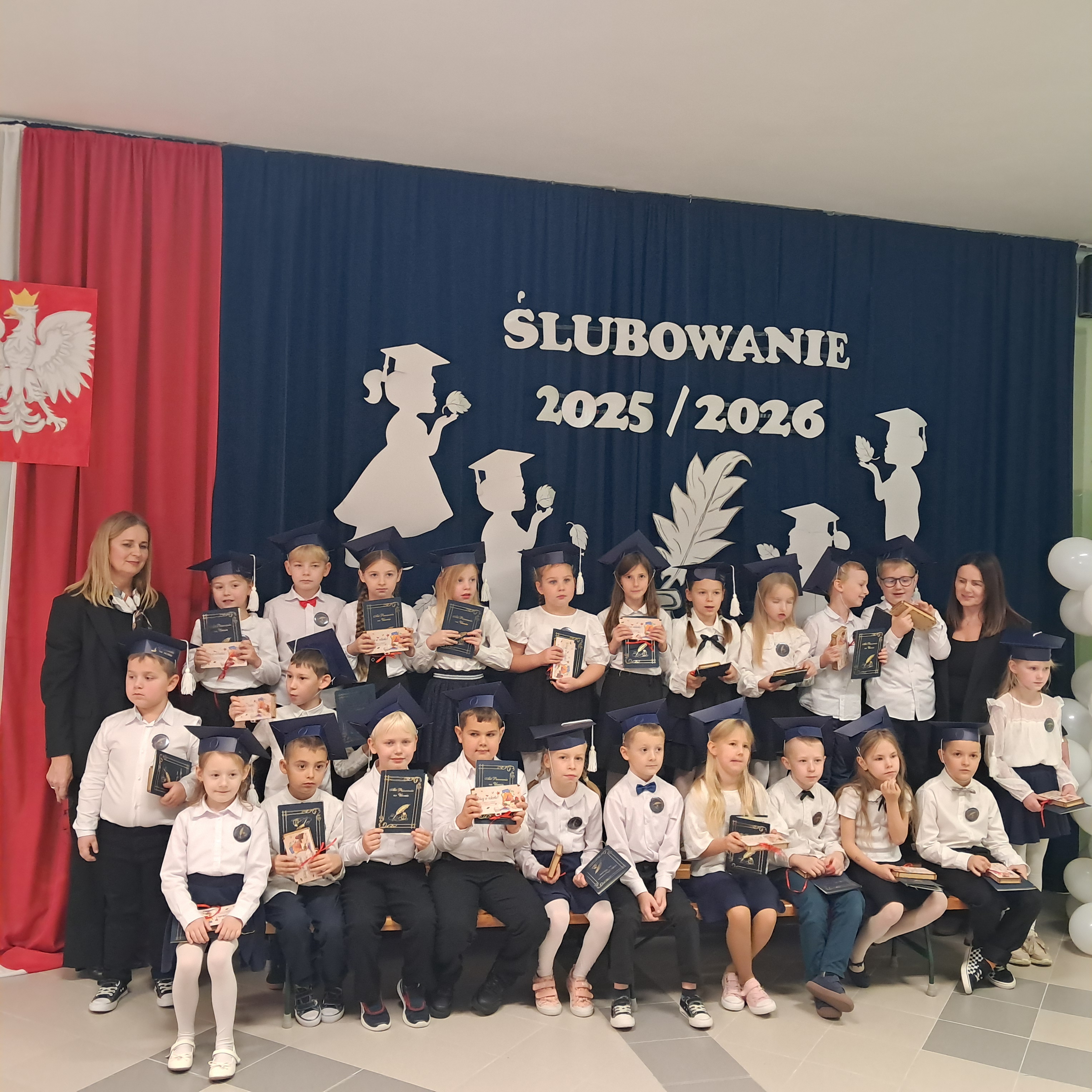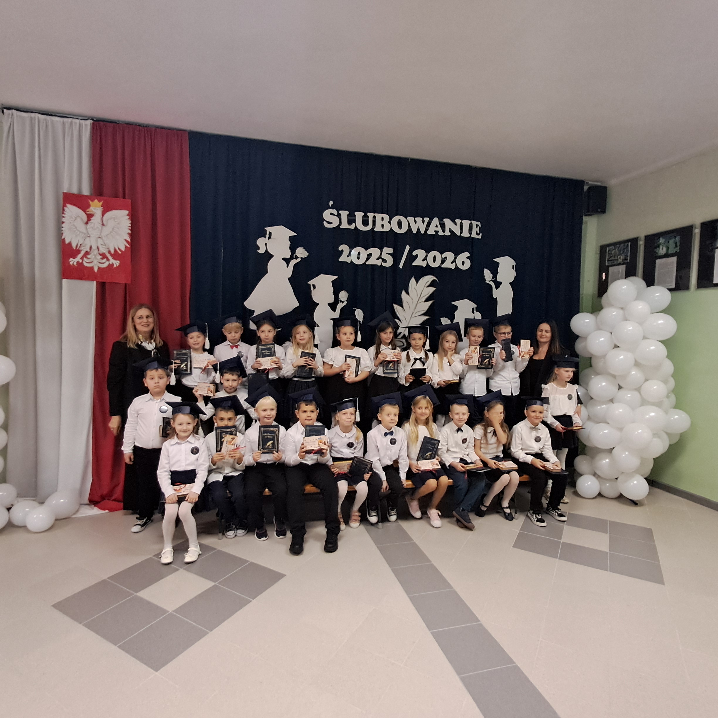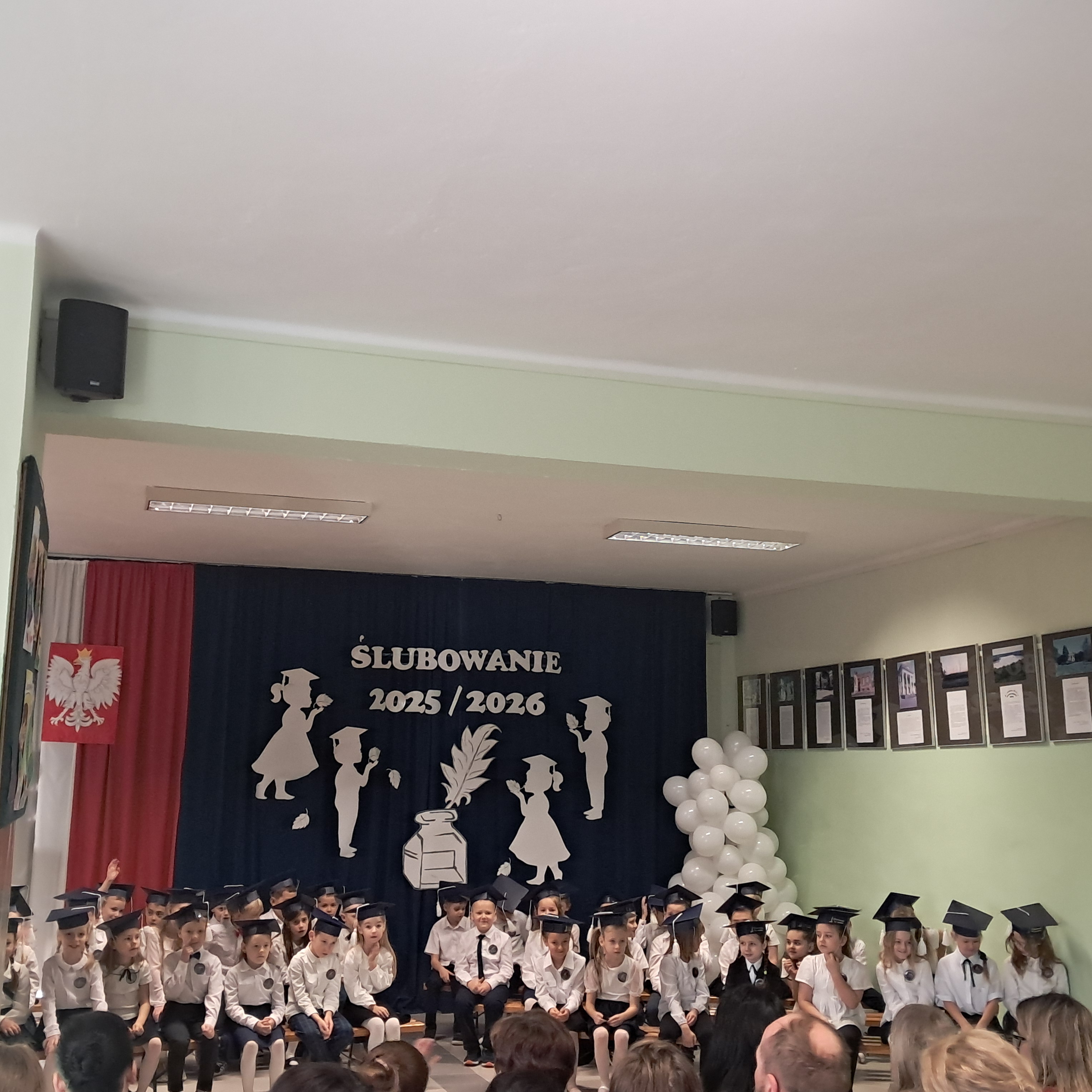 Dnia 22 października 2025 roku w naszej szkole odbyła się uroczystość ślubowania i pasowania uczniów klas pierwszych. Pierwszoklasiści w obecności Dyrektora Szkoły Pana Andrzeja Polaszka, zaproszonych gości i rodziców przedstawili program artystyczny, w którym zaprezentowali swoje umiejętności recytatorskie i wokalne.