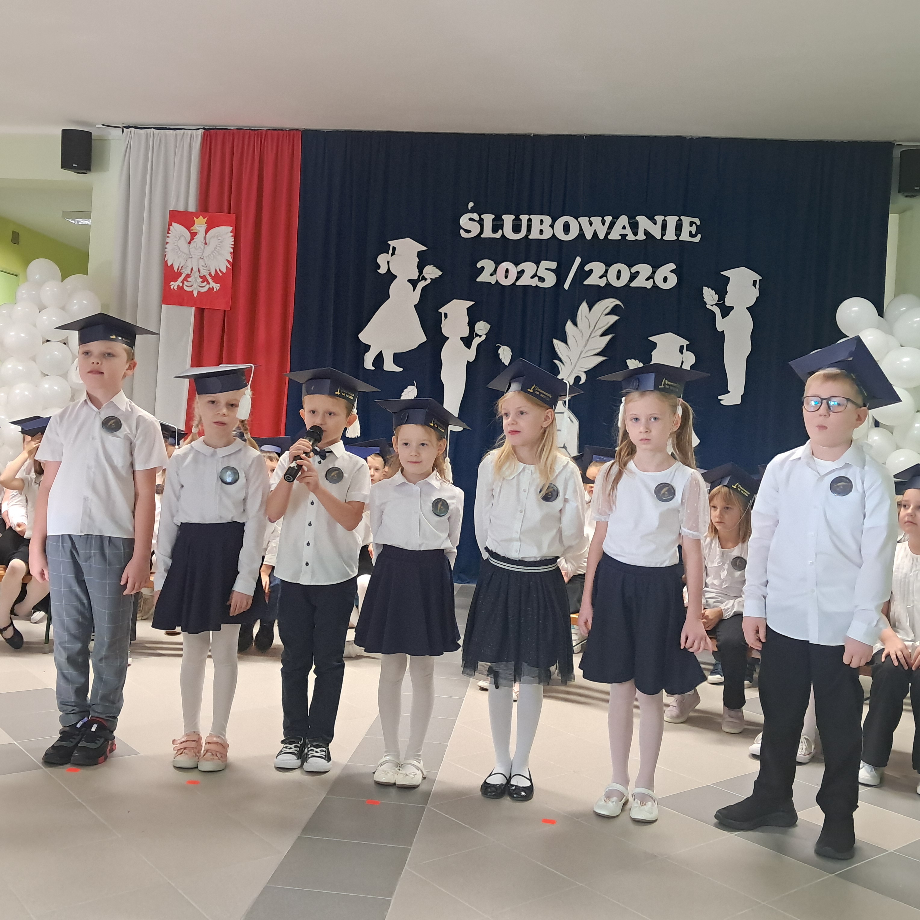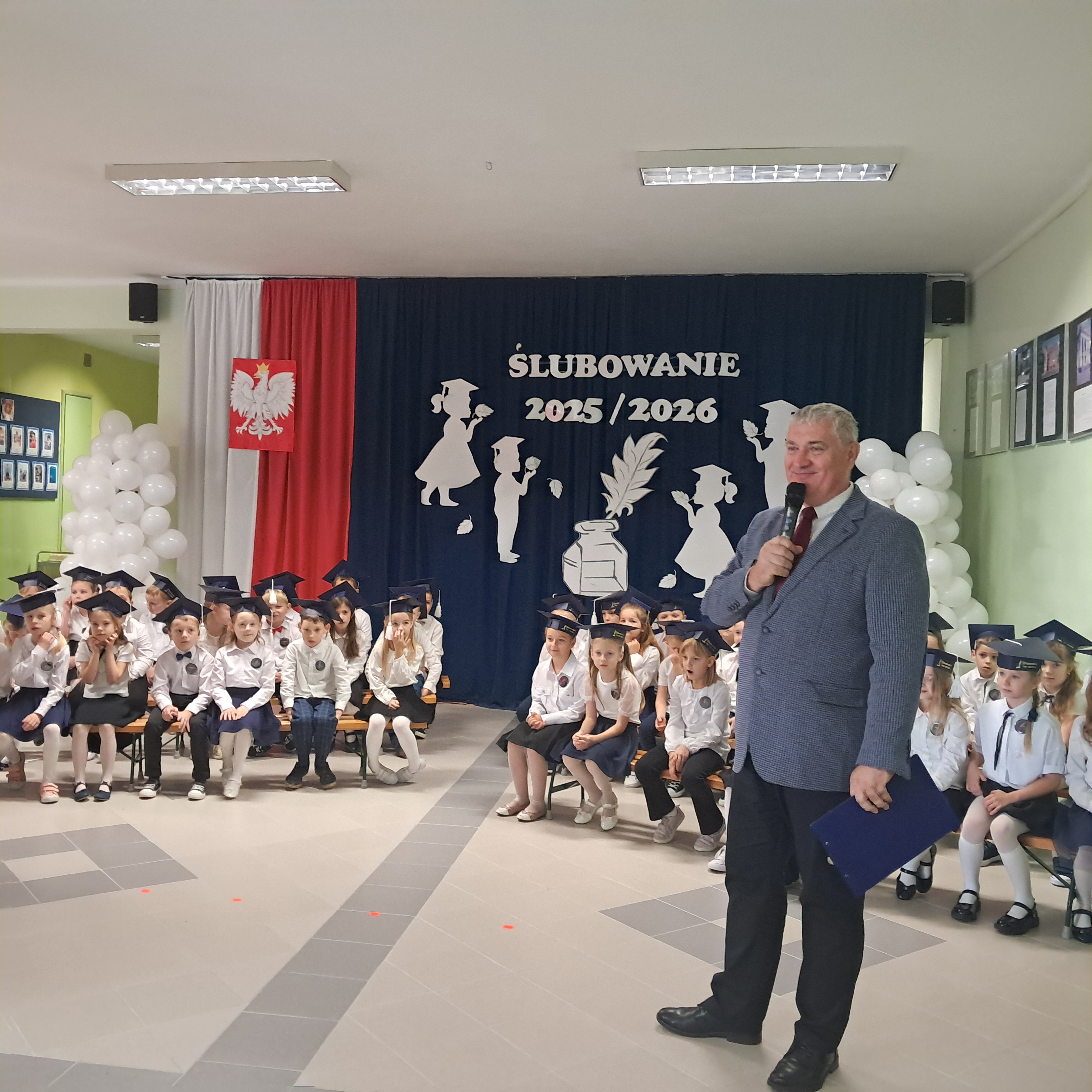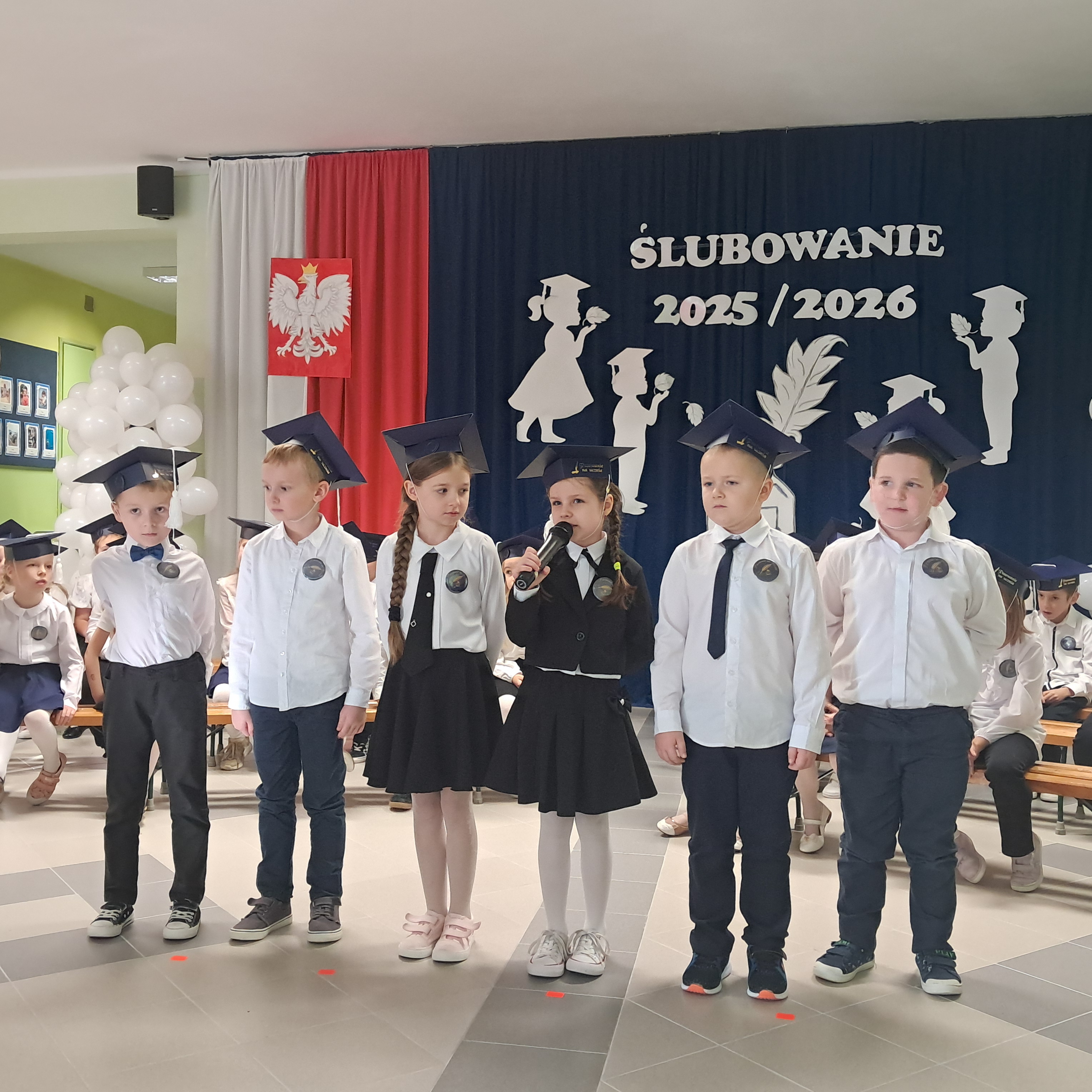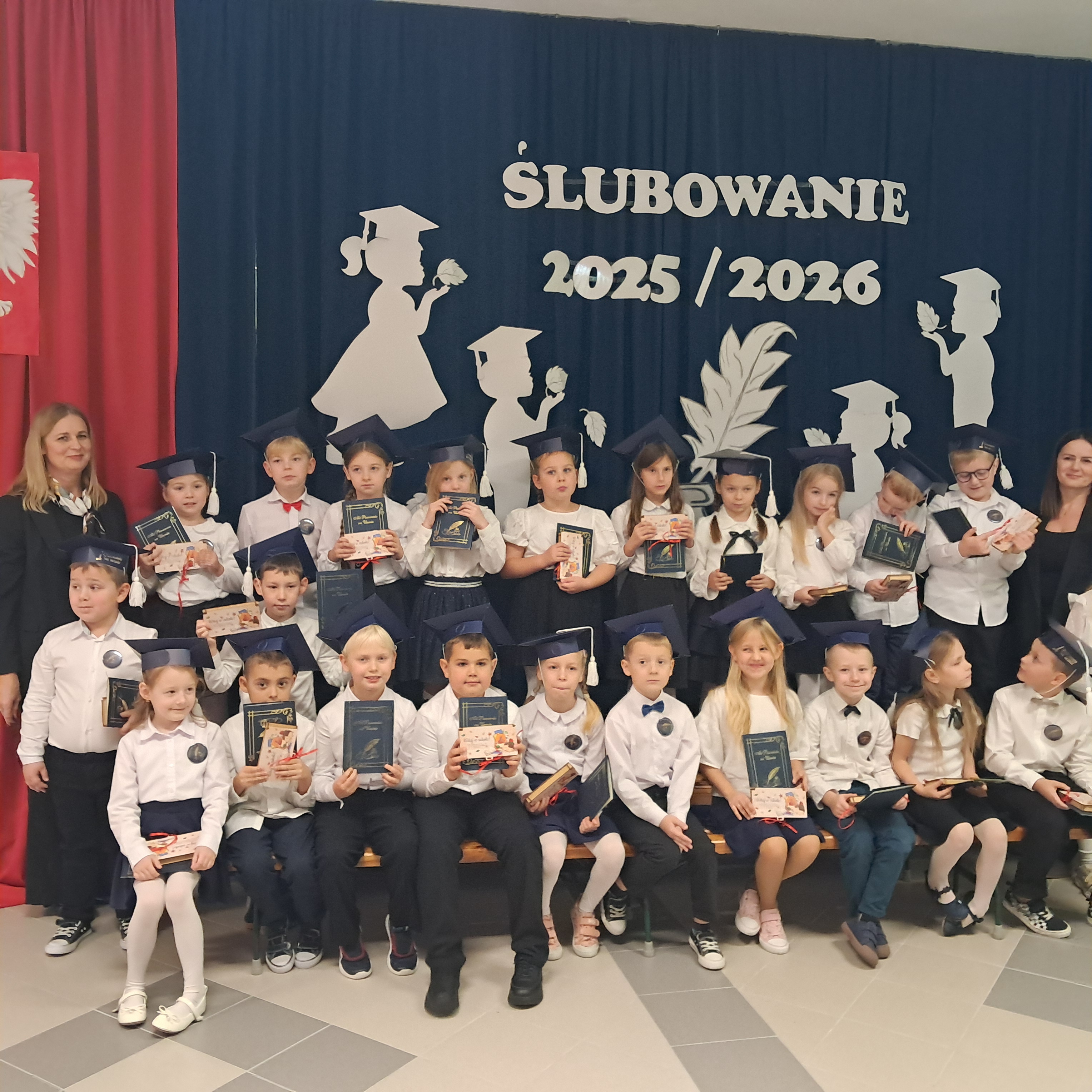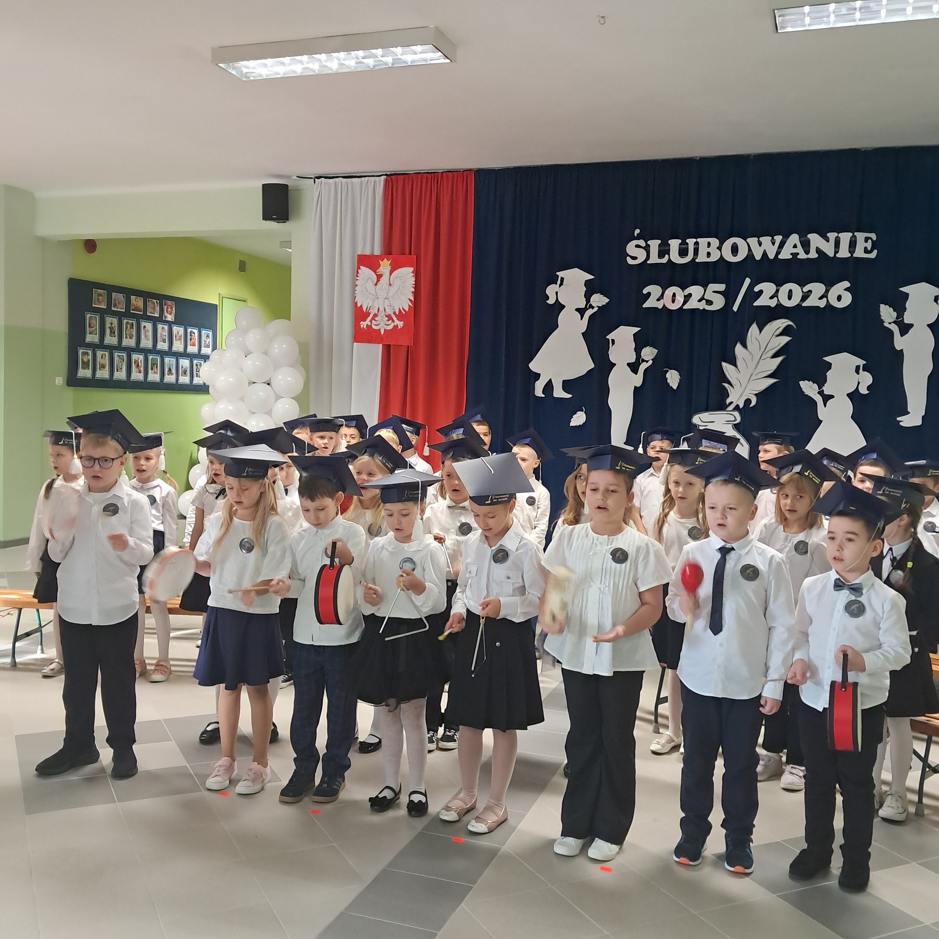 Dnia 22 października 2025 roku w naszej szkole odbyła się uroczystość ślubowania i pasowania uczniów klas pierwszych. Pierwszoklasiści w obecności Dyrektora Szkoły Pana Andrzeja Polaszka, zaproszonych gości i rodziców przedstawili program artystyczny, w którym zaprezentowali swoje umiejętności recytatorskie i wokalne.