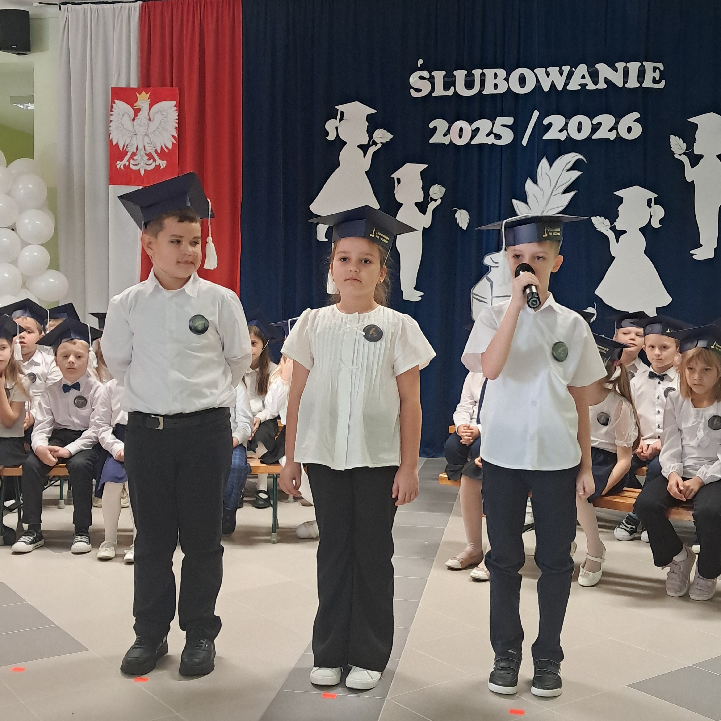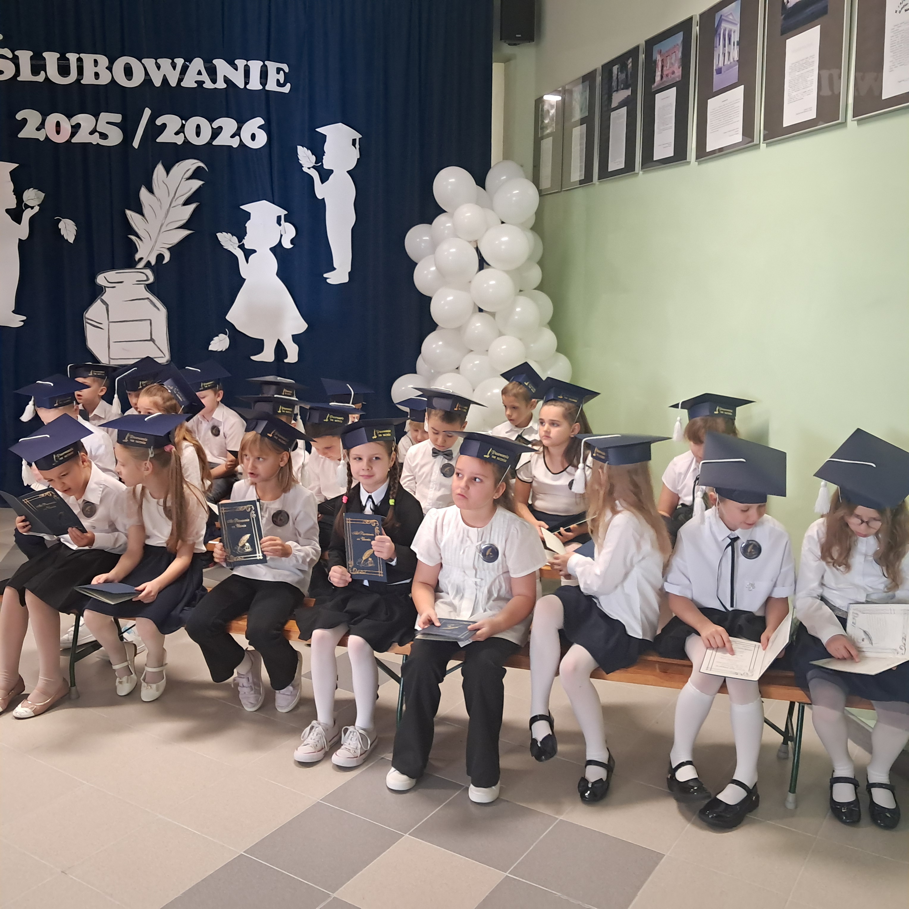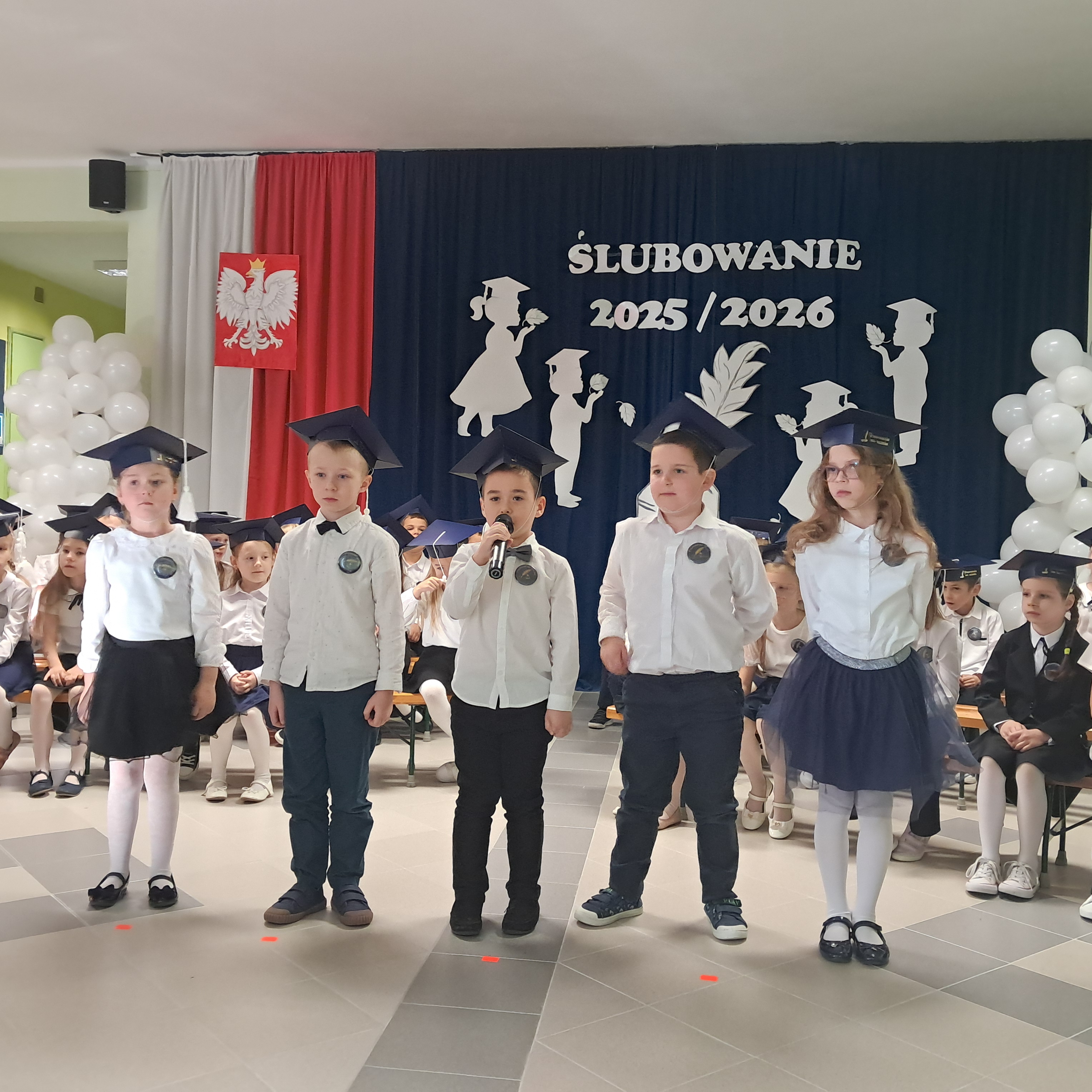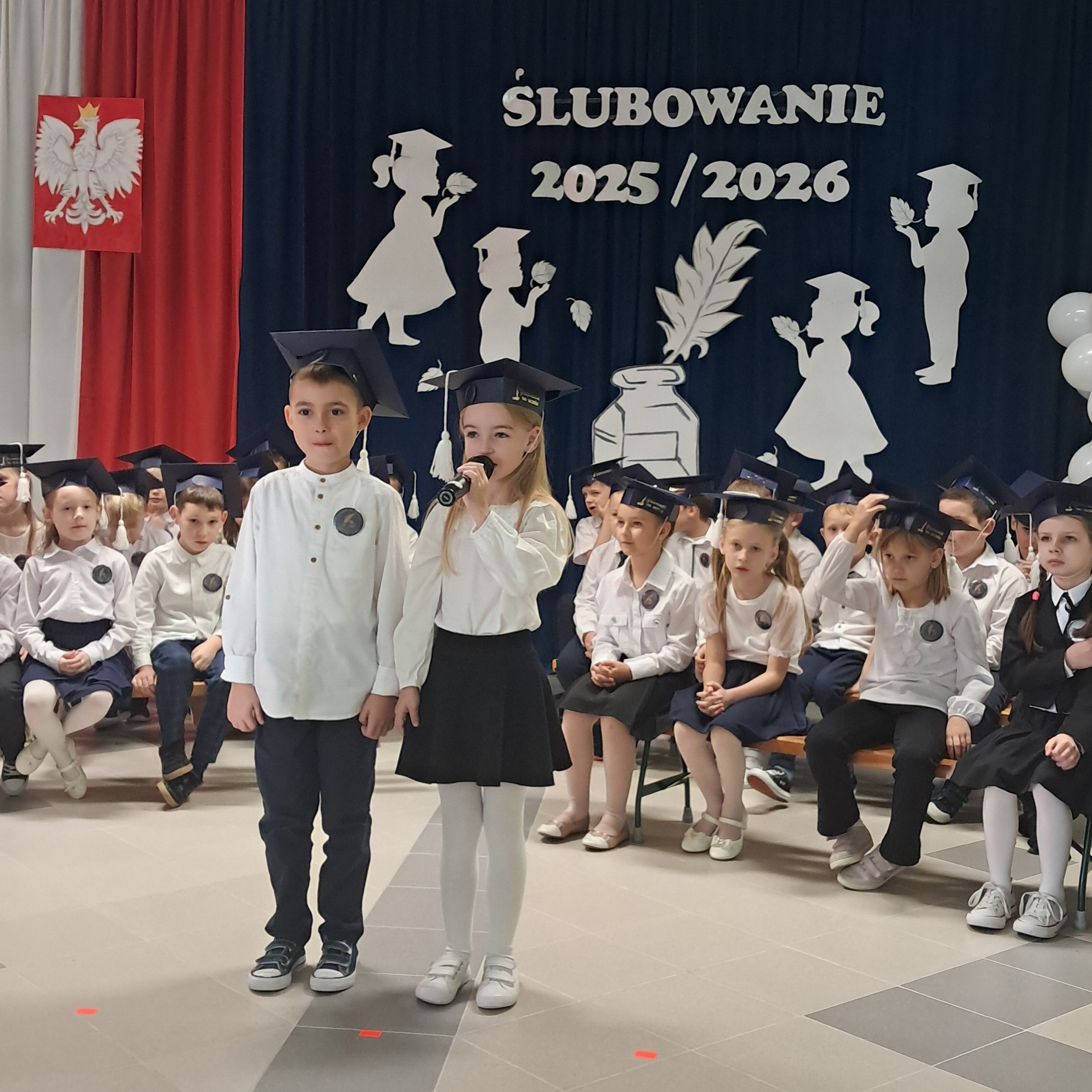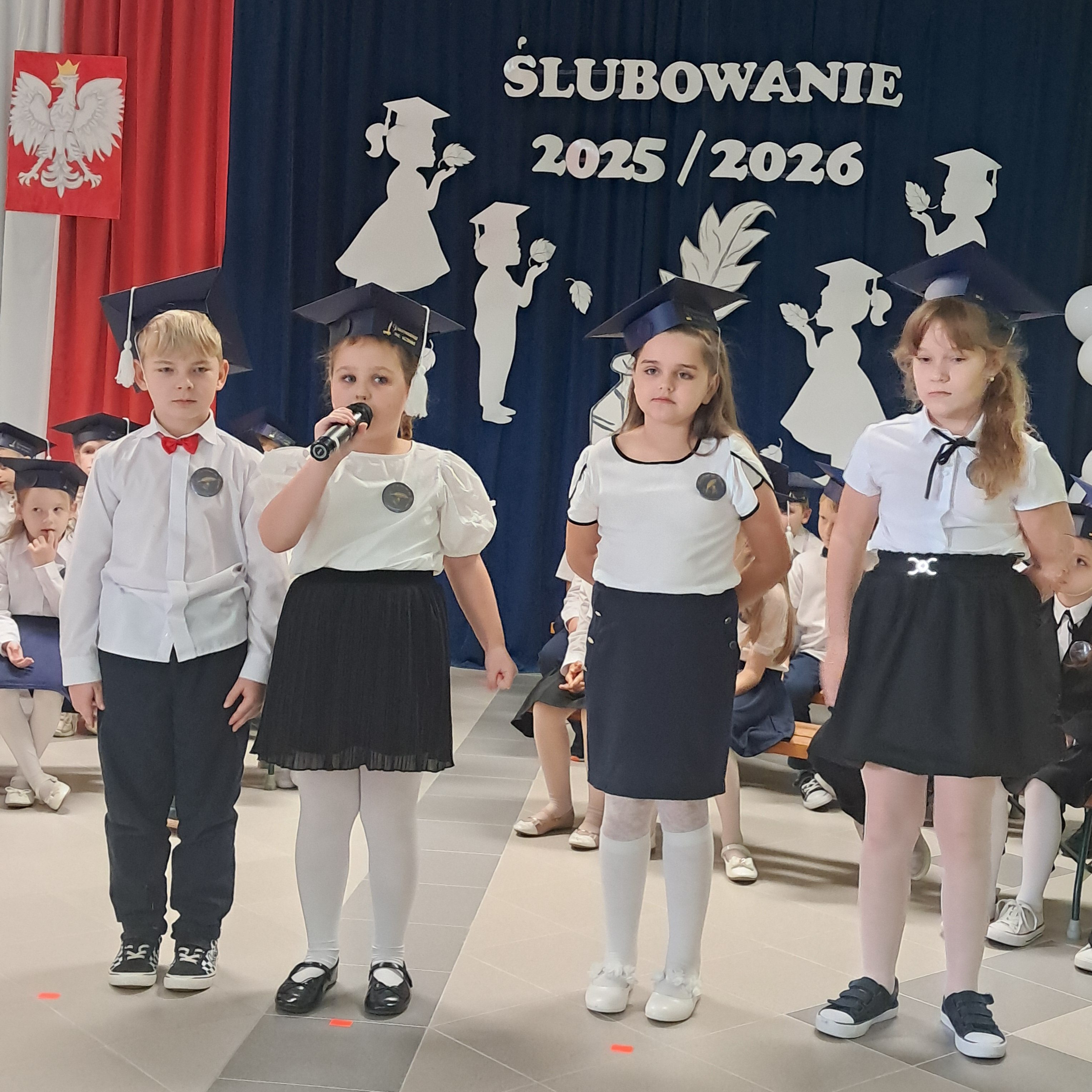 Dnia 22 października 2025 roku w naszej szkole odbyła się uroczystość ślubowania i pasowania uczniów klas pierwszych. Pierwszoklasiści w obecności Dyrektora Szkoły Pana Andrzeja Polaszka, zaproszonych gości i rodziców przedstawili program artystyczny, w którym zaprezentowali swoje umiejętności recytatorskie i wokalne.