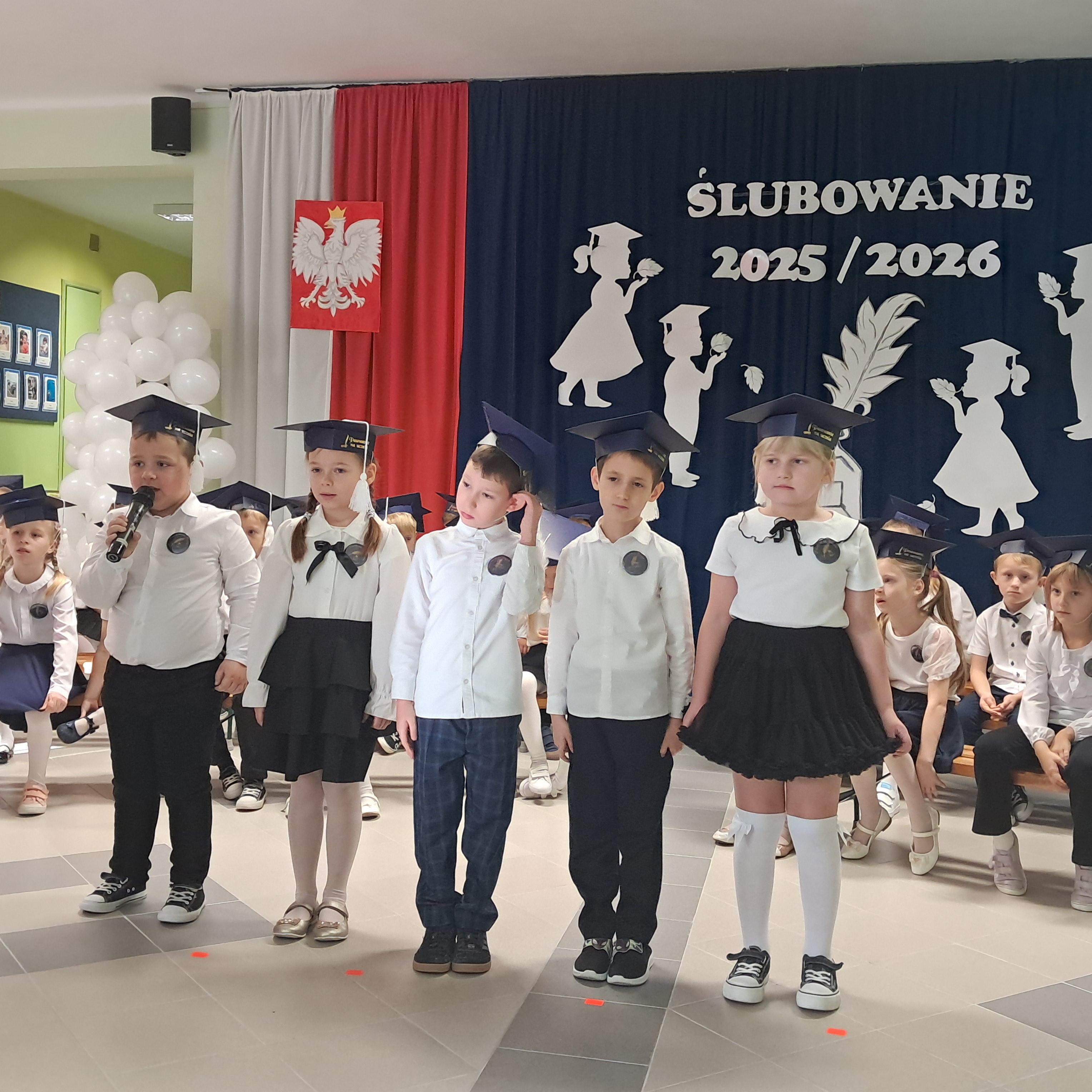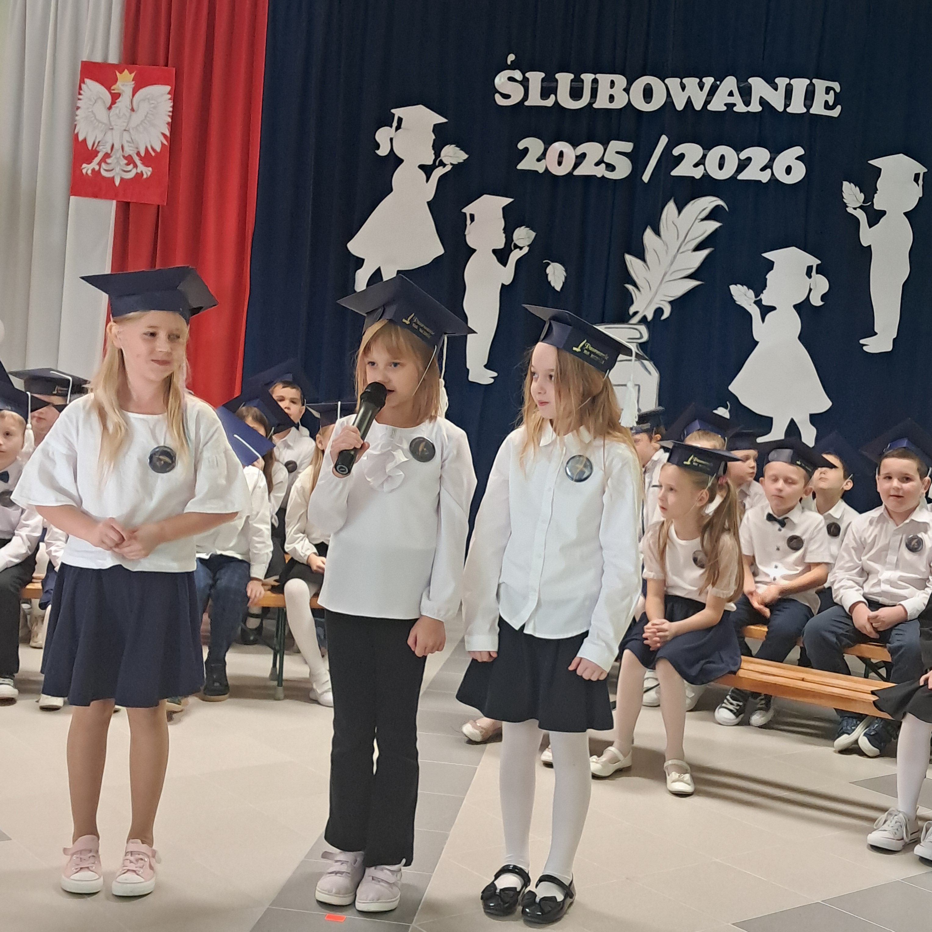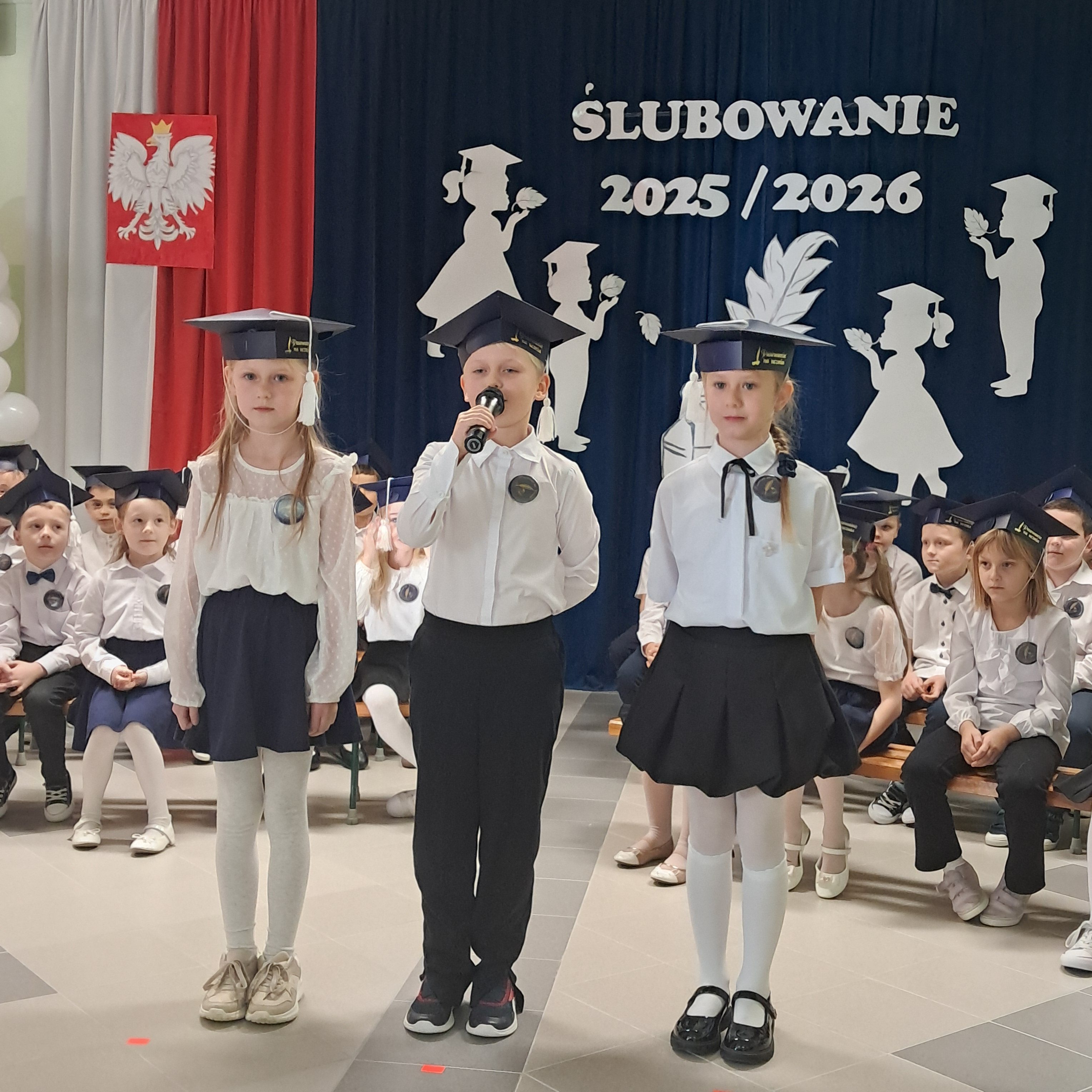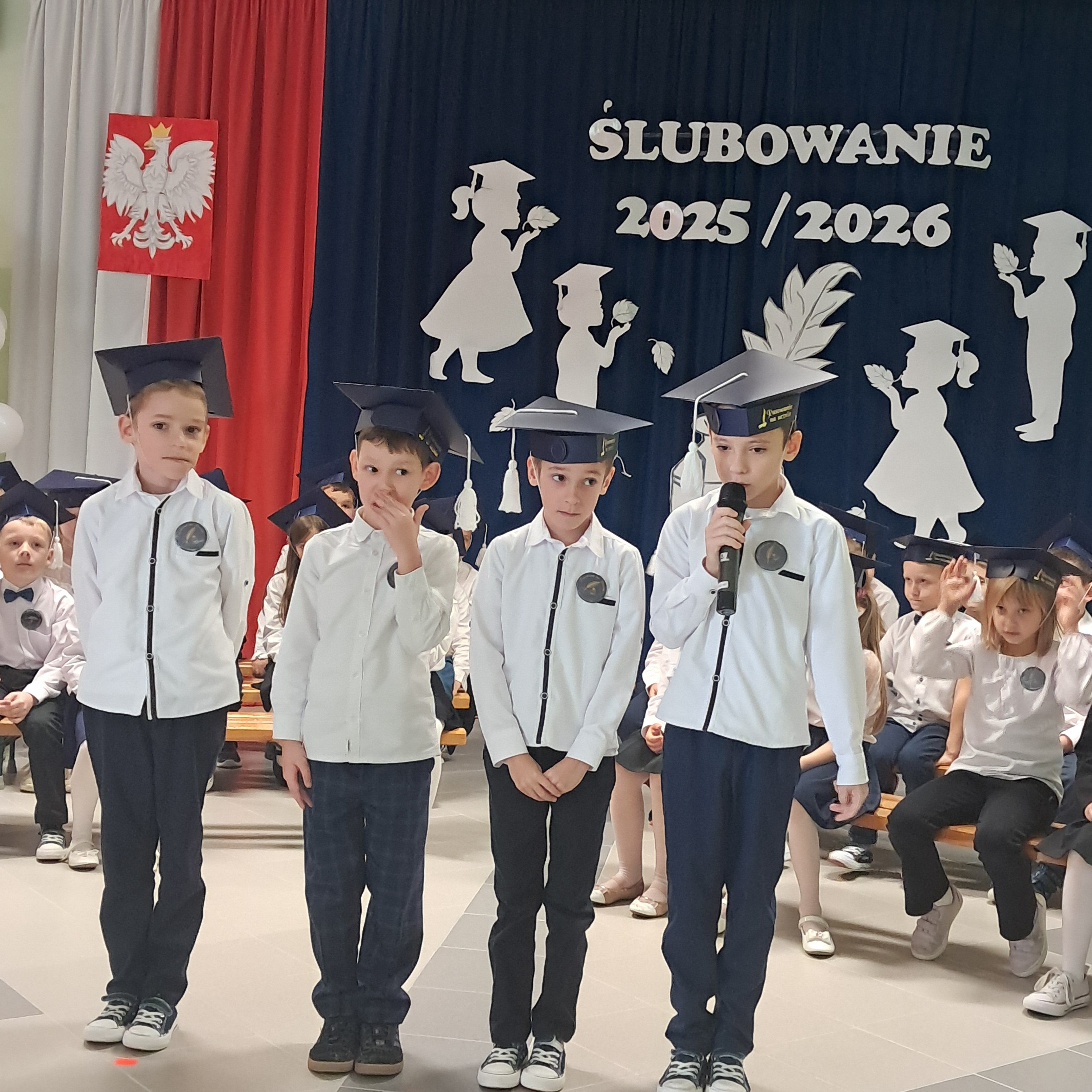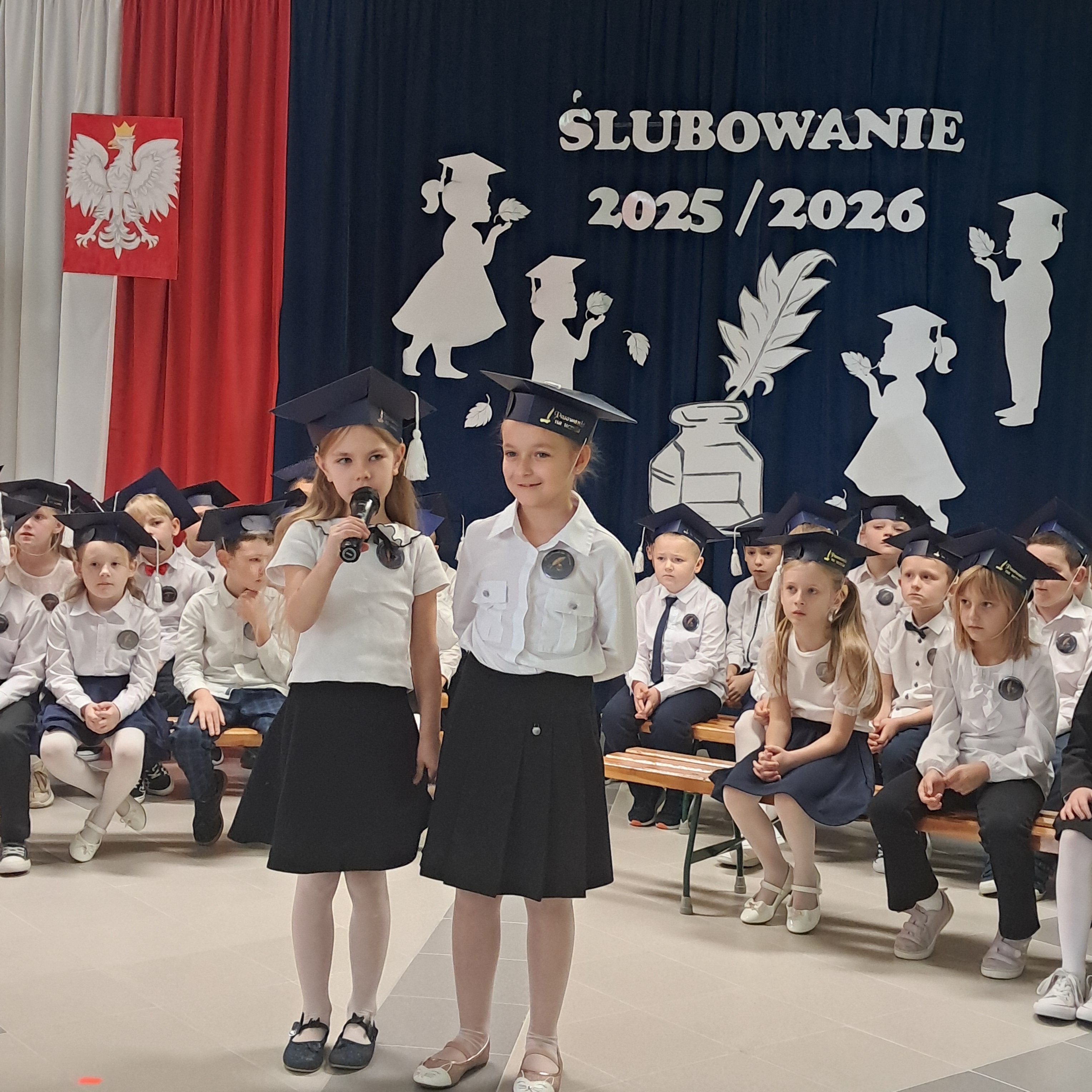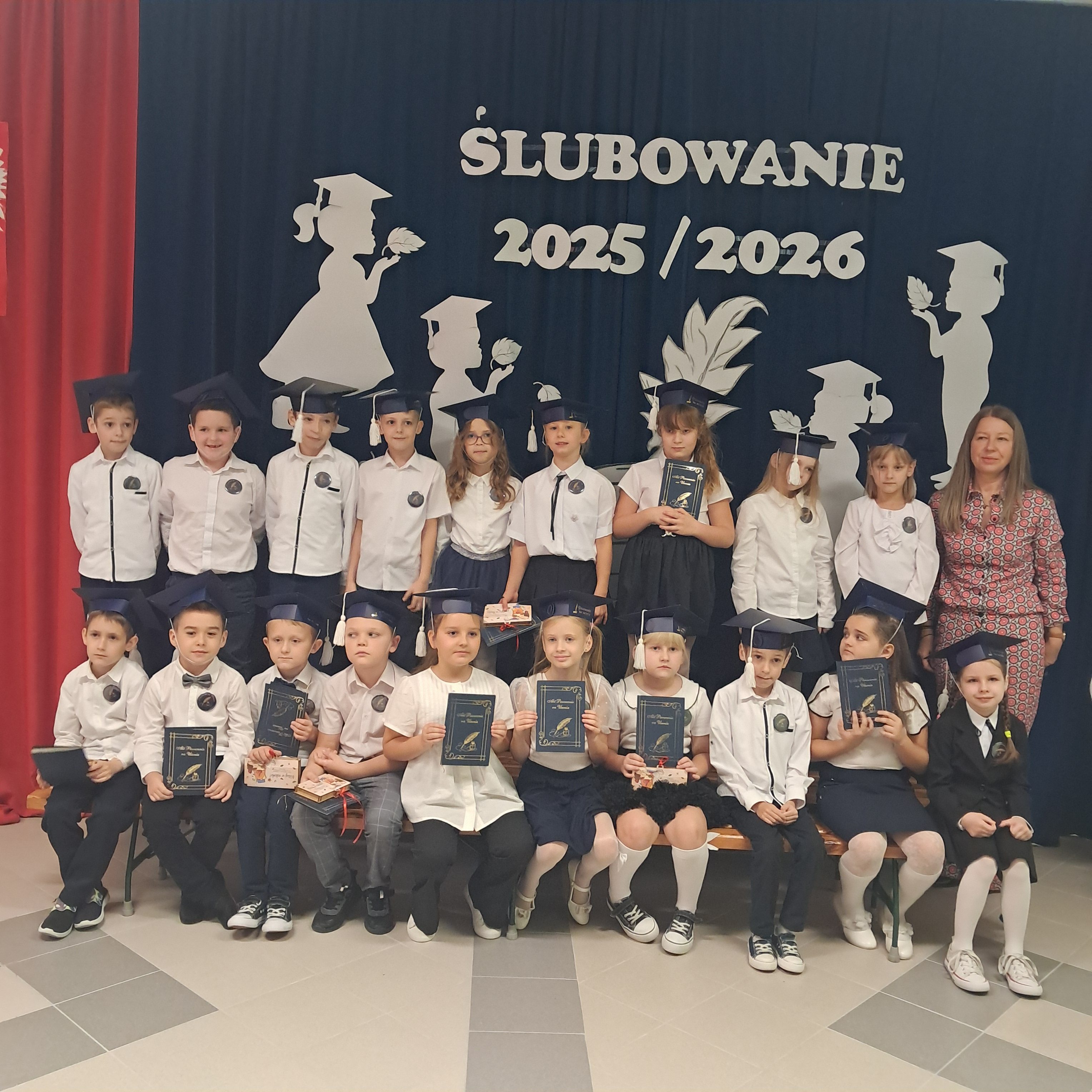 Dnia 22 października 2025 roku w naszej szkole odbyła się uroczystość ślubowania i pasowania uczniów klas pierwszych. Pierwszoklasiści w obecności Dyrektora Szkoły Pana Andrzeja Polaszka, zaproszonych gości i rodziców przedstawili program artystyczny, w którym zaprezentowali swoje umiejętności recytatorskie i wokalne.