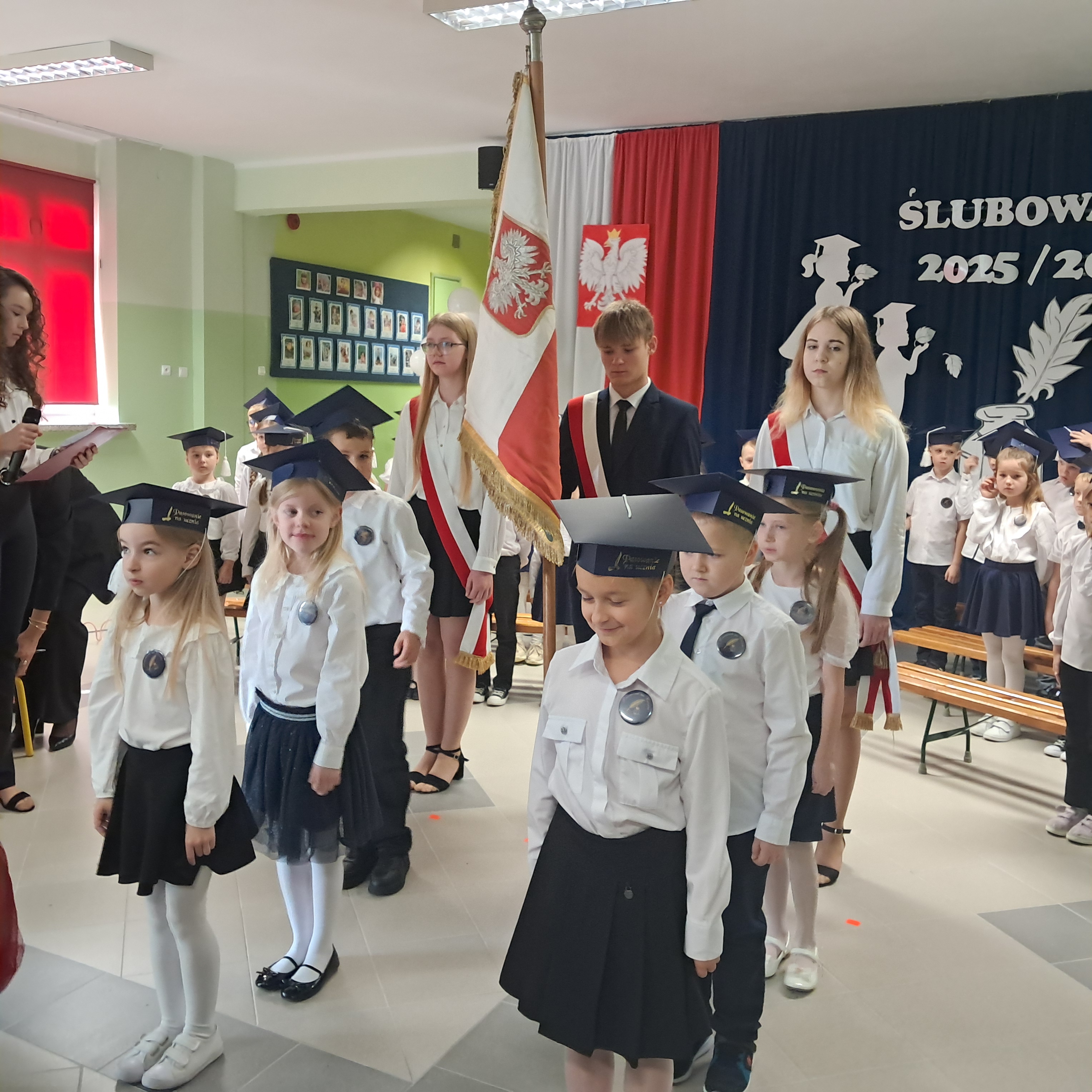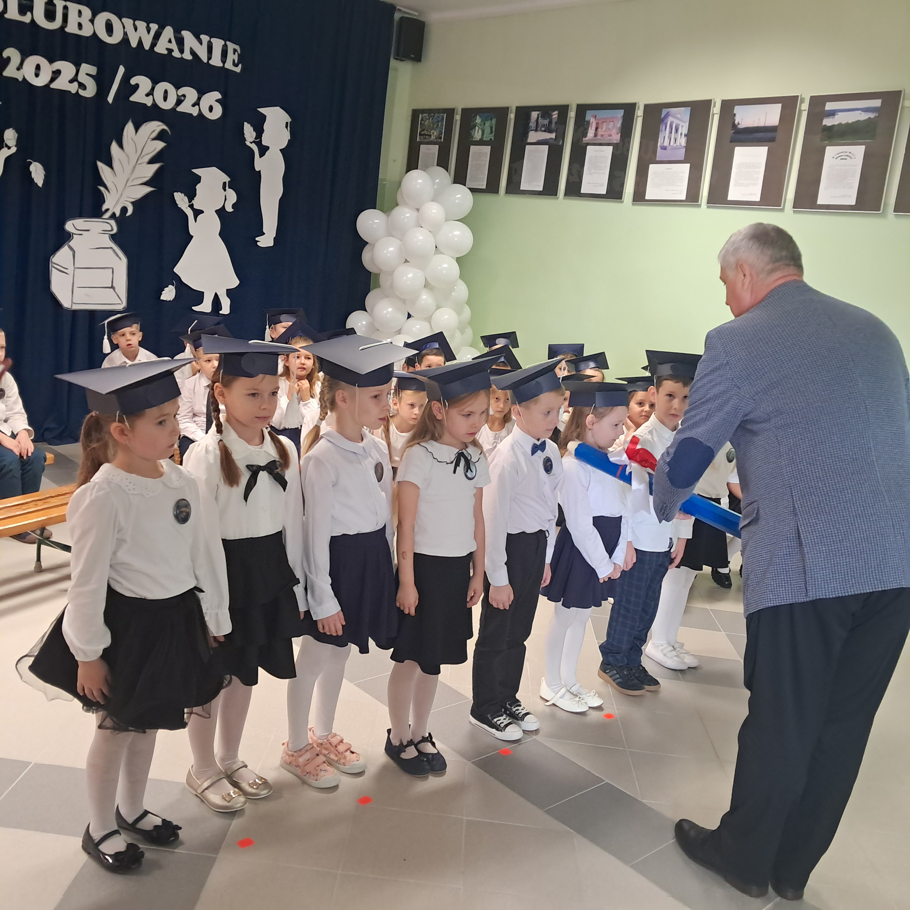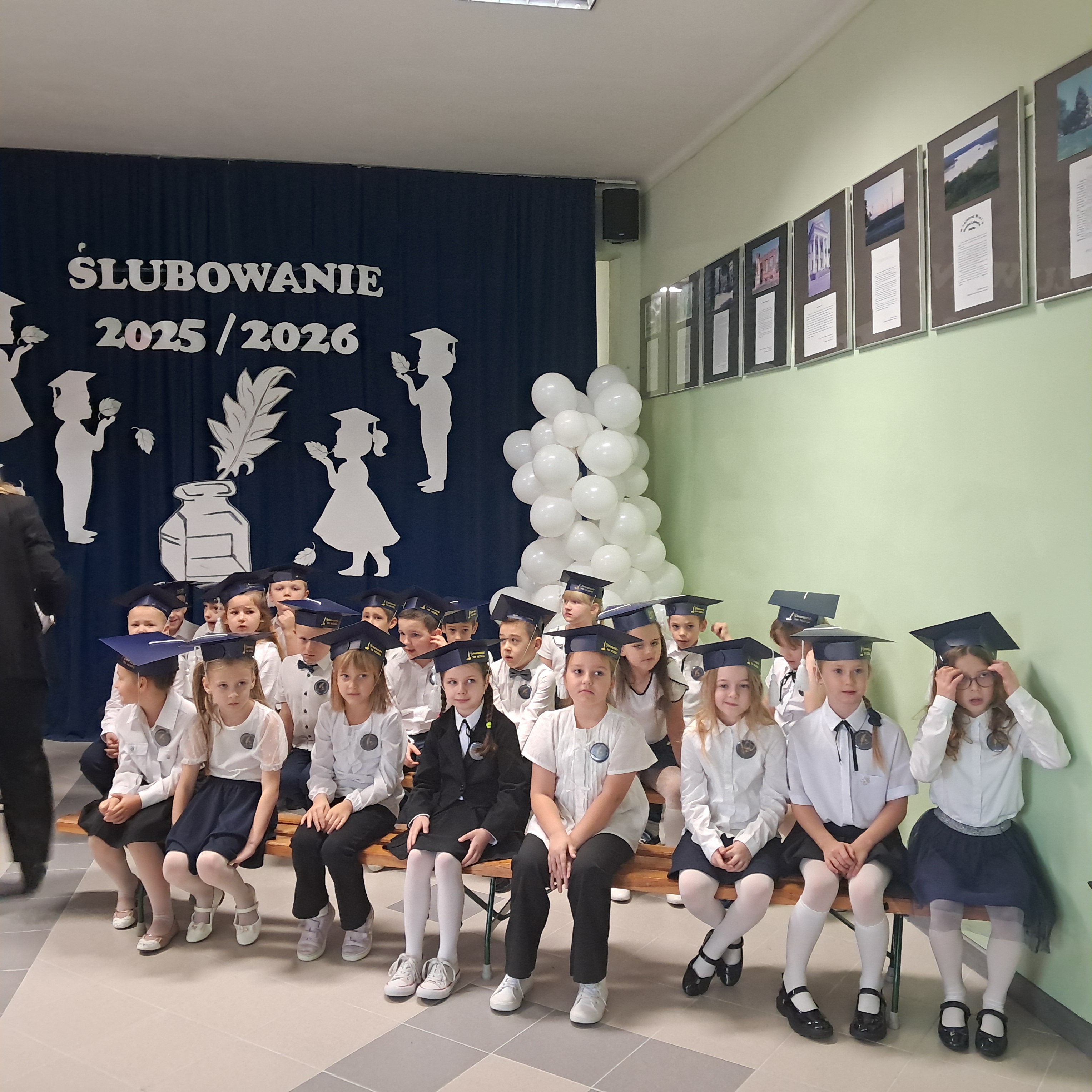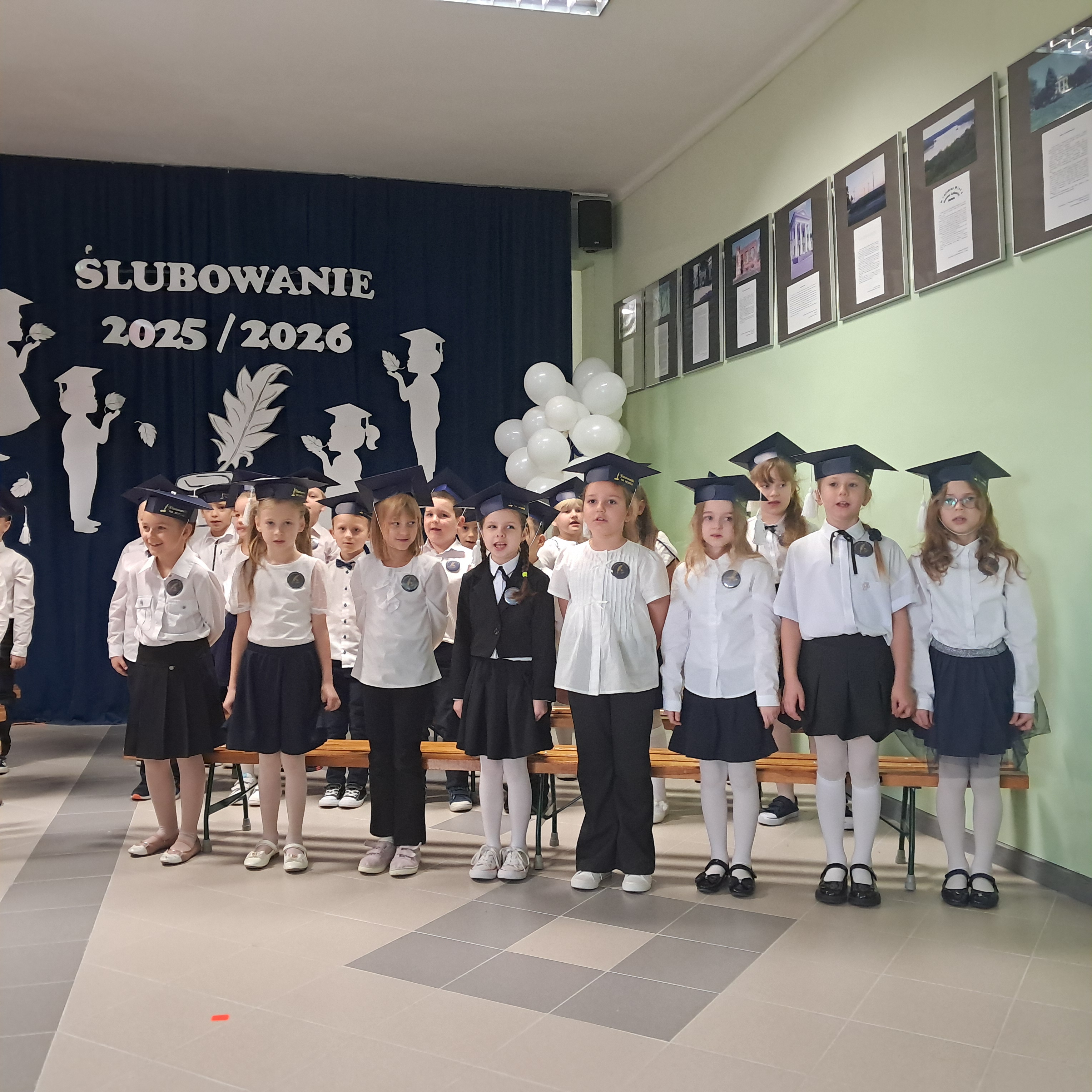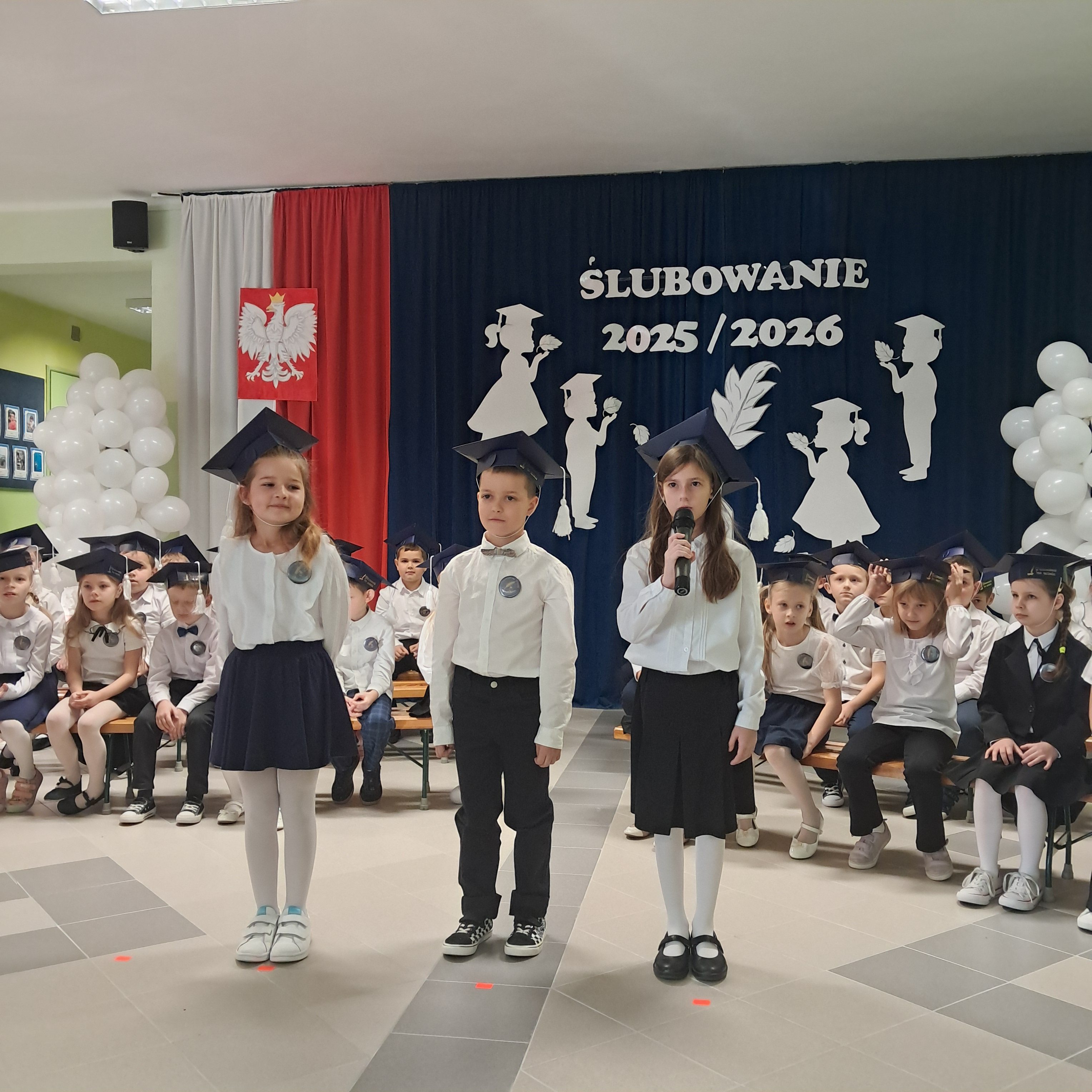Dnia 22 października 2025 roku w naszej szkole odbyła się uroczystość ślubowania i pasowania uczniów klas pierwszych. Pierwszoklasiści w obecności Dyrektora Szkoły Pana Andrzeja Polaszka, zaproszonych gości i rodziców przedstawili program artystyczny, w którym zaprezentowali swoje umiejętności recytatorskie i wokalne.