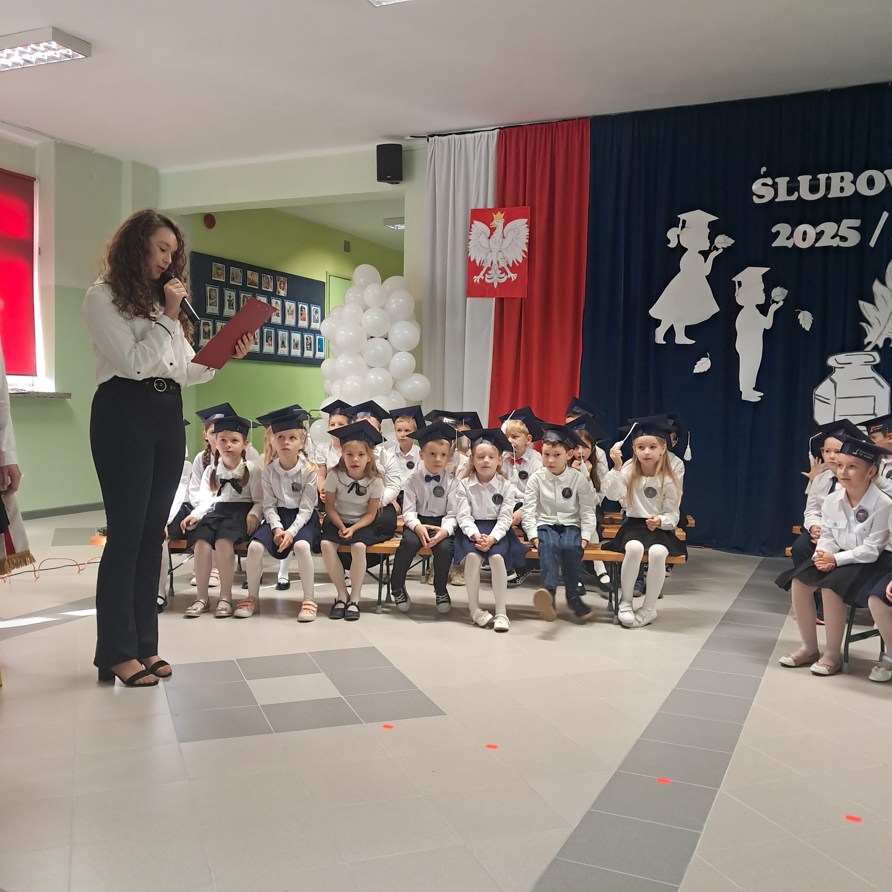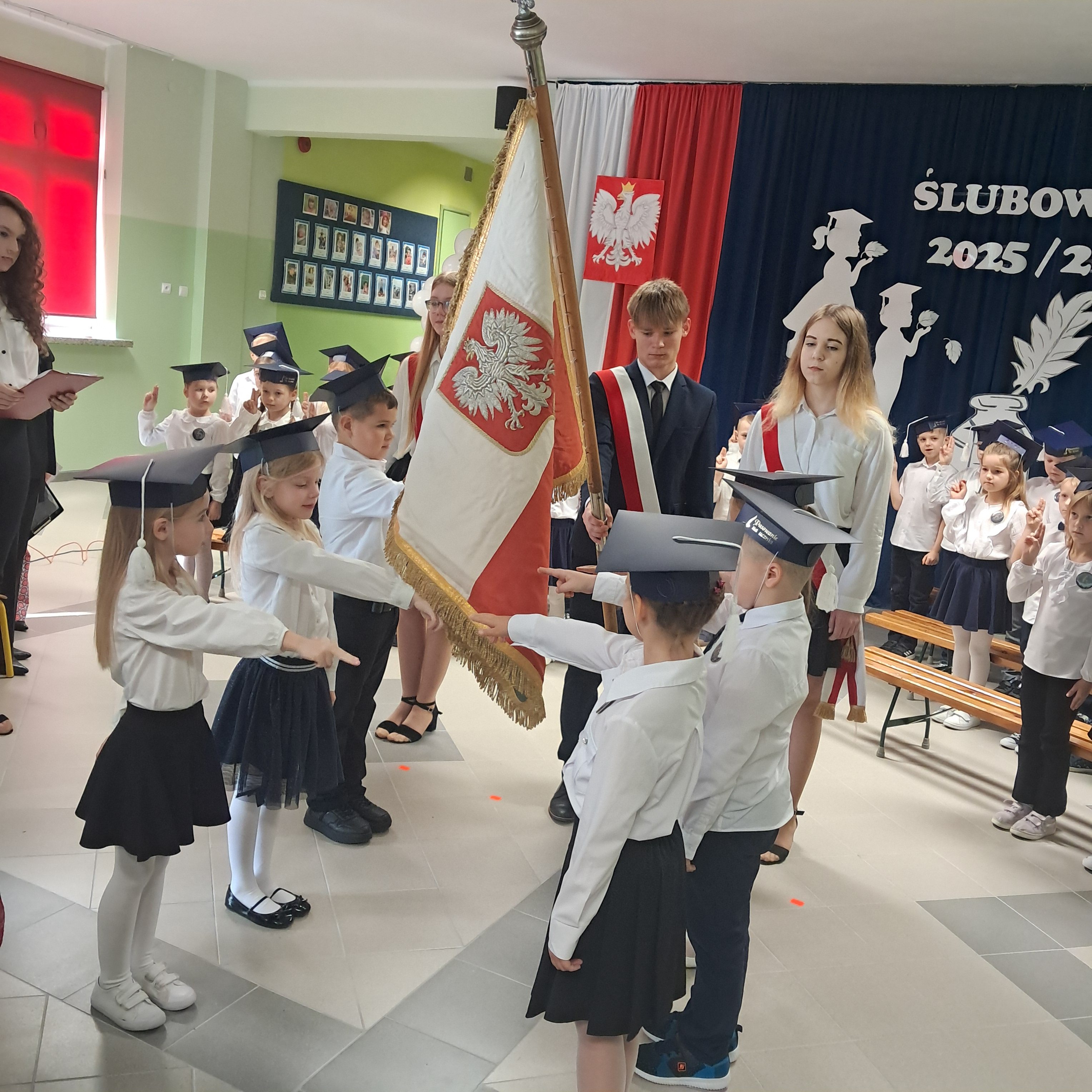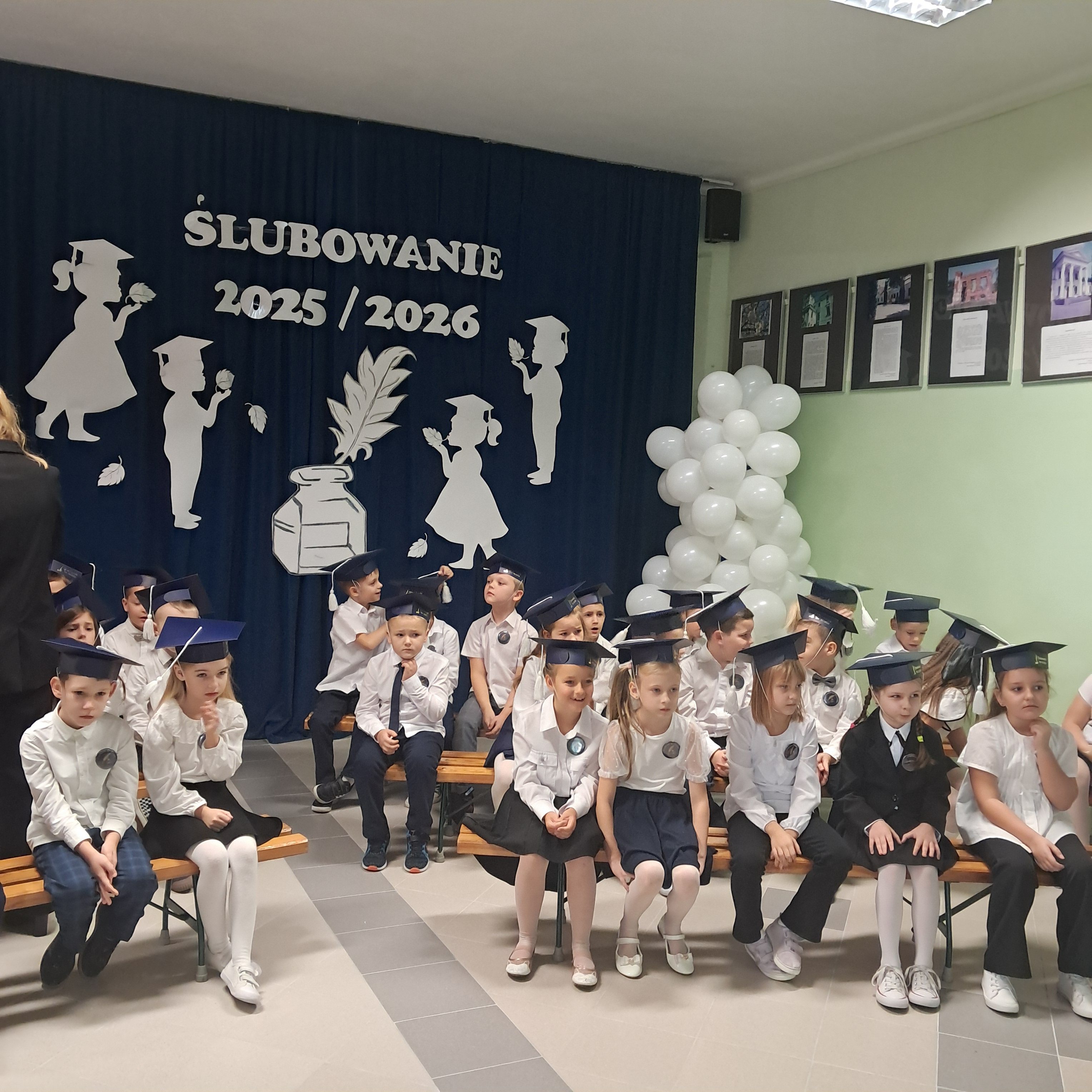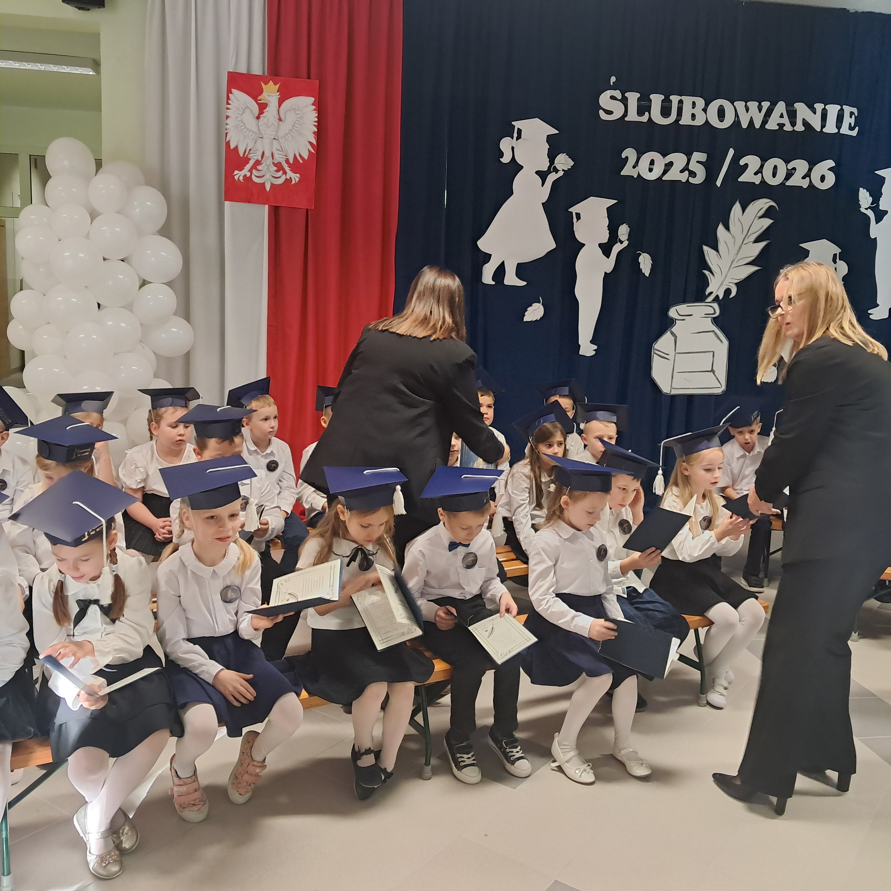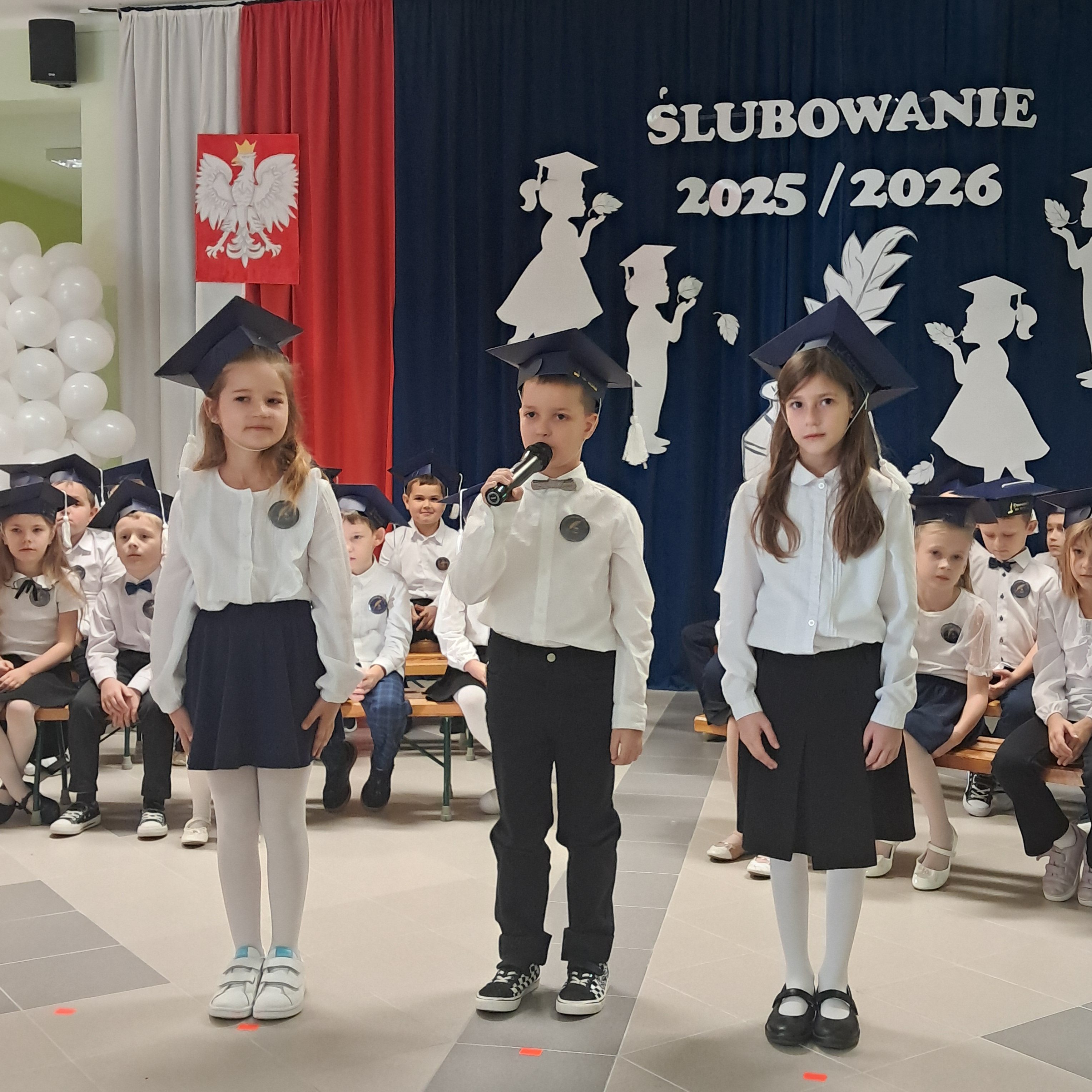 Dnia 22 października 2025 roku w naszej szkole odbyła się uroczystość ślubowania i pasowania uczniów klas pierwszych. Pierwszoklasiści w obecności Dyrektora Szkoły Pana Andrzeja Polaszka, zaproszonych gości i rodziców przedstawili program artystyczny, w którym zaprezentowali swoje umiejętności recytatorskie i wokalne.