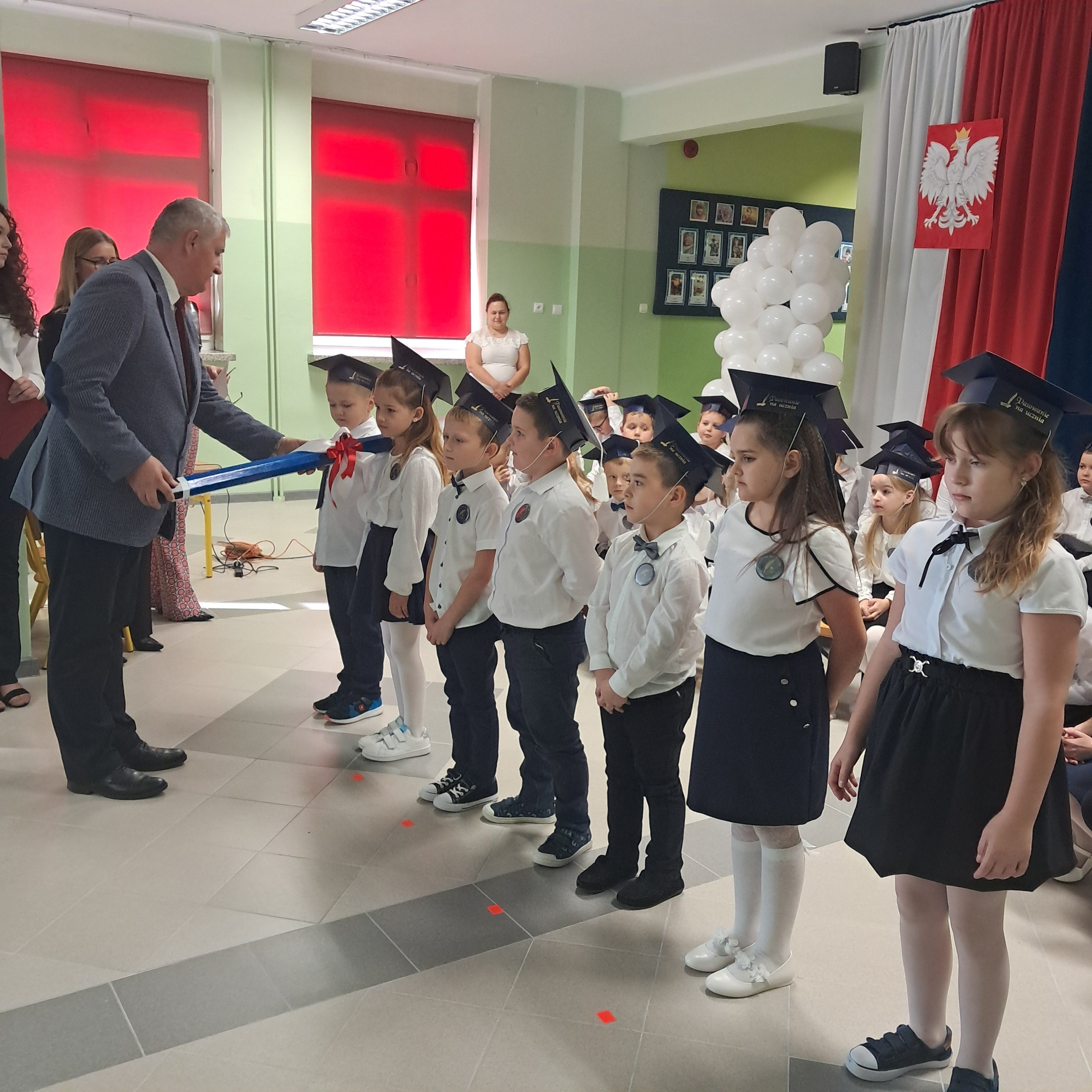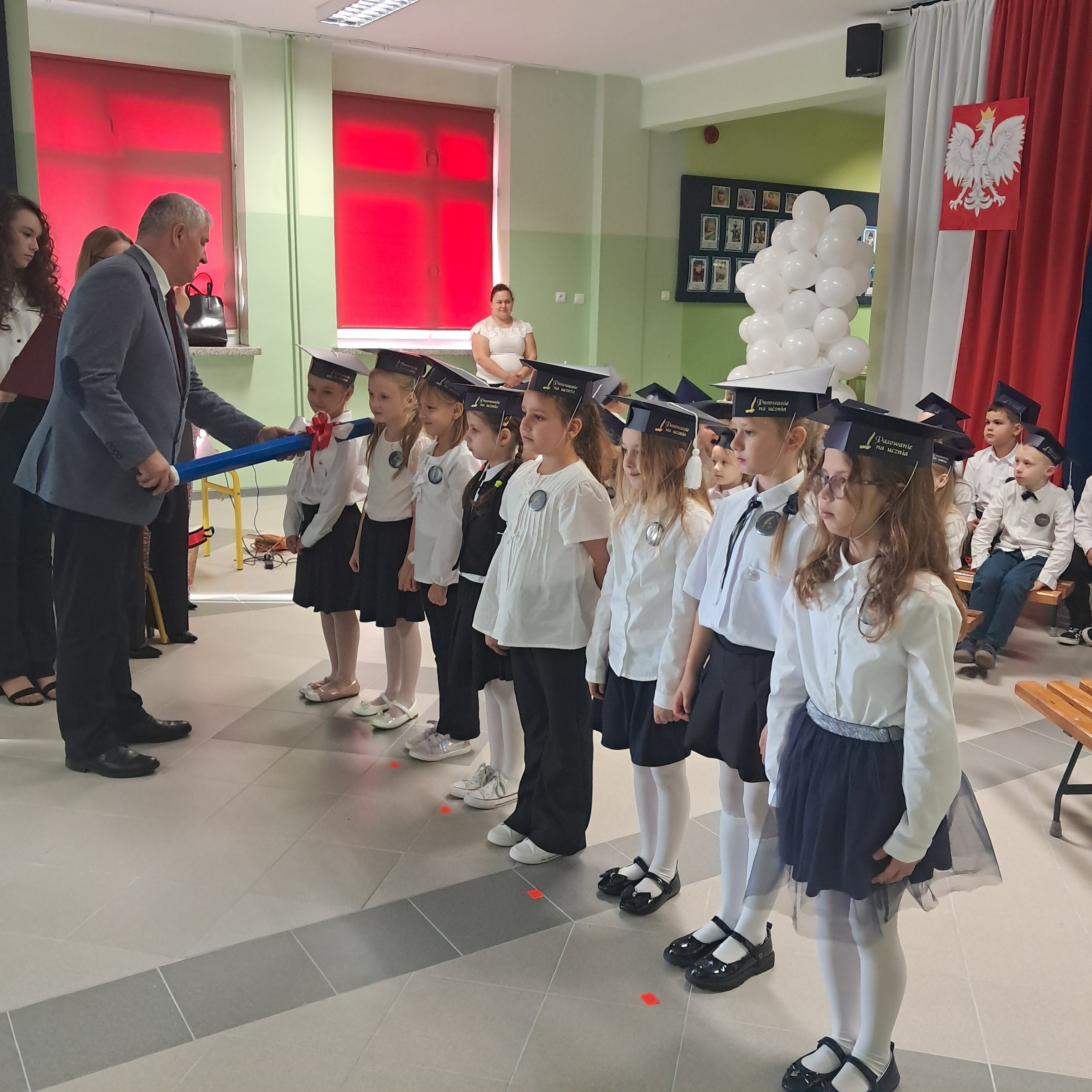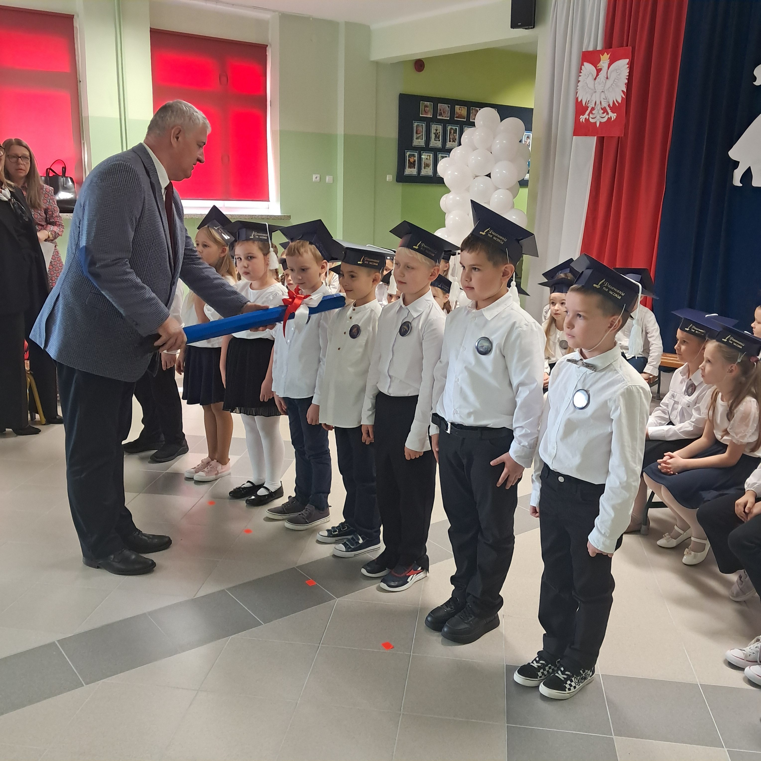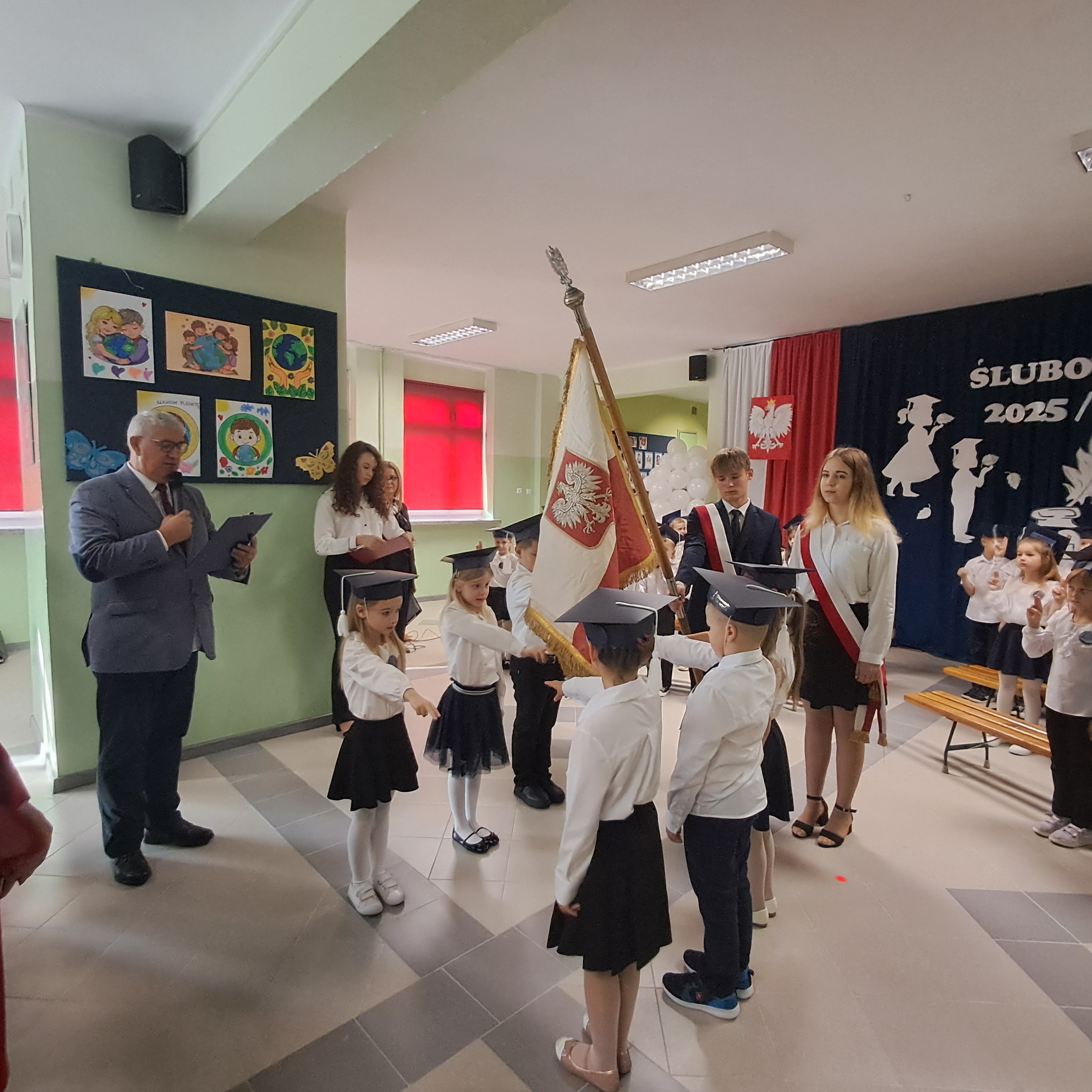 Najważniejszym momentem uroczystości było złożenie przez dzieci uroczystego ślubowania na sztandar szkoły i pasowania na ucznia przez pana dyrektora. W ten sposób pierwszoklasiści zostali oficjalnie włączeni do grona uczniów Szkoły Podstawowej im. mjr. H. Sucharskiego w Osięcinach.