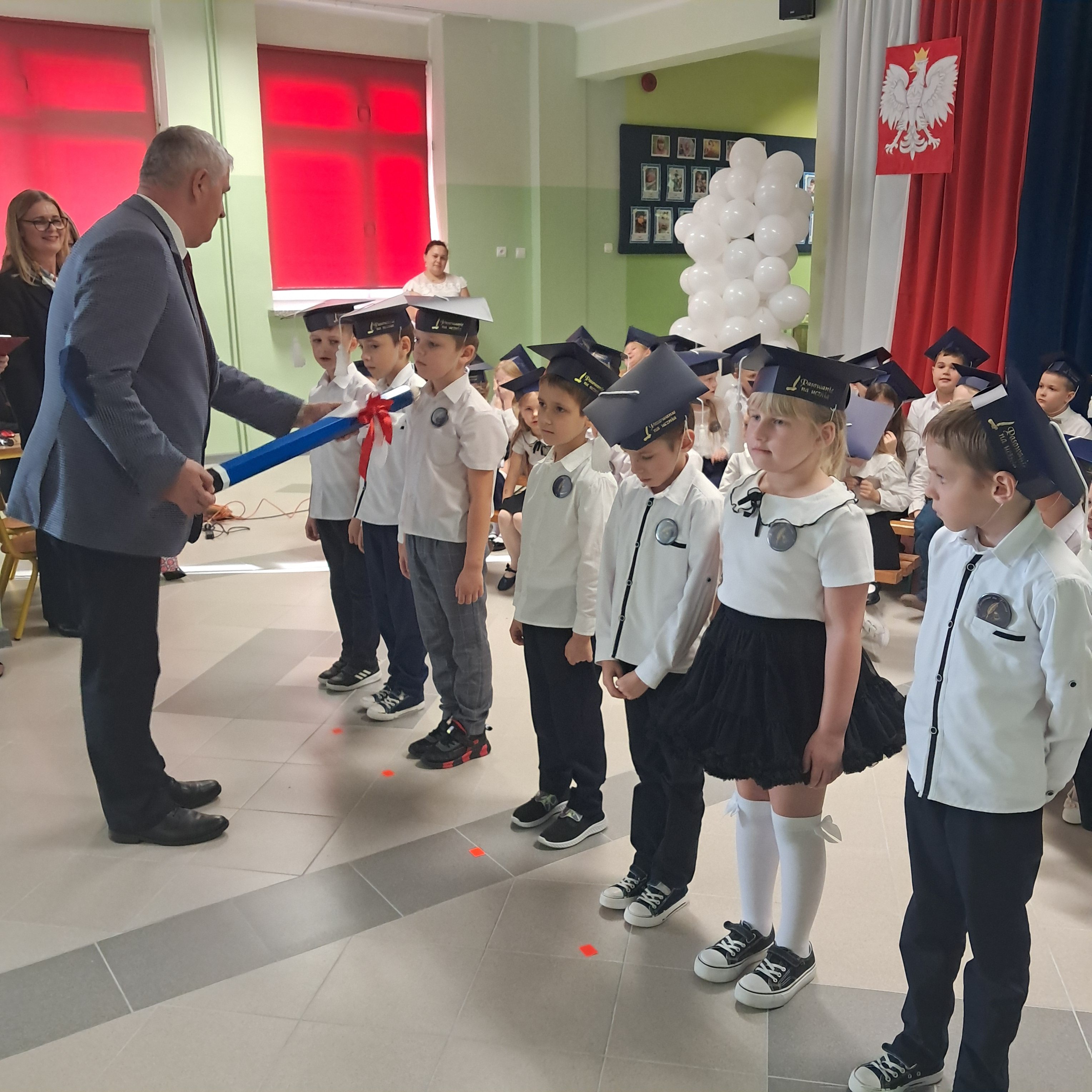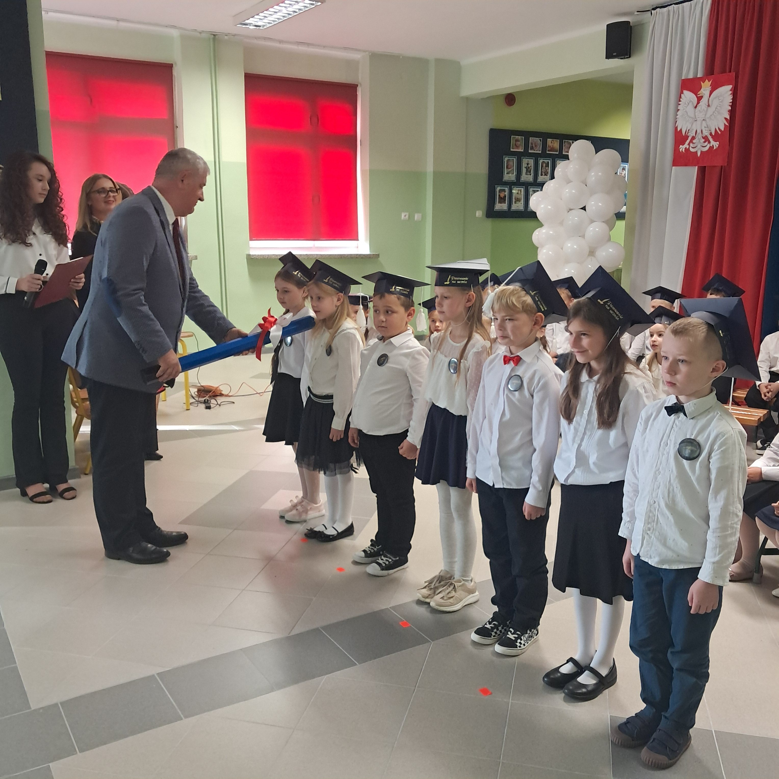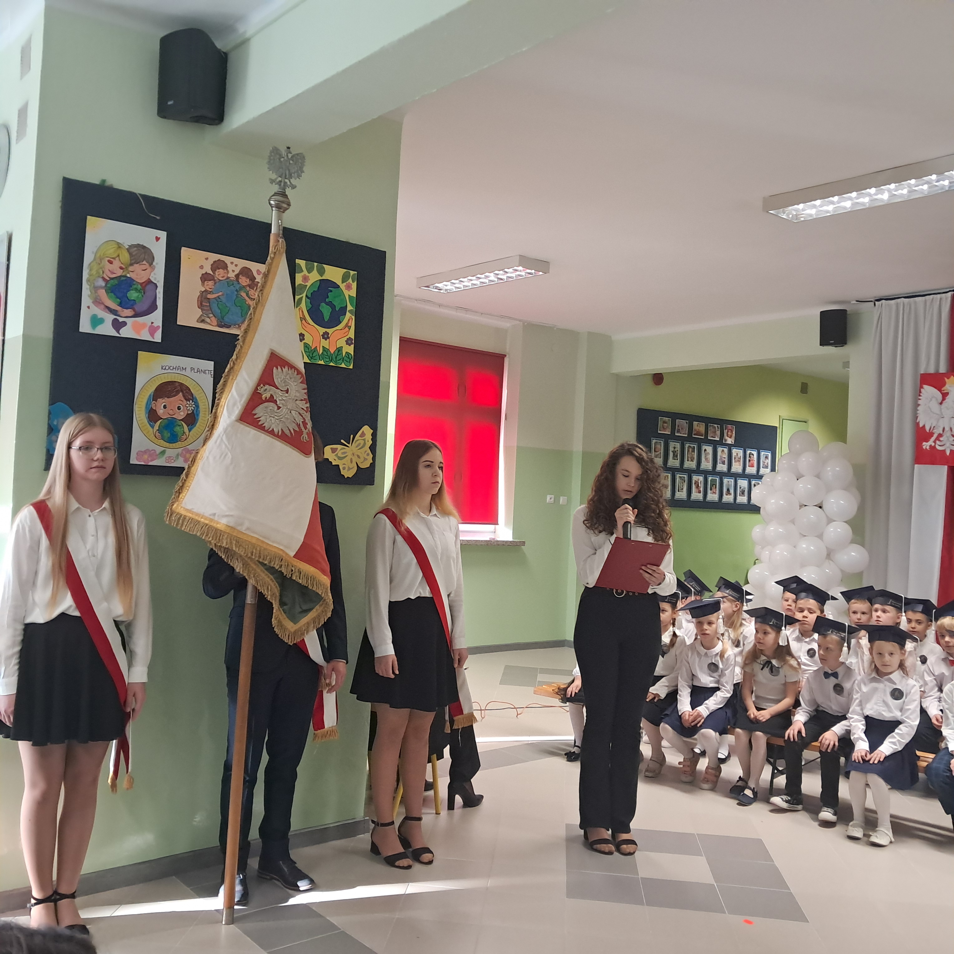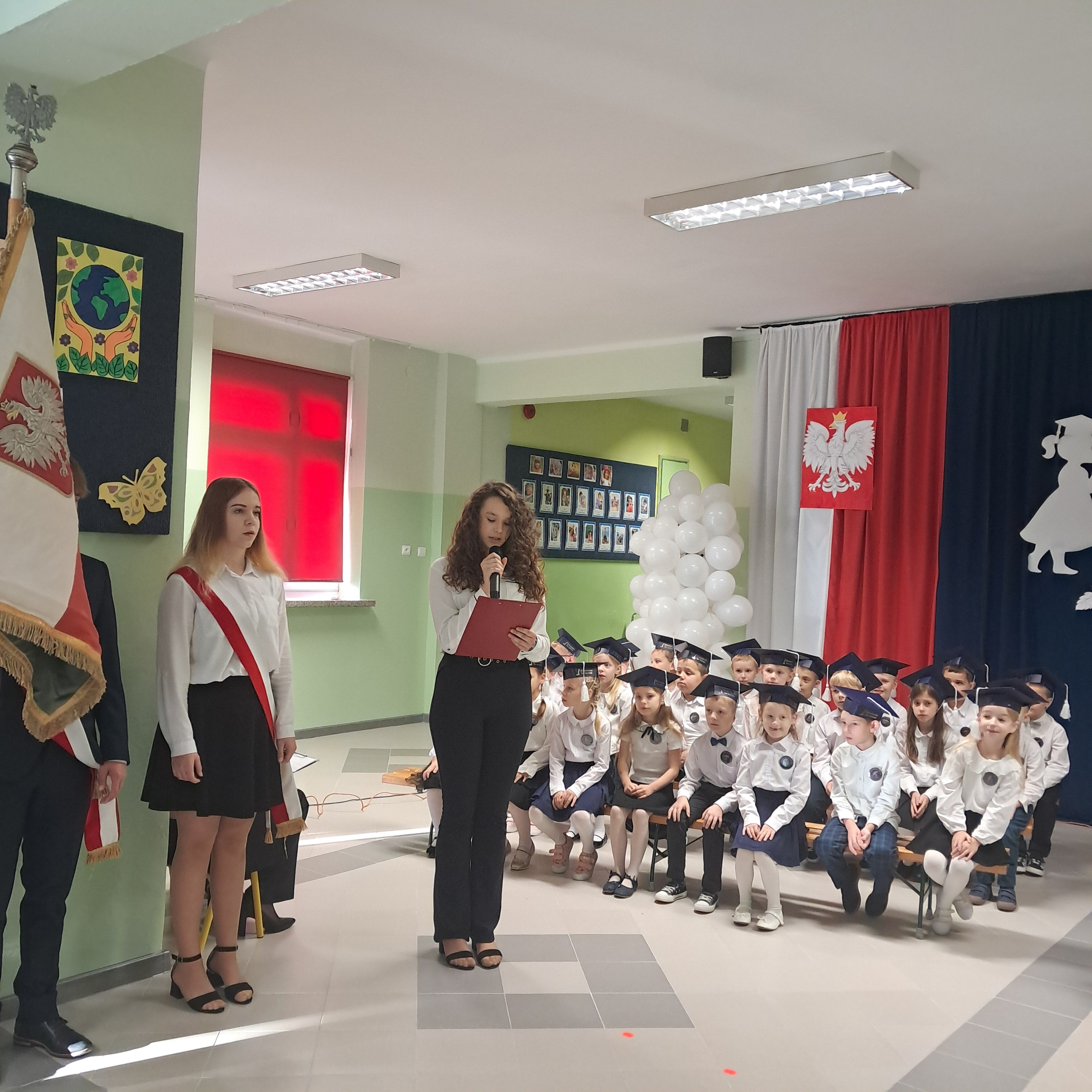 Najważniejszym momentem uroczystości było złożenie przez dzieci uroczystego ślubowania na sztandar szkoły i pasowania na ucznia przez pana dyrektora. W ten sposób pierwszoklasiści zostali oficjalnie włączeni do grona uczniów Szkoły Podstawowej im. mjr. H. Sucharskiego w Osięcinach.