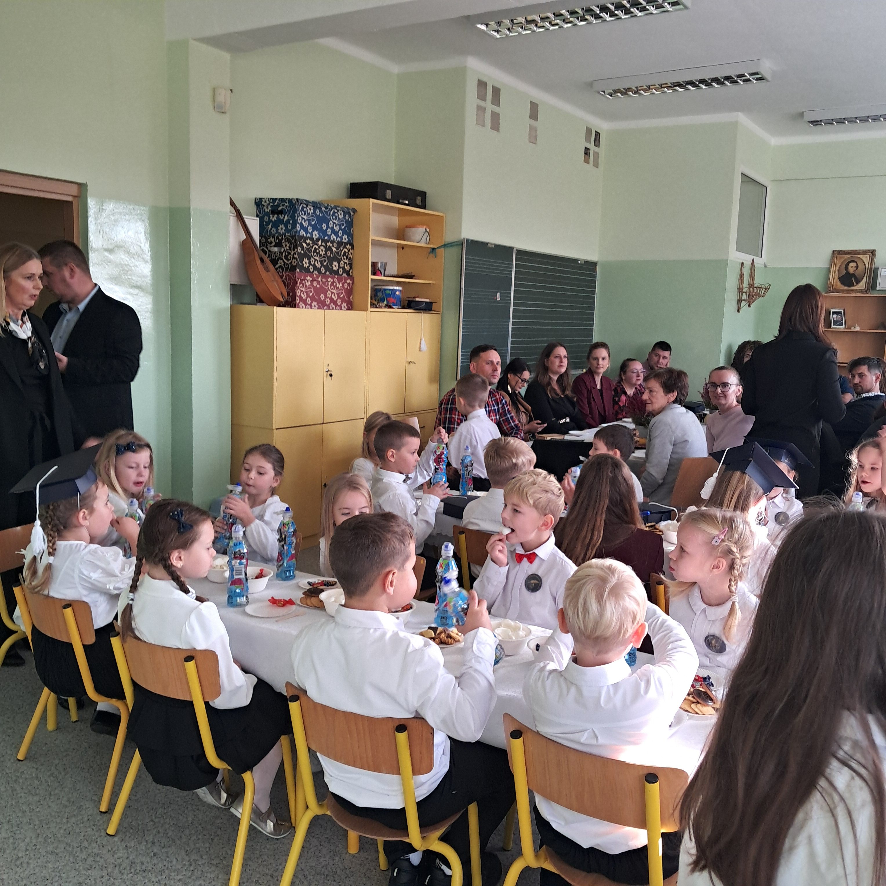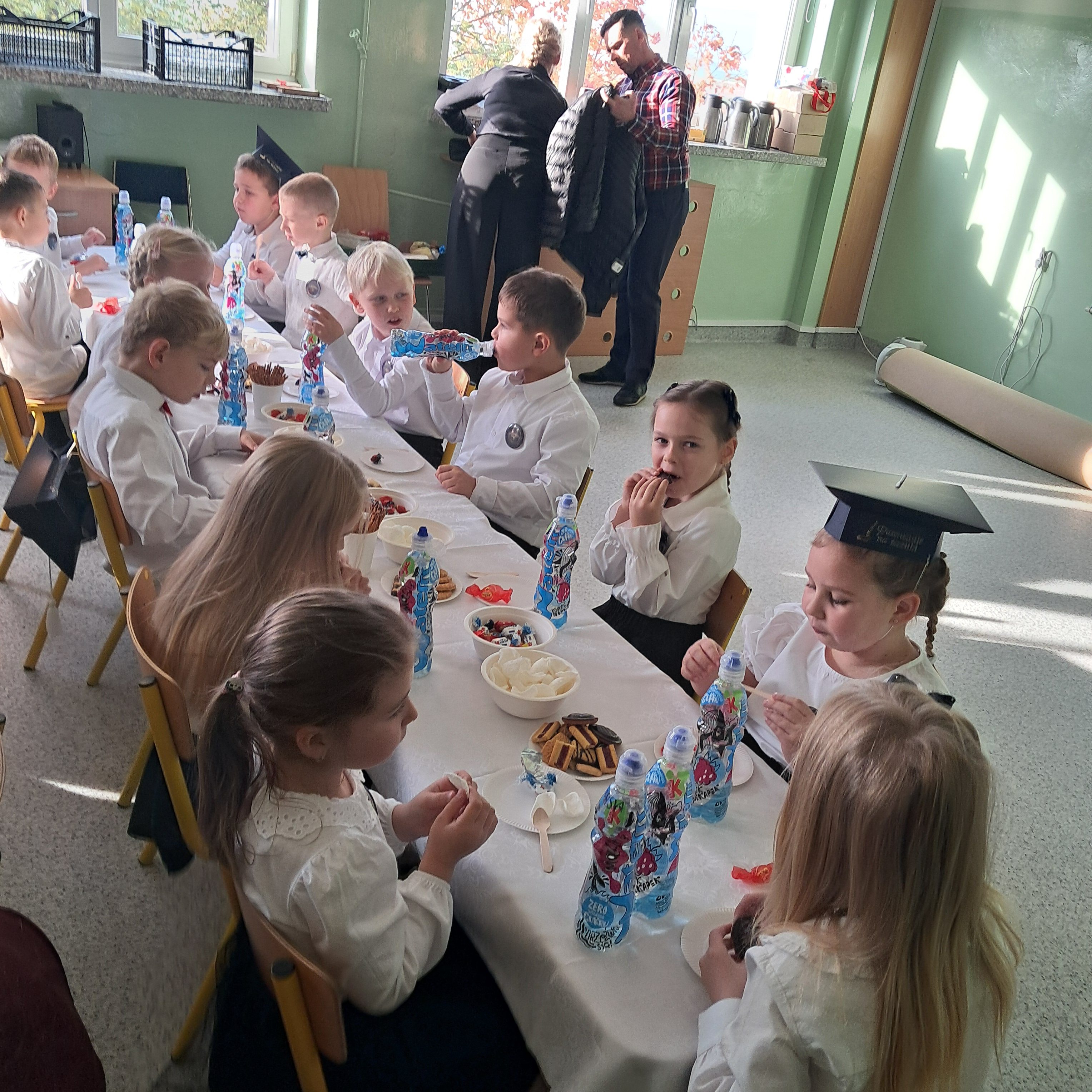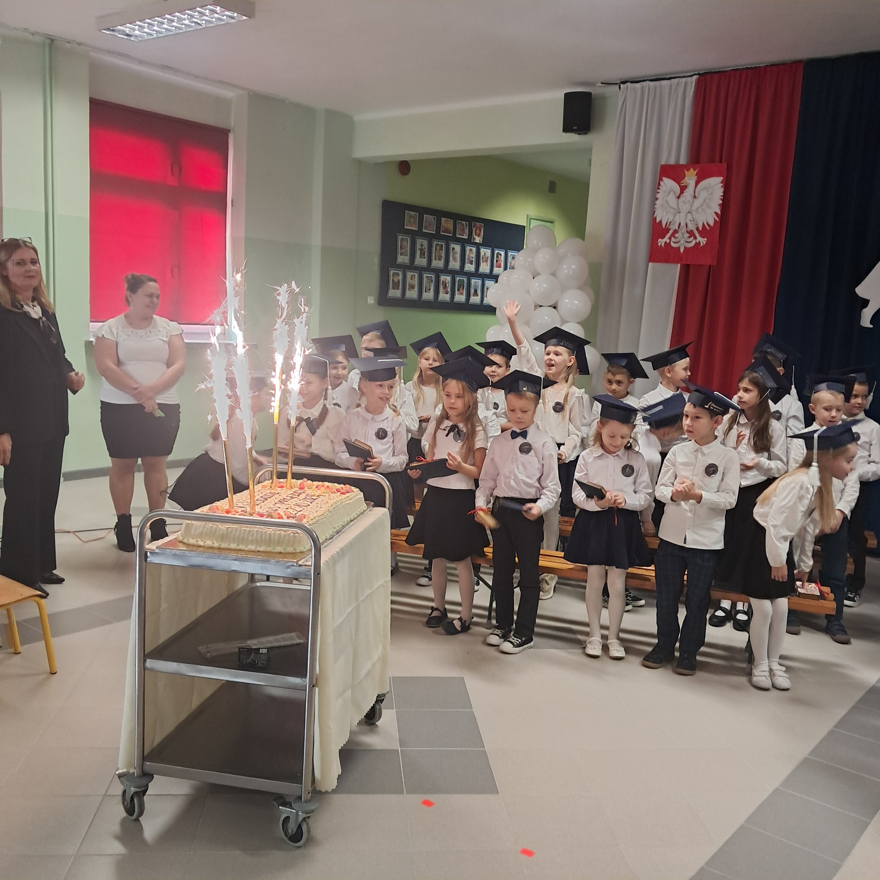 Uczniowie otrzymali pamiątkowe dyplomy od wychowawców oraz upominki i wspaniały tort od Rady Rodziców. To było pierwsze, najważniejsze wydarzenie zarówno dla najmłodszych uczniów naszej szkoły, a także ich rodziców i wychowawców.
