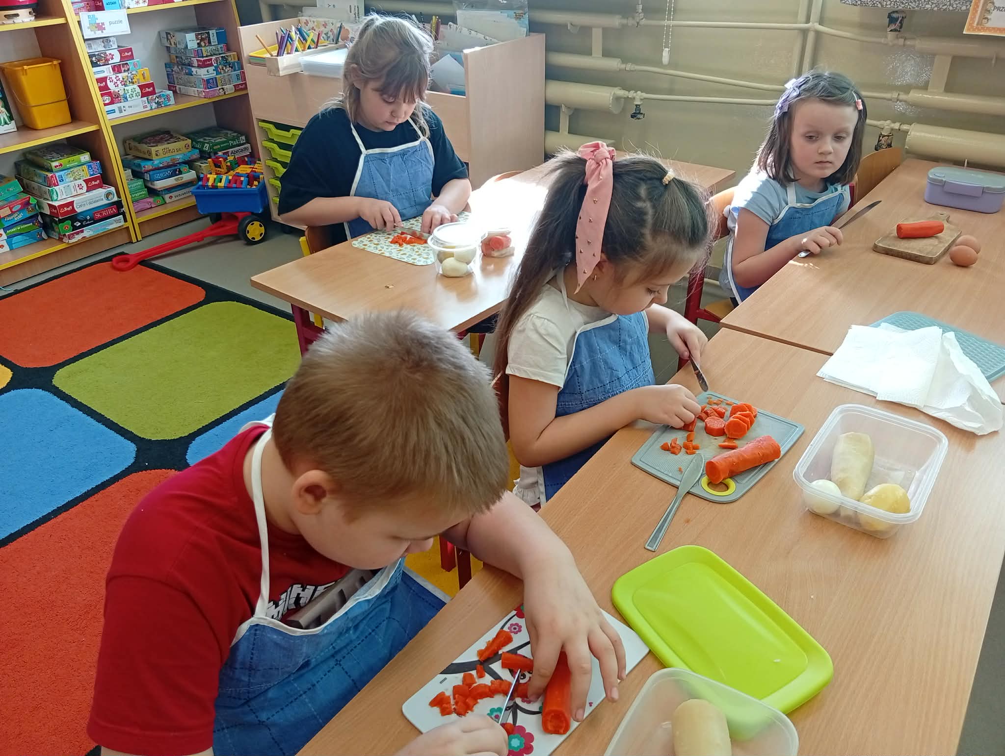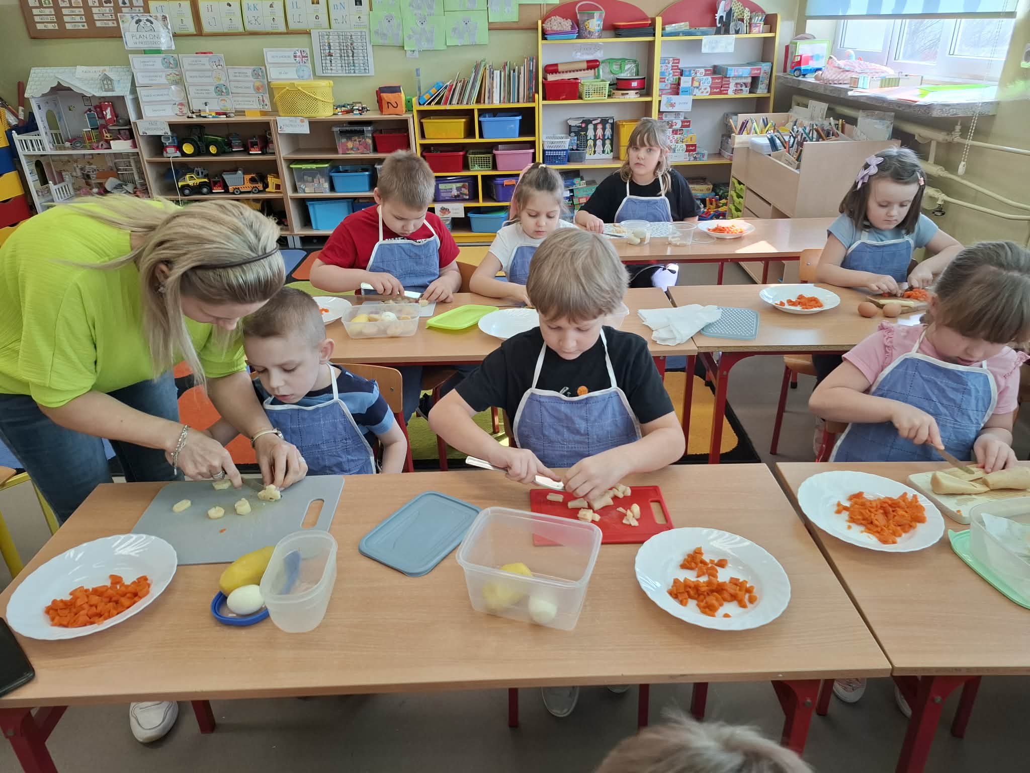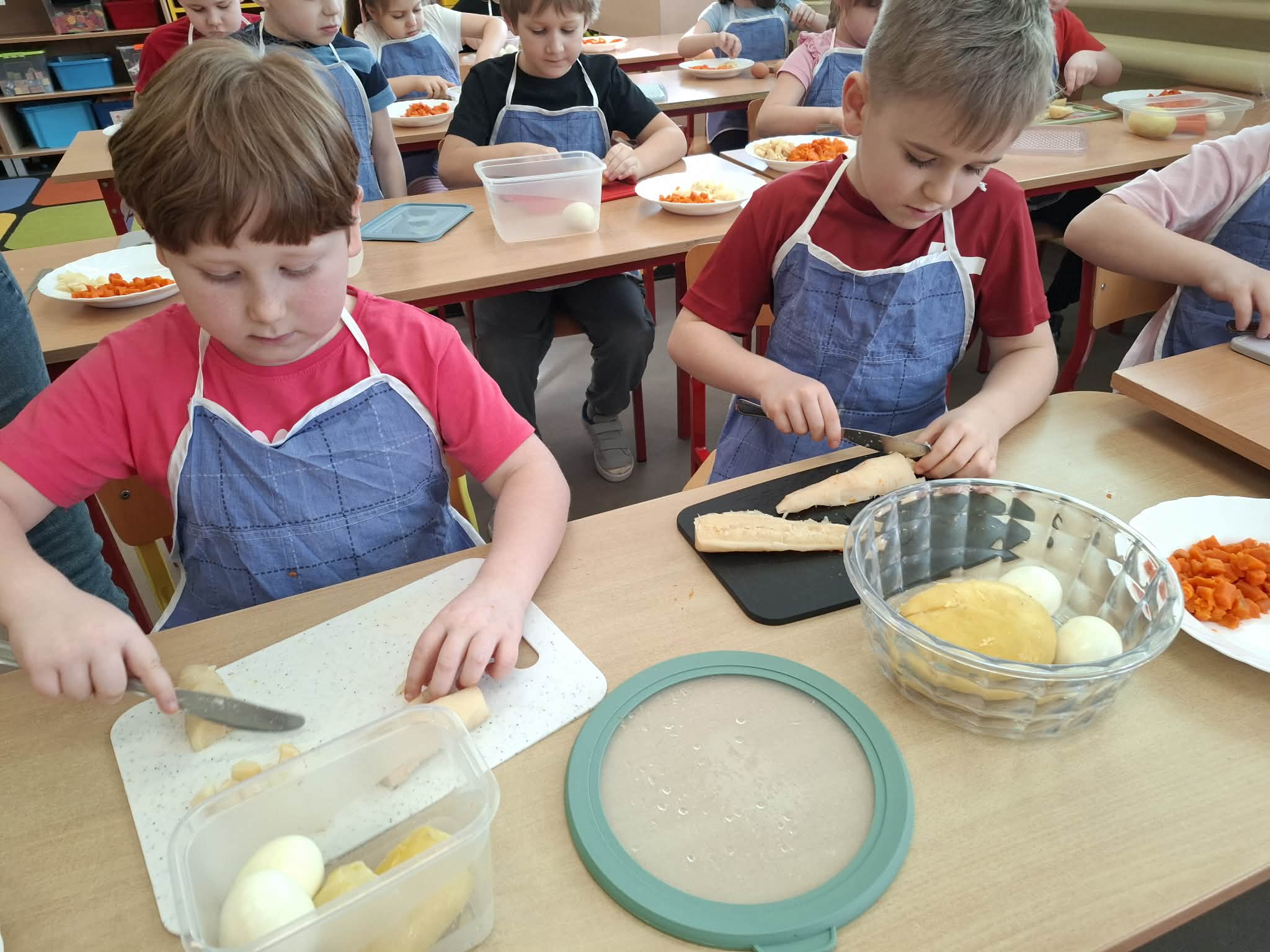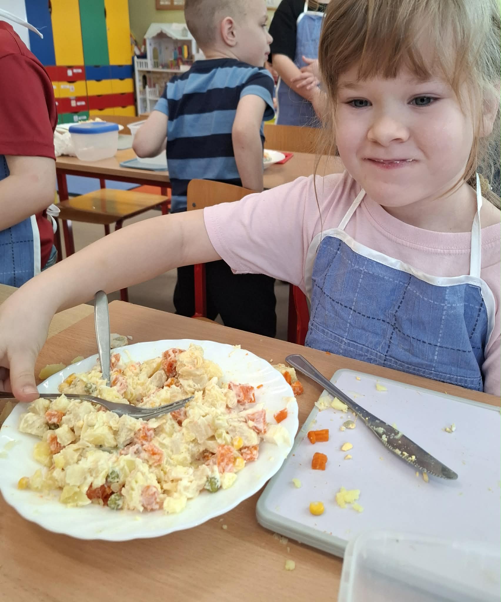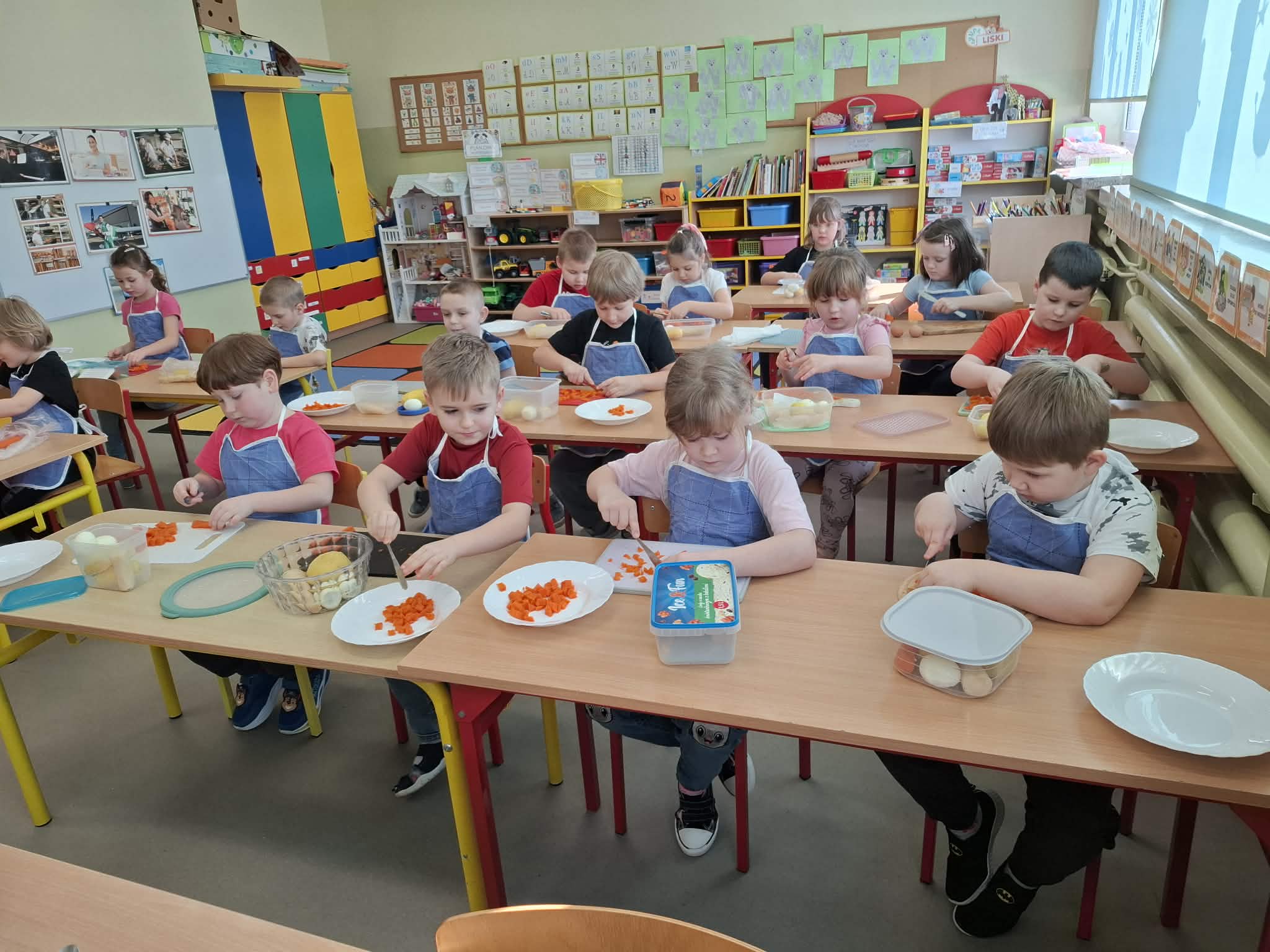 Dziś w ramach realizacji innowacji pedagogicznej “Smacznie, zdrowo, kolorowo”, dzieci z grupy “Liski” samodzielnie przygotowały sałatkę jarzynową. Przy tej okazji przedszkolaki rozwijały zmysły, doskonaliły samodzielność i wdrażały wspólnie ustalone zasady bezpieczeństwa. Przygotowywanie sałatkowej uczty dało dzieciom wiele satysfakcji. Na koniec degustowały witaminową pyszność.