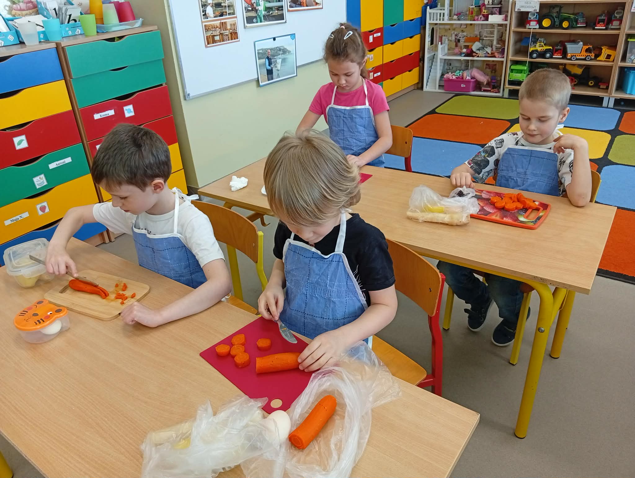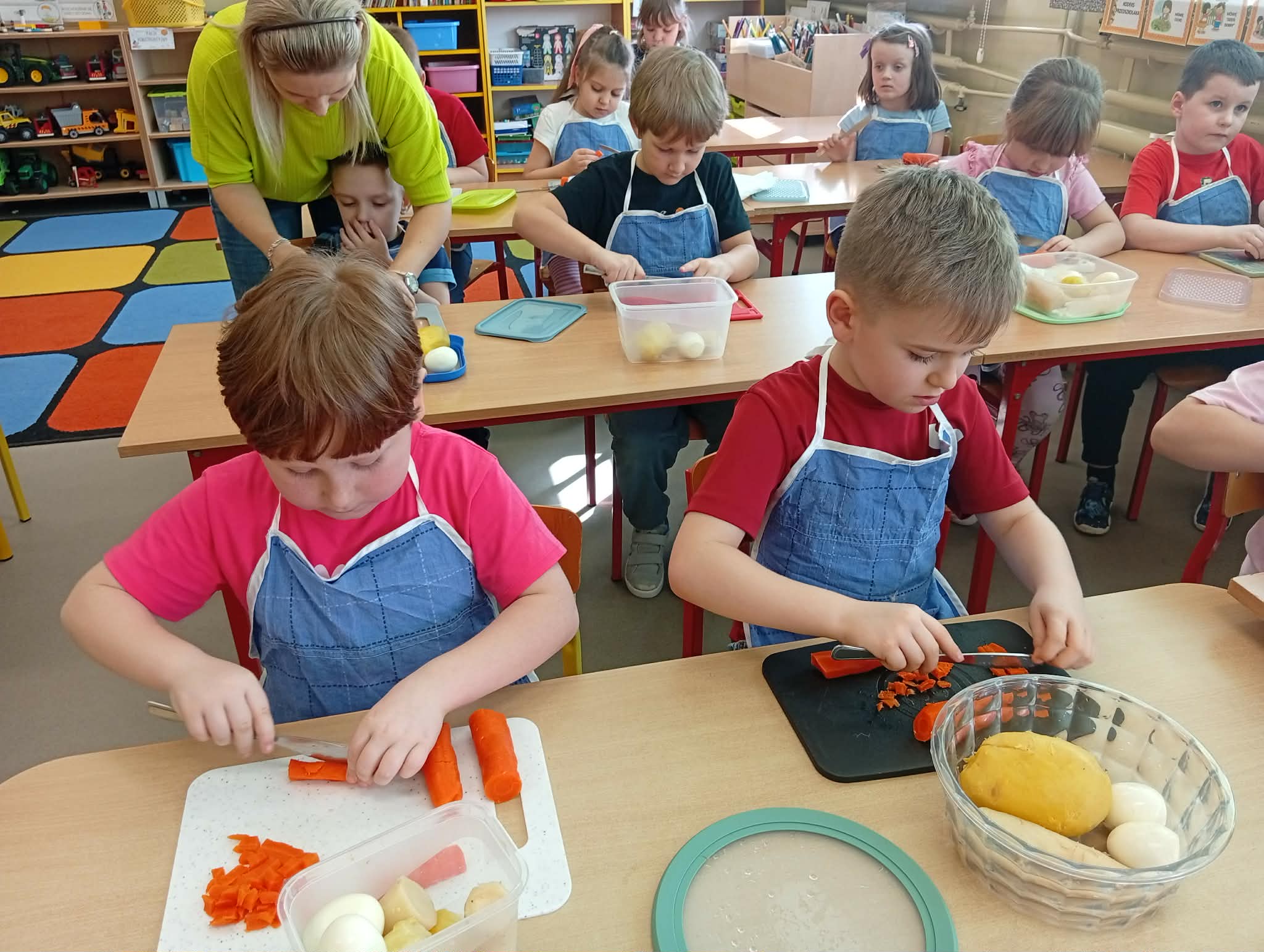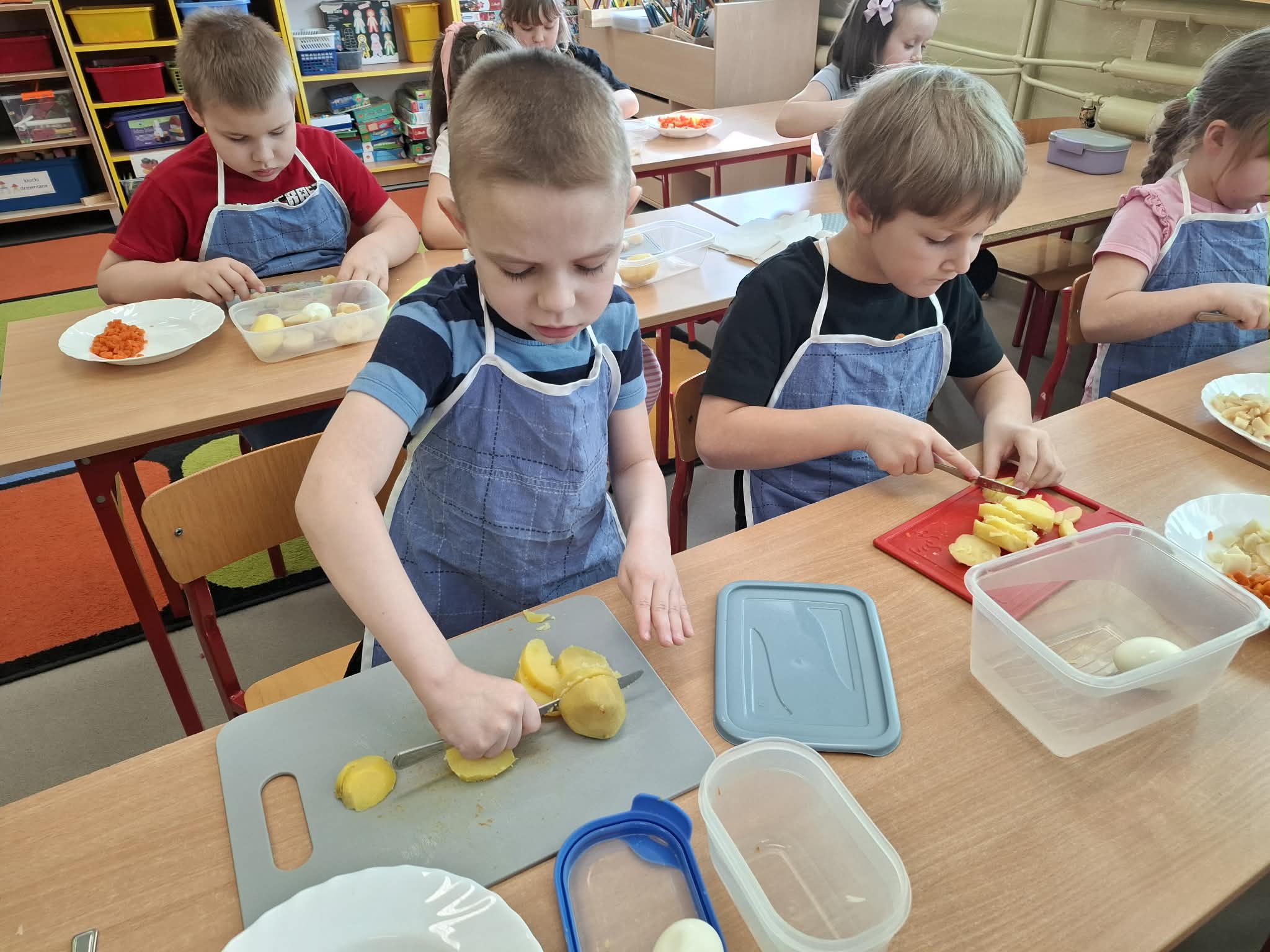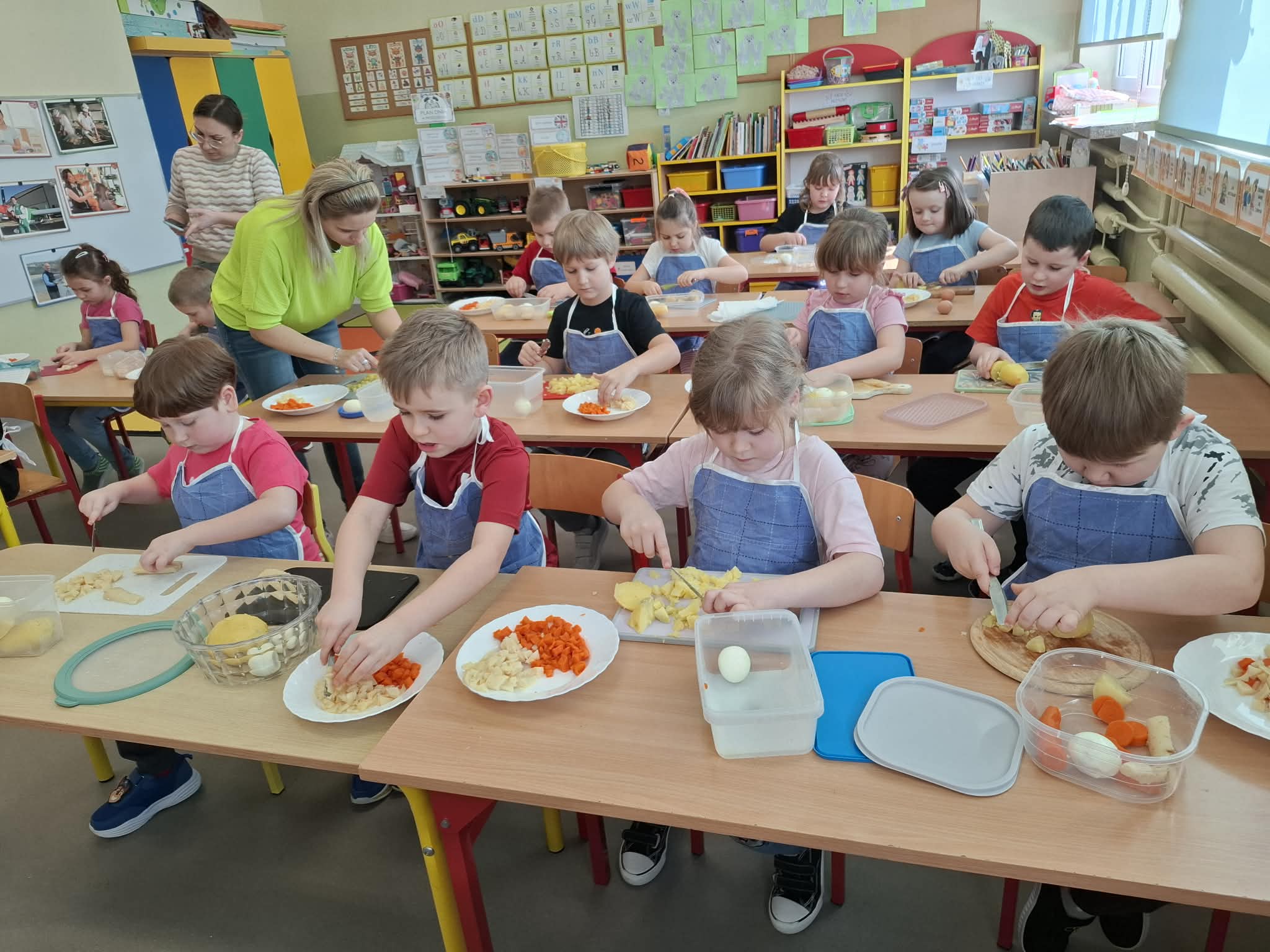 Dziś w ramach realizacji innowacji pedagogicznej “Smacznie, zdrowo, kolorowo”, dzieci z grupy “Liski” samodzielnie przygotowały sałatkę jarzynową. Przy tej okazji przedszkolaki rozwijały zmysły, doskonaliły samodzielność i wdrażały wspólnie ustalone zasady bezpieczeństwa. Przygotowywanie sałatkowej uczty dało dzieciom wiele satysfakcji. Na koniec degustowały witaminową pyszność.