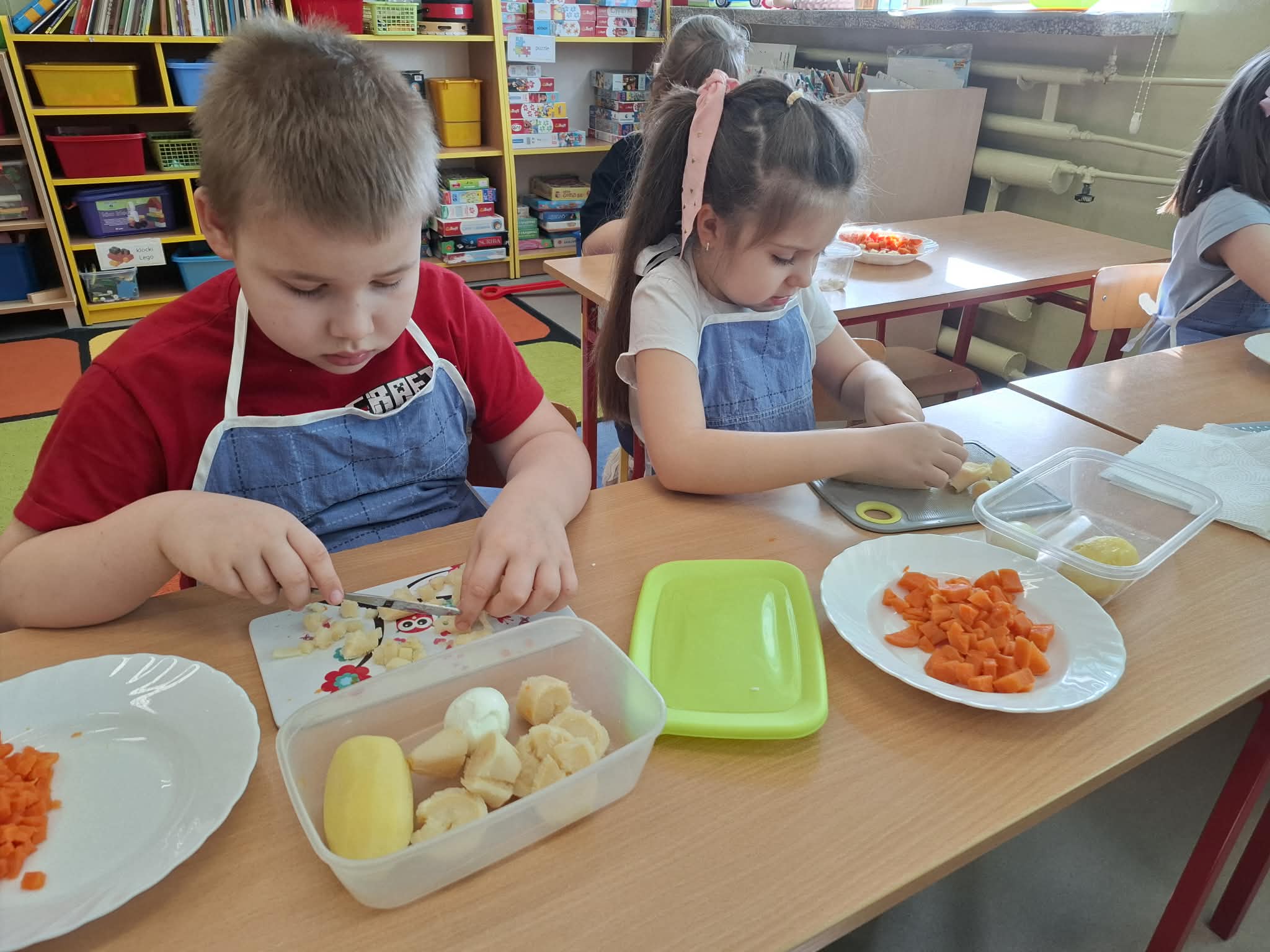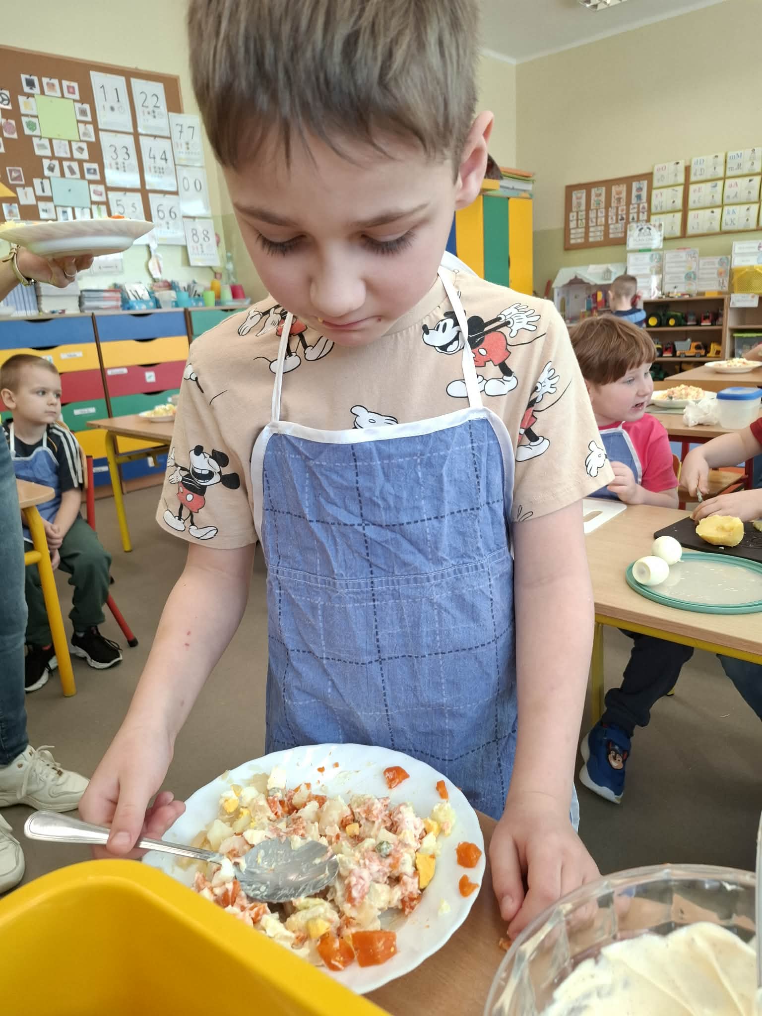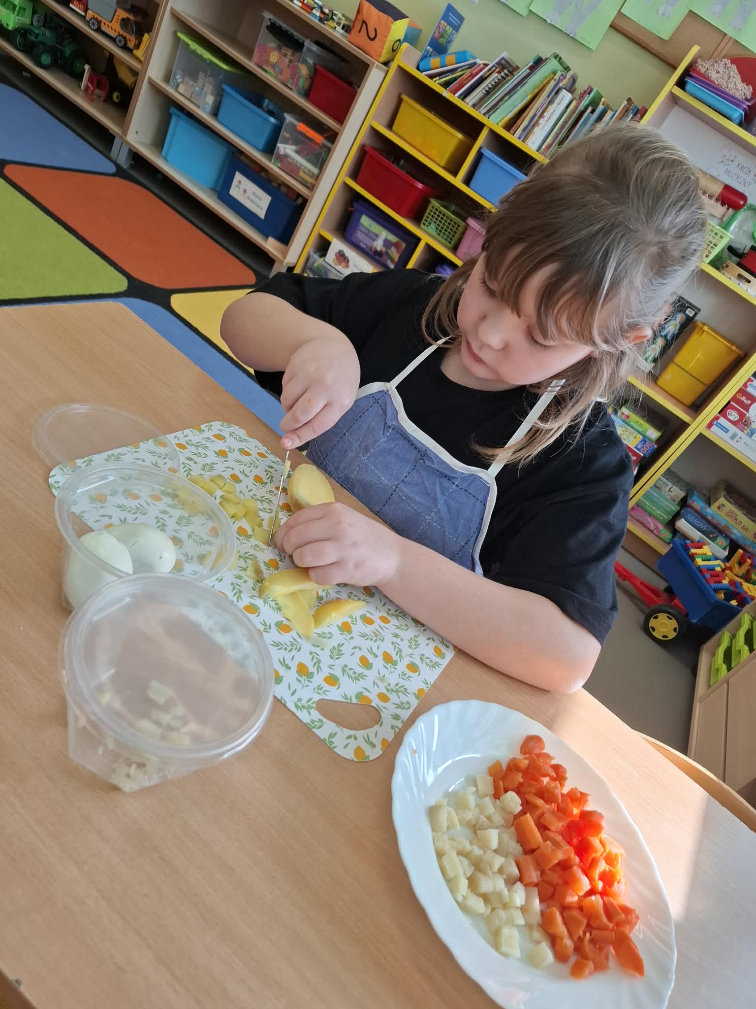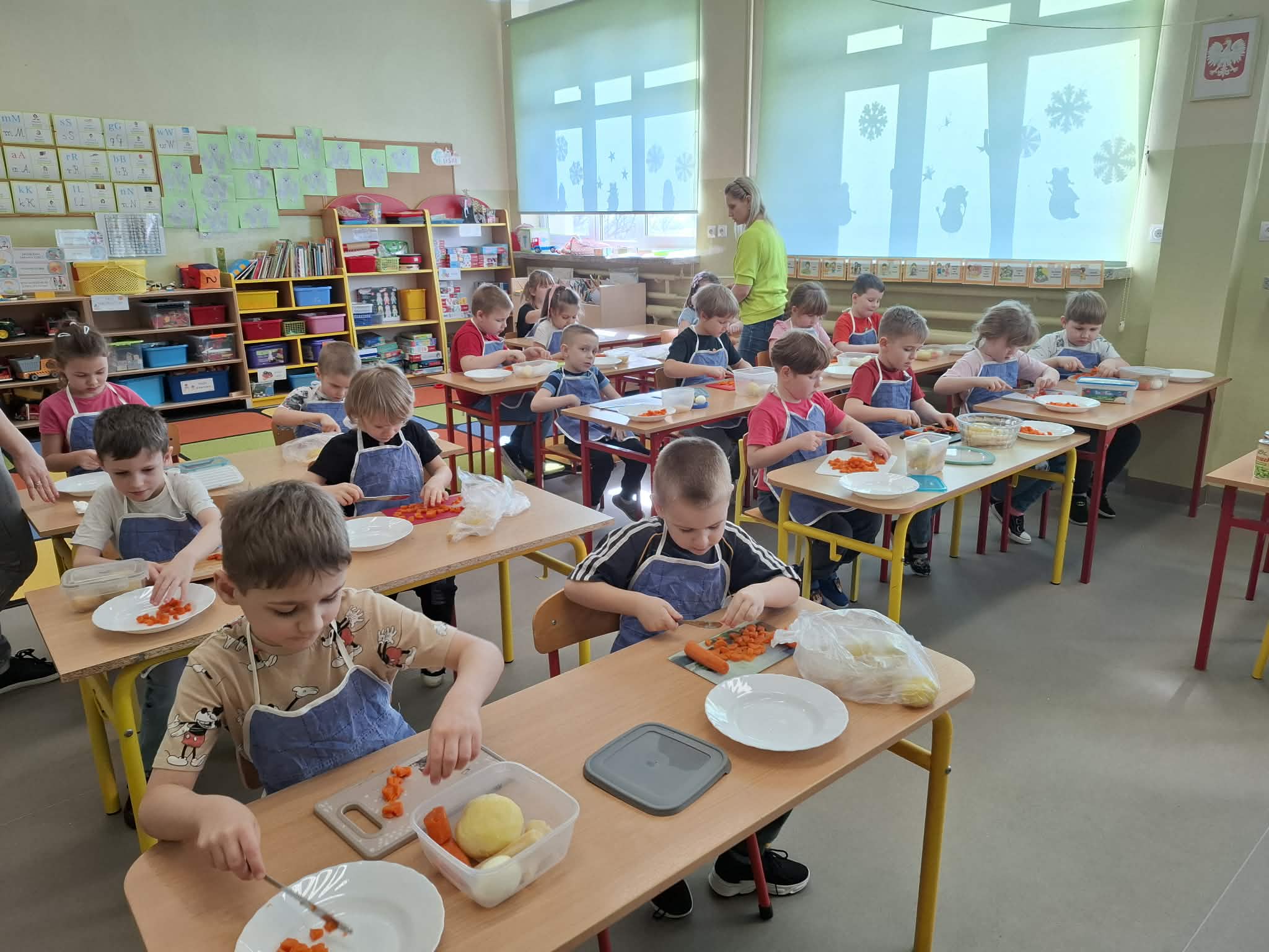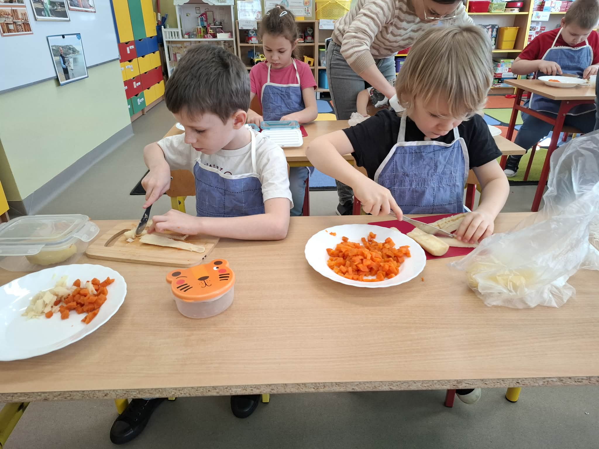 Dziś w ramach realizacji innowacji pedagogicznej “Smacznie, zdrowo, kolorowo”, dzieci z grupy “Liski” samodzielnie przygotowały sałatkę jarzynową. Przy tej okazji przedszkolaki rozwijały zmysły, doskonaliły samodzielność i wdrażały wspólnie ustalone zasady bezpieczeństwa. Przygotowywanie sałatkowej uczty dało dzieciom wiele satysfakcji. Na koniec degustowały witaminową pyszność.
