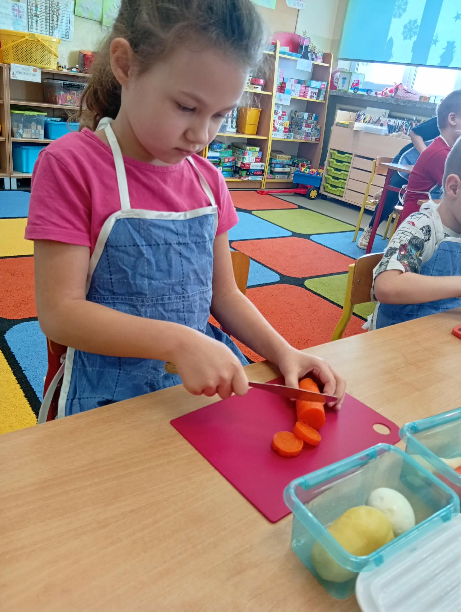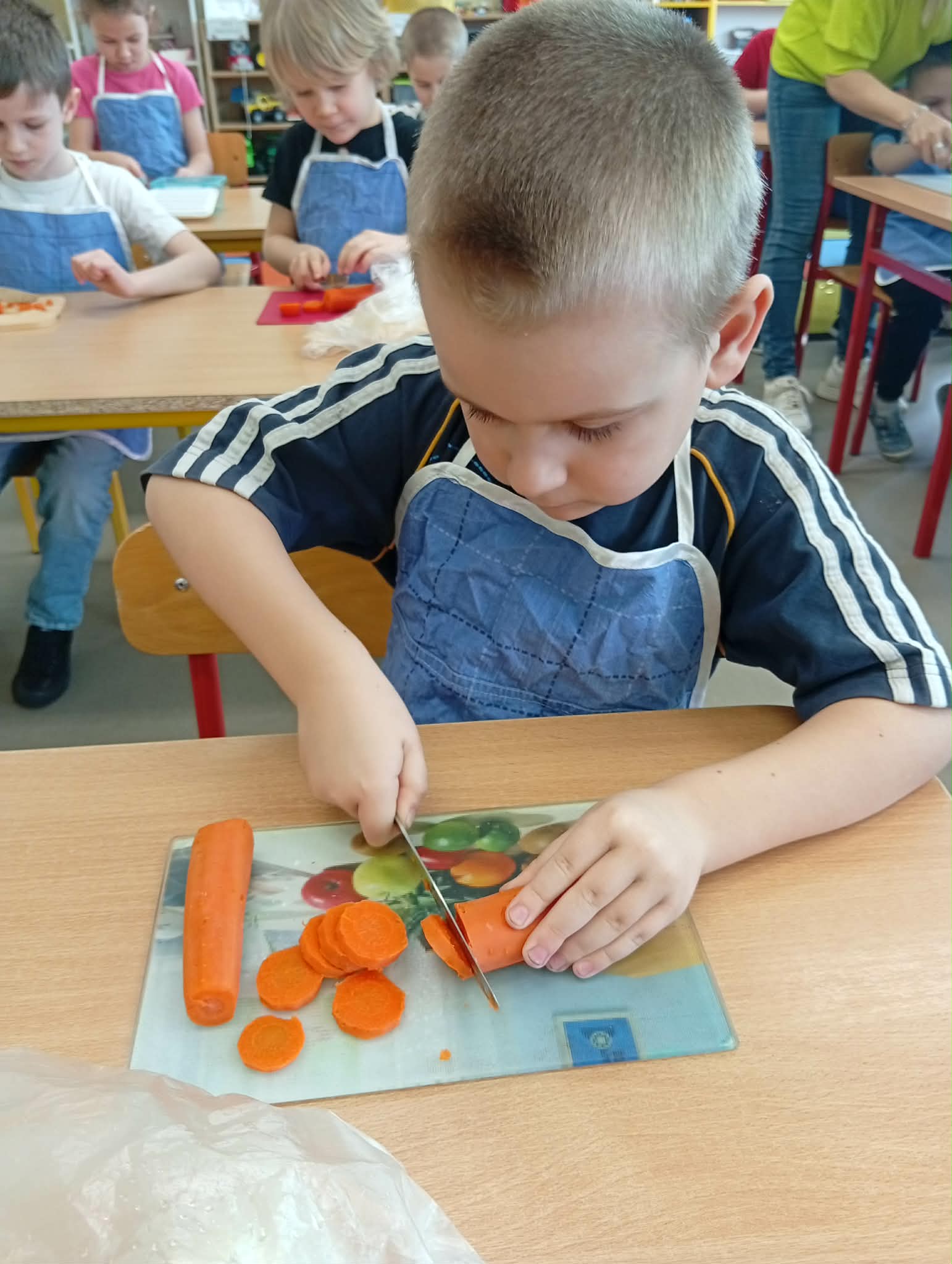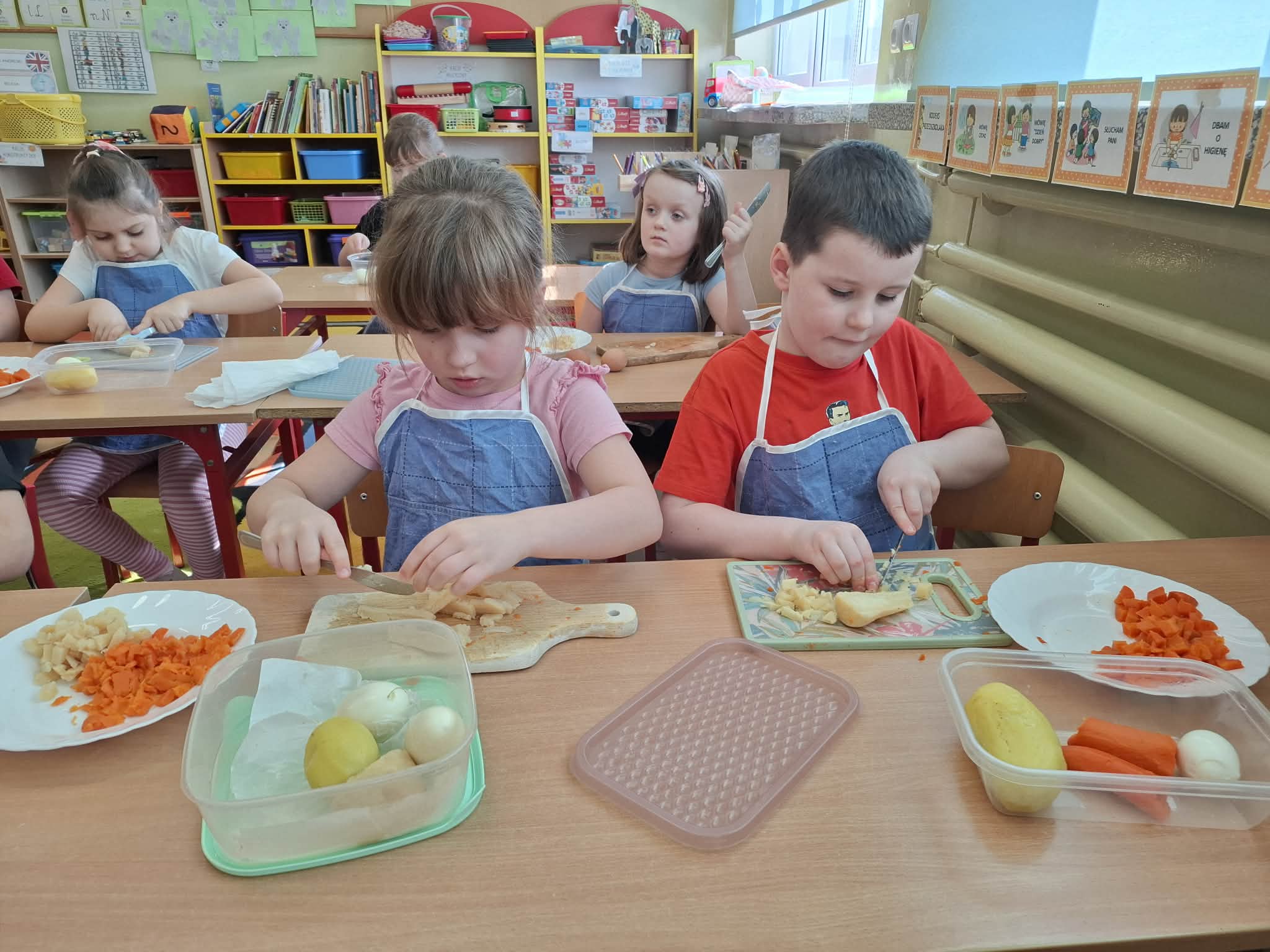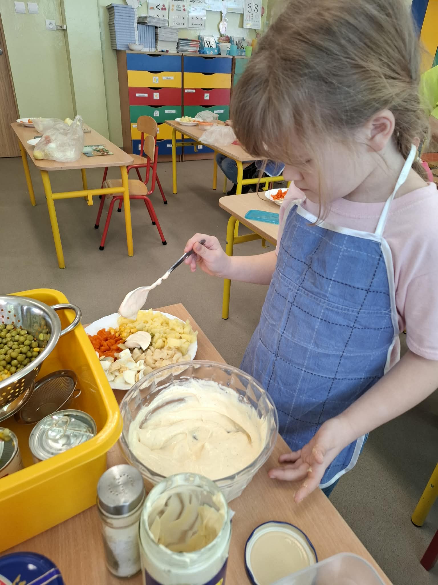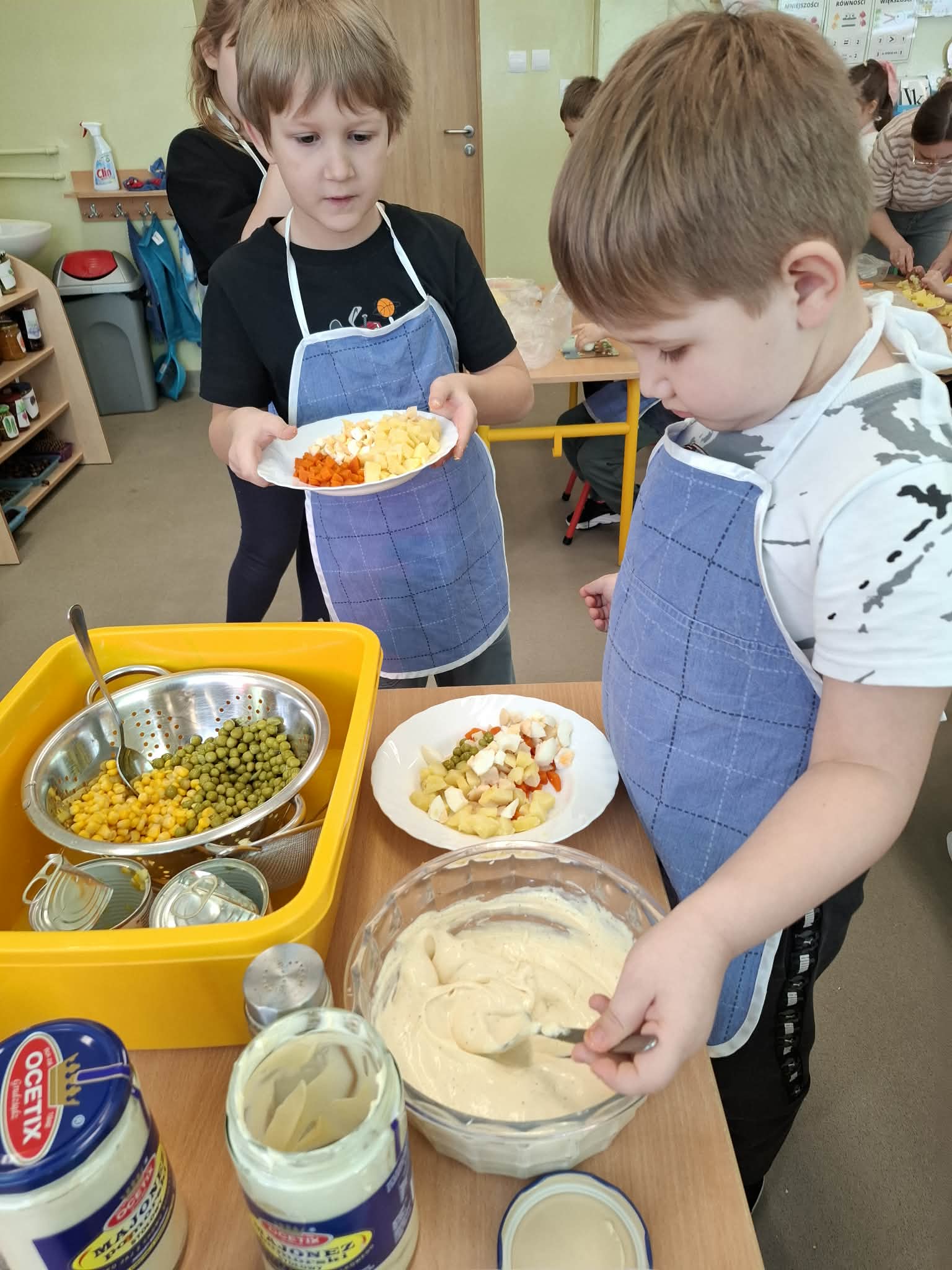 Dziś w ramach realizacji innowacji pedagogicznej “Smacznie, zdrowo, kolorowo”, dzieci z grupy “Liski” samodzielnie przygotowały sałatkę jarzynową. Przy tej okazji przedszkolaki rozwijały zmysły, doskonaliły samodzielność i wdrażały wspólnie ustalone zasady bezpieczeństwa. Przygotowywanie sałatkowej uczty dało dzieciom wiele satysfakcji. Na koniec degustowały witaminową pyszność.