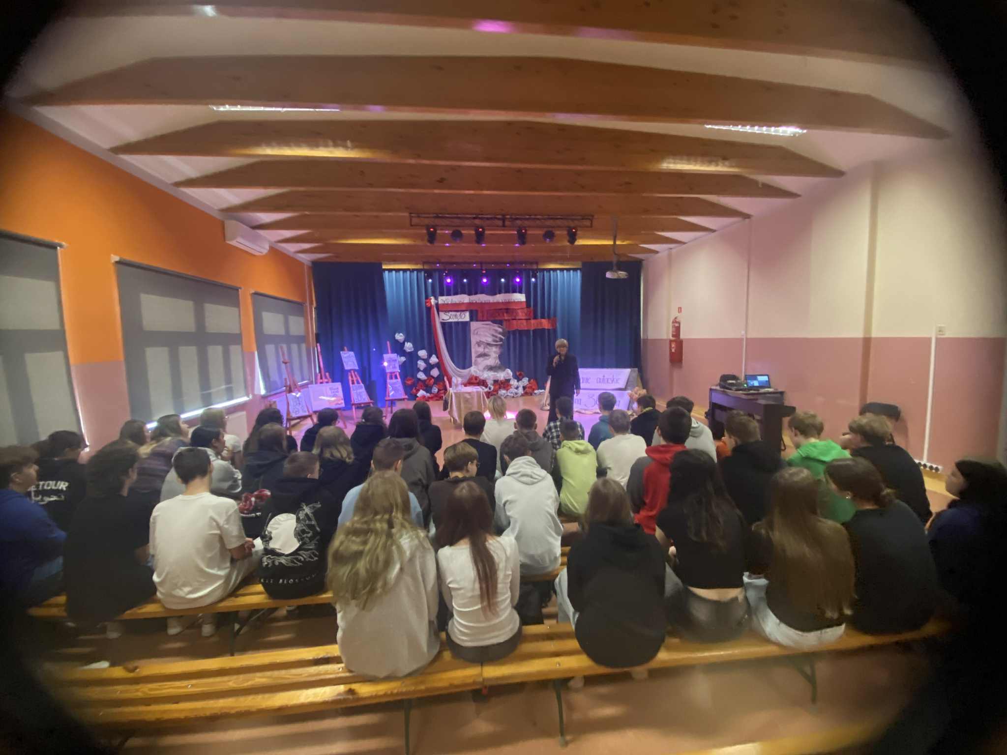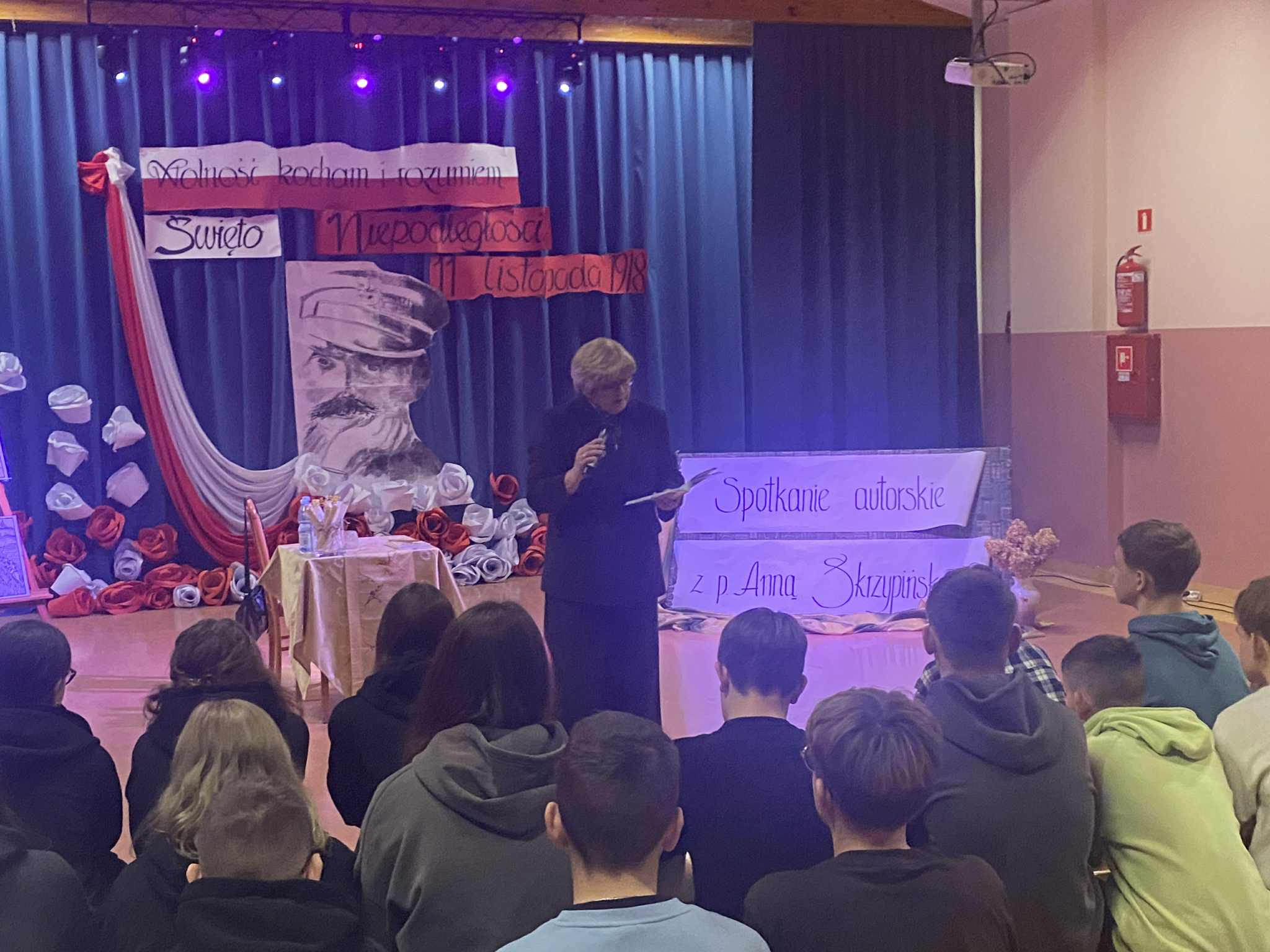 5 listopada 2025 roku gościliśmy w naszej szkole panią Annę Skrzypińską, która promowała autorską książkę pt. „Most 1410. Na brzuchu wzgórza”.  Jest to opowieść o średniowiecznym Radziejowie, gdzie fakty historyczne przeplatają się z fikcją literacką. Autorka w ciekawy sposób opowiedziała o powstawaniu książki, która przenosi czytelnika do czasów króla Władysława Jagiełły, odwiedzającego Radziejów w drodze do Brześcia Kujawskiego.  Pani Skrzypińska opowiedziała zebranym o sobie, swoim dzieciństwie, zamiłowaniu do historii, przywiązaniu do miejsca, w którym żyje oraz procesie twórczym nad książką. Nie zabrakło również fragmentów powieści, czytanych przez autorkę. Spotkanie przebiegło w serdecznej atmosferze, a uczniowie z klas ósmych z zainteresowaniem słuchali o historii pobliskiego Radziejowa. Na koniec nasz gość zachęcił wszystkich do zgłębienia historii Osięcin i własnych korzeni.