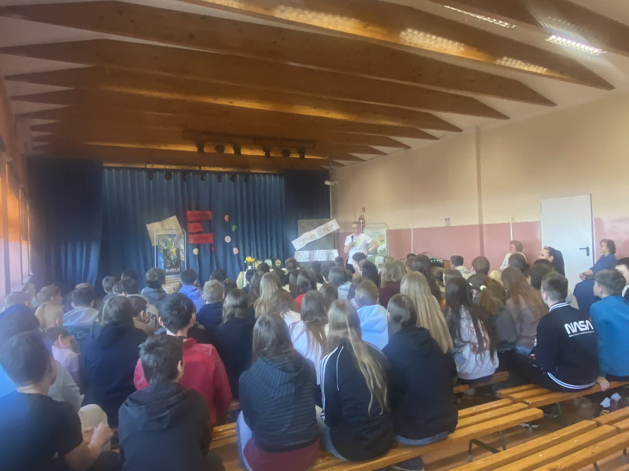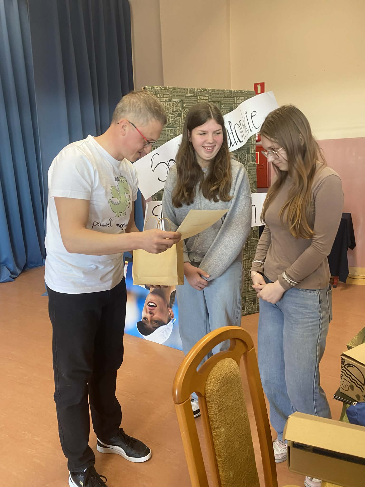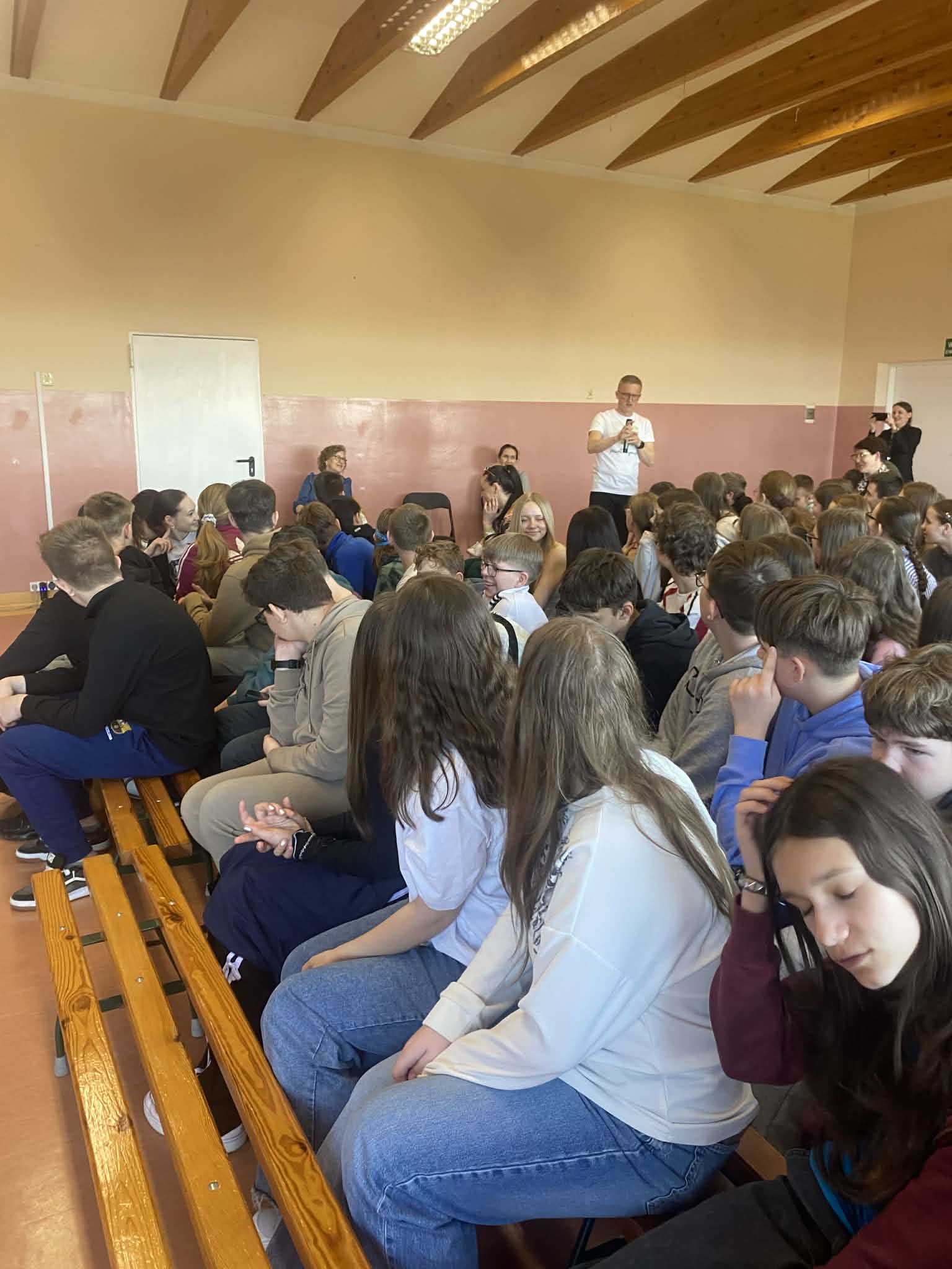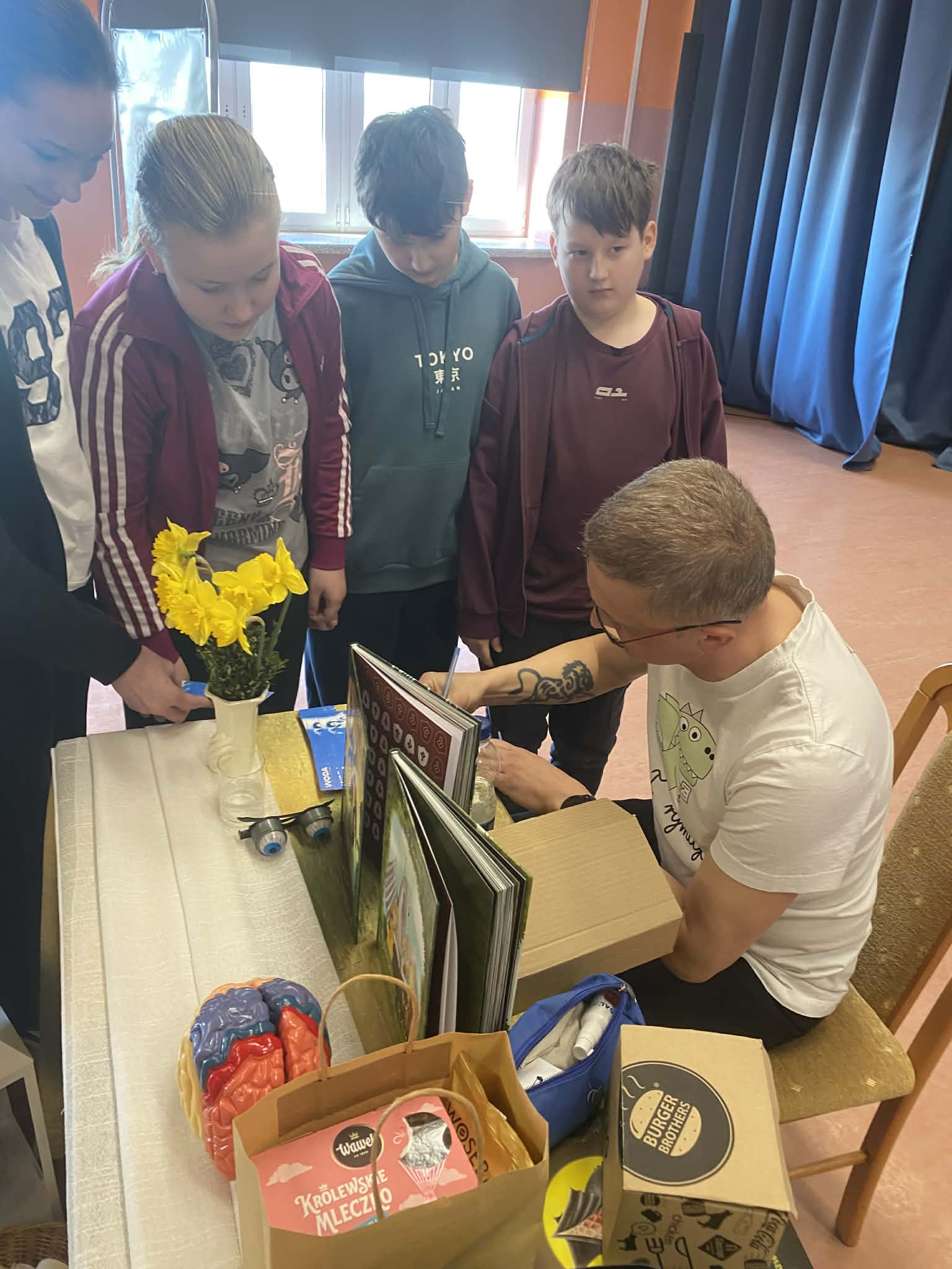 17 kwietnia 2026 r. na prawdziwie literacko-naukowe show zaprosił uczniów kas 6 i 7 poeta i pisarz Paweł Gołuch. Podczas spotkania nie było miejsca na nudę, każda chwila wypełniona była czymś ciekawym i zabawnym. Pojawiły się istotne rekwizyty i pomoce naukowe, które udowadniały, jak wspaniały jest ludzki mózg. Nasz gość podzielił się również spostrzeżeniami na temat sposobów pisania i tworzenia tekstów, opowiadał o powodach, dla których zaczął swoją przygodę z książkami.