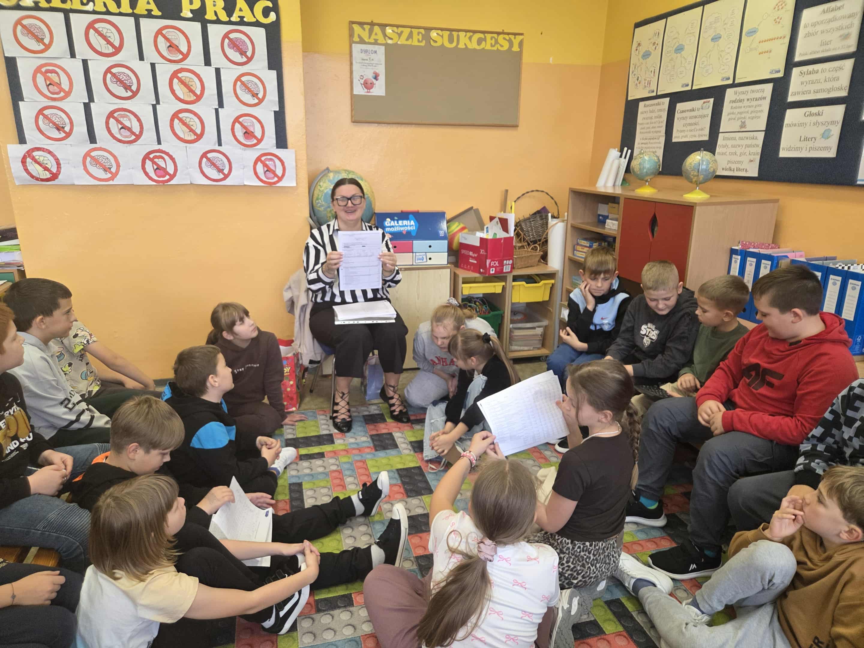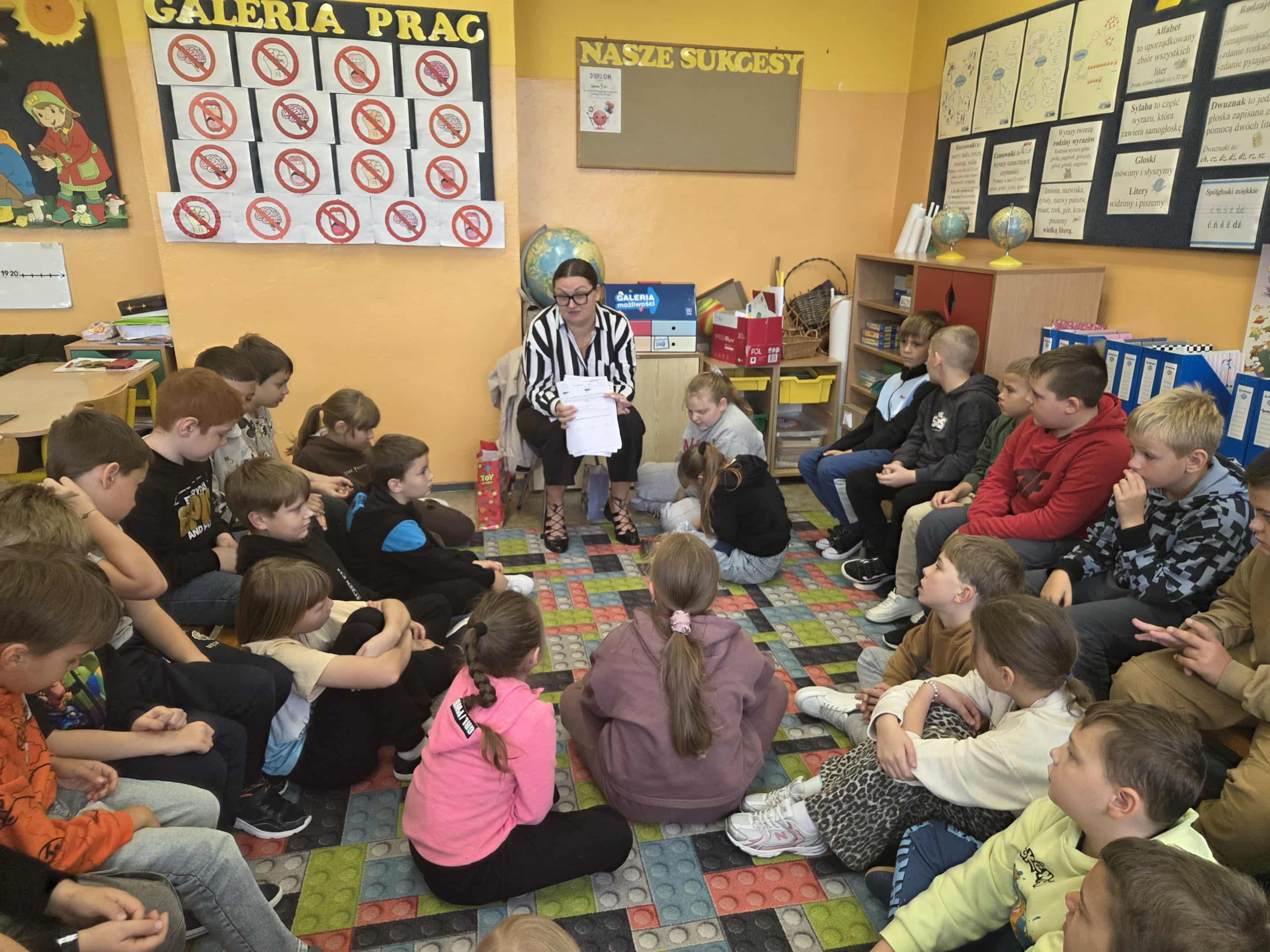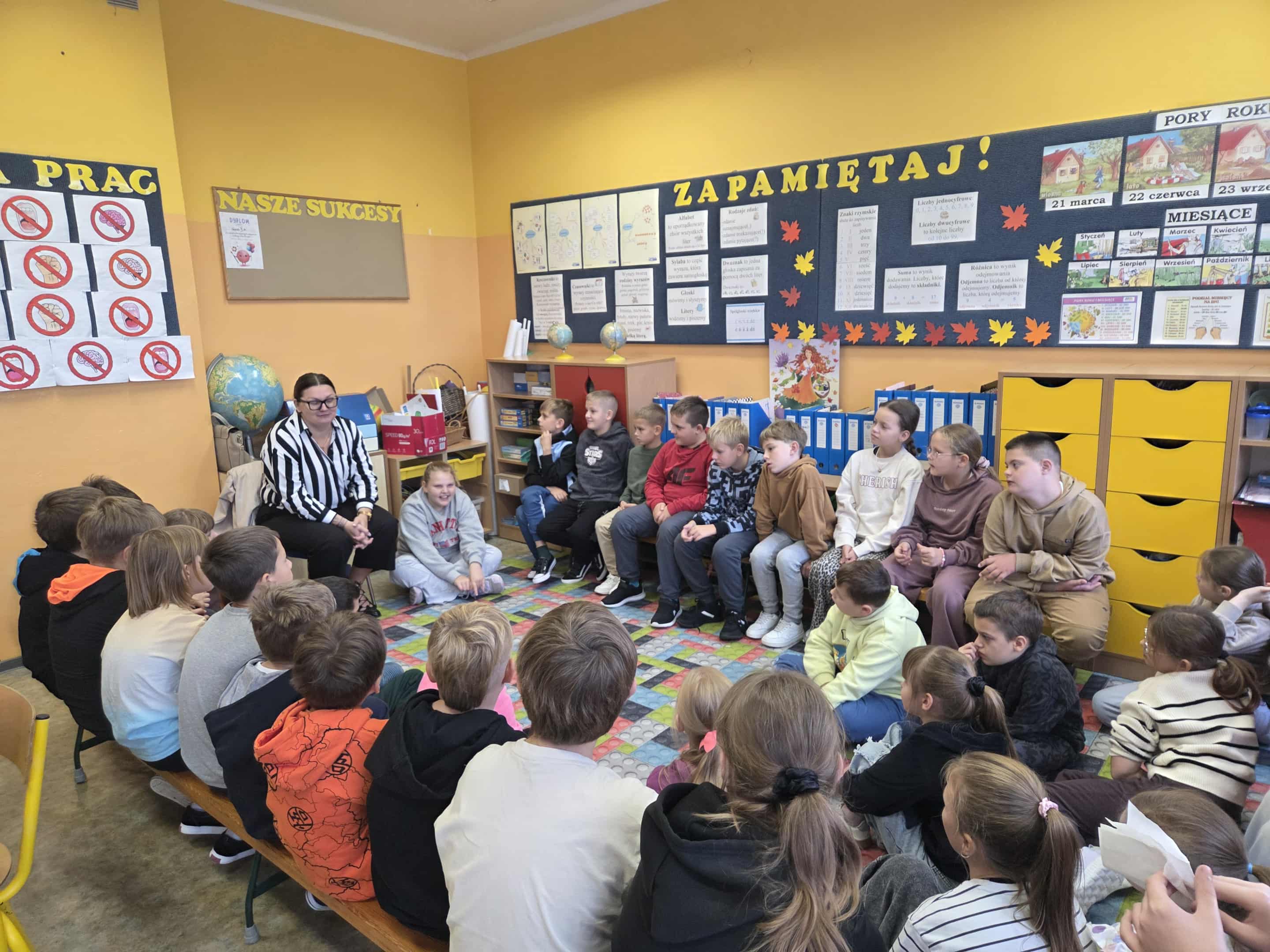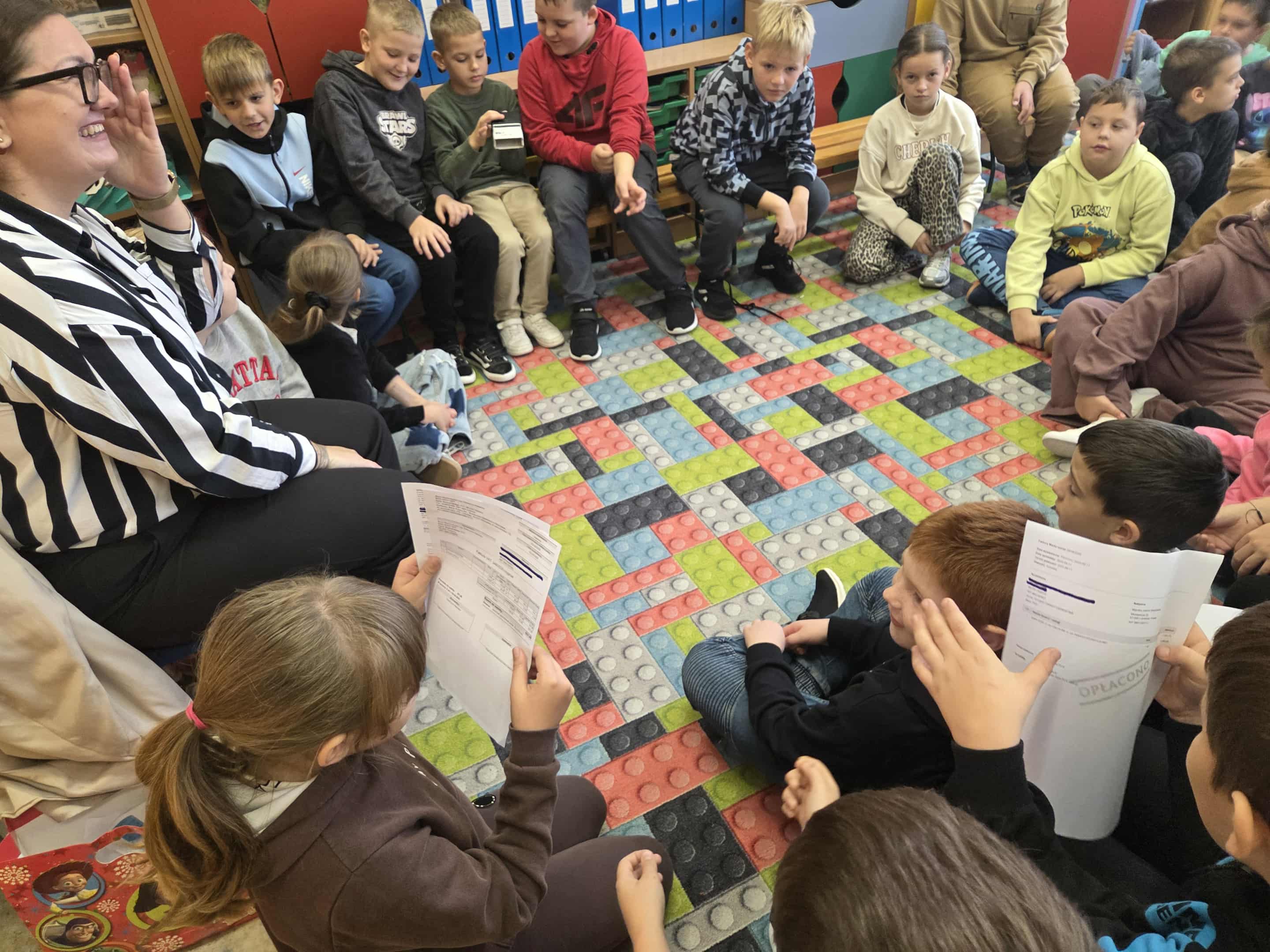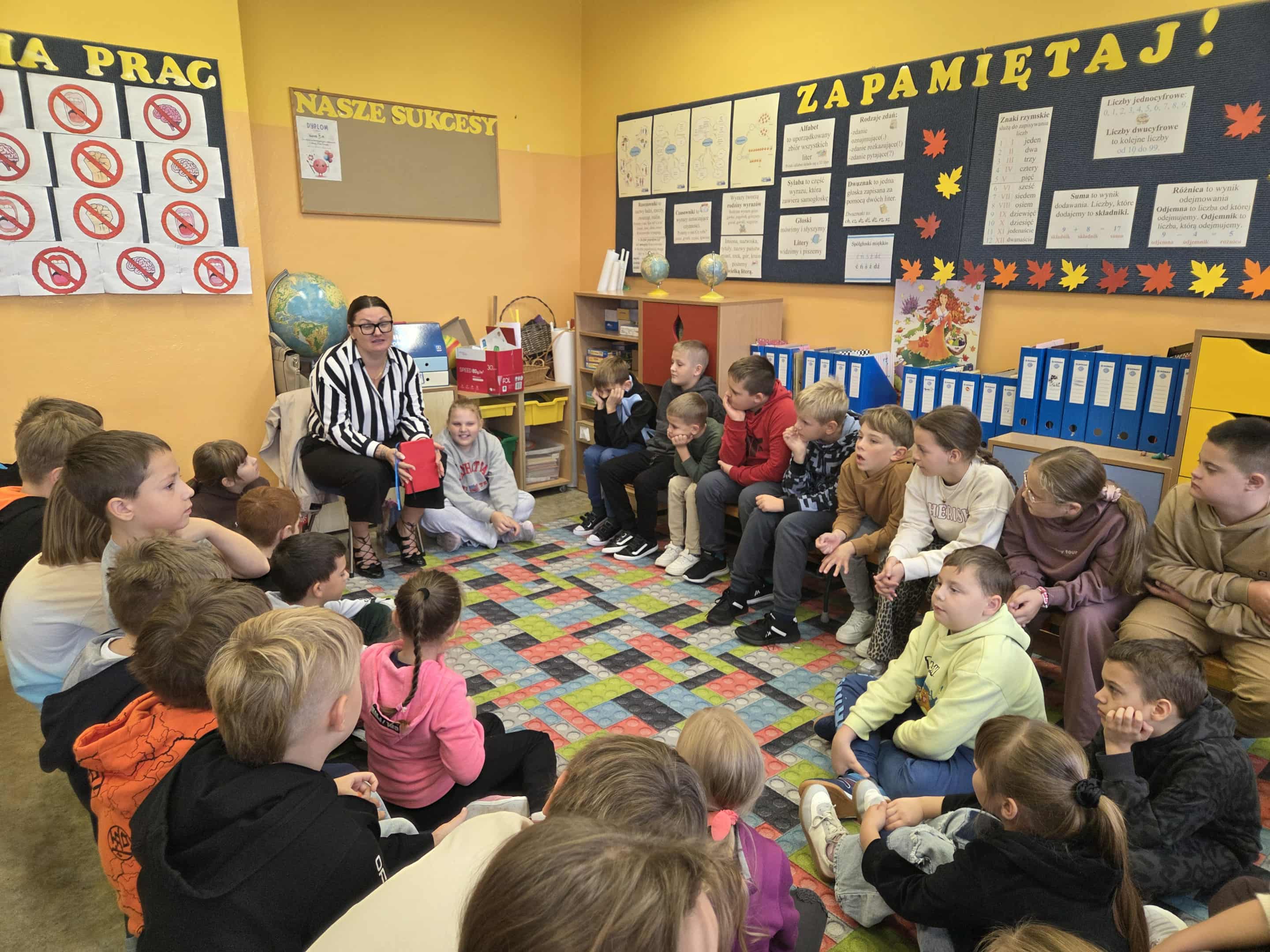 8 października 2025 r. uczniów klas IIIa i IIIb odwiedziła mama Niny – pani Katarzyna Nadolska, która prowadzi biuro rachunkowe. Pani Kasia przeprowadziła ciekawe zajęcia, podczas których zaznajomiła uczniów ze specyfiką pracy księgowej. Uczniowie zobaczyli jak wyglądają faktury, skoroszyty oraz atrybuty księgowej. Uczniowie dowiedzieli się na czym polegała ta praca dawniej i jak pracował dawniej księgowy, a jak to wygląda obecnie. Dzieci słuchały z zainteresowaniem i na zakończenie zadały mnóstwo pytań. Jednomyślnie stwierdziły także, że nie jest to łatwy zawód, że praca w księgowości wiąże się z dużą odpowiedzialnością i zaangażowaniem. Wymaga ciągłego kształcenia się, czytania fachowej literatury i udziału w wielu kursach.