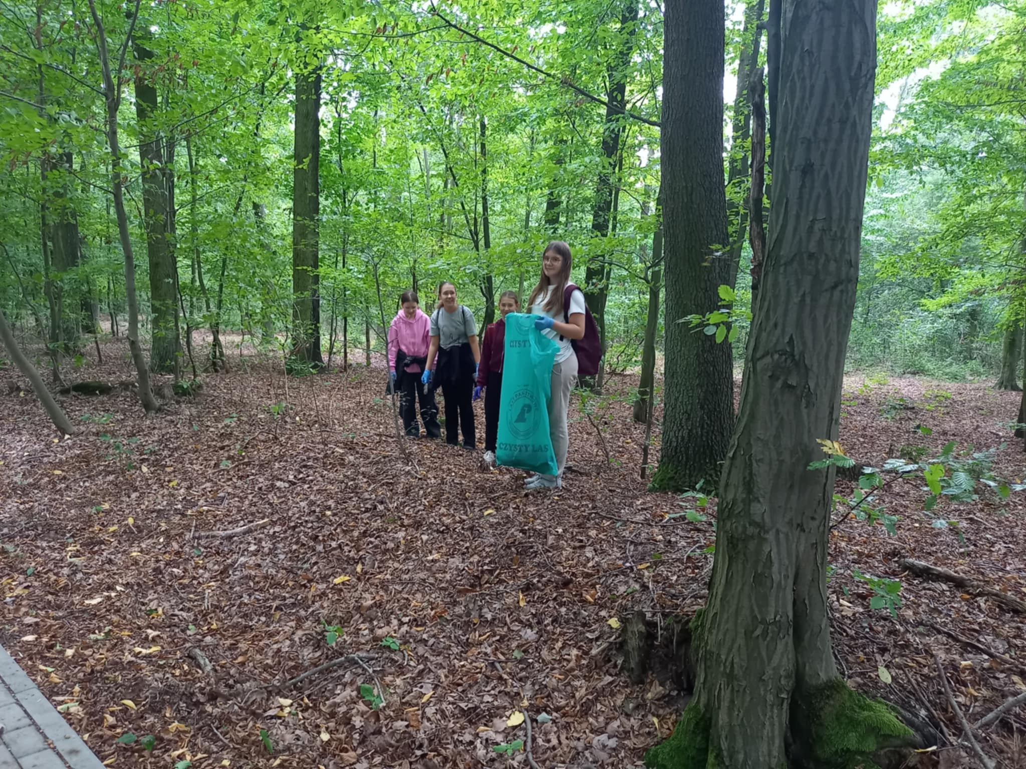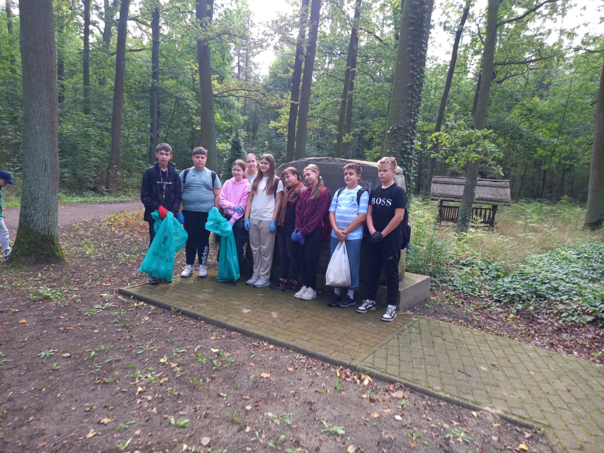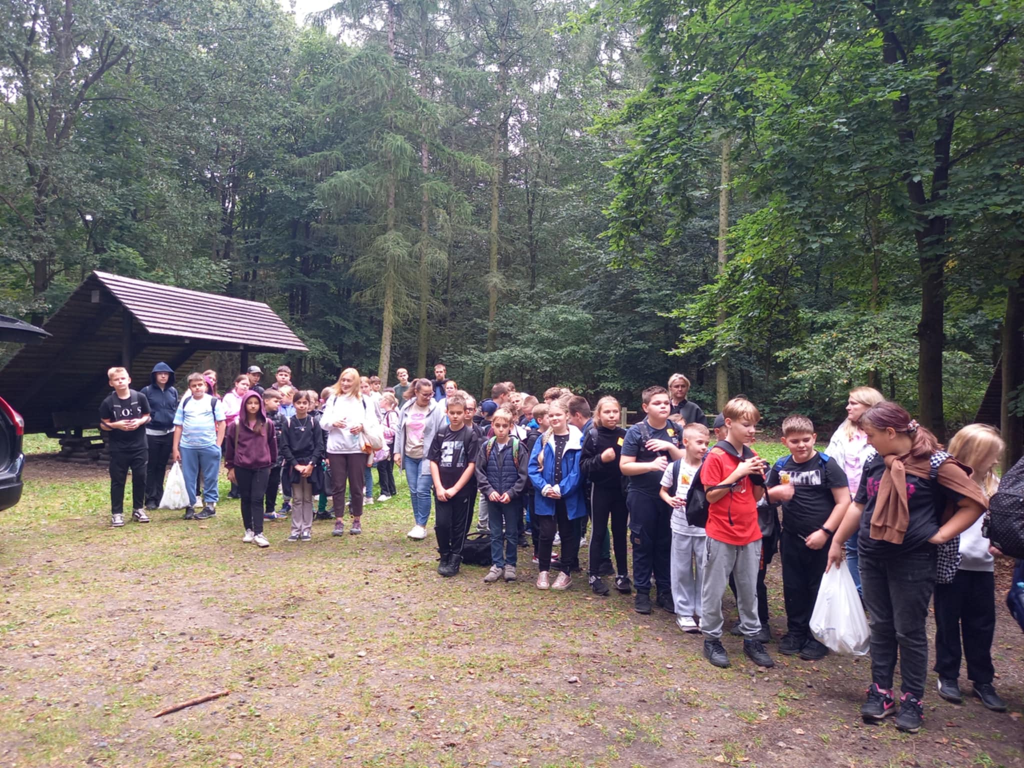 19 września 2025 r., zgodnie z coroczną tradycją, uczniowie klas IV – VI wzięli udział w akcji Sprzątanie Świata. Tegoroczne hasło to: „W naturę z kulturą” ze sloganem „Dzik nie świni w lesie. A ty?”. Przypomina nam, że kultura jest dorobkiem, wizytówką ludzkości i ważnym elementem kształtującym naszą tożsamość. Zachęca, by w kontakcie z naturą pamiętać o kulturze. Dotyczy to dobrych nawyków i naszego zachowania. Podczas akcji zebraliśmy bardzo dużo „śmieci” plastikowych, szklanych oraz aluminiowych, które nie powinny być pozostawiane w lesie, czy na łonie natury. Po zakończonej pracy spotkaliśmy się na słodkim poczęstunku ufundowanym przez Leśnictwo Osięciny oraz Urząd Gminy. Pogoda oraz humory nam dopisywały w czystym i przyjemnym otoczeniu lasu.