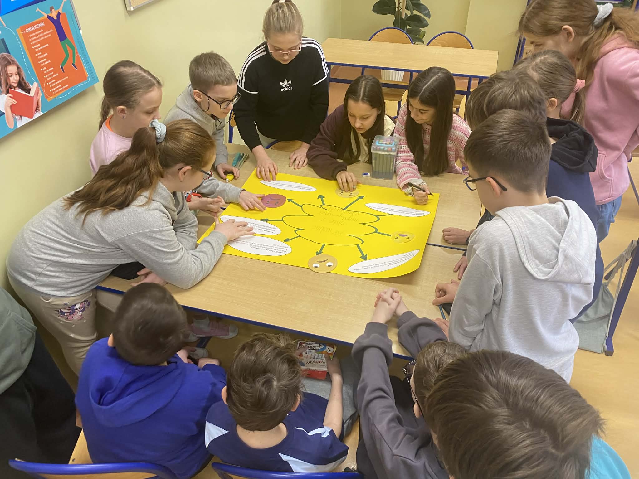 W ramach obchodów Światowego Dnia Walki w Depresją odbyły się zajęcia z wychowawcą. W klasach IV–V dotyczyły one radzenia sobie z emocjami. Pracując w grupach, uczniowie przygotowywali plakaty przedstawiające sposoby radzenia sobie z emocjami, trudnymi sytuacjami. Powstałe prace zostały wyeksponowane na holu szkoły, jako wyraz kreatywności i cenne źródło wskazówek dla młodzieży.