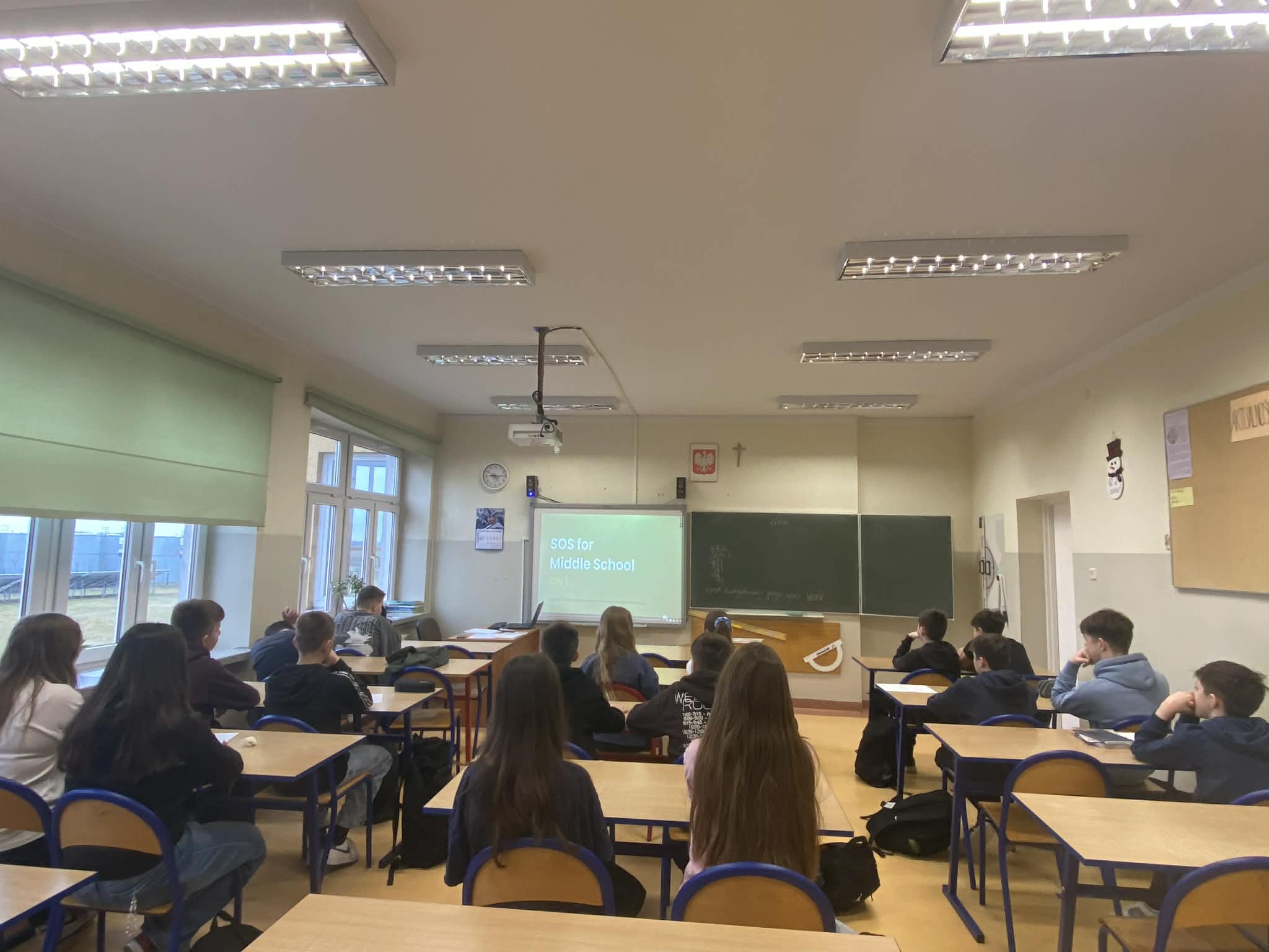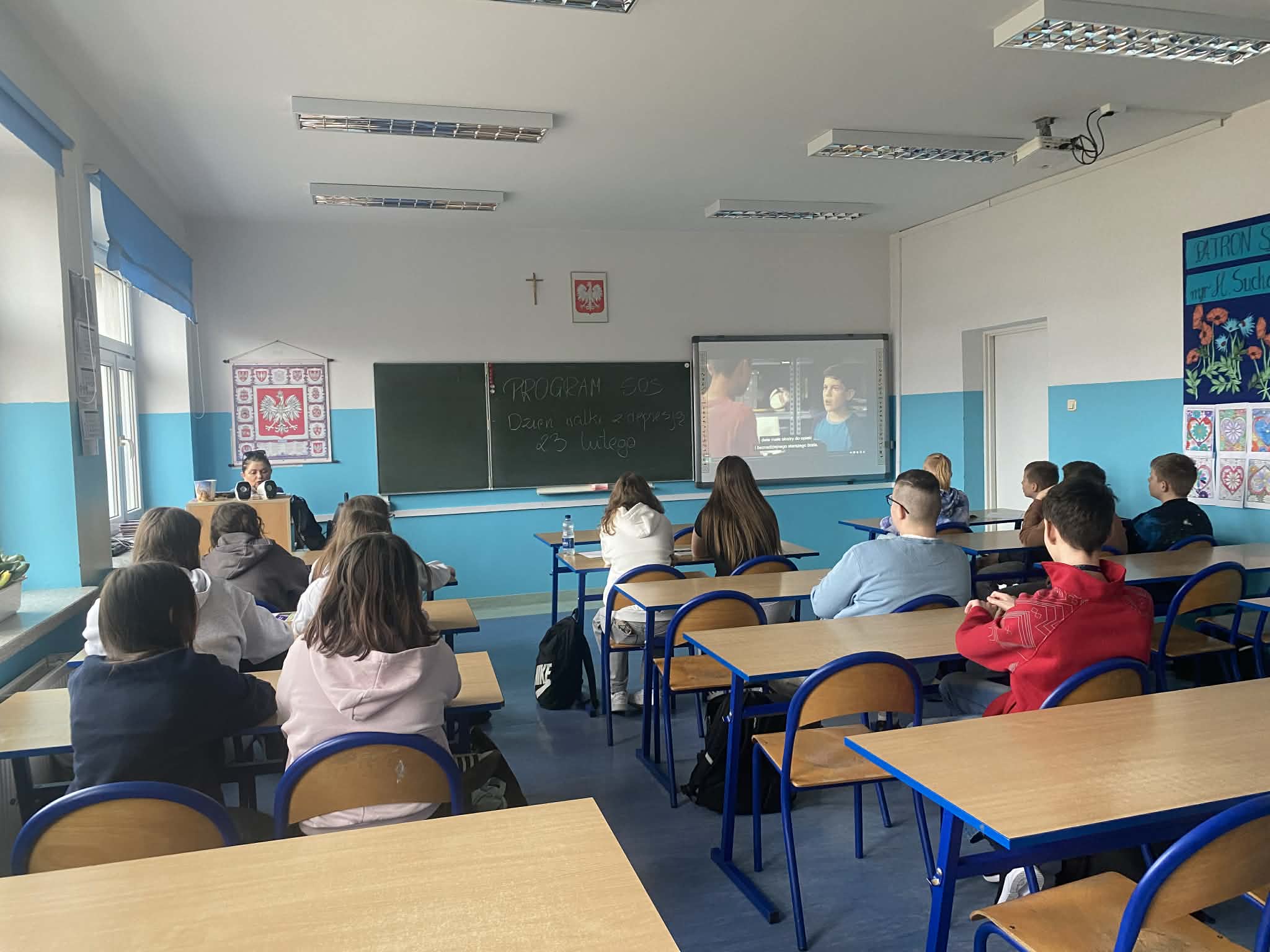 Klasy VI realizowały zajęcia w ramach programu profilaktycznego ,,SOS”, którego celem jest ograniczenie samobójstw i prób samobójczych. Zachęcenie uczniów w kryzysie psychicznym do szukania profesjonalnej pomocy oraz udzielania wsparcia rówieśnikom przeżywającym trudne chwile.