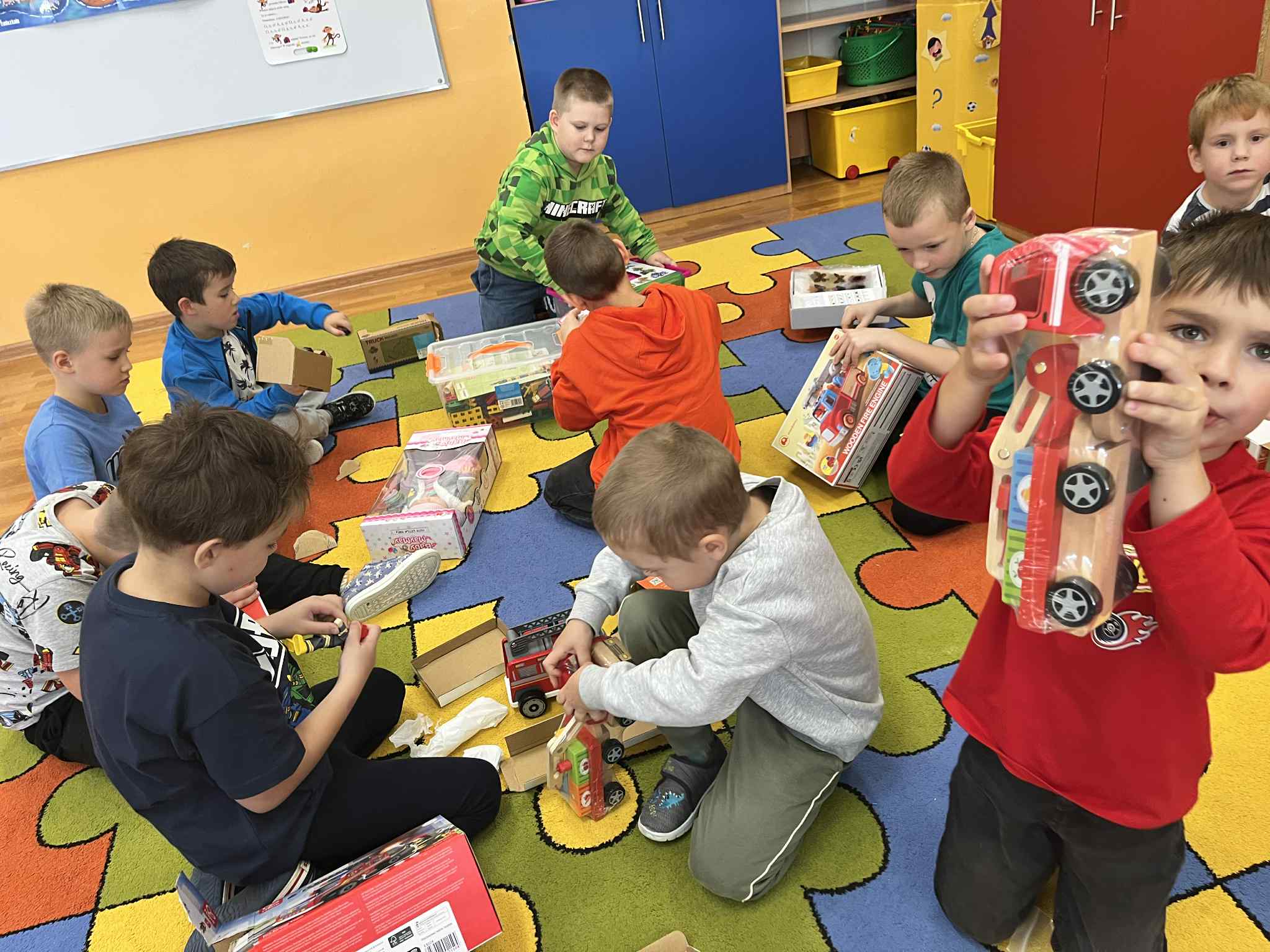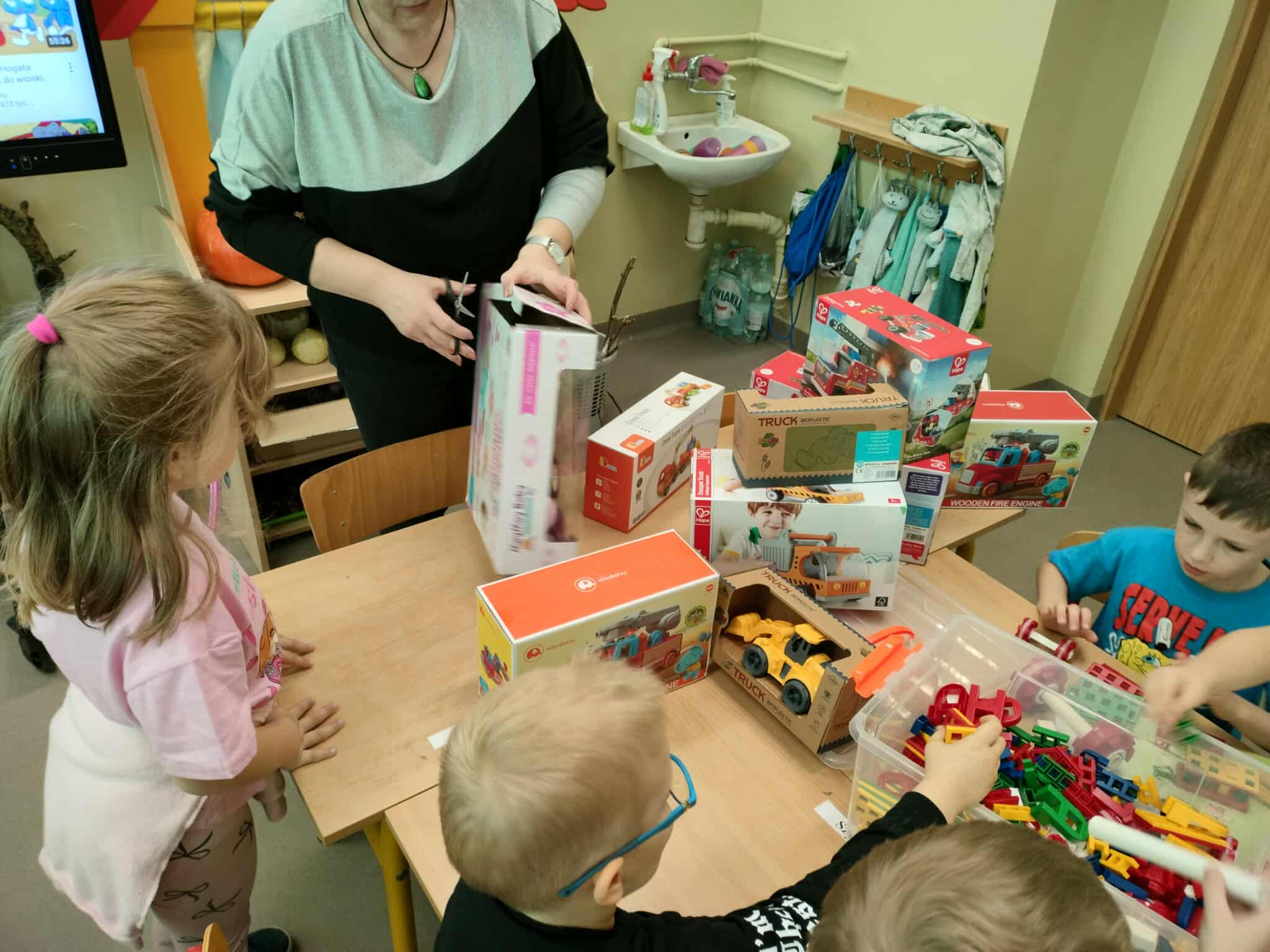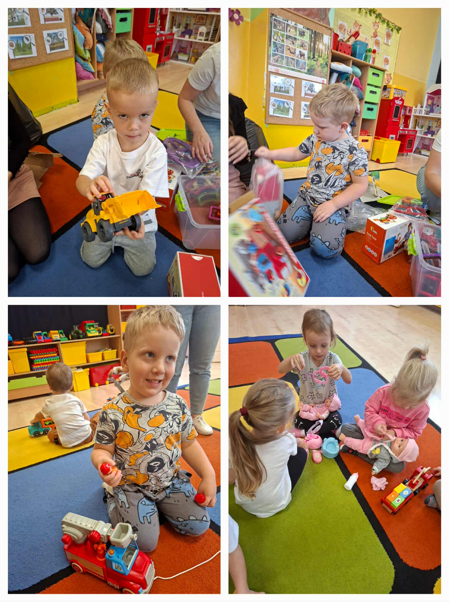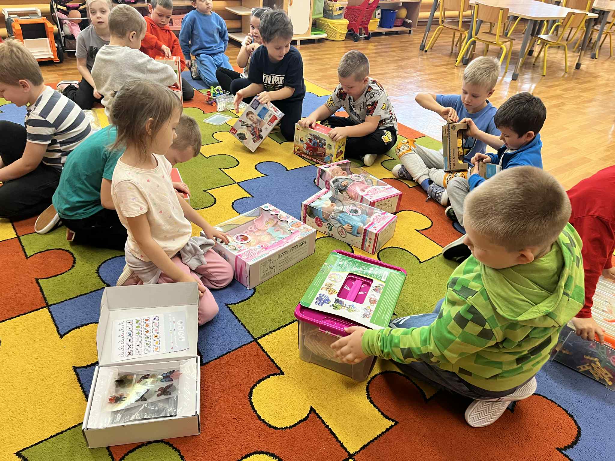 W każdej grupie w zależności od wieku i potrzeb pojawiły się nowe puzzle, lalki, samochody, układanki, klocki i wiele innych zabawek. Dzięki temu przedszkolaki mogą rozwijać wyobraźnię, zdolności manualne i współpracę w grupie – a przy tym po prostu świetnie się bawić!