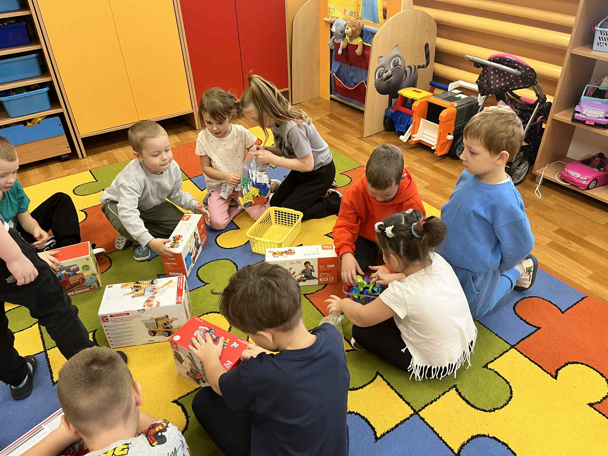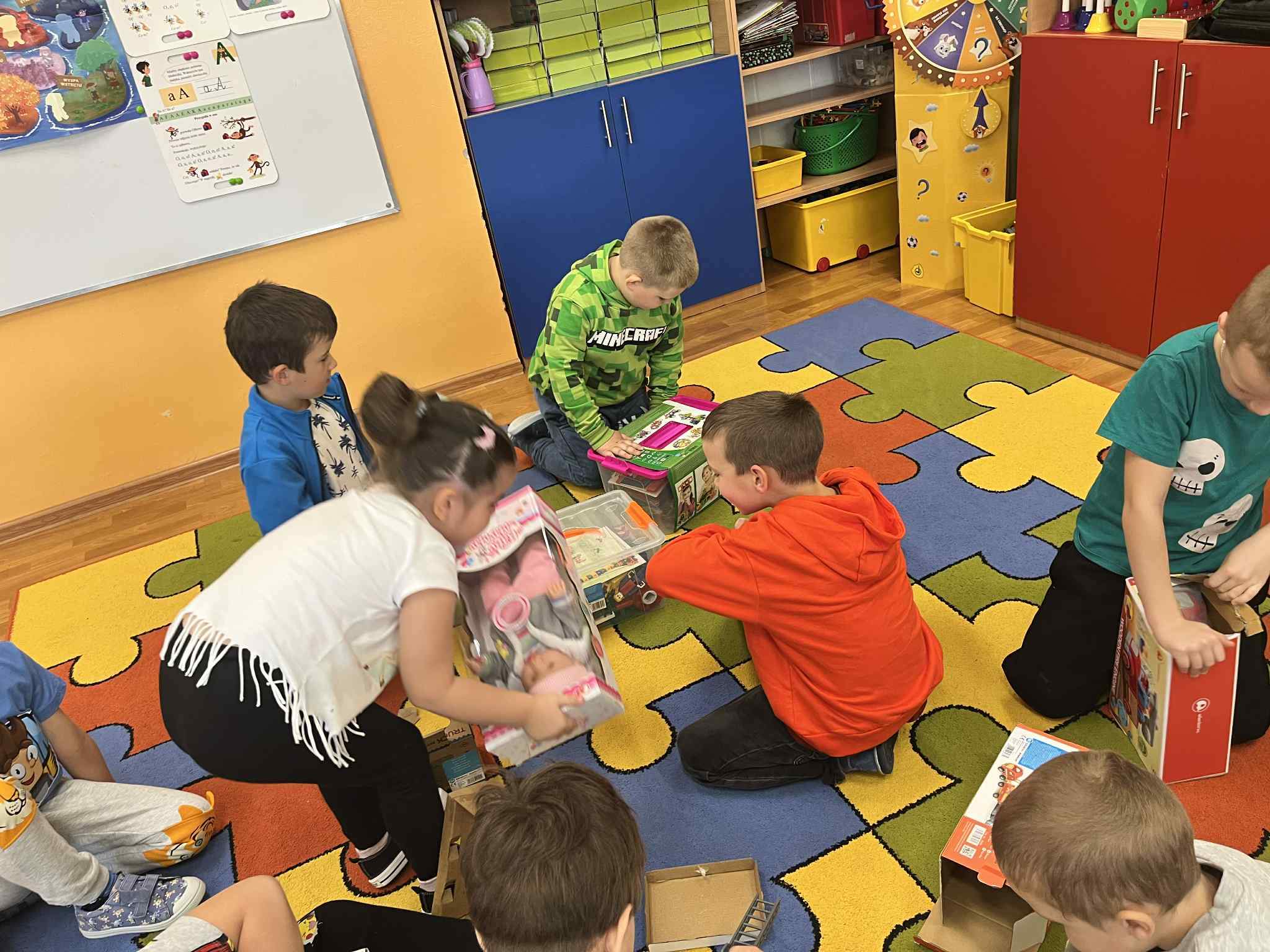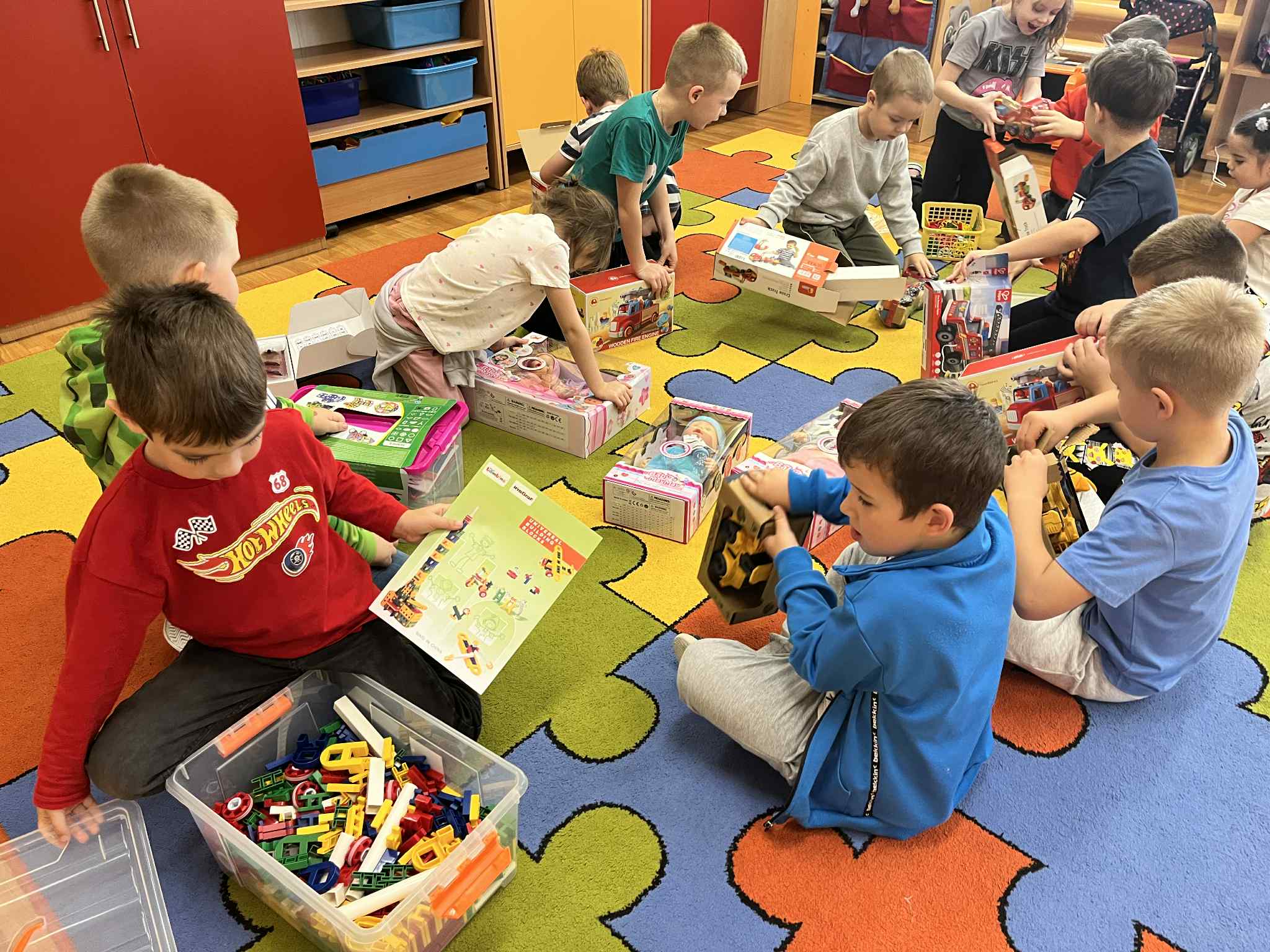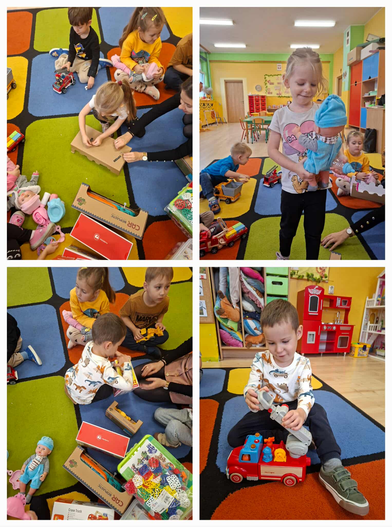 W każdej grupie w zależności od wieku i potrzeb pojawiły się nowe puzzle, lalki, samochody, układanki, klocki i wiele innych zabawek. Dzięki temu przedszkolaki mogą rozwijać wyobraźnię, zdolności manualne i współpracę w grupie – a przy tym po prostu świetnie się bawić!