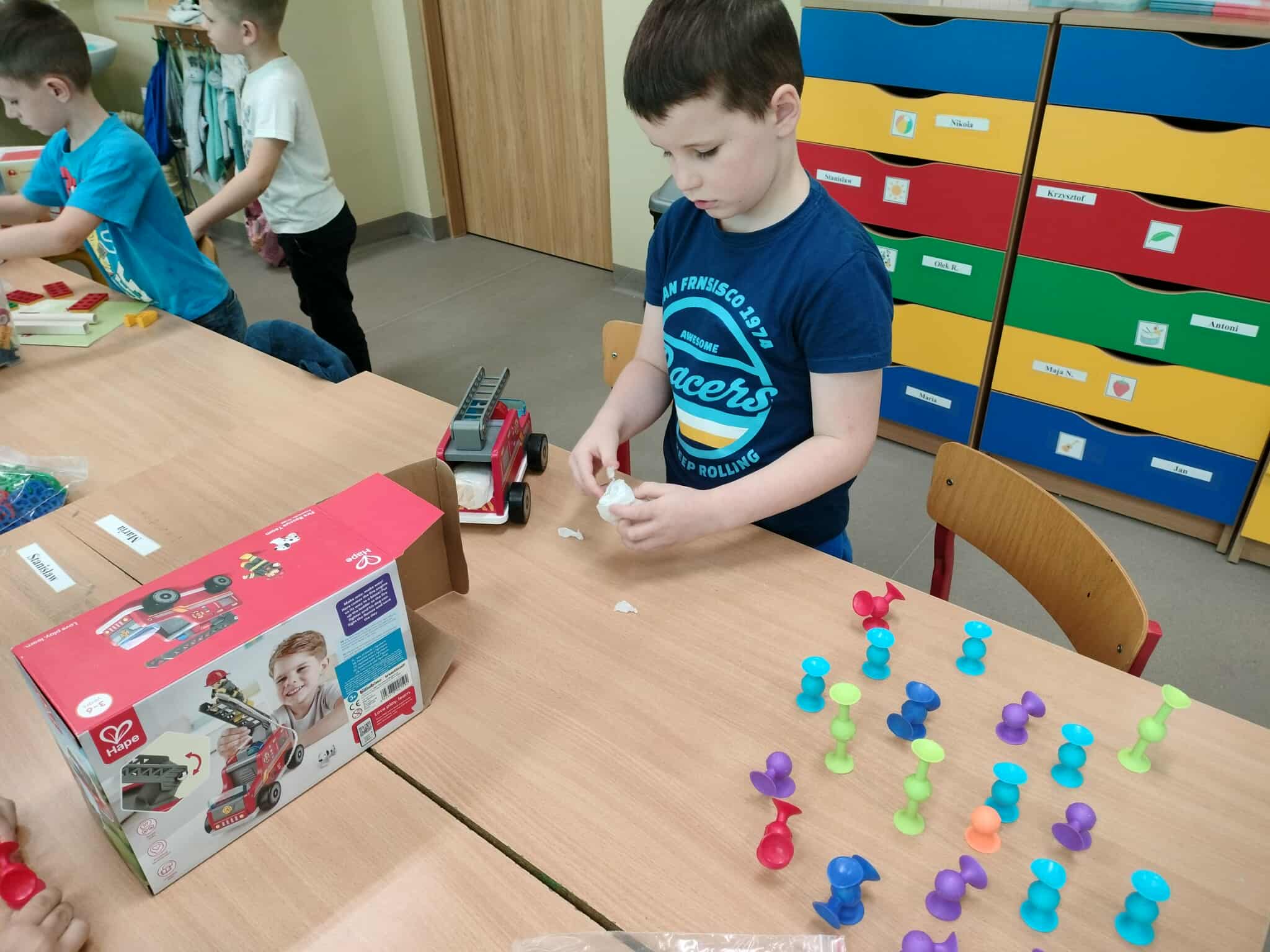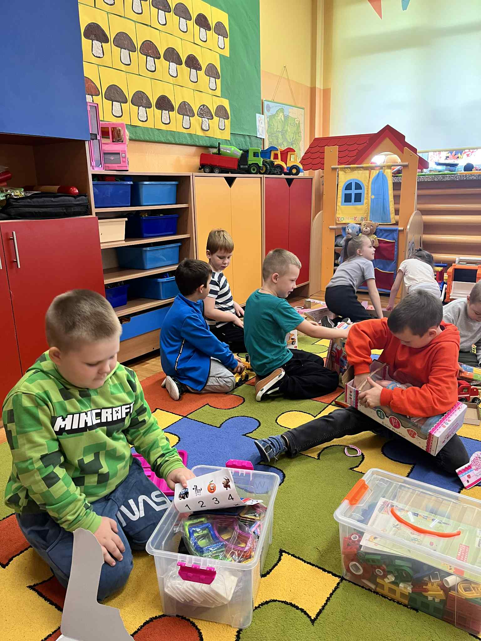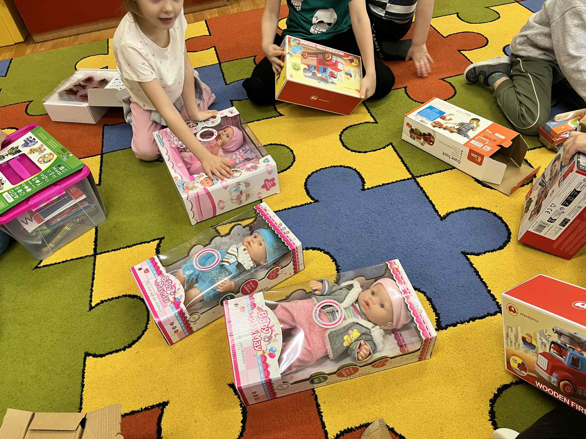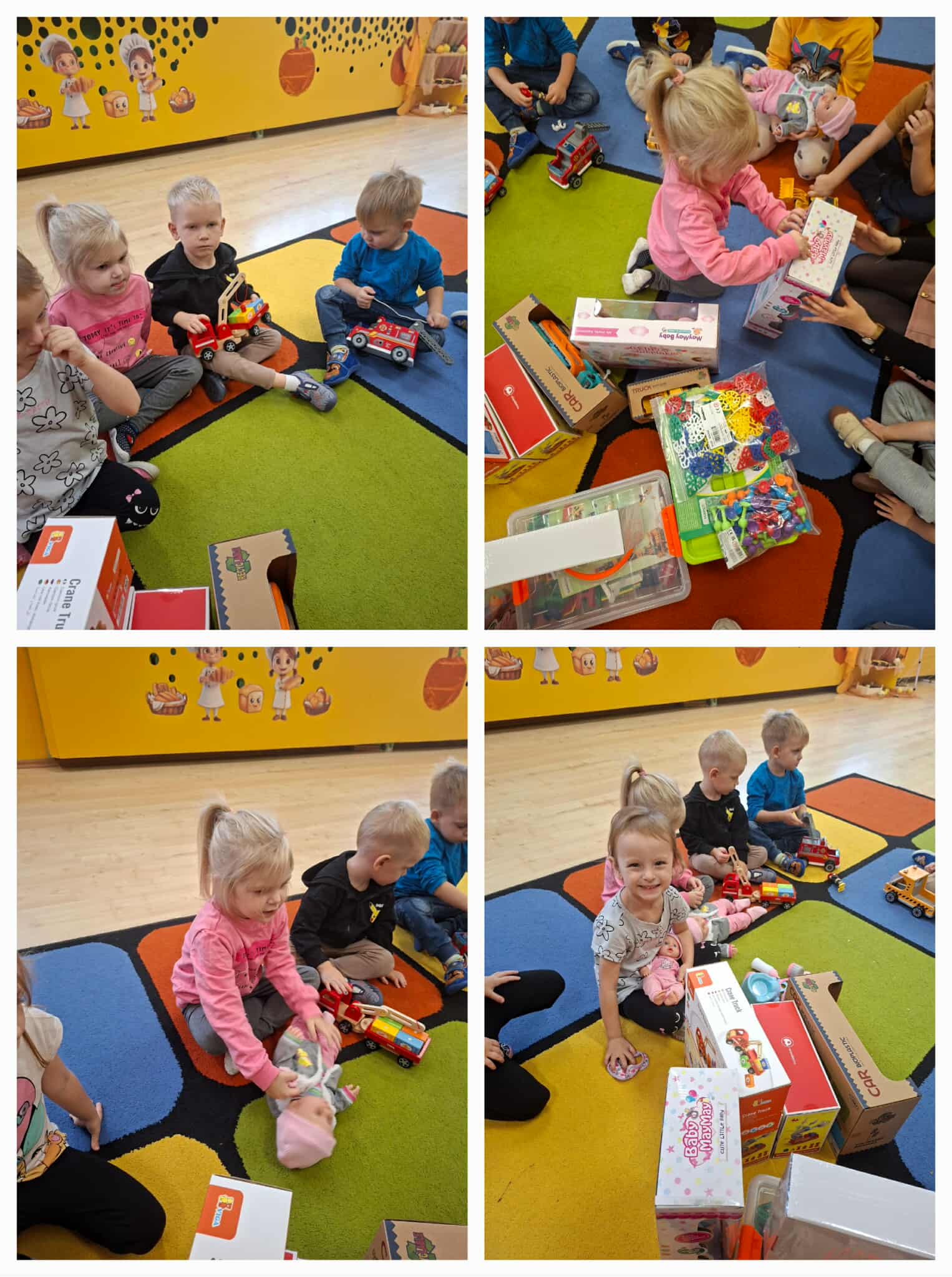 W każdej grupie w zależności od wieku i potrzeb pojawiły się nowe puzzle, lalki, samochody, układanki, klocki i wiele innych zabawek. Dzięki temu przedszkolaki mogą rozwijać wyobraźnię, zdolności manualne i współpracę w grupie – a przy tym po prostu świetnie się bawić!