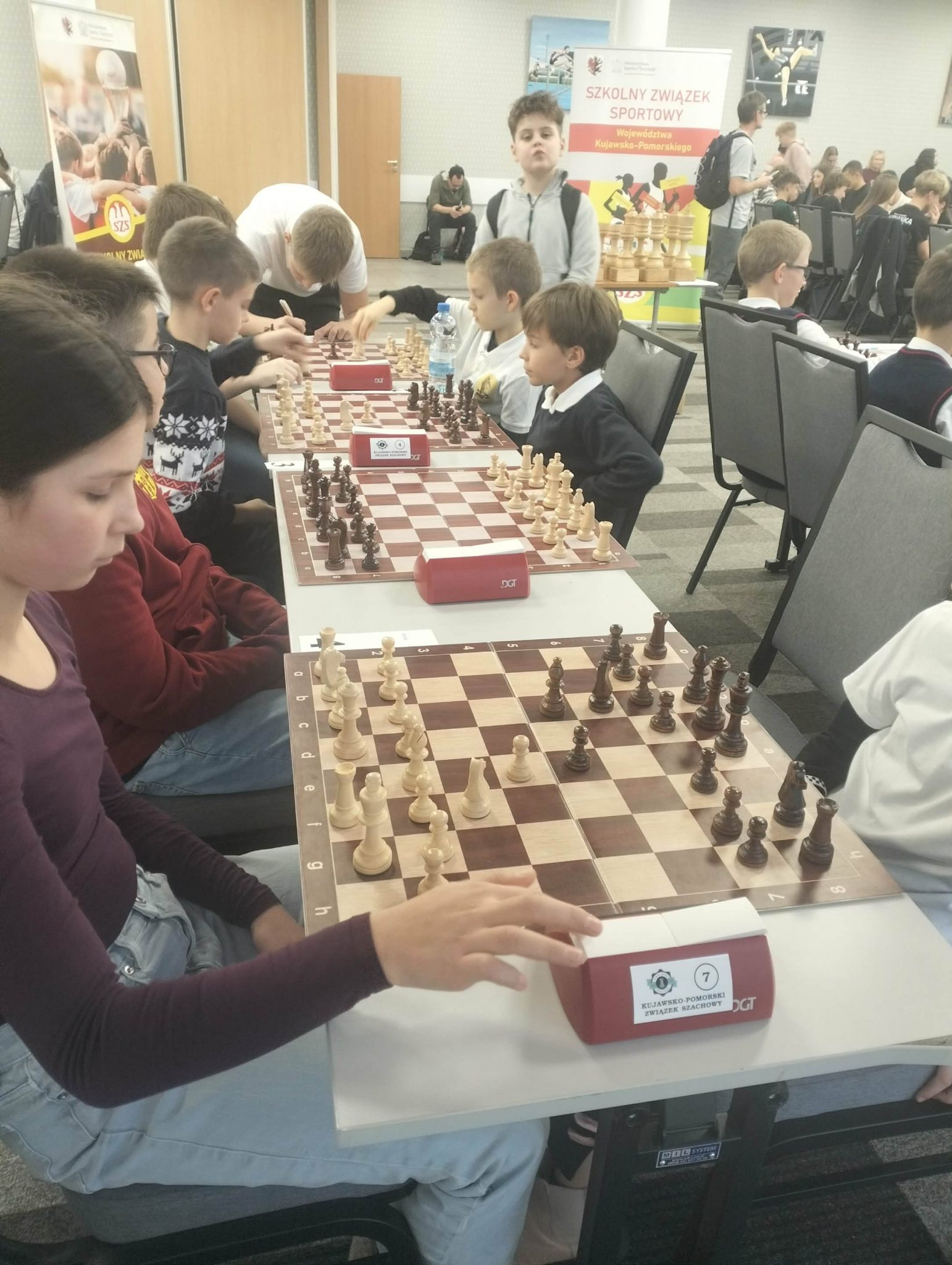 W piątek nasi szachiści reprezentowali szkołę na dwóch turniejach. Pierwsza drużyna w składzie: Igor Matusiak, Krzysztof Zeszut, Filip Opłatkowski i Patrycja Ptaszyńska ruszyła wczesnym rankiem do Bydgoszczy. Na etap wojewódzki zjechały najlepsze drużyny ze szkół z całego województwa. Po siedmiu pełnych emocji meczach nasza drużyna utrzymała się na XVI miejscu. To pierwszy występ drużynowej reprezentacji szkoły z klas I-VI. W drugim turnieju dla szkół z powiatu radziejowskiego w Pocierzynie w grupie klas VII-VIII pierwsze miejsce zajął Filip Skwarczyński, a trzecie Lena Maciejewska. W grupie klas I-III Franek Konopiński wywalczył srebrny medal, a brązowy przypadł Nadii Wróblewskiej. Gratulujemy i czekamy na kolejne szachowe emocje w turnieju Mikołajkowym w sobotę 13 grudnia. Zapraszamy wszystkich szachistów zarówno młodszych jaki i dorosłych na wielkie szachowanie w naszej szkole.