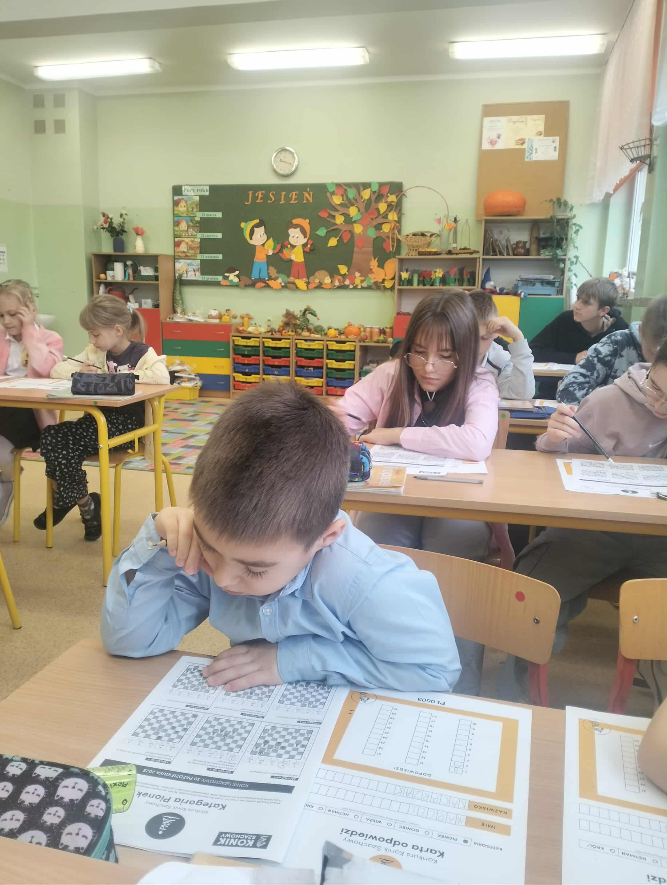 Nasi uczniowie w ciągu ostatniego tygodnia brali aktywny udział w wielu szachowych wyzwaniach. 25 i 26 października odbyły się Mistrzostwa Powiatu Toruńskiego w Szachach Klasycznych w Czernikowie. Od kilku lat nasi szachiści biorą udział w tym corocznym turnieju zdobywając doświadczenie i statuetki. Również w tym roku Patrycja Ptaszyńska kl. II przywiozła puchar za zajęcie III miejsca wśród kobiet, a Marcin Ptaszyński zdobył ponownie normę na V kategorię. W sobotę 25 października rozegrał się turniej szachowy w Sierpcu z udziałem Igora Matusiaka kl. II. Igor zdobył II miejsce w grupie juniorów z klas I-IV. W niedzielę 26 października w Szubinie odbyły się Indywidualne Mistrzostwa Województwa w Szachach Błyskawicznych z udziałem sióstr Maciejewskich. Lena wywalczyła kolejny tytuł – (tym razem błyskawicznej) Wicemistrzyni Województwa do lat 14, a Marysia uplasowała się na IV miejscu. 30 października nasza szkoła po raz pierwszy przystąpiła do ogólnopolskiego i jednocześnie międzynarodowego konkursu Konik Szachowy. 19 uczniów, w tym 5 wyjątkowo dzielnych pierwszoklasistów, przystąpiło do wyzwania i wraz z uczniami z całej Polsk oraz Hiszpanii, Francji, Włoch i Niemiec wykorzystało umiejętność gry w szachy do rozwiązywania zadań wymagających myślenia logicznego, analitycznego i strategicznego. Gratulujemy sukcesów i chęci rozwijania intelektualnych umiejętności.