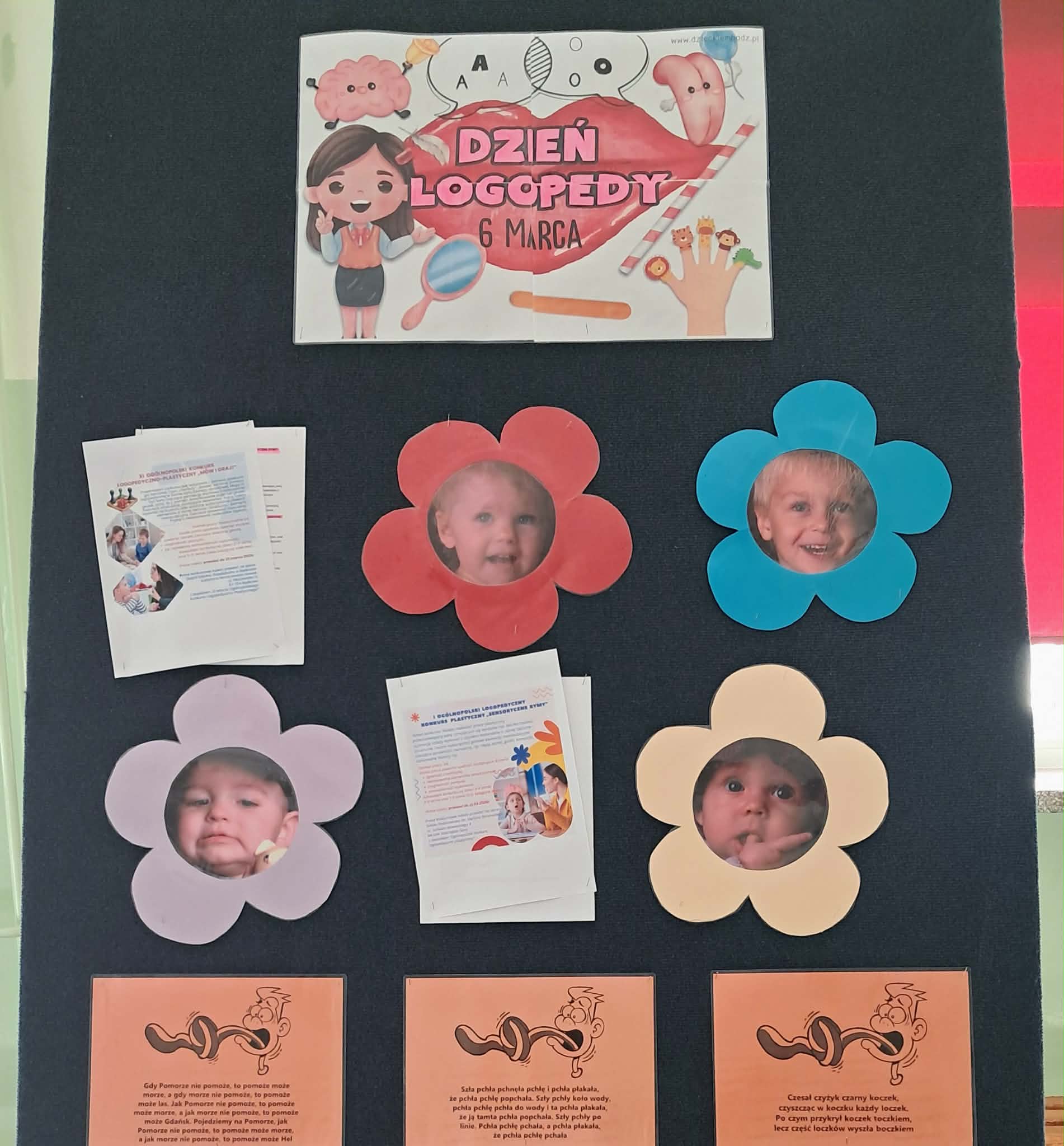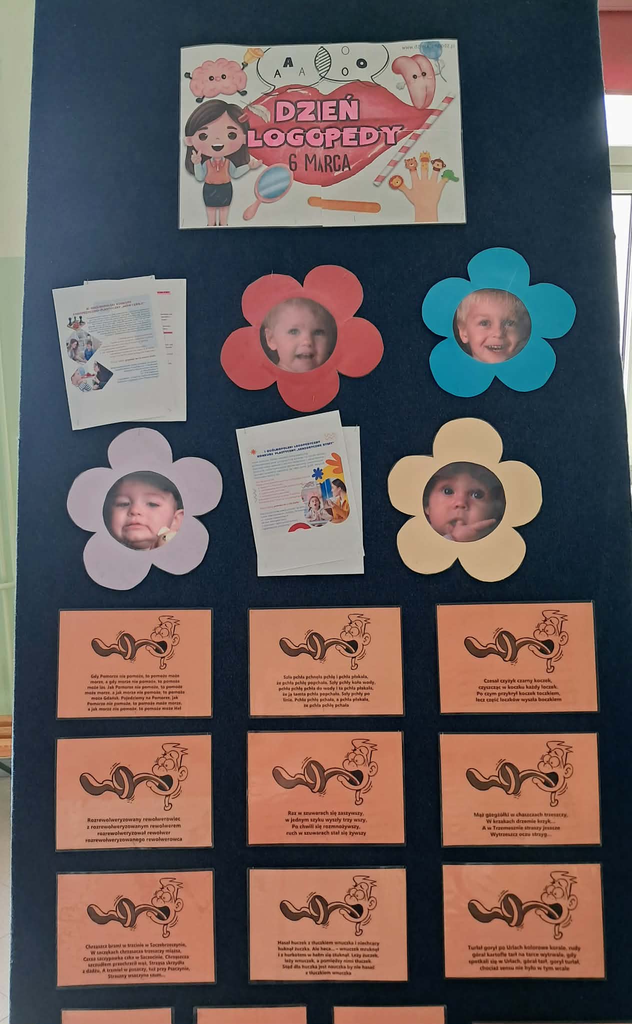 Na szkolnym korytarzu przygotowano gazetki ścienne tematyce logopedycznej zawierającą ciekawostki dotyczące mowy, wskazówki dotyczące ćwiczeń oraz przykładowe łamańce językowe. Uwieńczeniem tygodnia logopedycznego będzie szkolny konkurs logopedyczny dla uczniów klas 0-1, klas 2-3, w którym uczniowie mogli sprawdzić swoje umiejętności językowe oraz wiedzę z zakresu poprawnej wymowy.