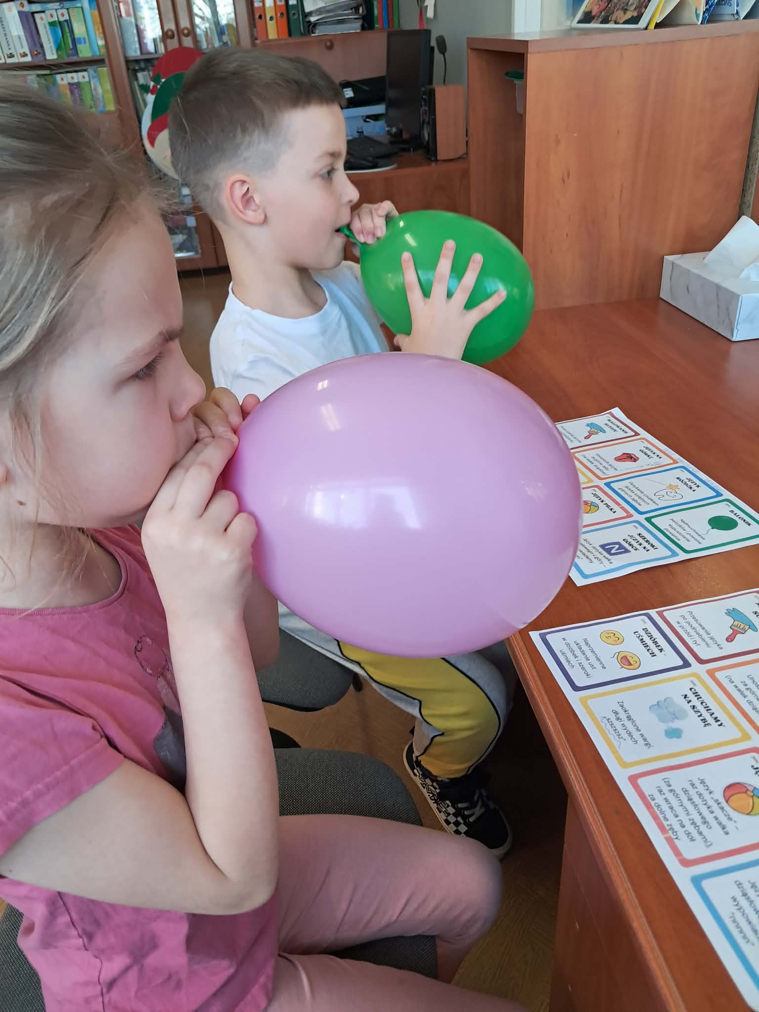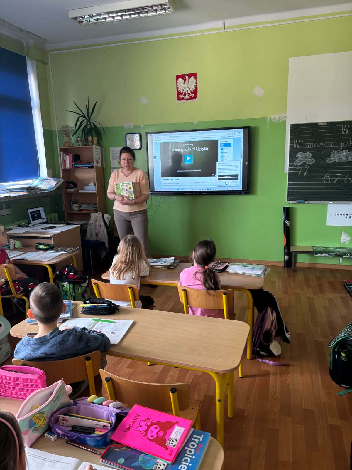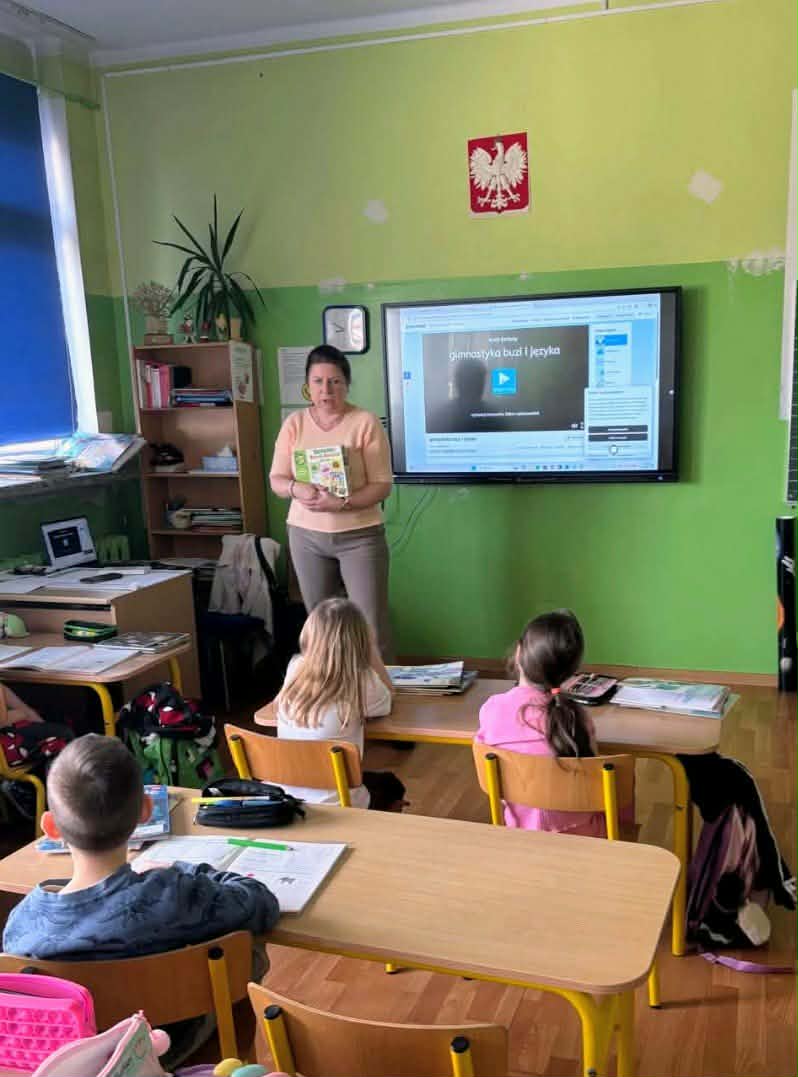 W klasach 1–2 przeprowadzono zajęcia mające na celu rozwijanie sprawności językowej uczniów oraz doskonalenie poprawnej wymowy. Podczas spotkań uczniowie wykonywali różnorodne ćwiczenia usprawniające aparat mowy: ćwiczenia języka, warg i policzków, które wspomagają prawidłową artykulację głosek.