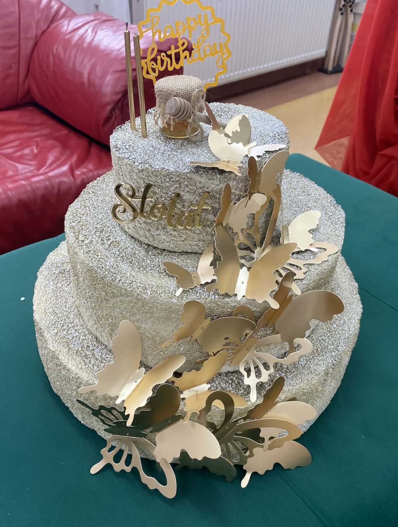 Podczas świętowania nie zabrakło słodkiego poczęstunku – przysmaku misia, czyli miodu i ogromnego tortu wykonanego przez bibliotekarkę, który podkreślił urodzinowy charakter spotkania. Wznoszono toast przepyszną rozgrzewającą herbatką z miodem, cytryną, imbirem i dużą dawką bibliotecznej energii. Goście biblioteki świetnie się bawili, a Kubuś Puchatek na pewno był zadowolony z takiego świętowania.