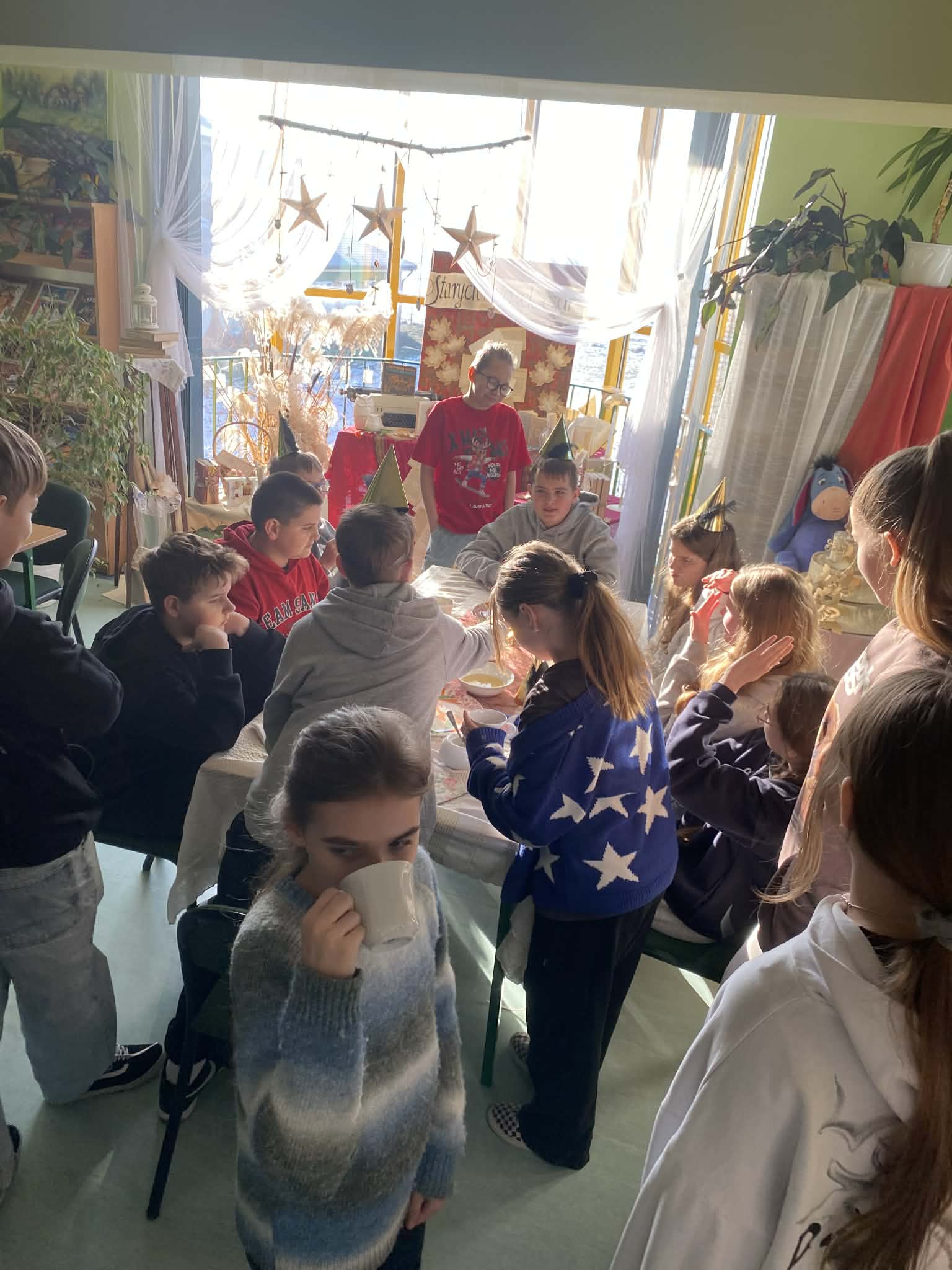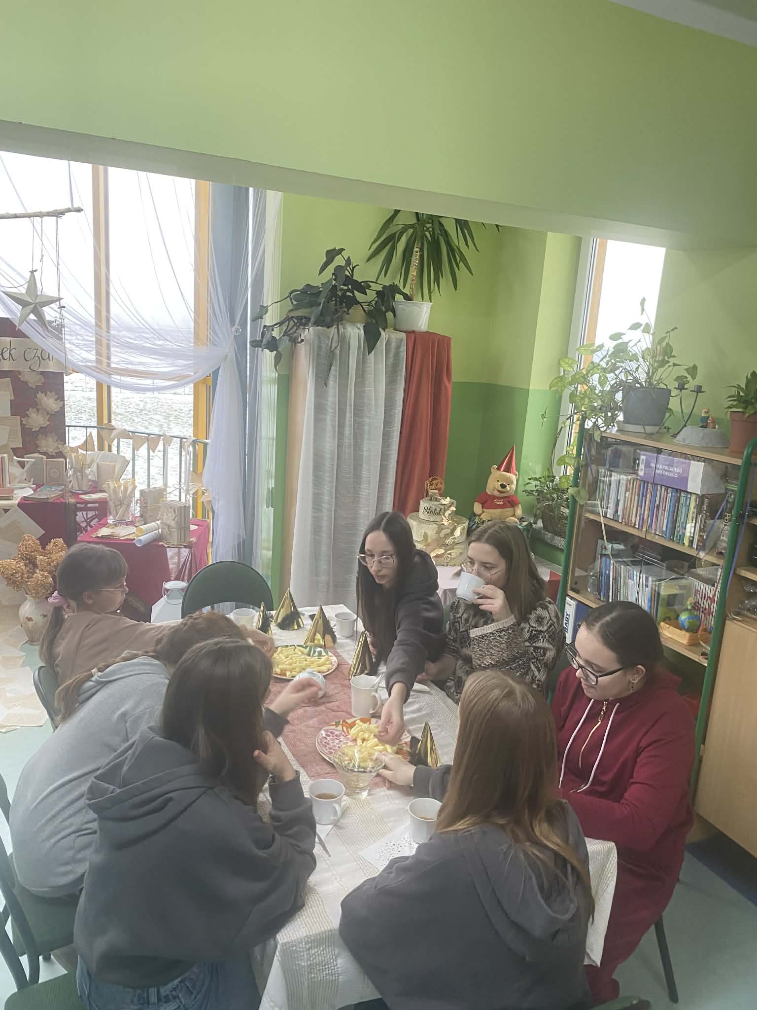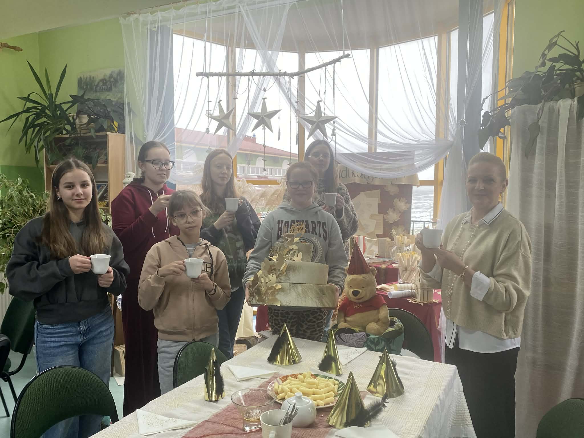 16 i 19 stycznia 2026 roku biblioteka szkolna zaprosiła uczniów klas 4–8 na wyjątkową herbatkę urodzinową w towarzystwie Kubusia Puchatka i jego przyjaciół ze Stumilowego Lasu. W trakcie spotkania uczniowie mieli okazję przenieść się w świat znanej i lubianej książki A. A. Milne’a, by wspólnie świętować urodziny najpopularniejszego misia w literaturze dziecięcej, który w tym roku kończył 100 lat! Wydarzenie miało na celu nie tylko przypomnienie klasycznej lektury, ale także pokazanie, że ta znana i lubiana opowieść wciąż jest aktualna i wartościowa również dla starszych czytelników. Kubuś Puchatek to jedna z tych bajek, która przetrwała próbę czasu i do dziś bawi kolejne pokolenia. Bohater stworzony przez Alana Alexandra Milne’a ma nawet swoje święto – Winnie the Pooh Day – obchodzone 18 stycznia, w rocznicę urodzin pisarza. Dzień Kubusia Puchatka to tak naprawdę dzień każdego z nas: bo kto nie porównywał się kiedyś do mieszkańców Stumilowego Lasu? Jeden widział w sobie Kłapouchego, inny „był” Prosiaczkiem, a ktoś brykał beztrosko przez życie jak Tygrysek. To za pokazanie naszych cech, przywar i atutów pod urokliwym przebraniem kochamy opowieści o Kubusiu i jego przyjaciołach.