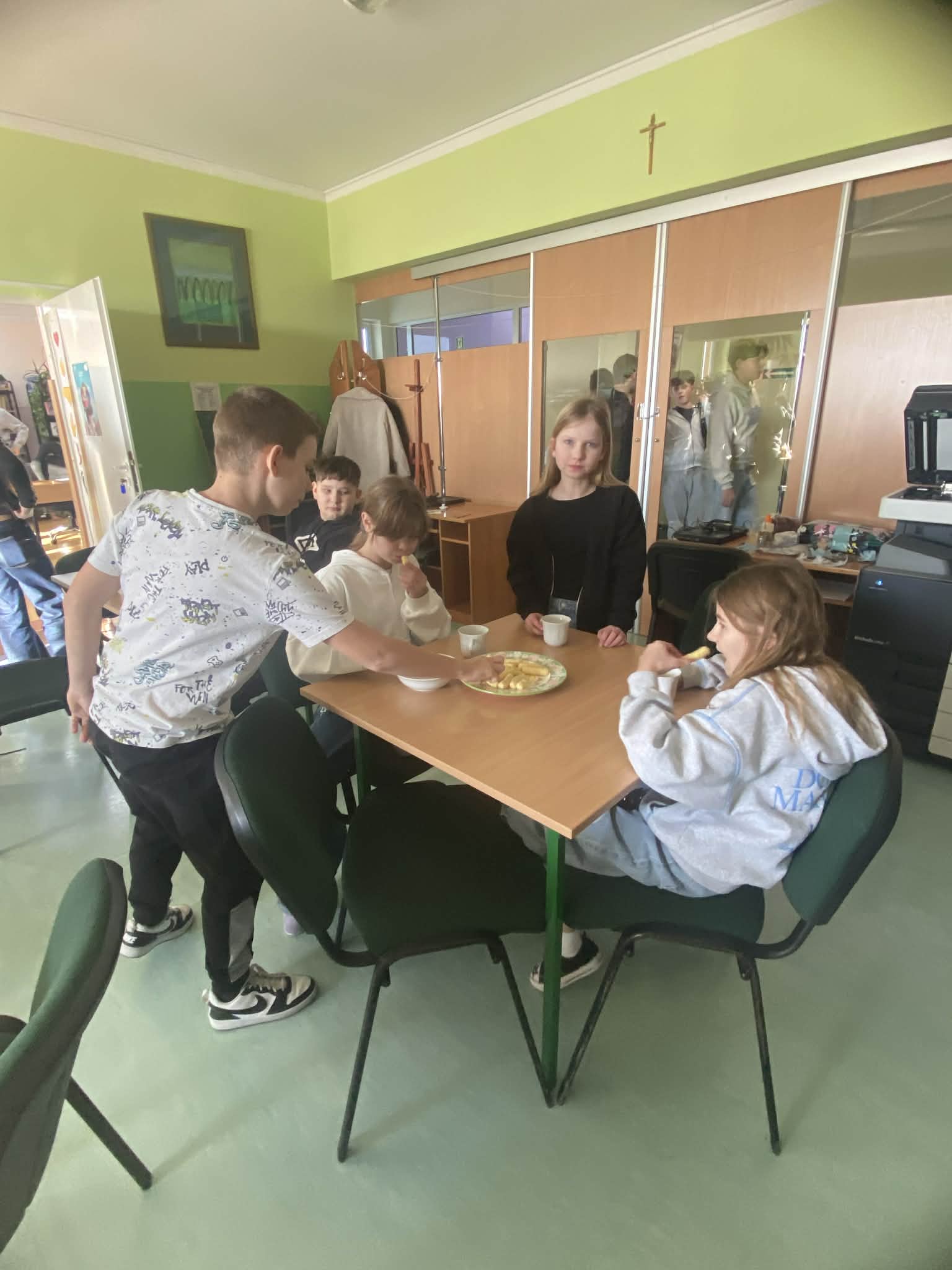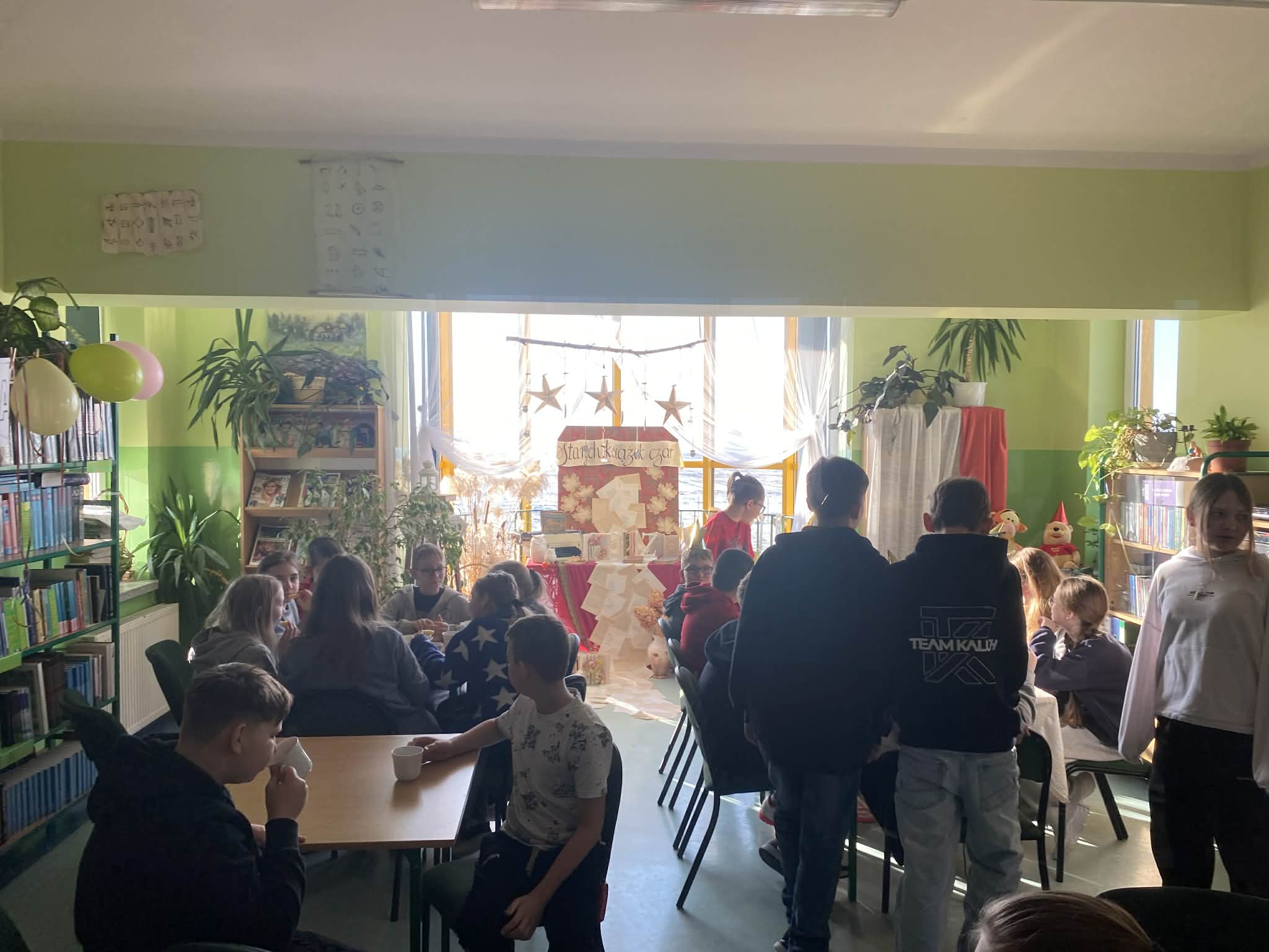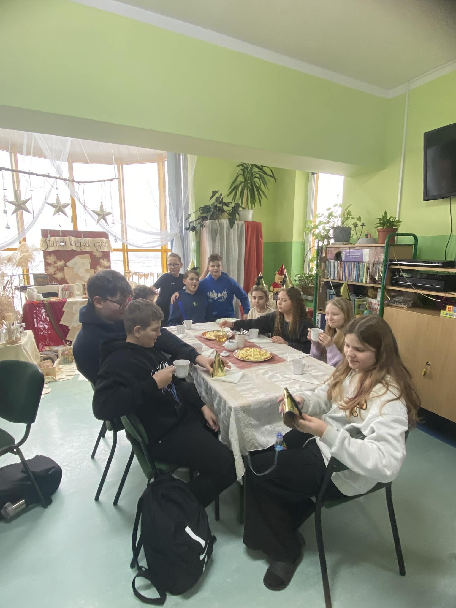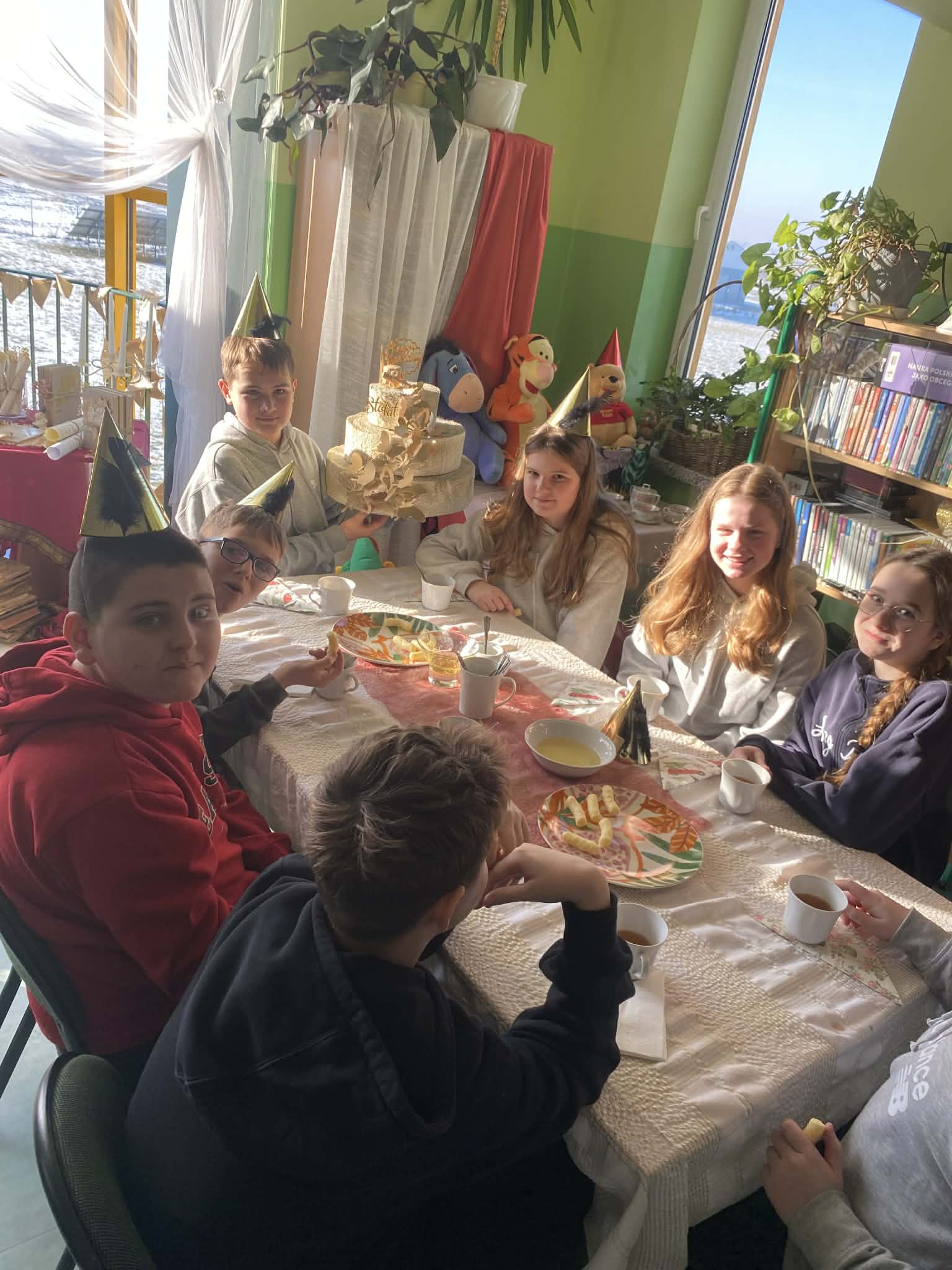 16 i 19 stycznia 2026 roku biblioteka szkolna zaprosiła uczniów klas 4–8 na wyjątkową herbatkę urodzinową w towarzystwie Kubusia Puchatka i jego przyjaciół ze Stumilowego Lasu. W trakcie spotkania uczniowie mieli okazję przenieść się w świat znanej i lubianej książki A. A. Milne’a, by wspólnie świętować urodziny najpopularniejszego misia w literaturze dziecięcej, który w tym roku kończył 100 lat! Wydarzenie miało na celu nie tylko przypomnienie klasycznej lektury, ale także pokazanie, że ta znana i lubiana opowieść wciąż jest aktualna i wartościowa również dla starszych czytelników. Kubuś Puchatek to jedna z tych bajek, która przetrwała próbę czasu i do dziś bawi kolejne pokolenia. Bohater stworzony przez Alana Alexandra Milne’a ma nawet swoje święto – Winnie the Pooh Day – obchodzone 18 stycznia, w rocznicę urodzin pisarza. Dzień Kubusia Puchatka to tak naprawdę dzień każdego z nas: bo kto nie porównywał się kiedyś do mieszkańców Stumilowego Lasu? Jeden widział w sobie Kłapouchego, inny „był” Prosiaczkiem, a ktoś brykał beztrosko przez życie jak Tygrysek. To za pokazanie naszych cech, przywar i atutów pod urokliwym przebraniem kochamy opowieści o Kubusiu i jego przyjaciołach.