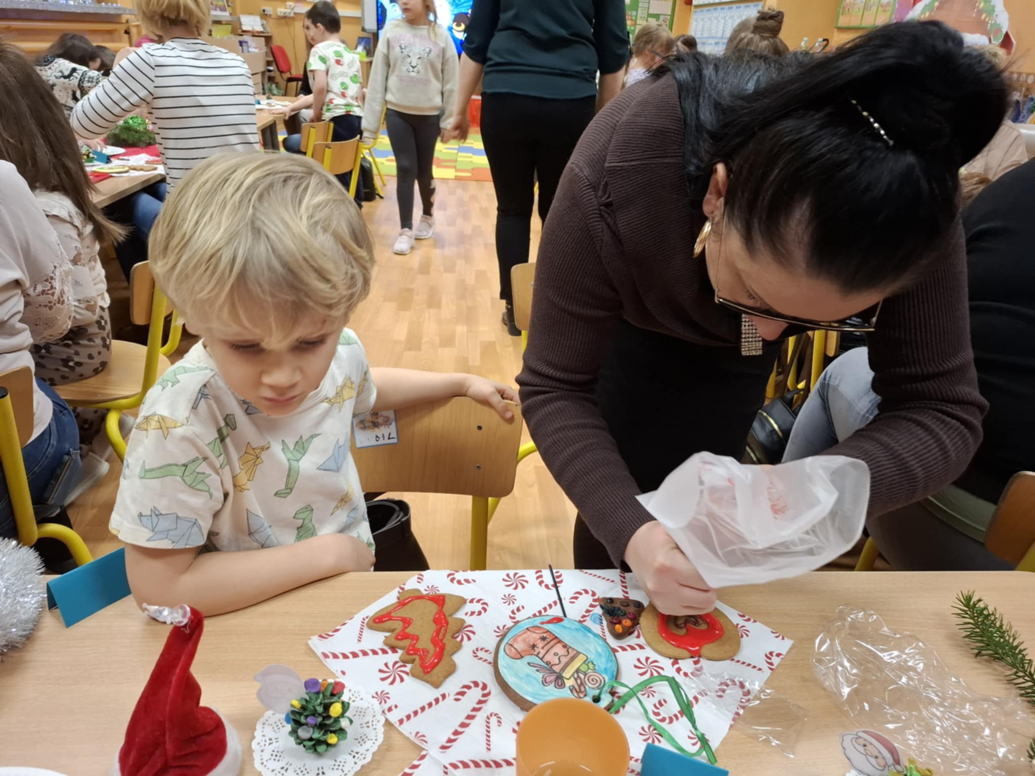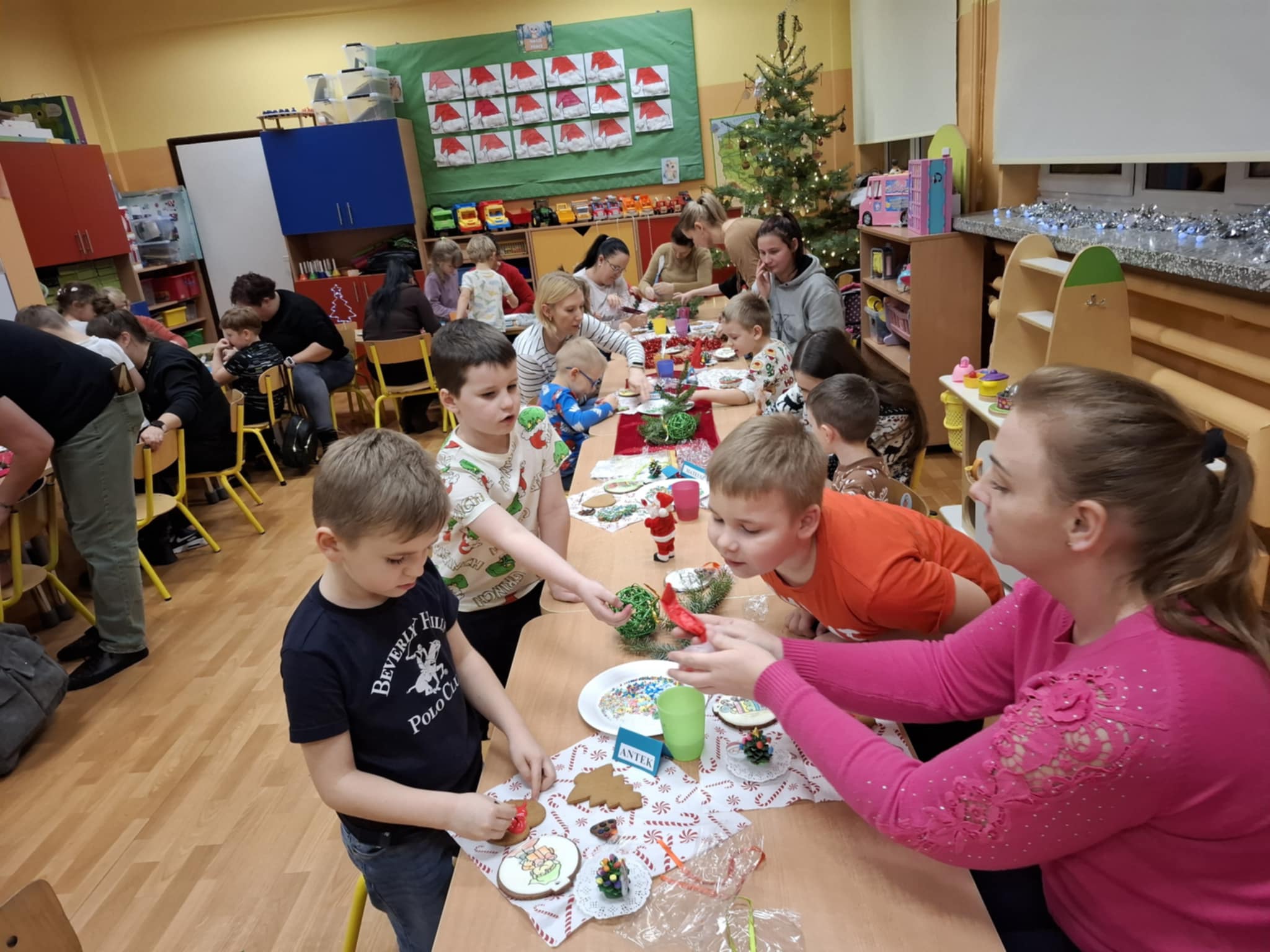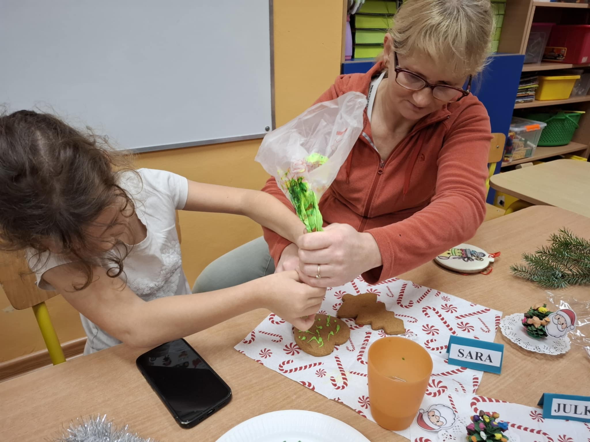 Nic tak słodko nie przywodzi na myśl Bożego Narodzenia jak lukrowane ciasteczka. U naszych Lisków  zapachnialo dziś piernikami. Wspólna twórczość w atmosferze zabawy, zaangażowanie, przeżyte emocje, a co najważniejsze czas, który dzieci spędziły z rodzicami to bardzo cenne doświadczenie dla obu stron.  Warsztaty kulinarne poprzedzone  zajeciami utrwalajacymi wiadomości matematyczne na długo pozostaną  w naszej  pamięci.
