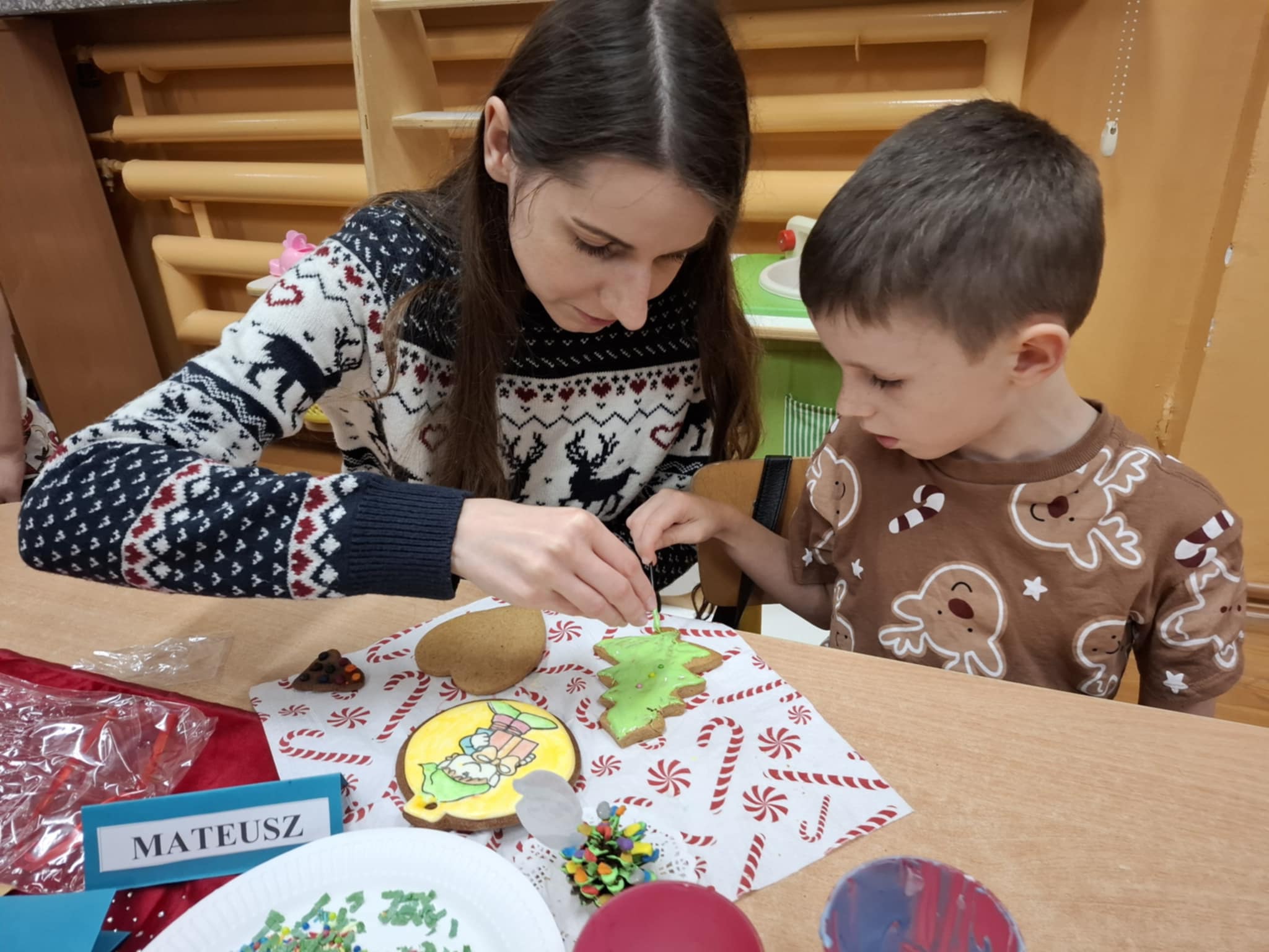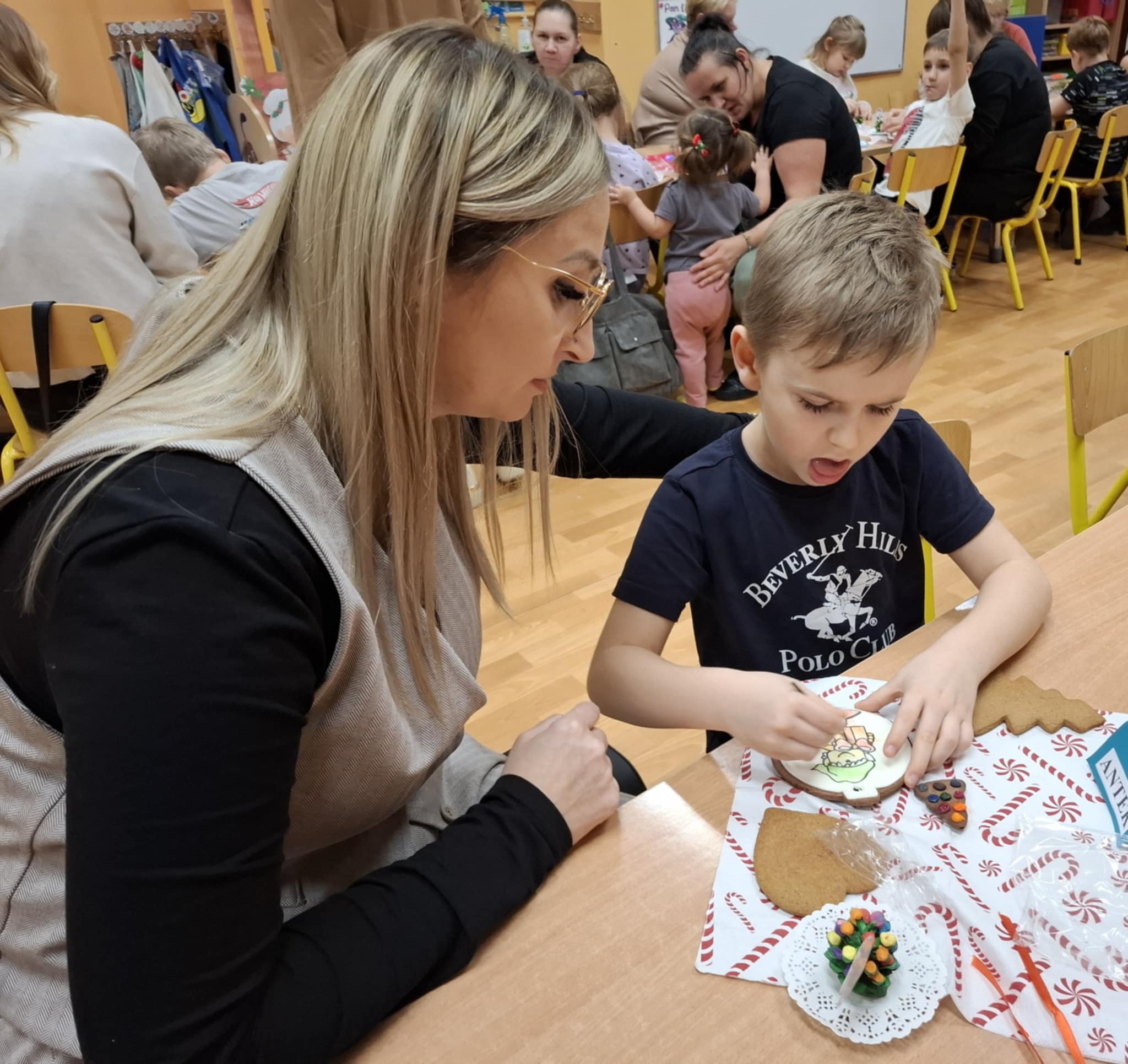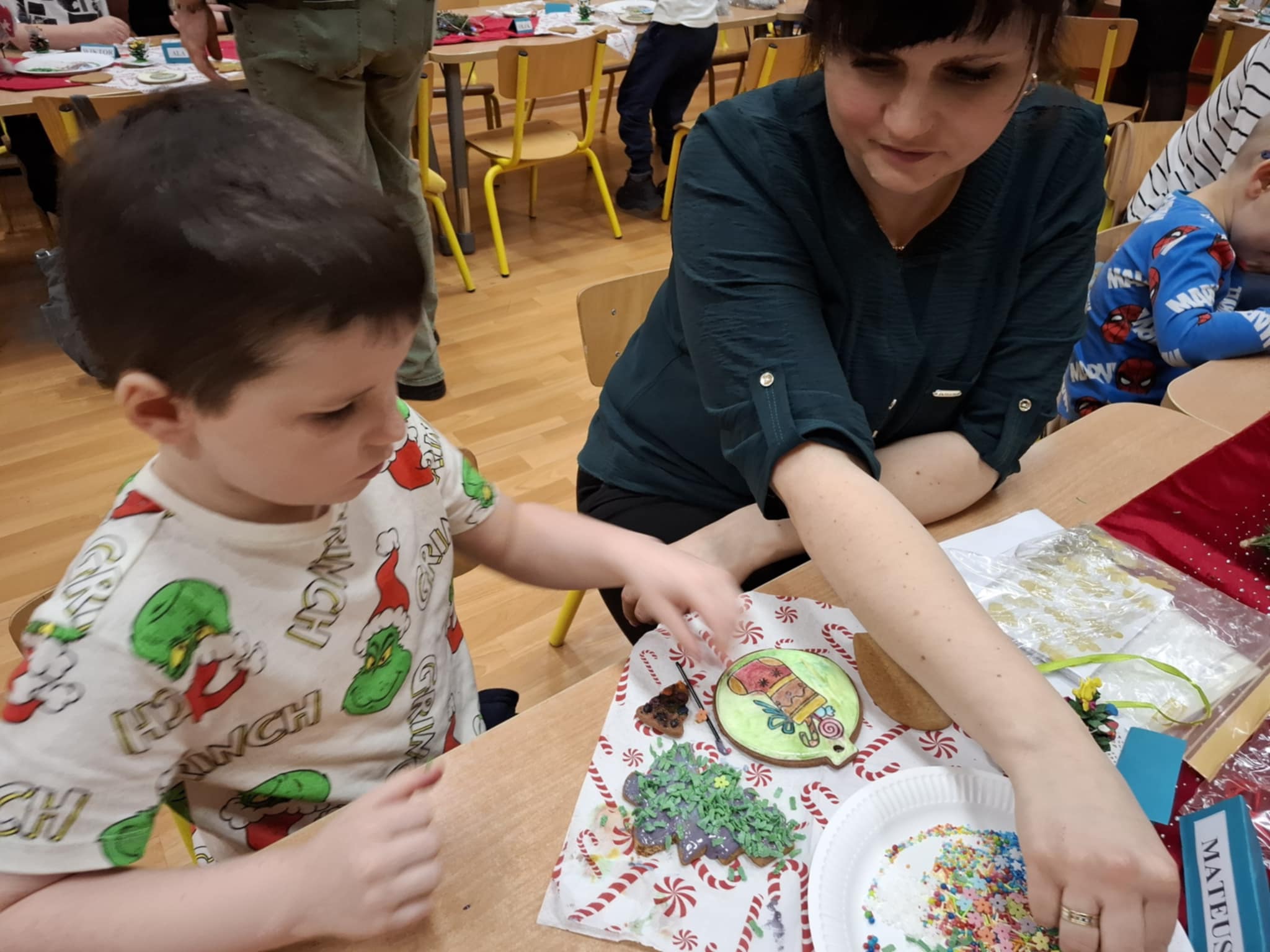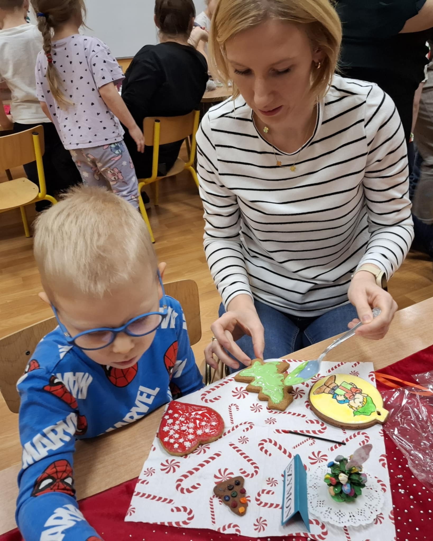 Nic tak słodko nie przywodzi na myśl Bożego Narodzenia jak lukrowane ciasteczka. U naszych Lisków  zapachnialo dziś piernikami. Wspólna twórczość w atmosferze zabawy, zaangażowanie, przeżyte emocje, a co najważniejsze czas, który dzieci spędziły z rodzicami to bardzo cenne doświadczenie dla obu stron.  Warsztaty kulinarne poprzedzone  zajeciami utrwalajacymi wiadomości matematyczne na długo pozostaną  w naszej  pamięci.