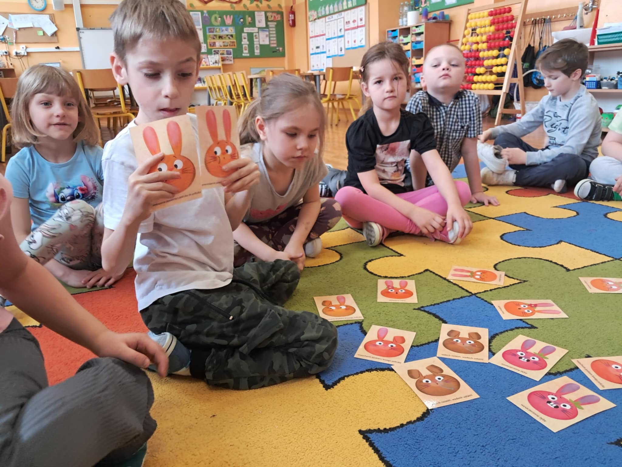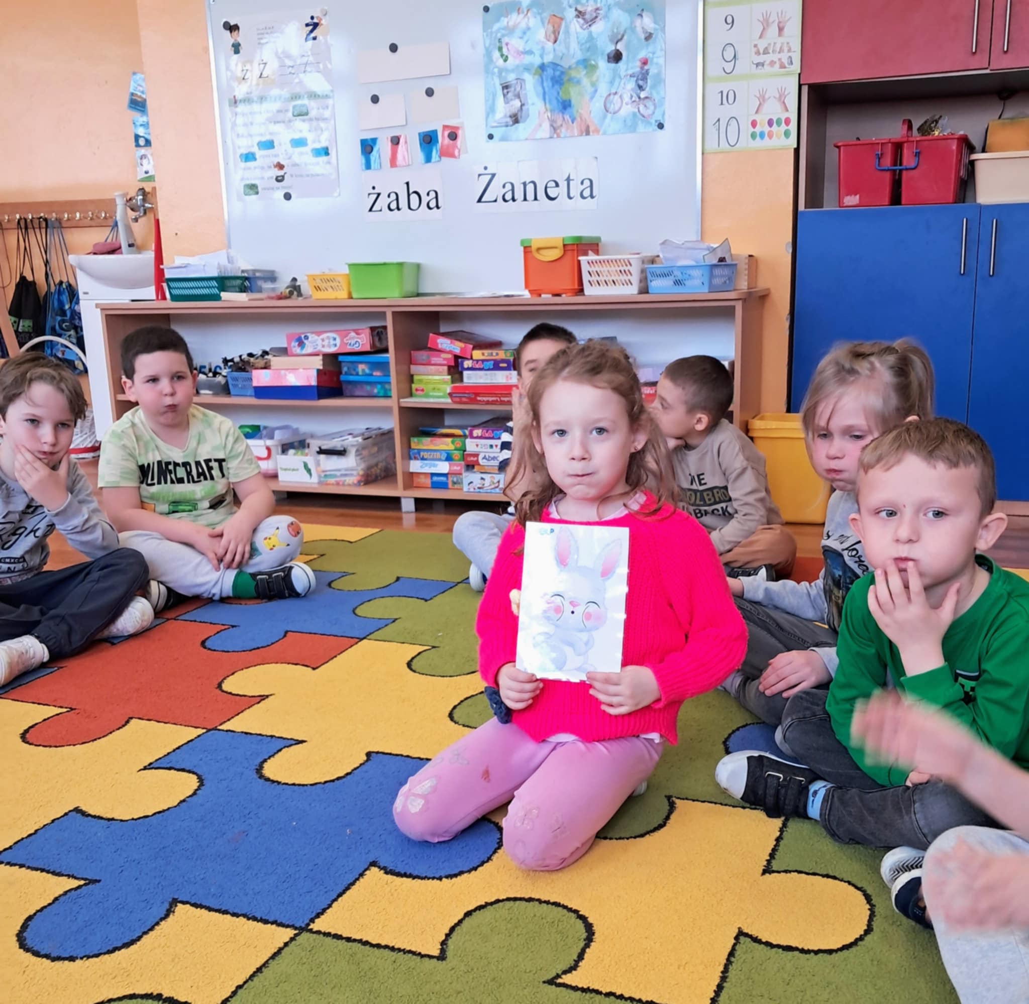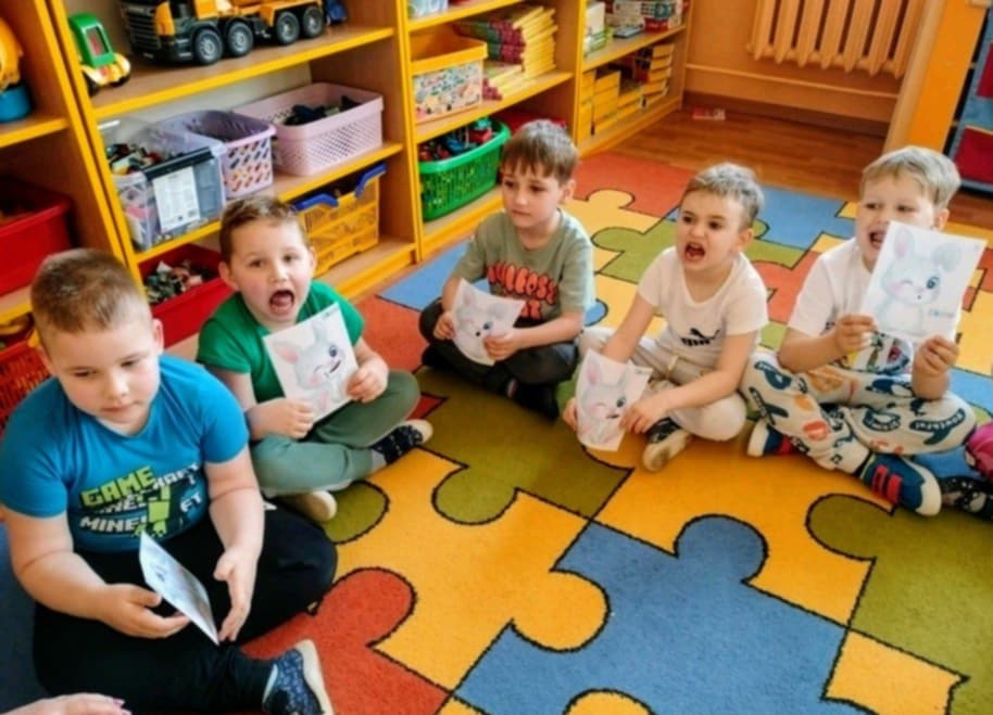 Z okazji zbliżających się Świąt Wielkanocnych w grupach przedszkolnych odbyły się tematyczne zajęcia logopedyczne. Dzieci chętnie rozmawiały o tradycjach i zwyczajach oraz symbolach tych świąt. Podczas zajęć z zaangażowaniem ćwiczyły aparat mowy: język, wargi i żuchwę, usprawniały oddechy oraz doskonaliły poprawną wymowę. Dzieci świetnie bawiły się z zajączkami.