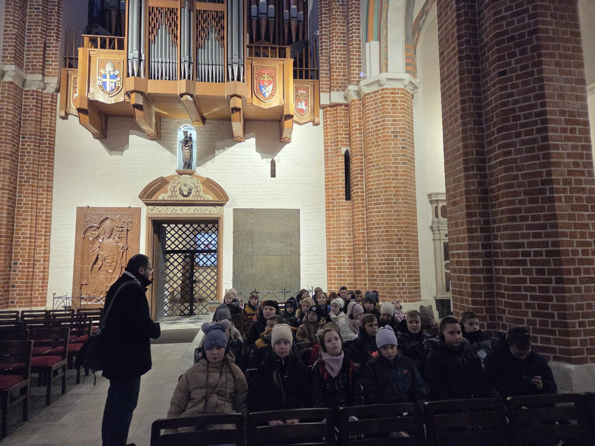 3 grudnia 2025 r. uczniowie klasy 3a i 3b z opiekunami uczestniczyli w wycieczce do Gniezna – pierwszej stolicy Polski. Pierwszym etapem podróży było zwiedzanie Katedry Gnieźnieńskiej, która stanowiła miejsce ważnych wydarzeń historycznych. Uczniowie zobaczyli m.in. srebrny relikwiarz z relikwiami Św. Wojciecha, a także bezcenny skarb sztuki romańskiej, jakim są Drzwi Gnieźnieńskie, na których zapisano historię życia św. Wojciecha.