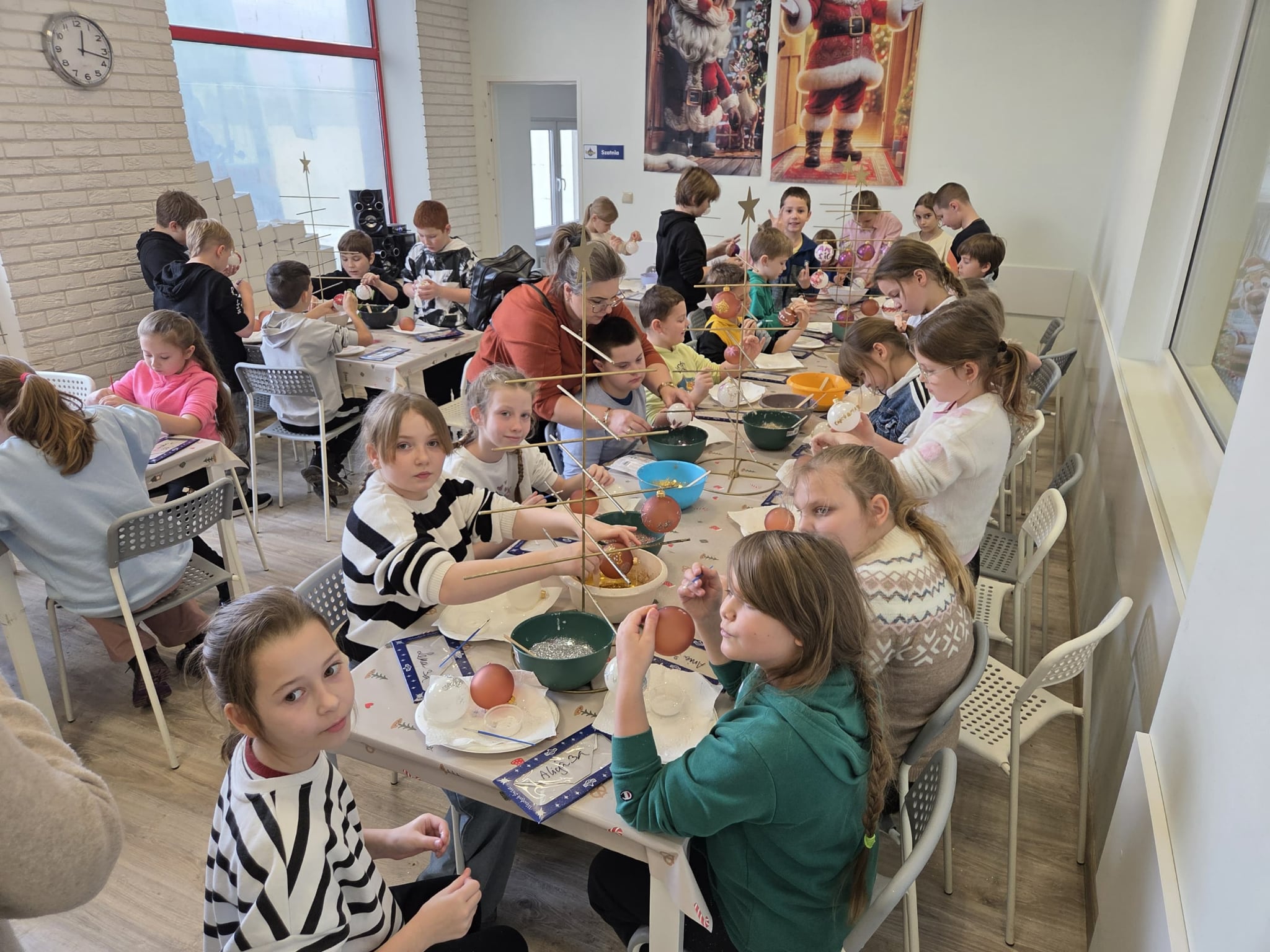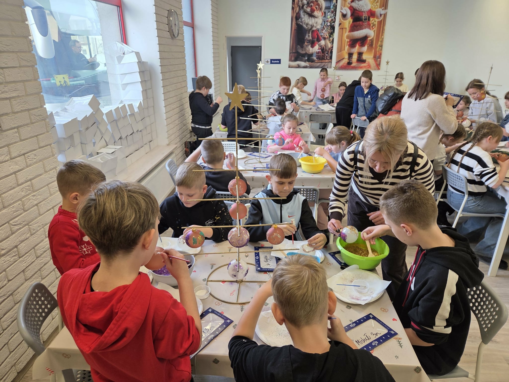 Następnym punktem wycieczki była Fabryka Bombek. Uczniowie zapoznali się z procesem powstawania bombek choinkowych. Zwiedzili poszczególne działy produkcyjne: dmuchalnię, srebrzalnię, lakiernię oraz dekoratornię. Następnie uczniowie uczestniczyli w warsztatach podczas, których dekorowali według własnego pomysłu bombki. Na koniec wycieczki wszyscy udali się do firmowego sklepu, aby dokonać zakupu świątecznych ozdób dla siebie i dla swoich bliskich. Na zakończenie każdy otrzymał przepięknie udekorowaną bombkę z własnym imieniem.
