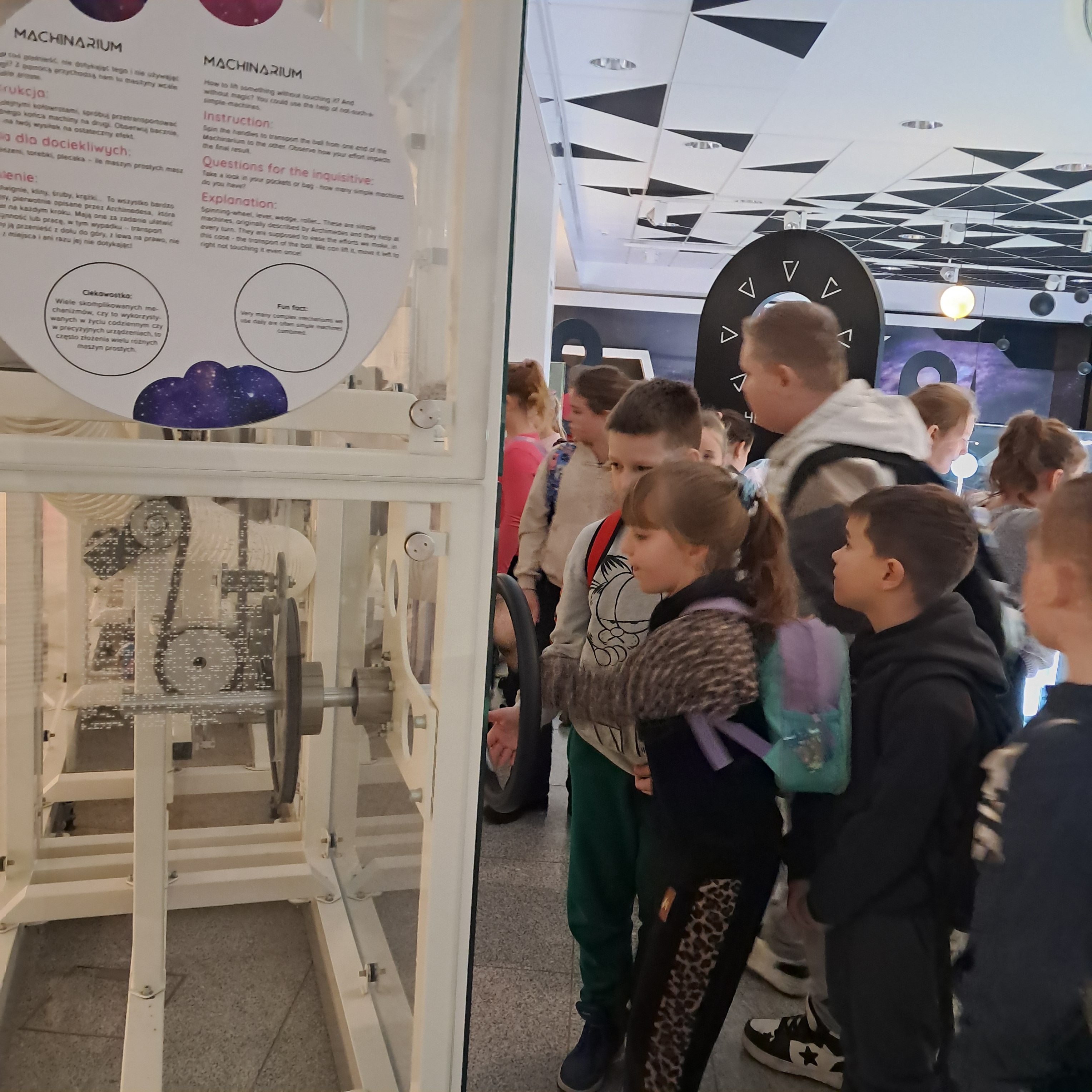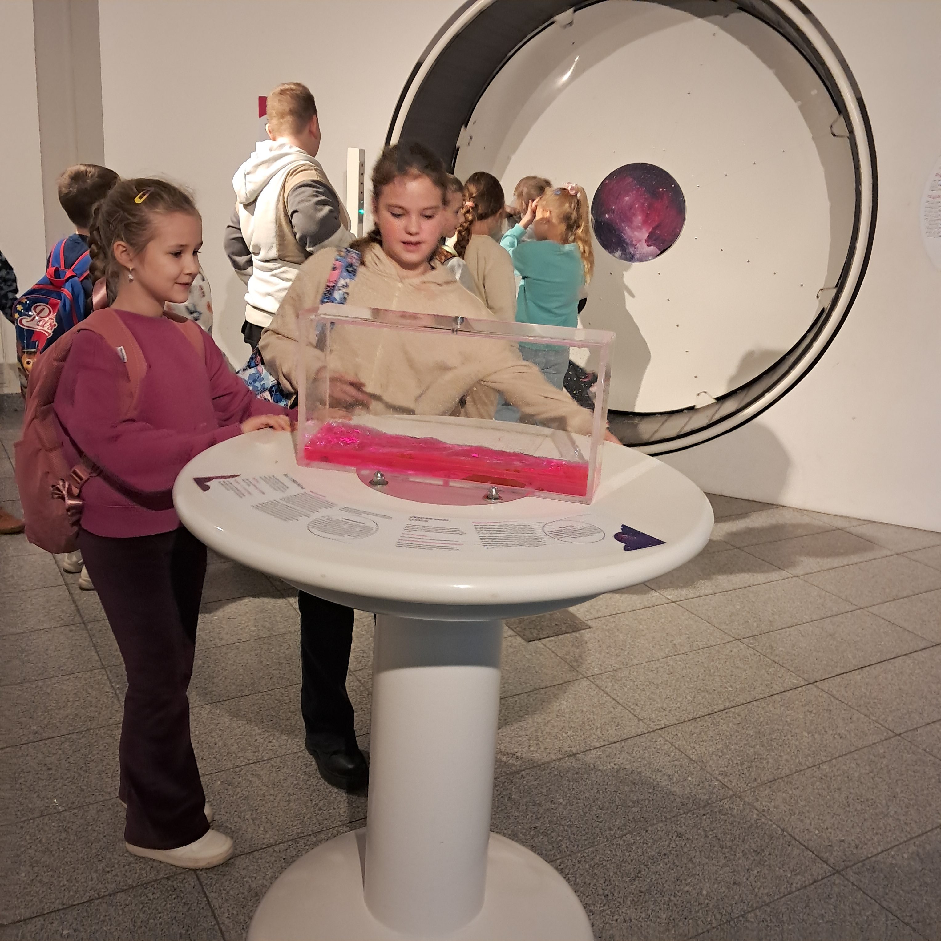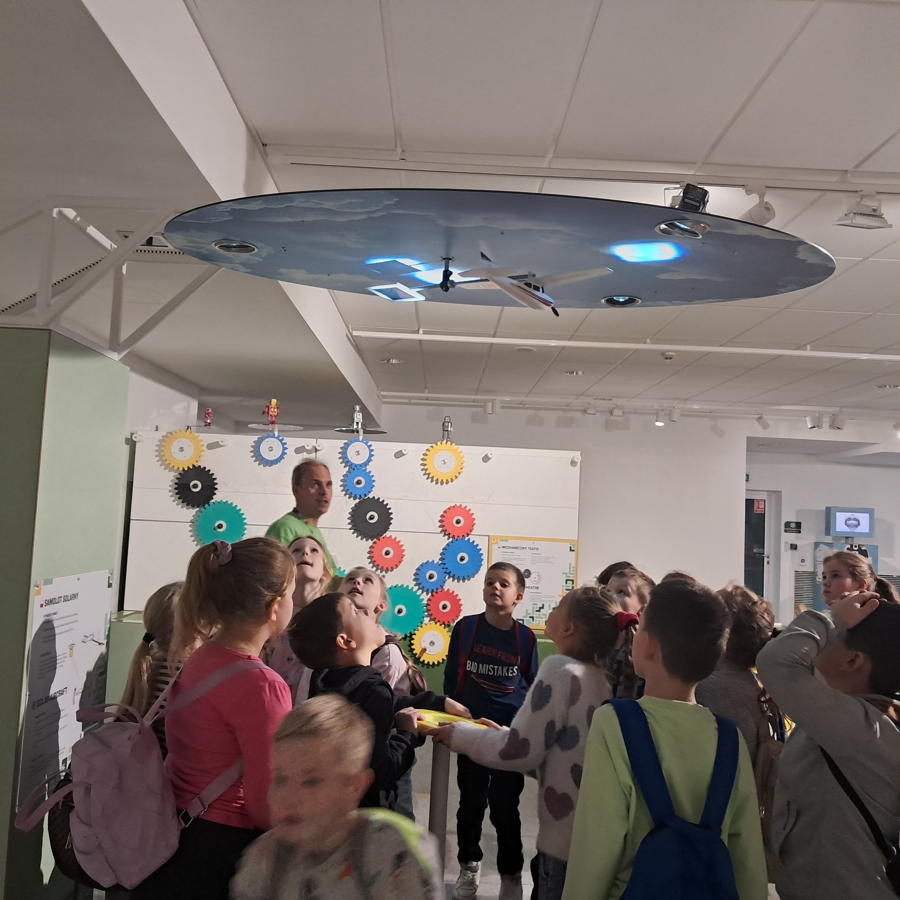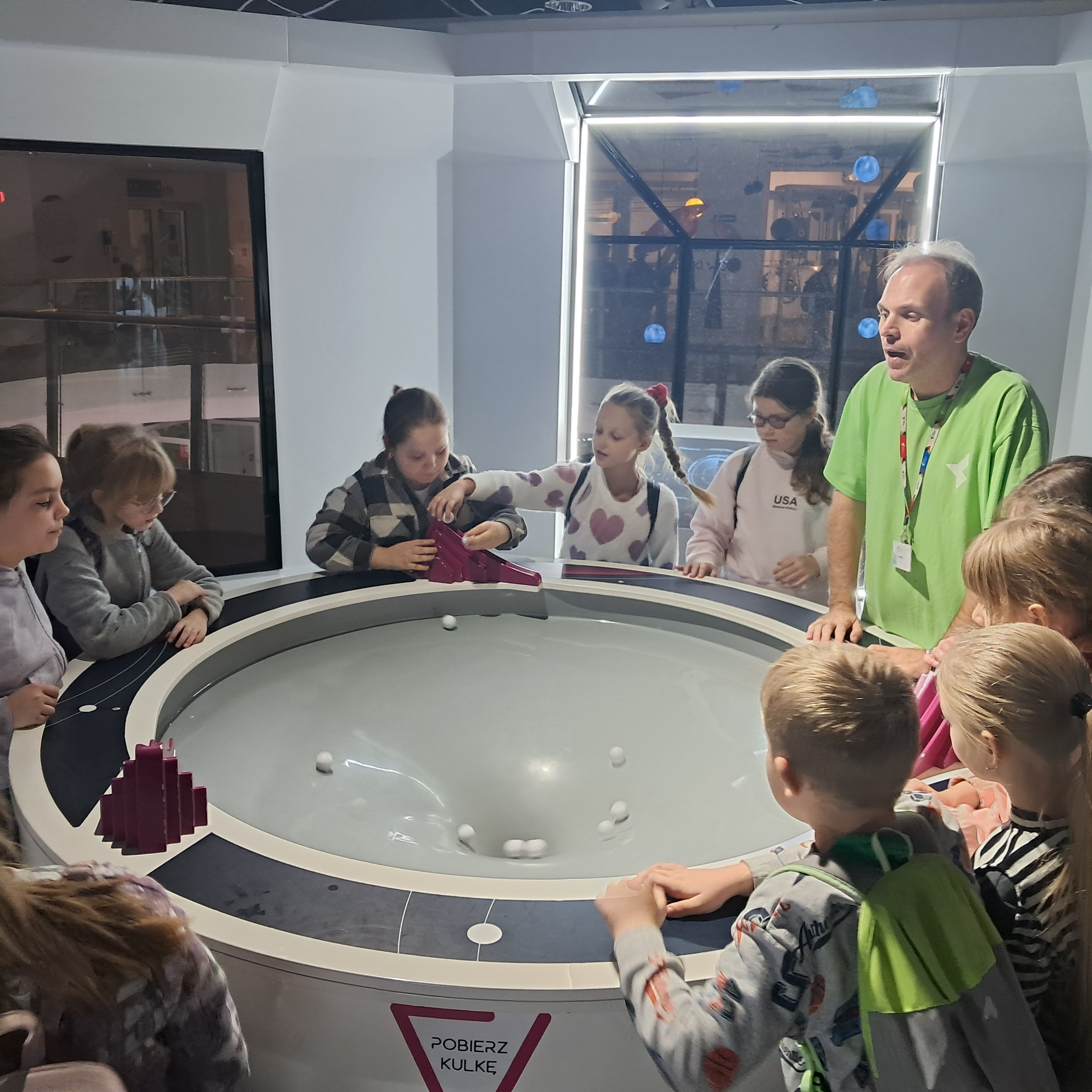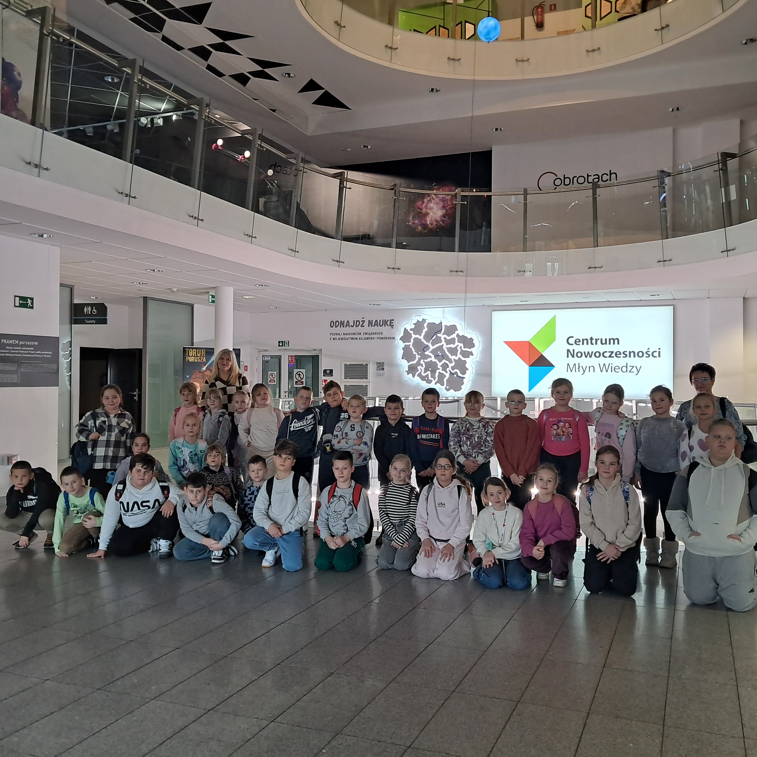 W dniu 19.11.2025r. odwiedziliśmy Młyn Wiedzy, interaktywne centrum nauki, znajdujące się w Toruniu. Jest to nowoczesna placówka, której celem jest popularyzowanie nauki poprzez zabawę i doświadczenie. Młyn Wiedzy to miejsce, w którym w atrakcyjny sposób prezentowane są zjawiska przyrodnicze, technologiczne oraz matematyczne.