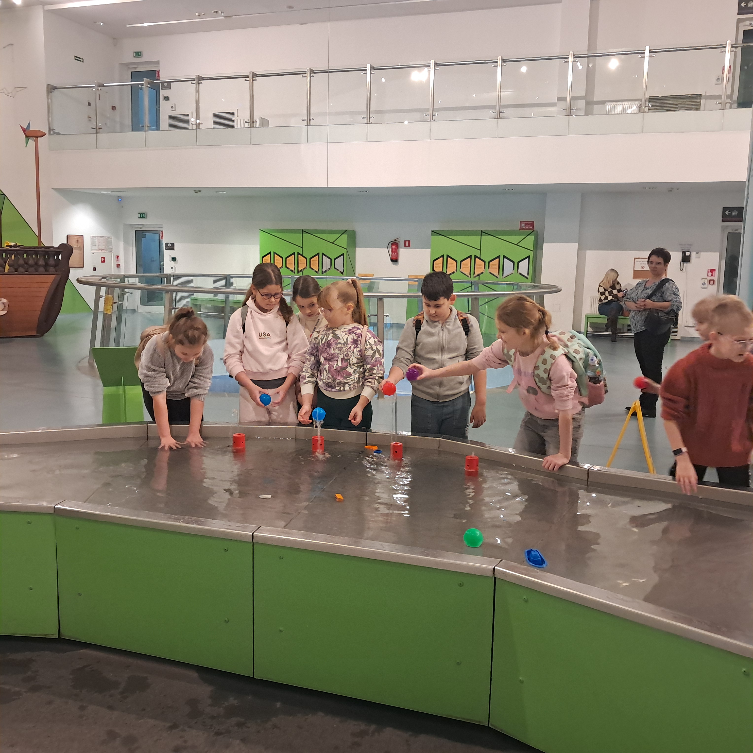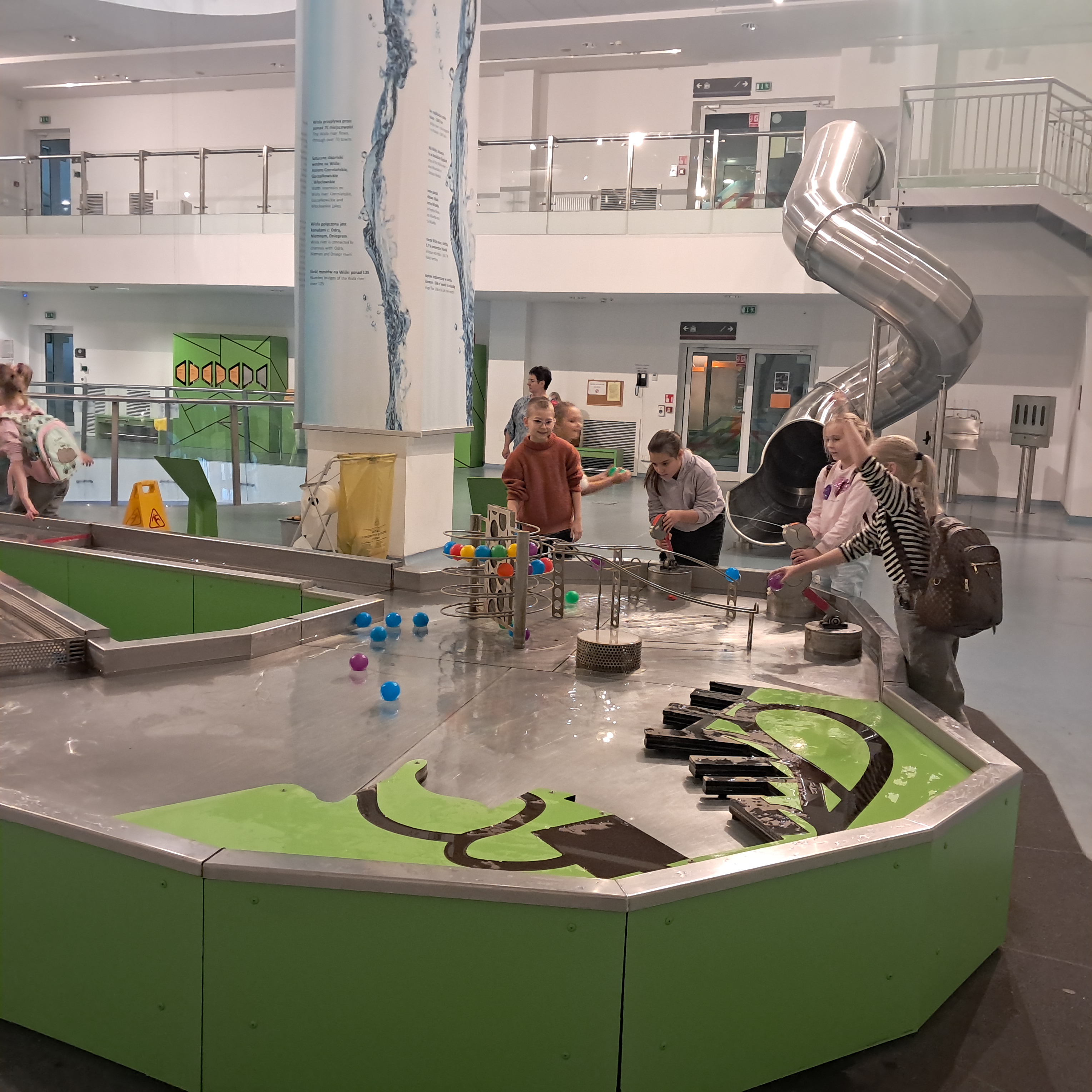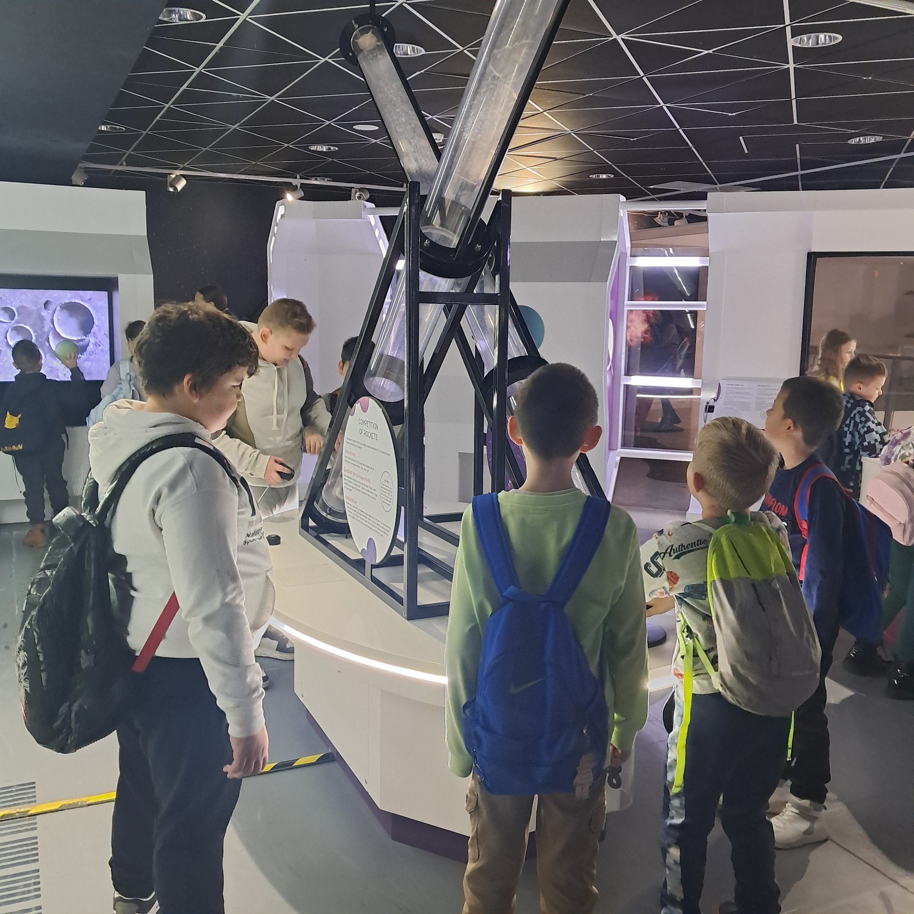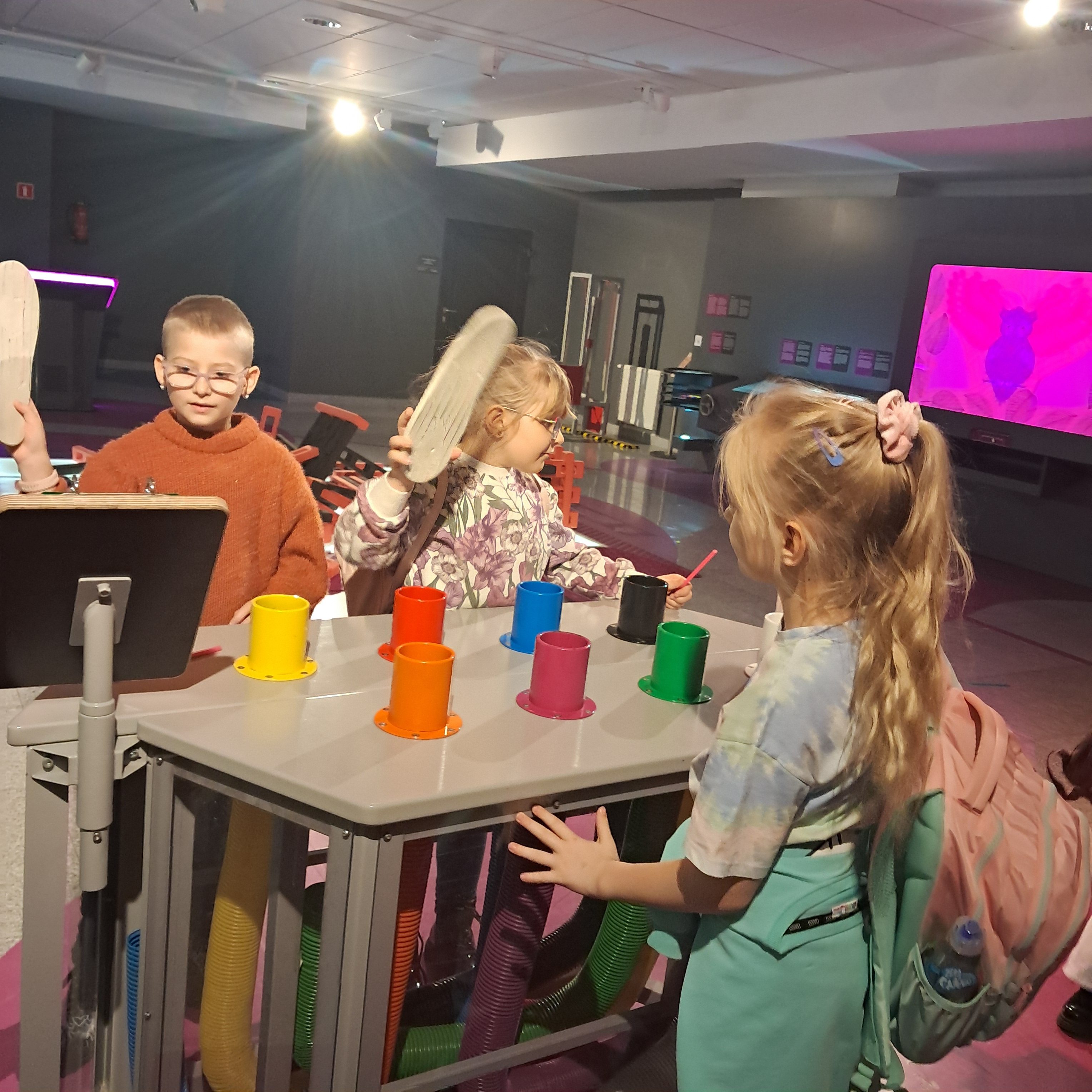W dniu 19.11.2025r. odwiedziliśmy Młyn Wiedzy, interaktywne centrum nauki, znajdujące się w Toruniu. Jest to nowoczesna placówka, której celem jest popularyzowanie nauki poprzez zabawę i doświadczenie. Młyn Wiedzy to miejsce, w którym w atrakcyjny sposób prezentowane są zjawiska przyrodnicze, technologiczne oraz matematyczne.