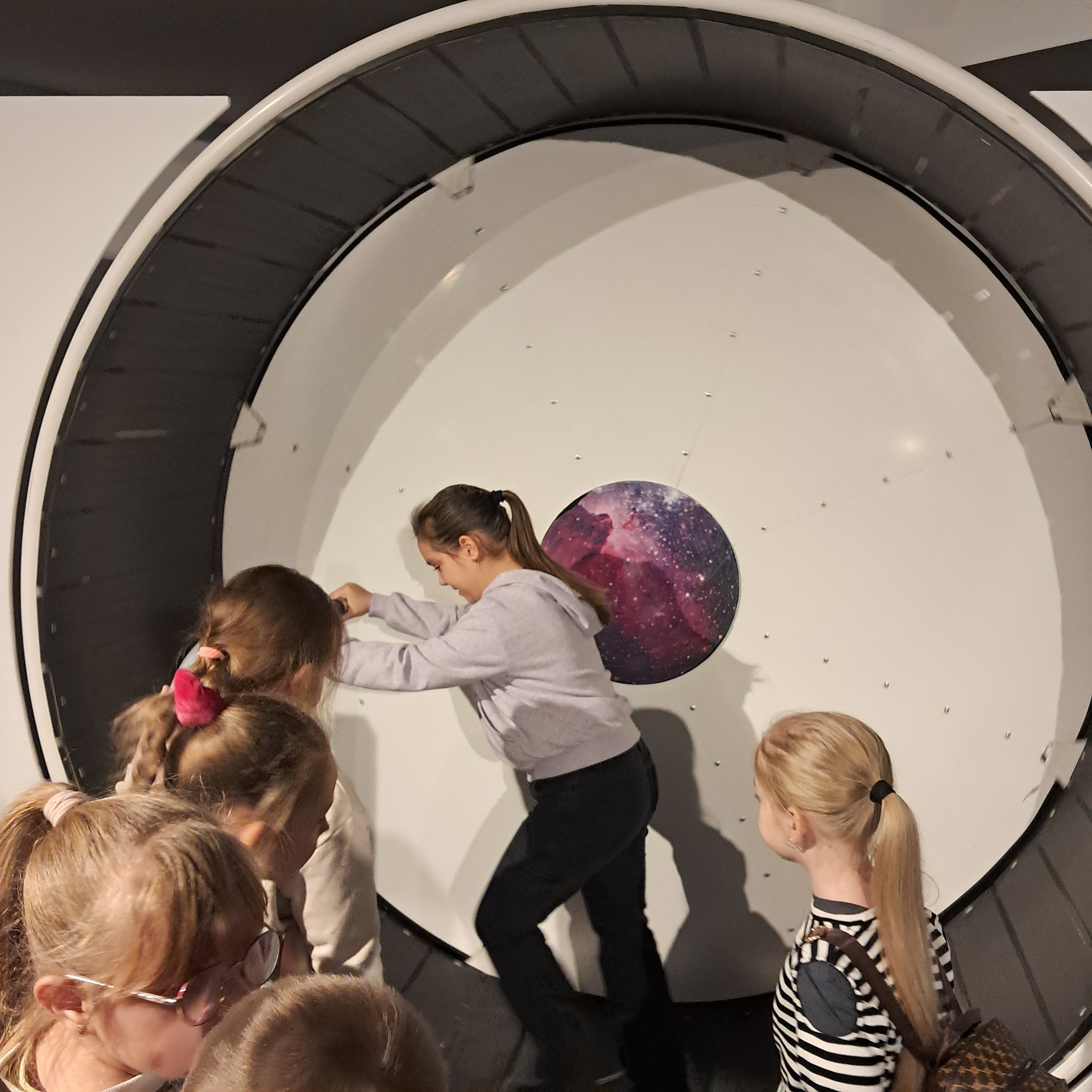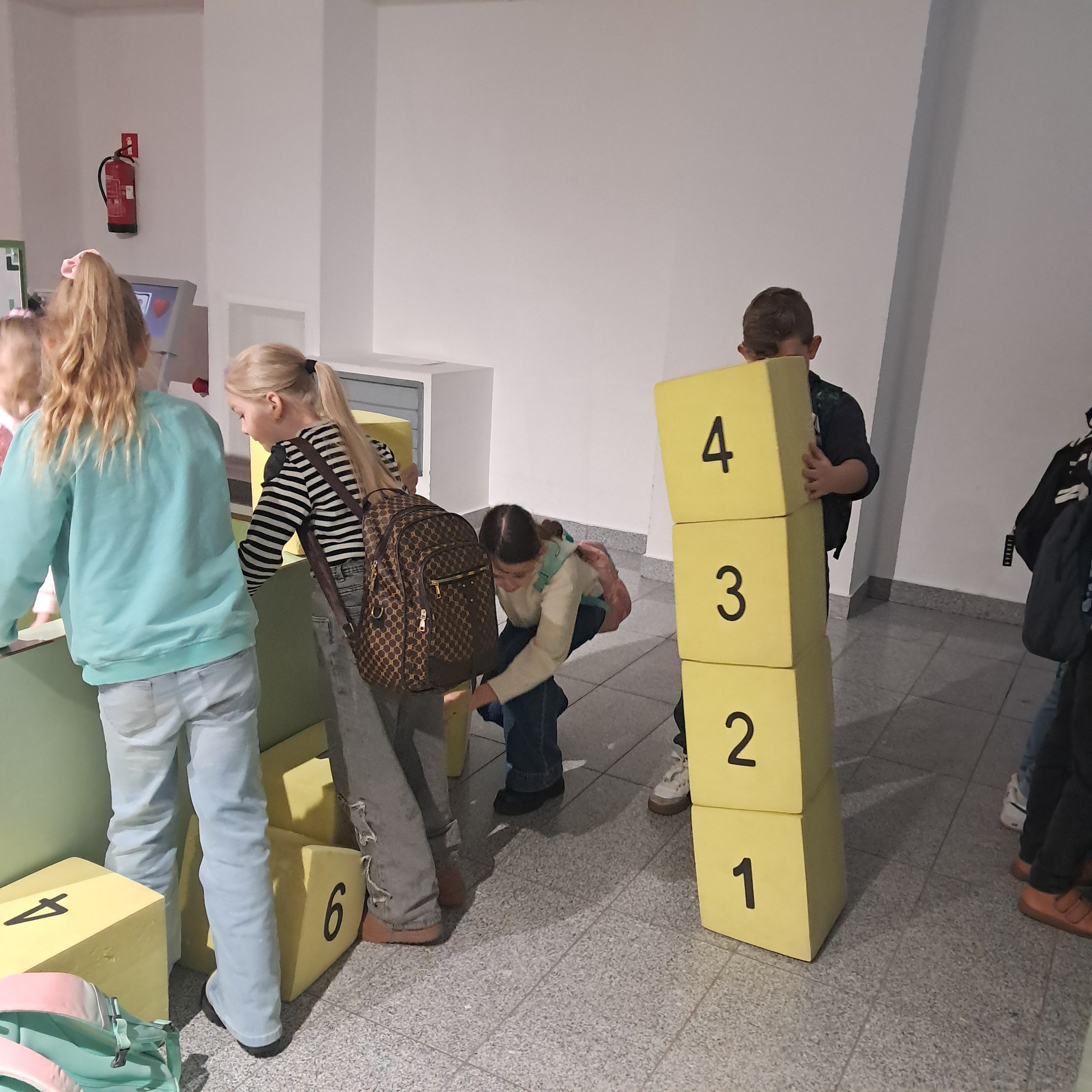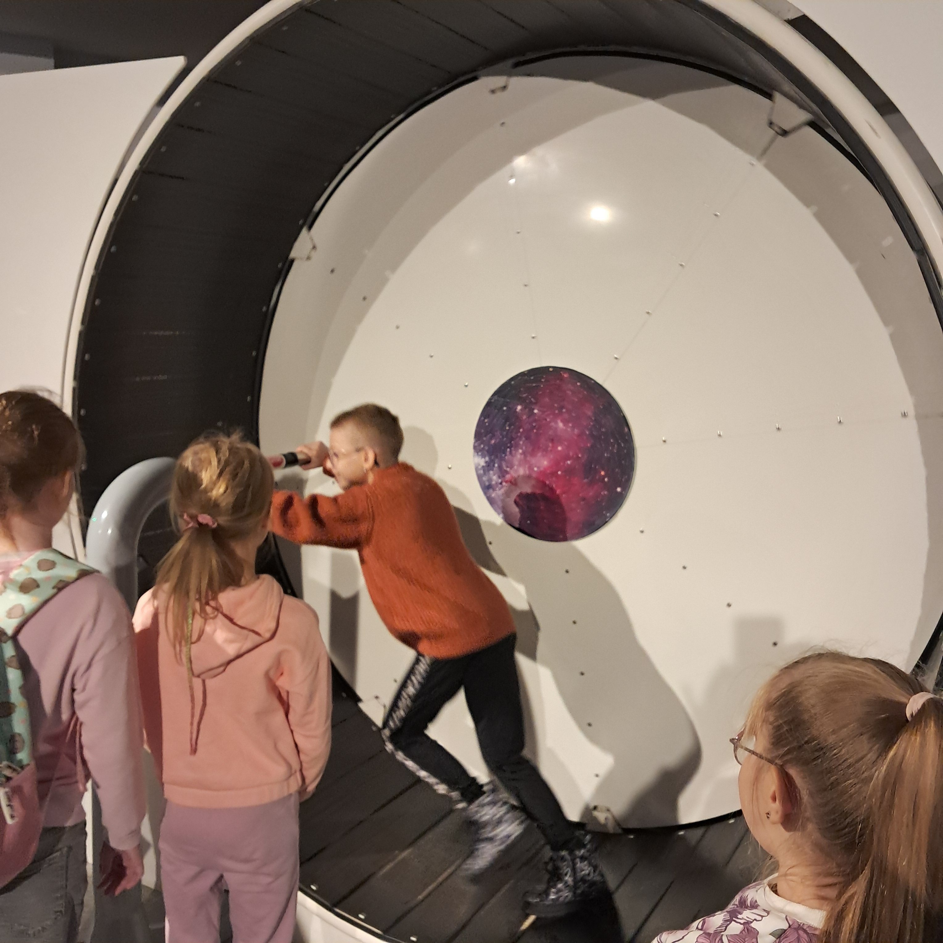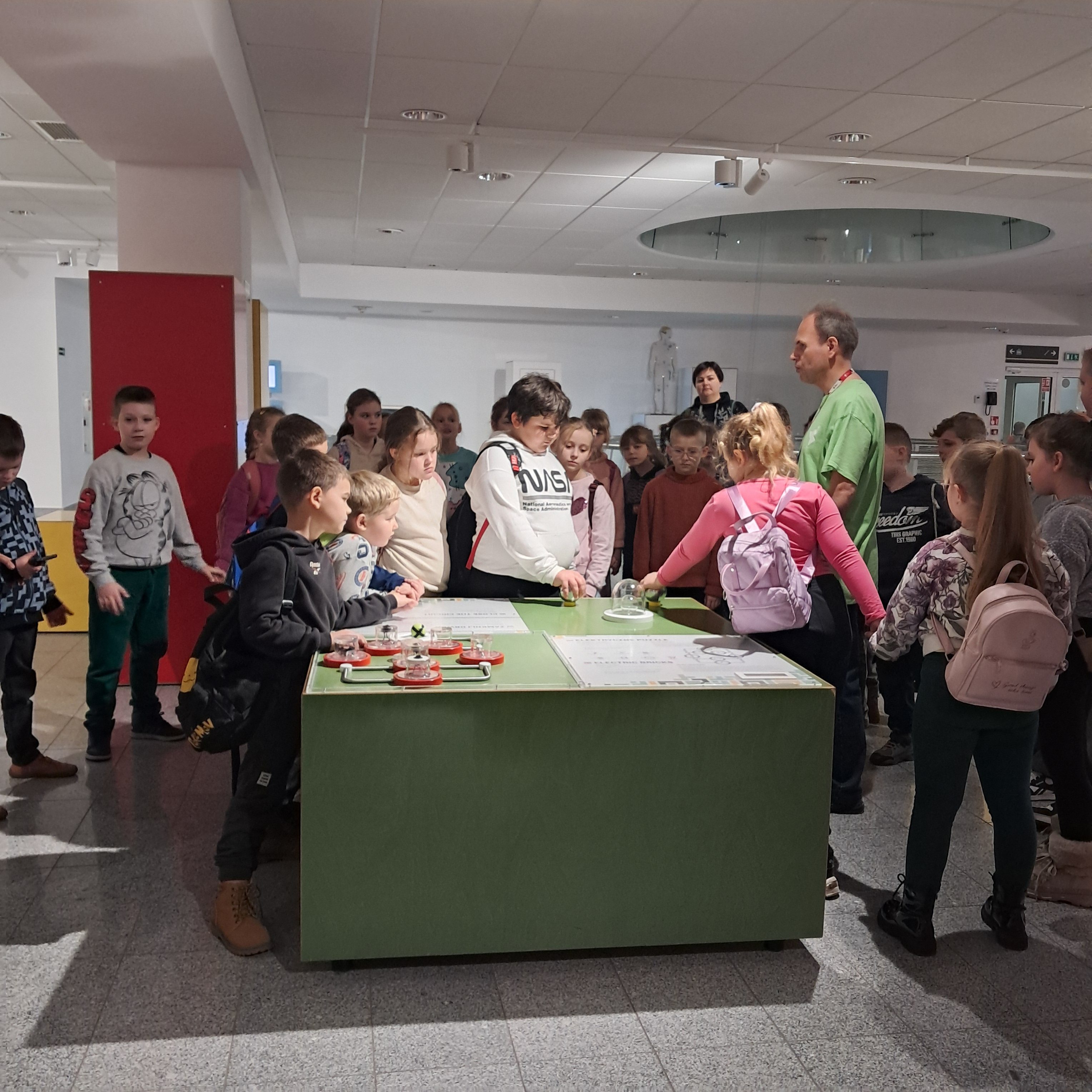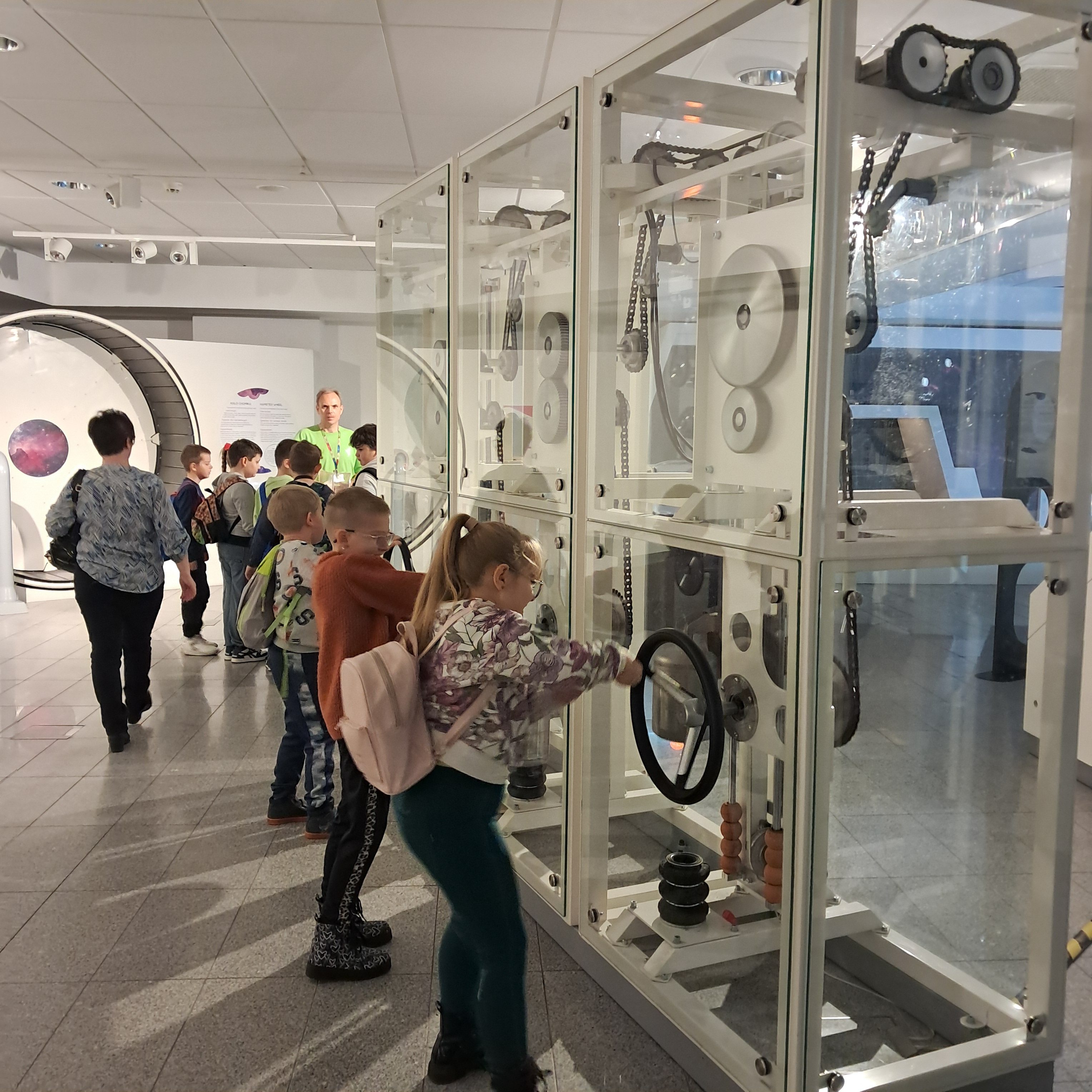 W dniu 19.11.2025r. odwiedziliśmy Młyn Wiedzy, interaktywne centrum nauki, znajdujące się w Toruniu. Jest to nowoczesna placówka, której celem jest popularyzowanie nauki poprzez zabawę i doświadczenie. Młyn Wiedzy to miejsce, w którym w atrakcyjny sposób prezentowane są zjawiska przyrodnicze, technologiczne oraz matematyczne.