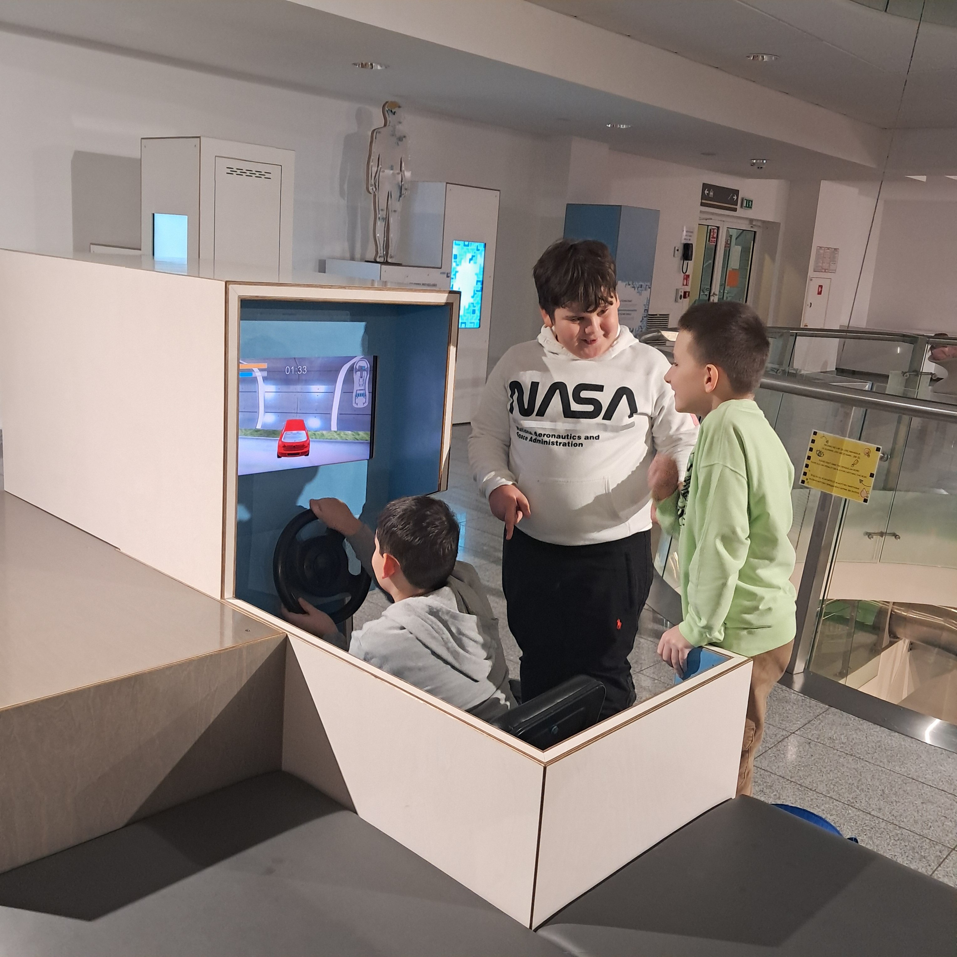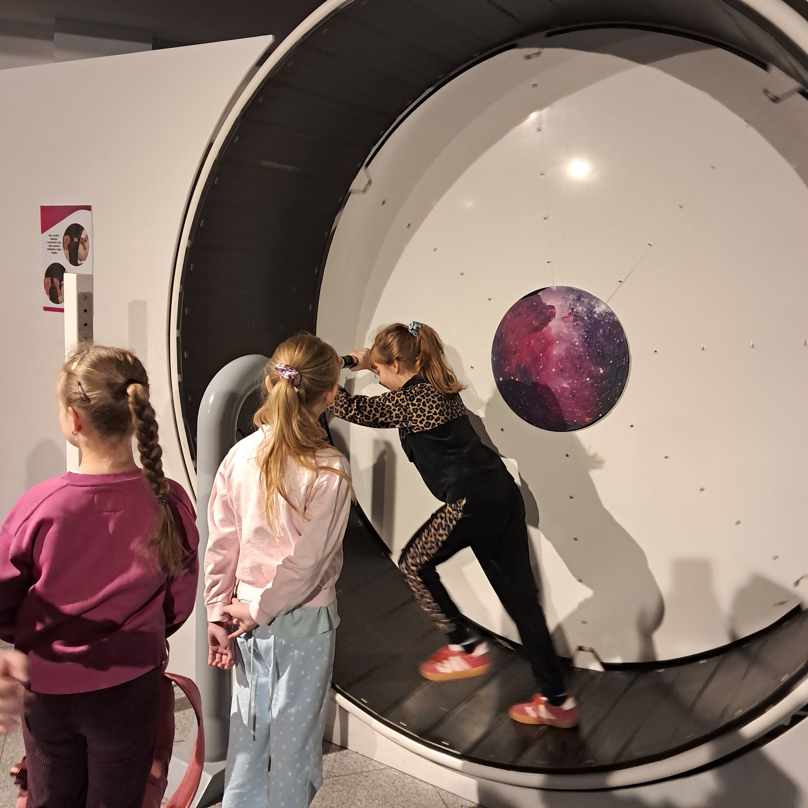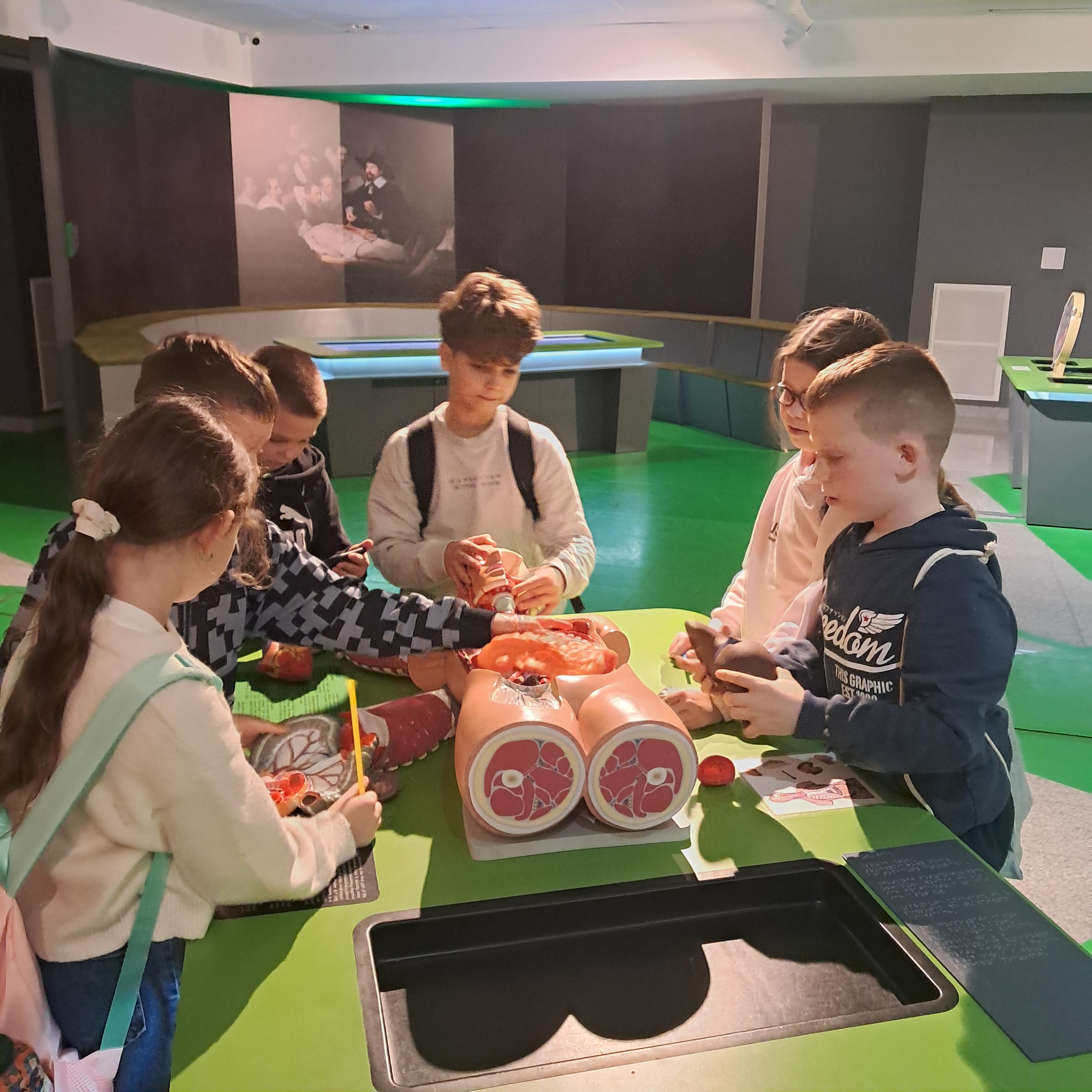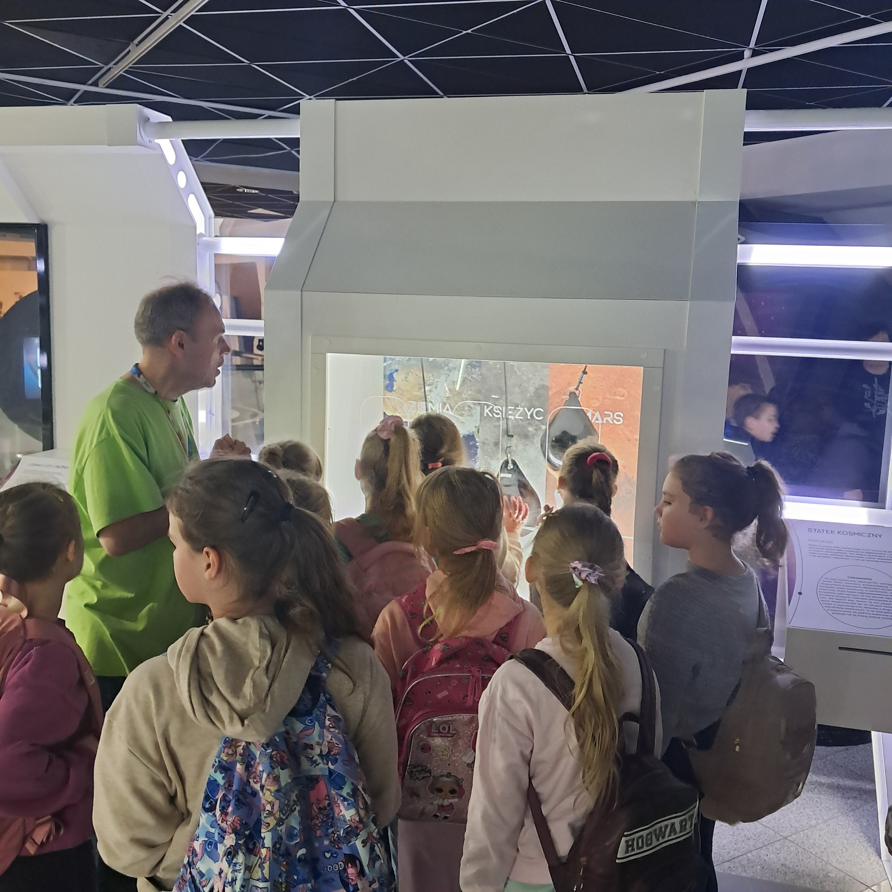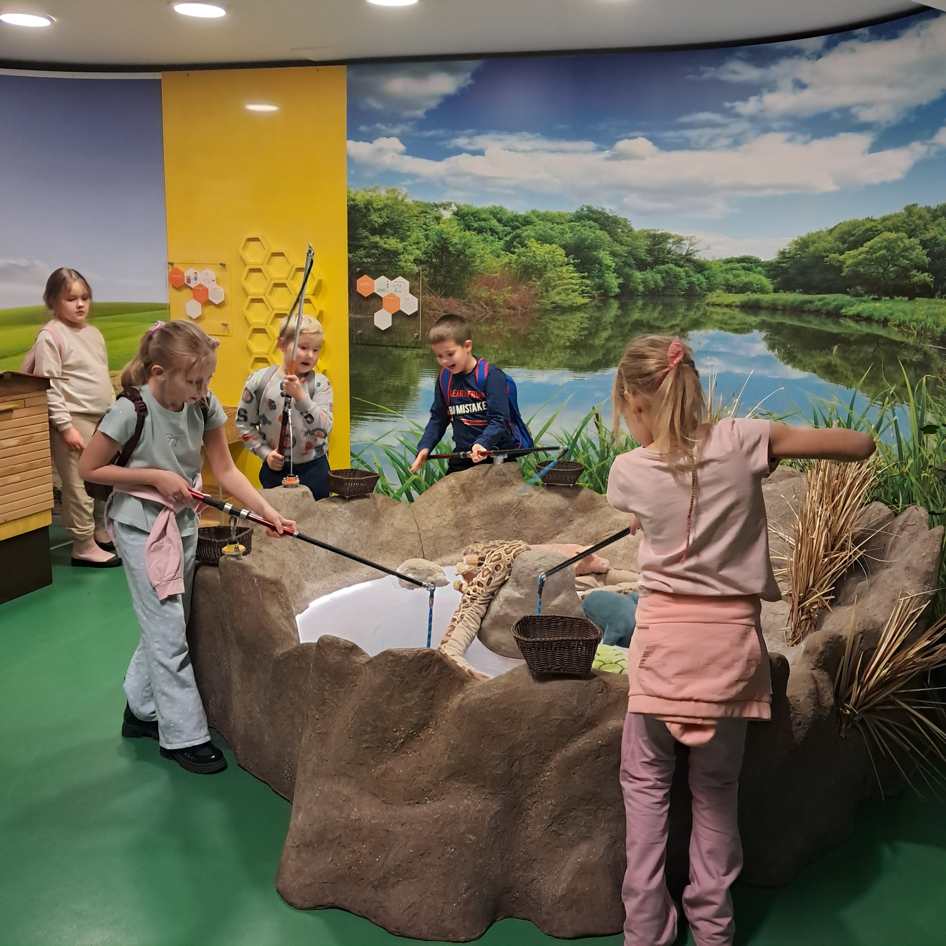 W dniu 19.11.2025r. odwiedziliśmy Młyn Wiedzy, interaktywne centrum nauki, znajdujące się w Toruniu. Jest to nowoczesna placówka, której celem jest popularyzowanie nauki poprzez zabawę i doświadczenie. Młyn Wiedzy to miejsce, w którym w atrakcyjny sposób prezentowane są zjawiska przyrodnicze, technologiczne oraz matematyczne.