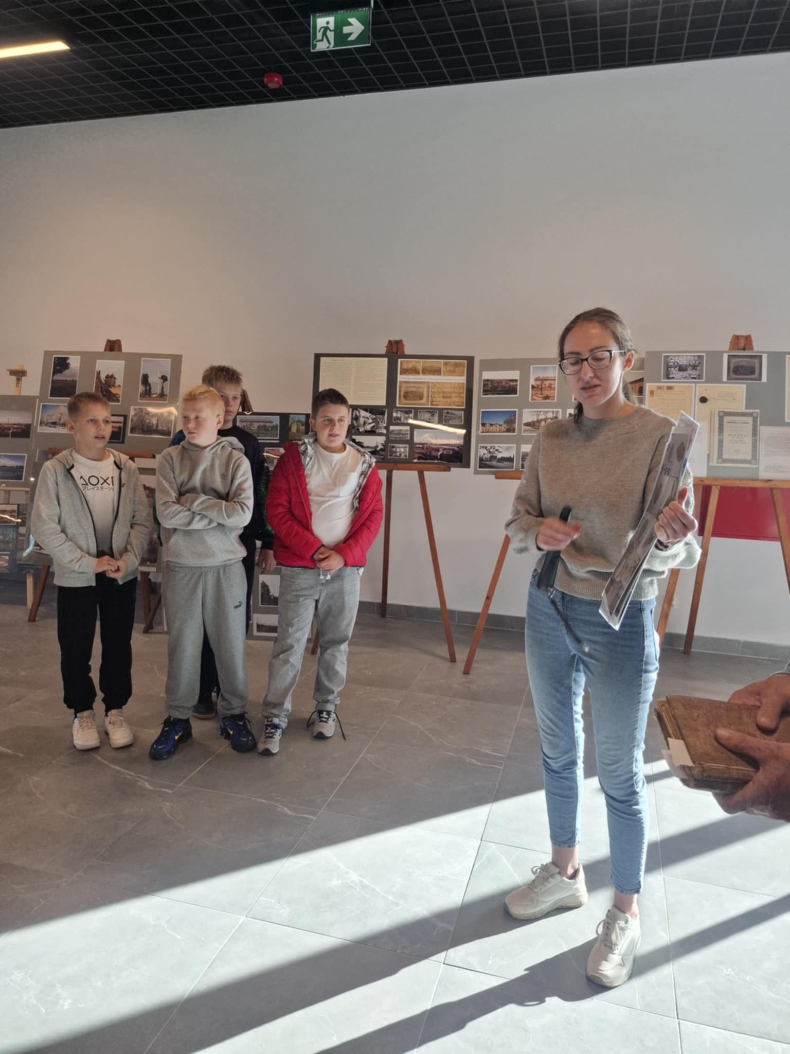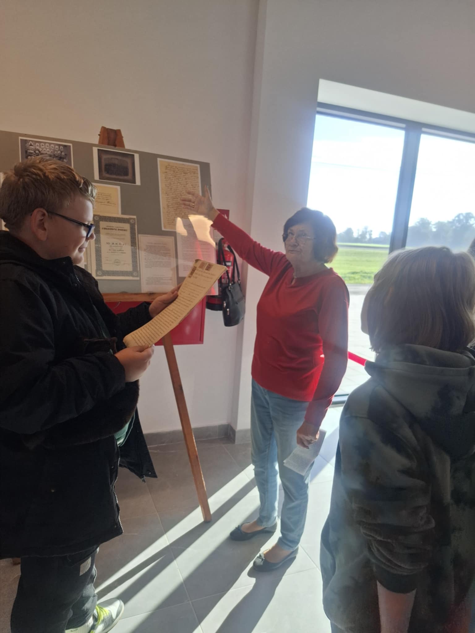 Bardzo dziękujemy członkom Stowarzyszenia Poszukiwawczo- Historycznego Łokietek za oprowadzenie po wystawie związanej z historią Kujaw (w tym bitwy pod Płowcami) i przedstawienie informacji o swojej działalności. Oprócz p. Eweliny Krzyczkowskiej, pod której kierunkiem ekspozycja powstała, wysłuchaliśmy również wypowiedzi emerytowanego nauczyciel p. Józefa Nowakowskiego. Uczniowie mieli też okazję obejrzeć wystawę poświeconą kolejce wąskotorowej oraz cukrowni w Dobrem, o której interesująco opowiedziała p. Bożena Zasada.