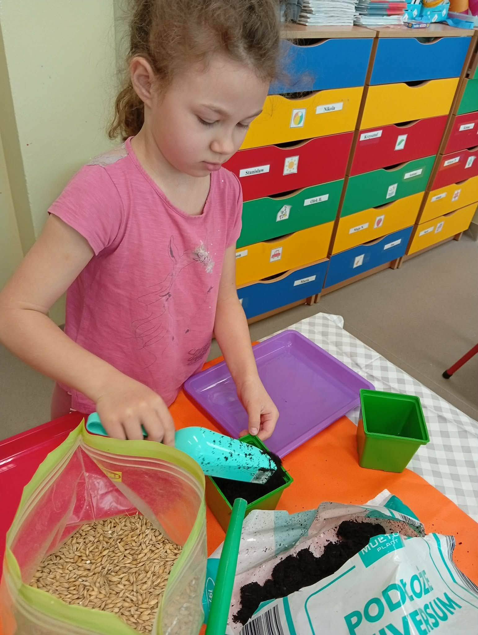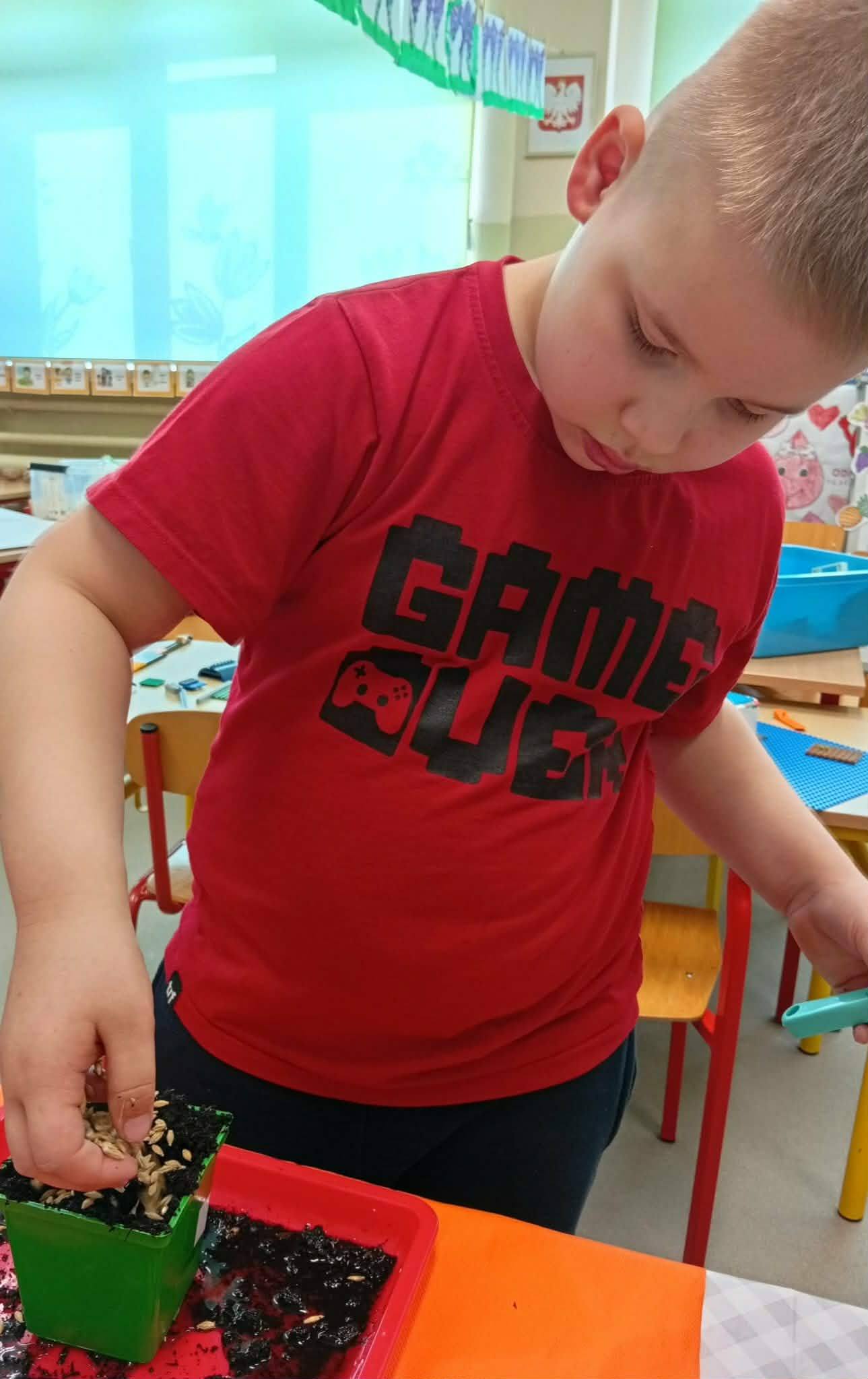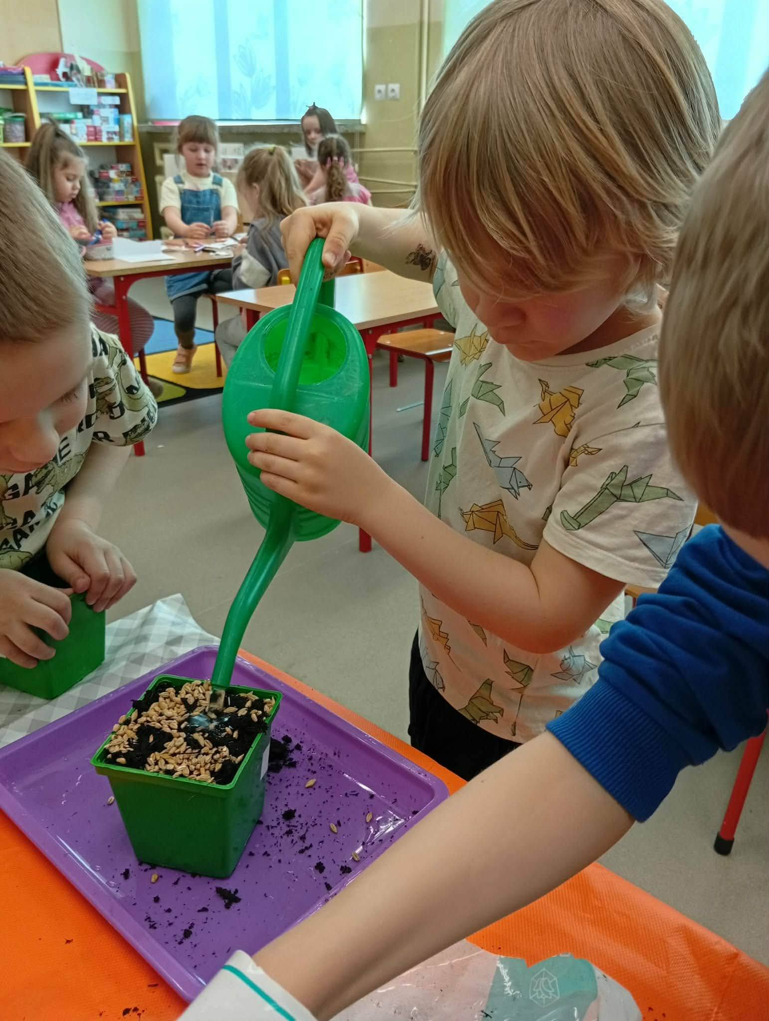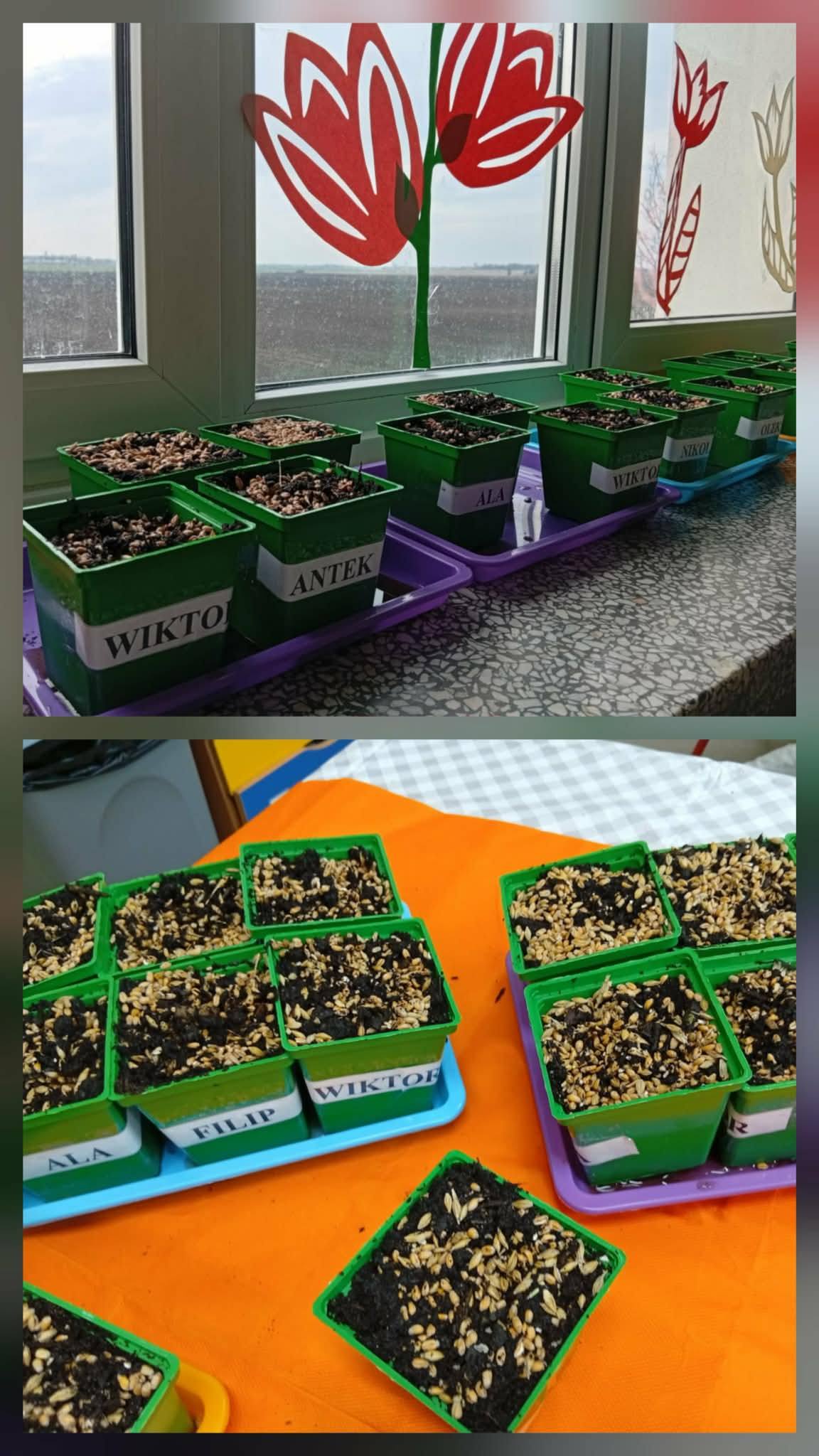 Dzieci z grupy “Liski” zakładają zielony ogródek w sali.