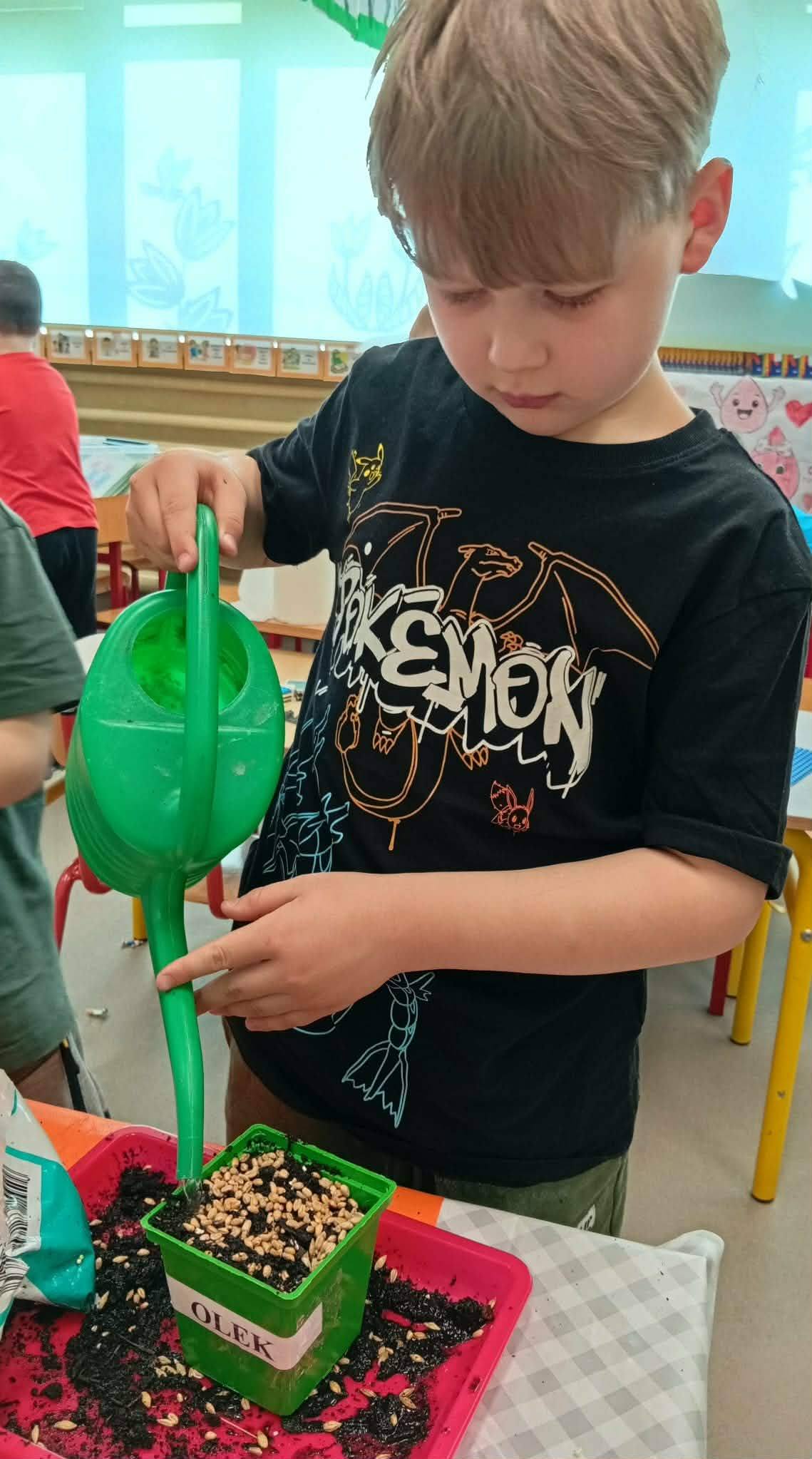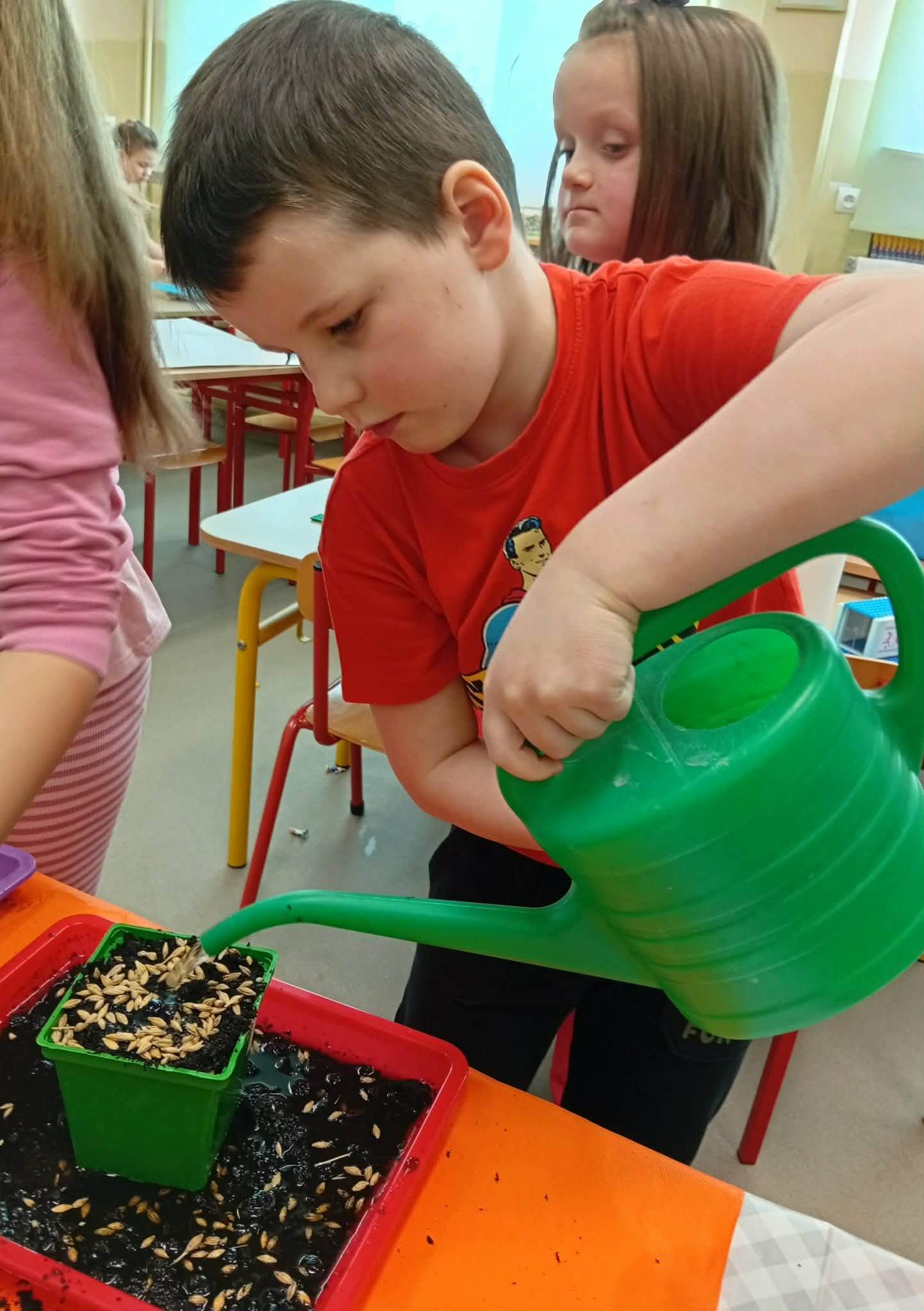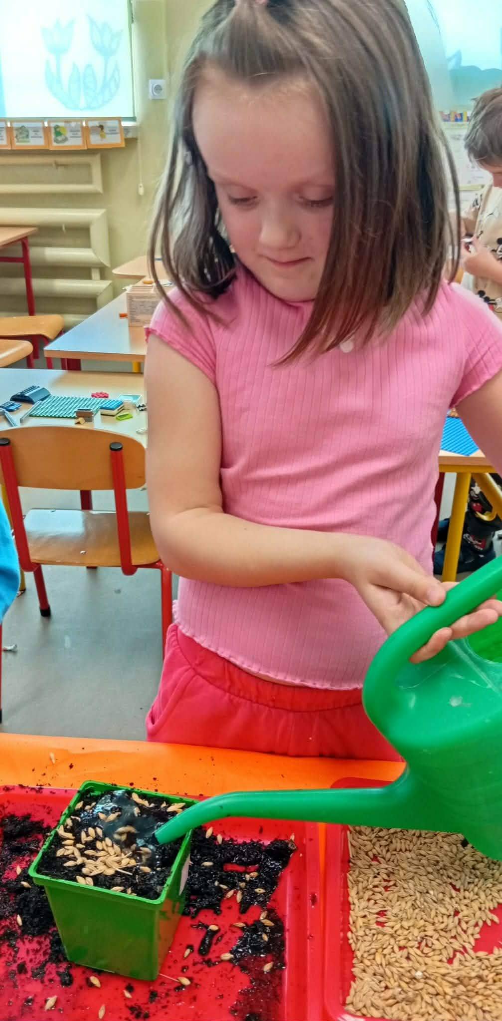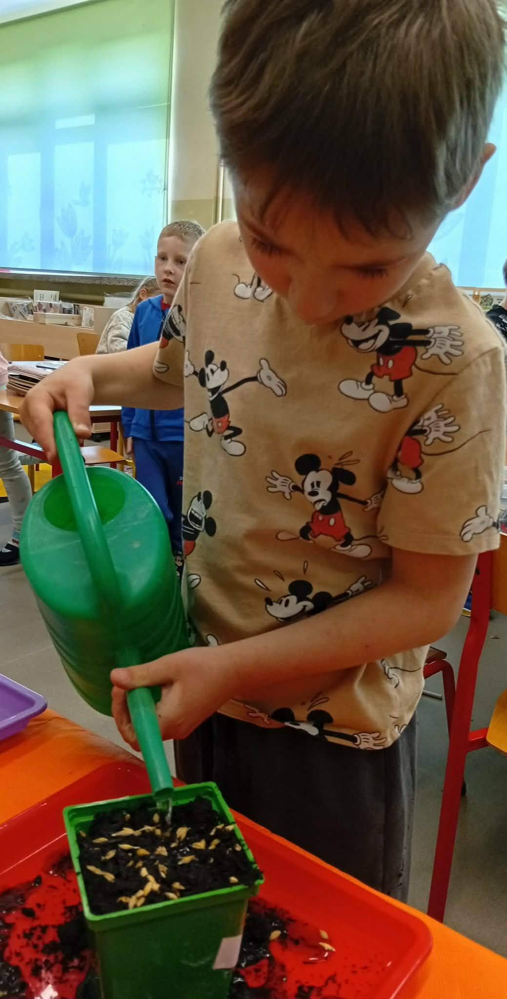 Dzieci z grupy “Liski” zakładają zielony ogródek w sali.