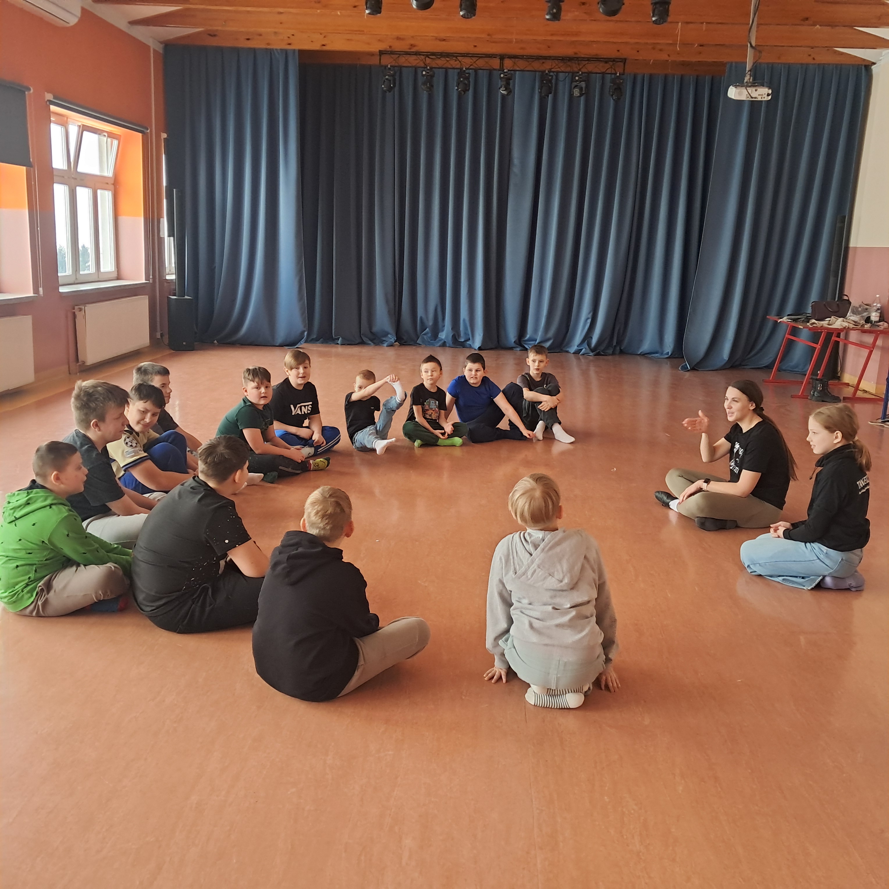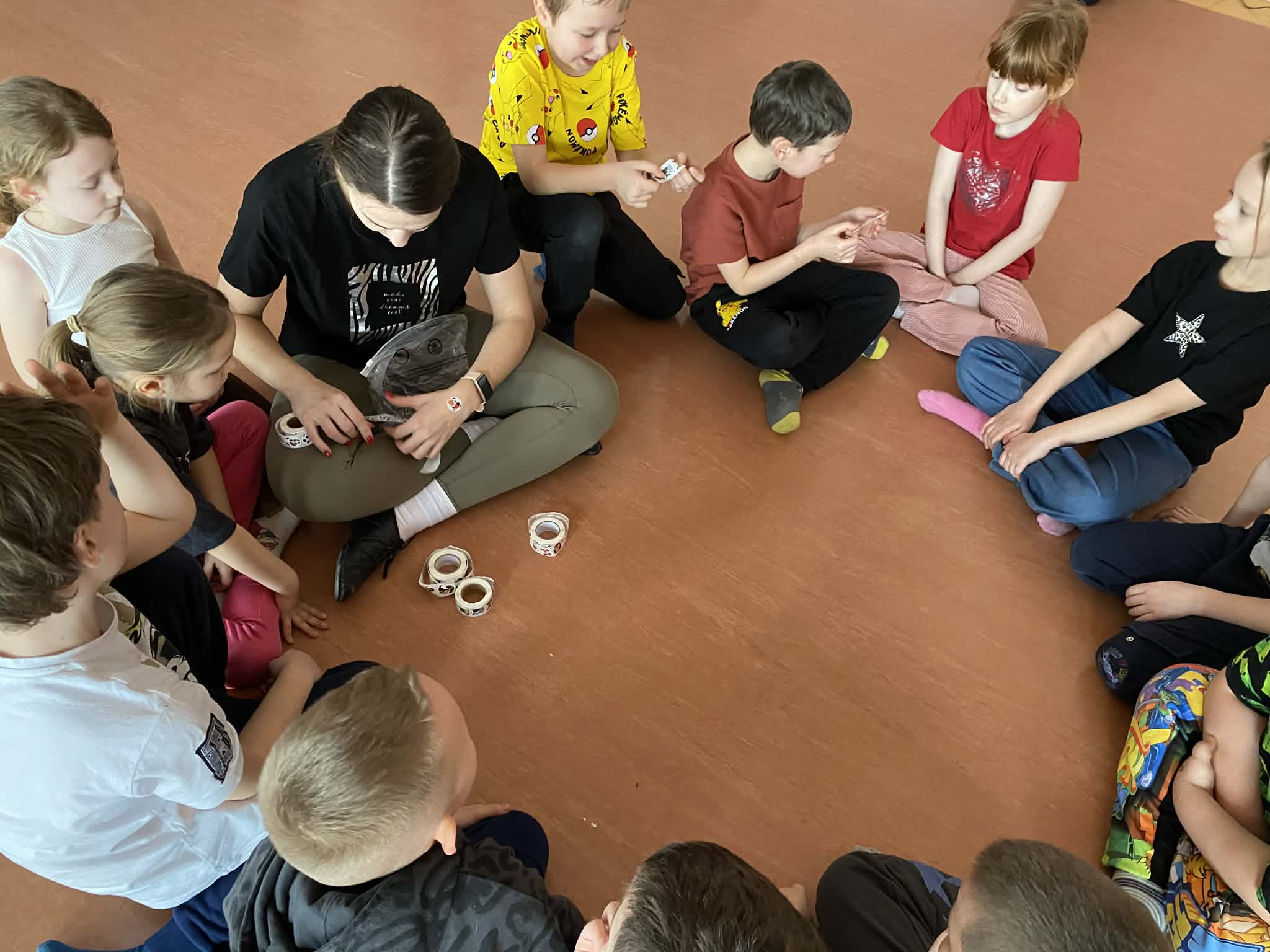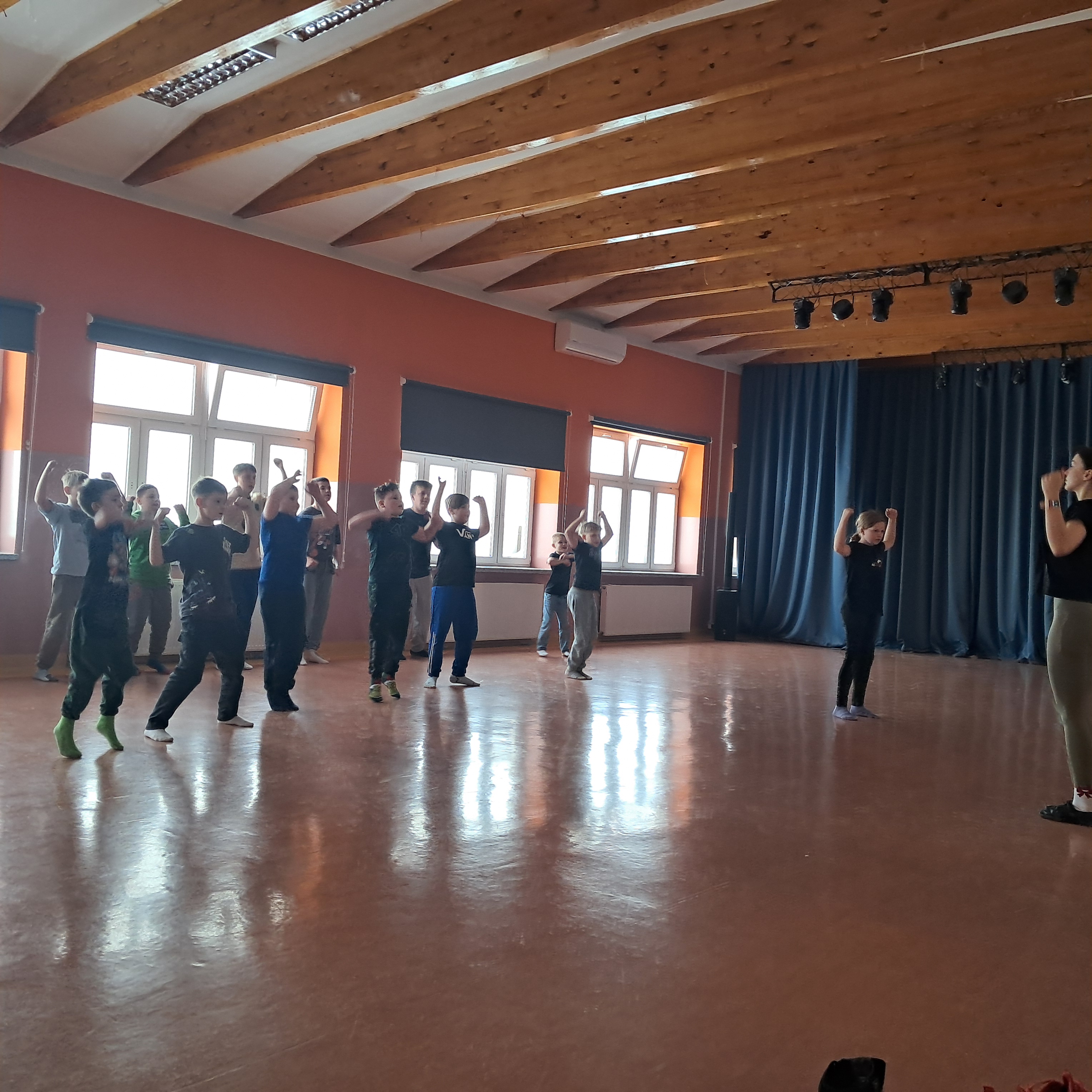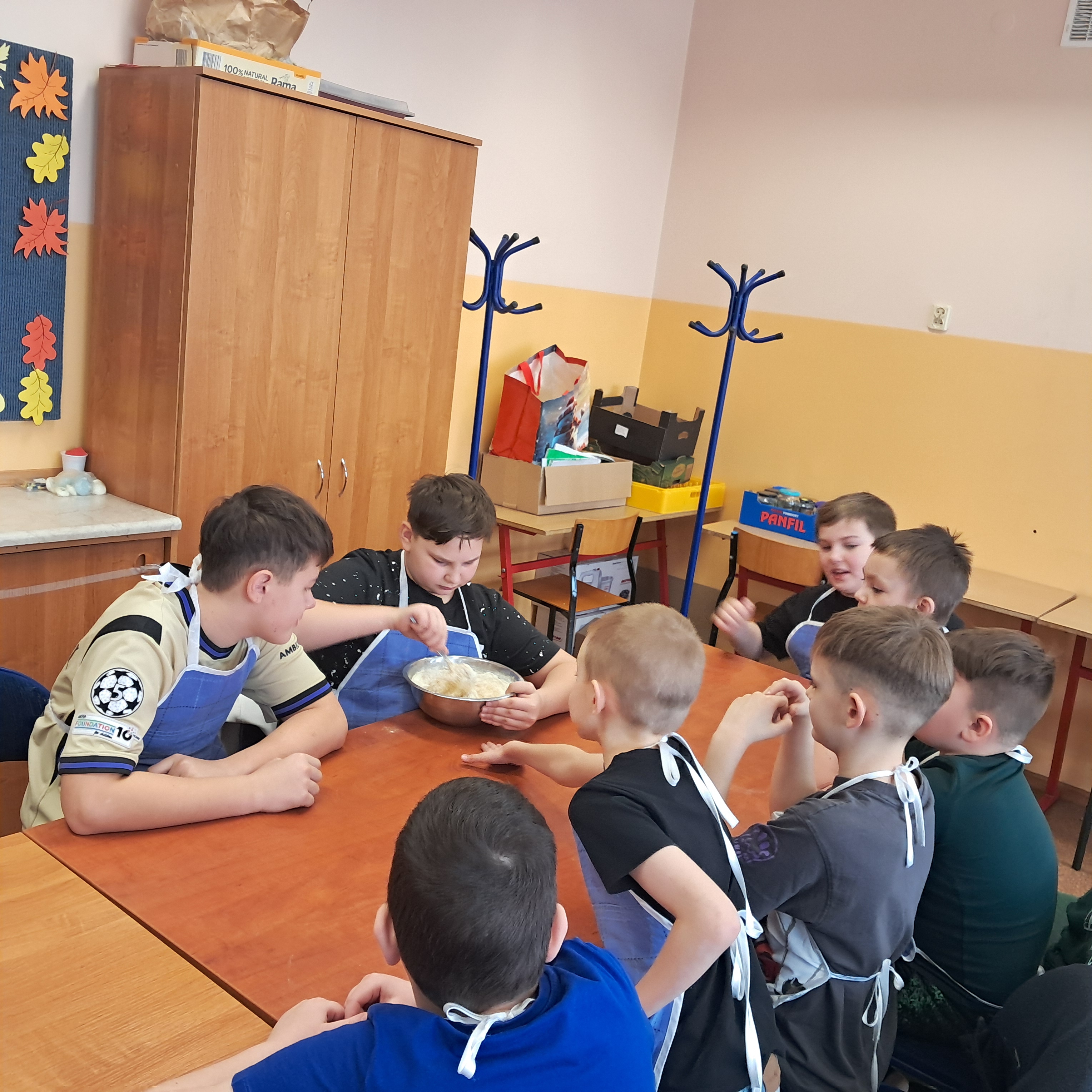 Jeden z dni półkolonii spędziliśmy w szkole w Osięcinach, gdzie odbyły się zajęcia taneczne prowadzone przez instruktorów Studia Tańca Revolta, a także zajęcia kulinarne i plastyczne, rozwijające kreatywność oraz umiejętności manualne dzieci.